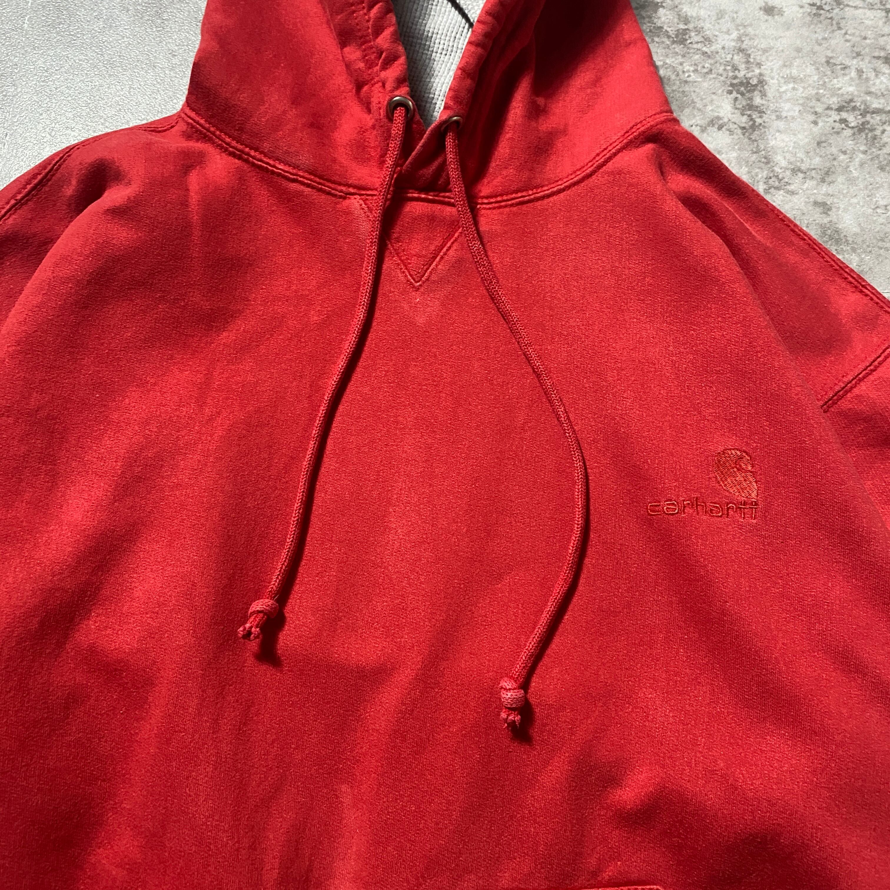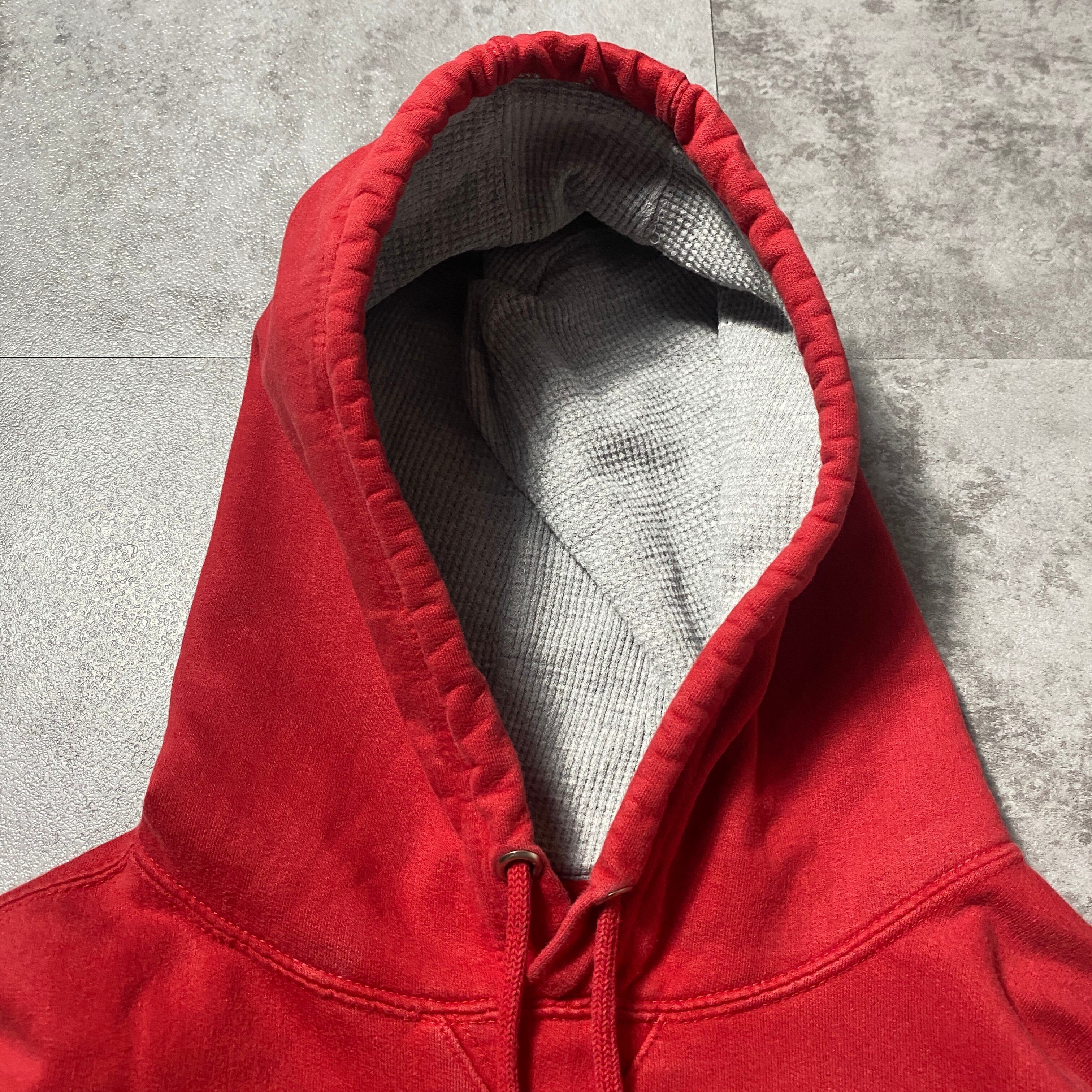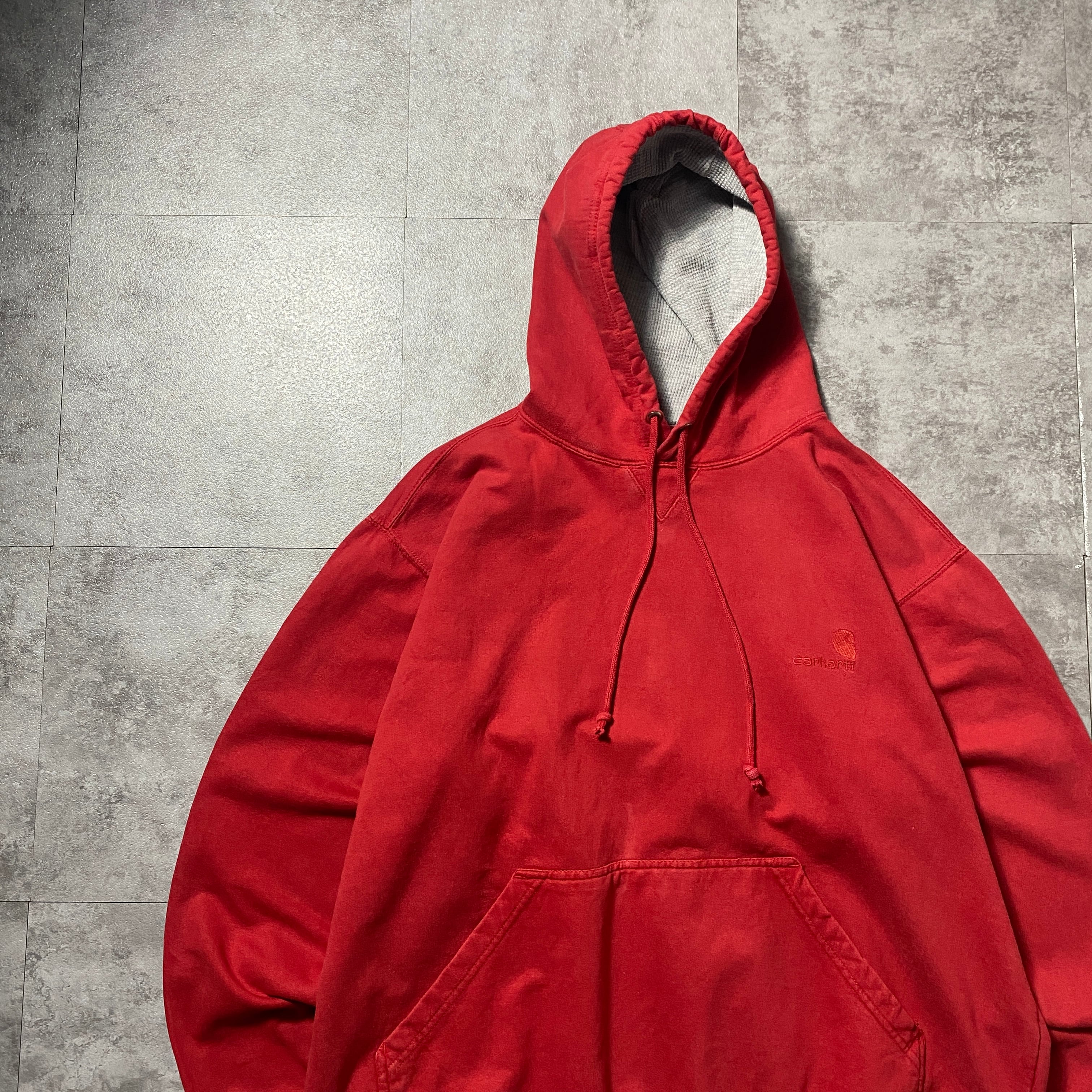 【Size:2XL】00's carhartt カーハート 刺繍ワンポイント フード裏地サーマル レッド 赤 スウェット パーカー