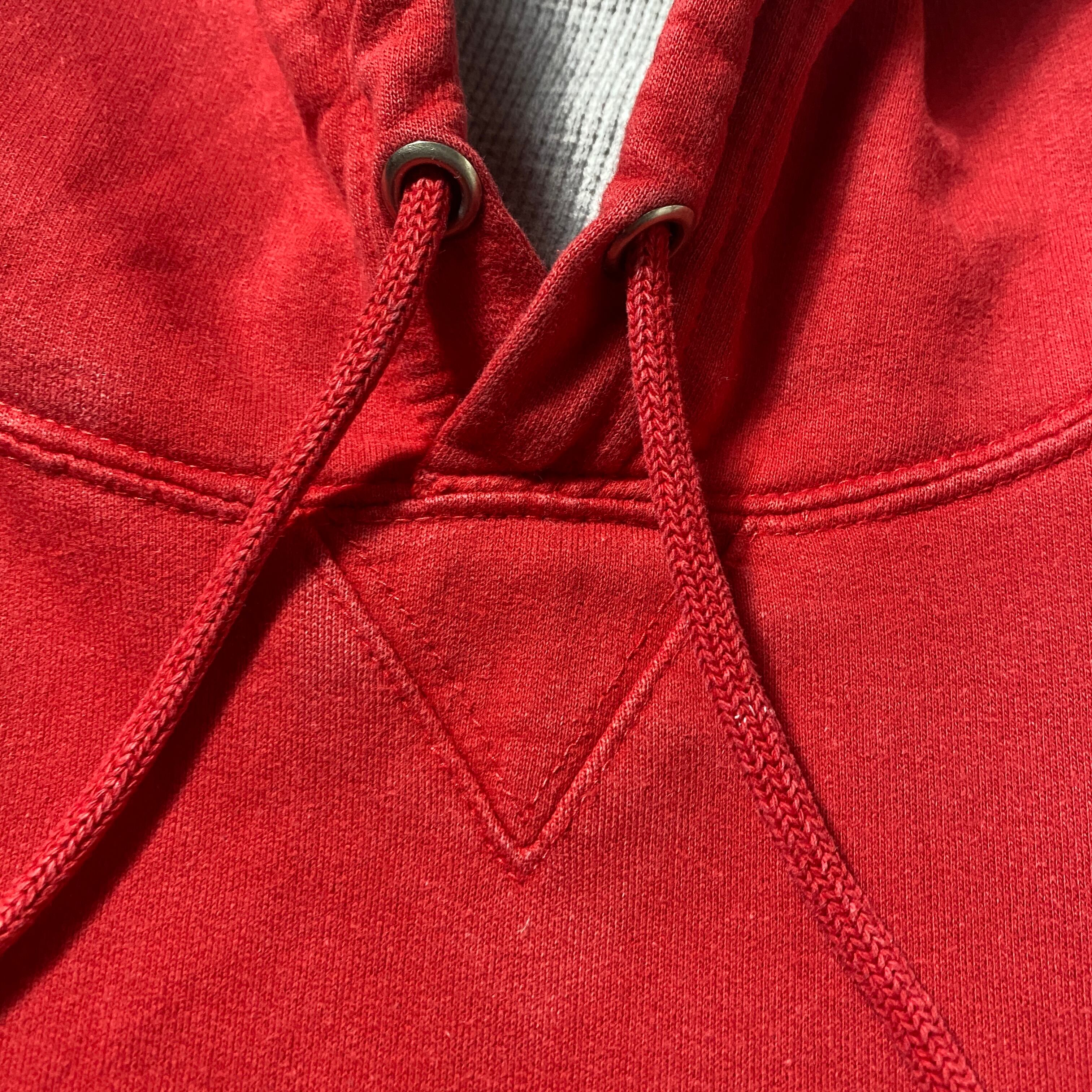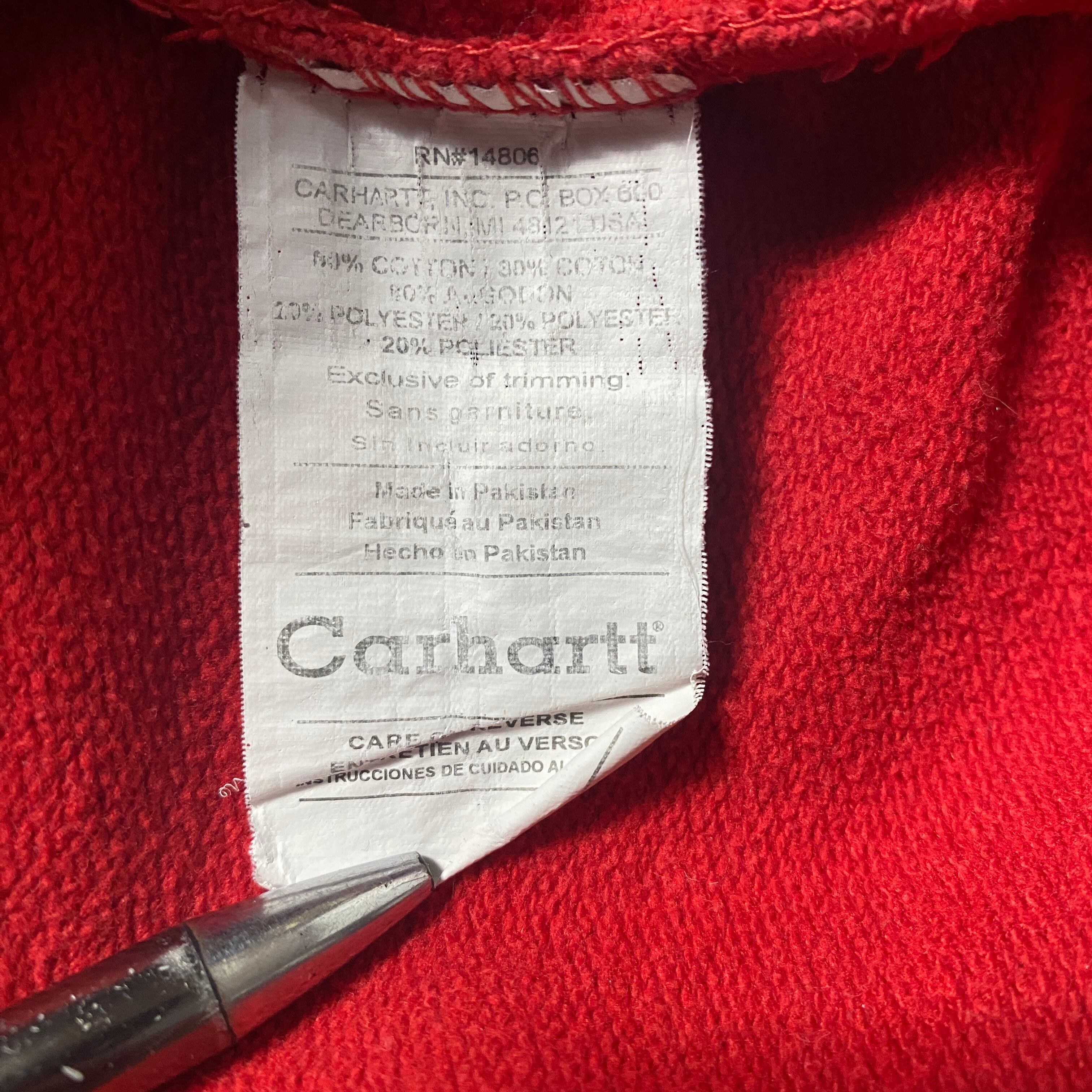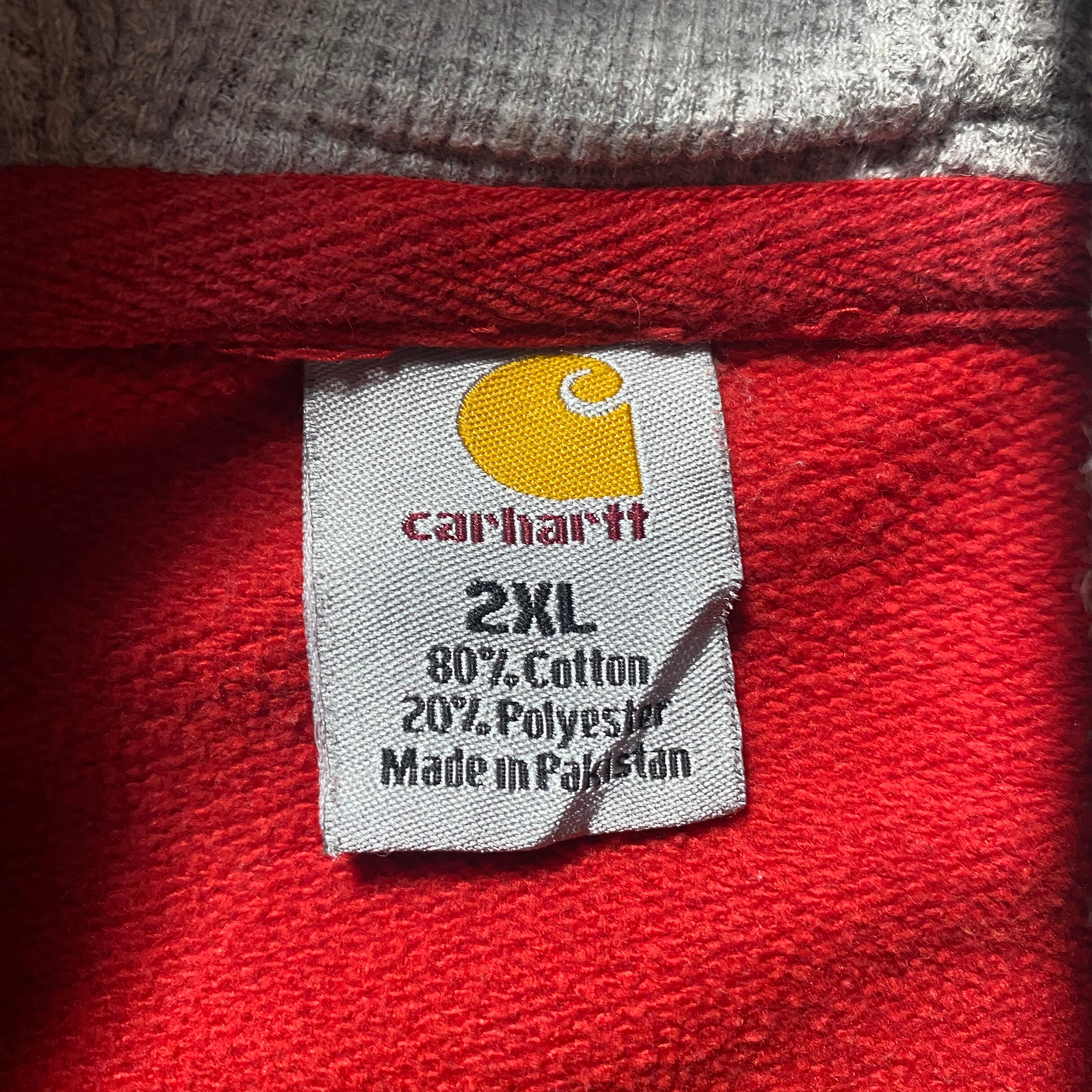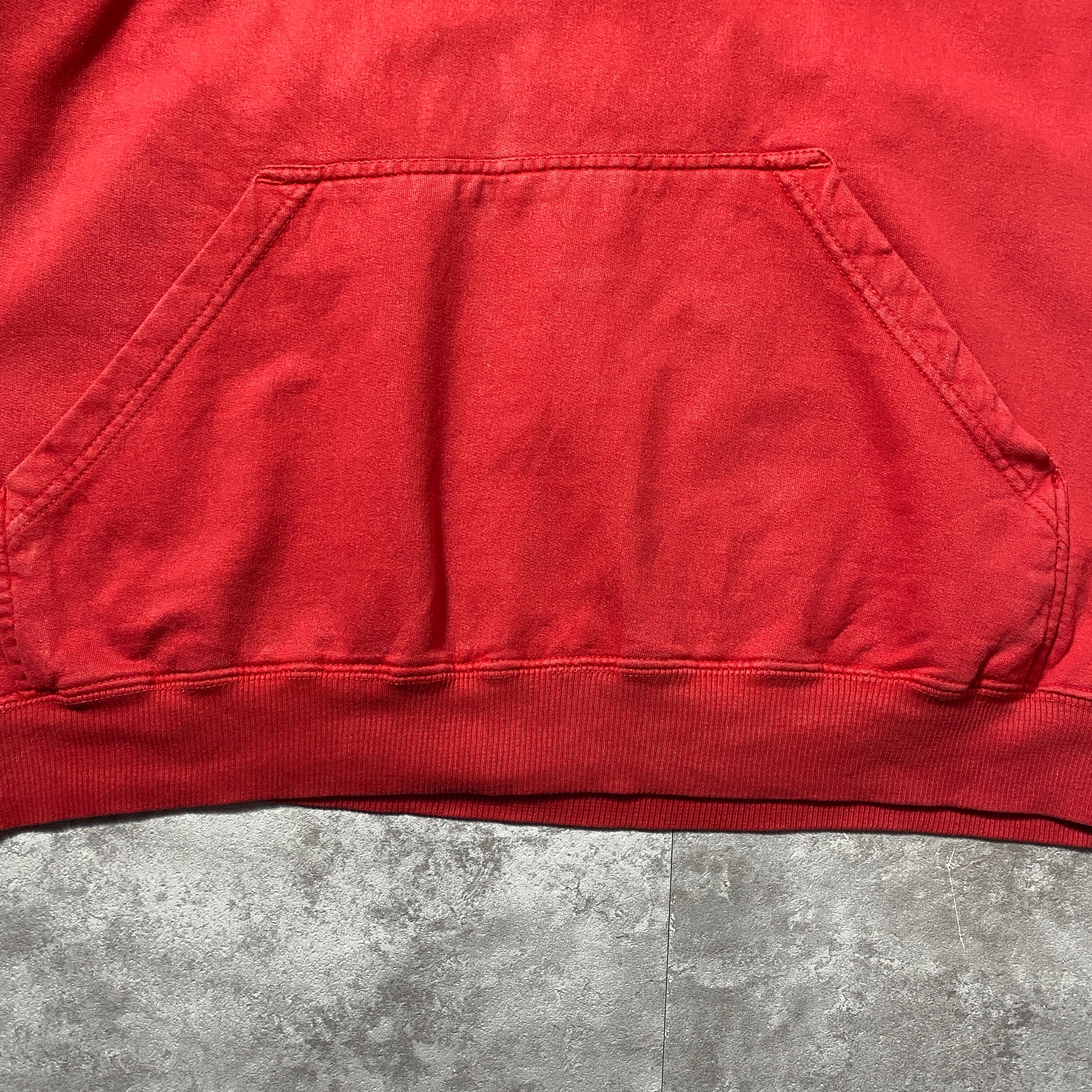 【Size:2XL】00's carhartt カーハート 刺繍ワンポイント フード裏地サーマル レッド 赤 スウェット パーカー