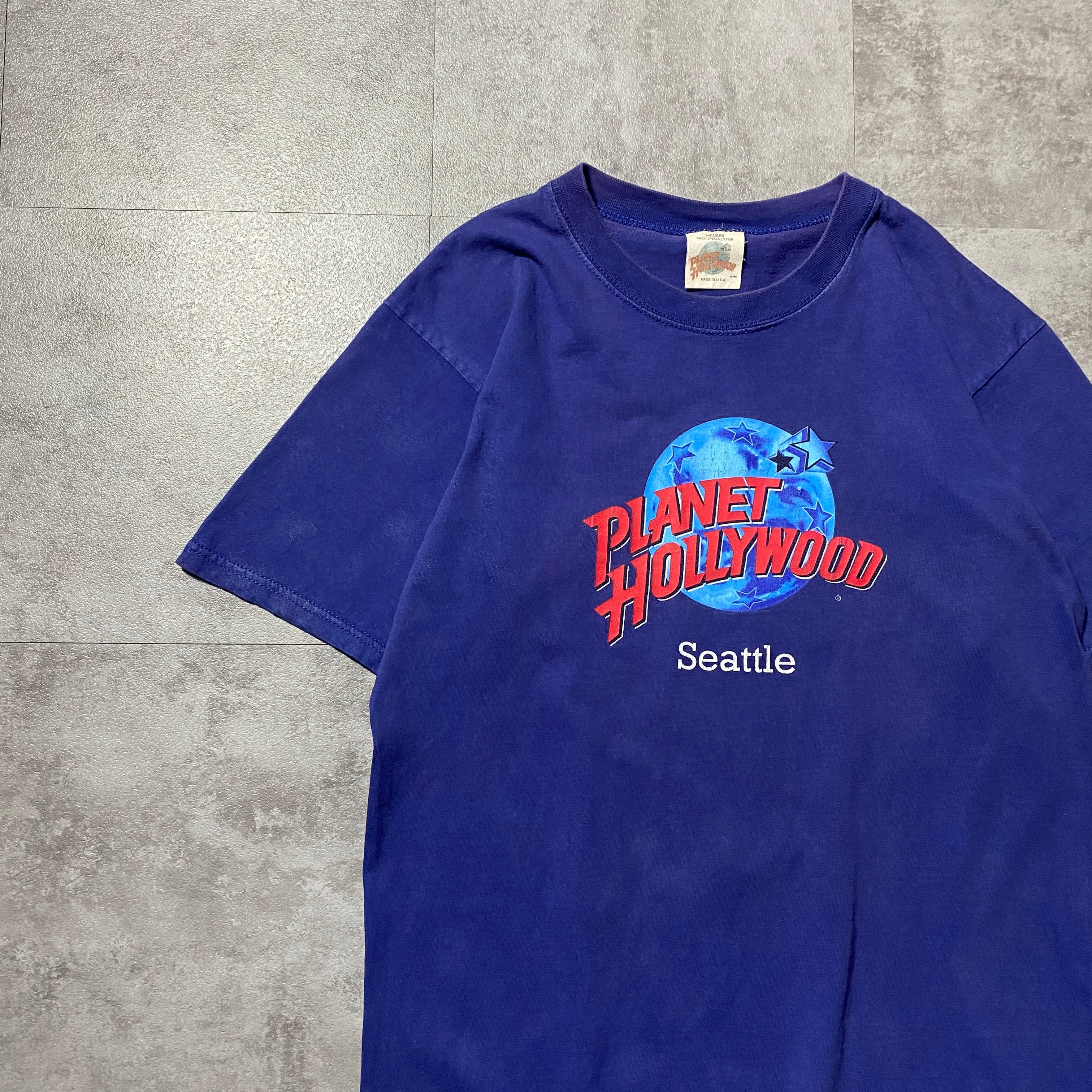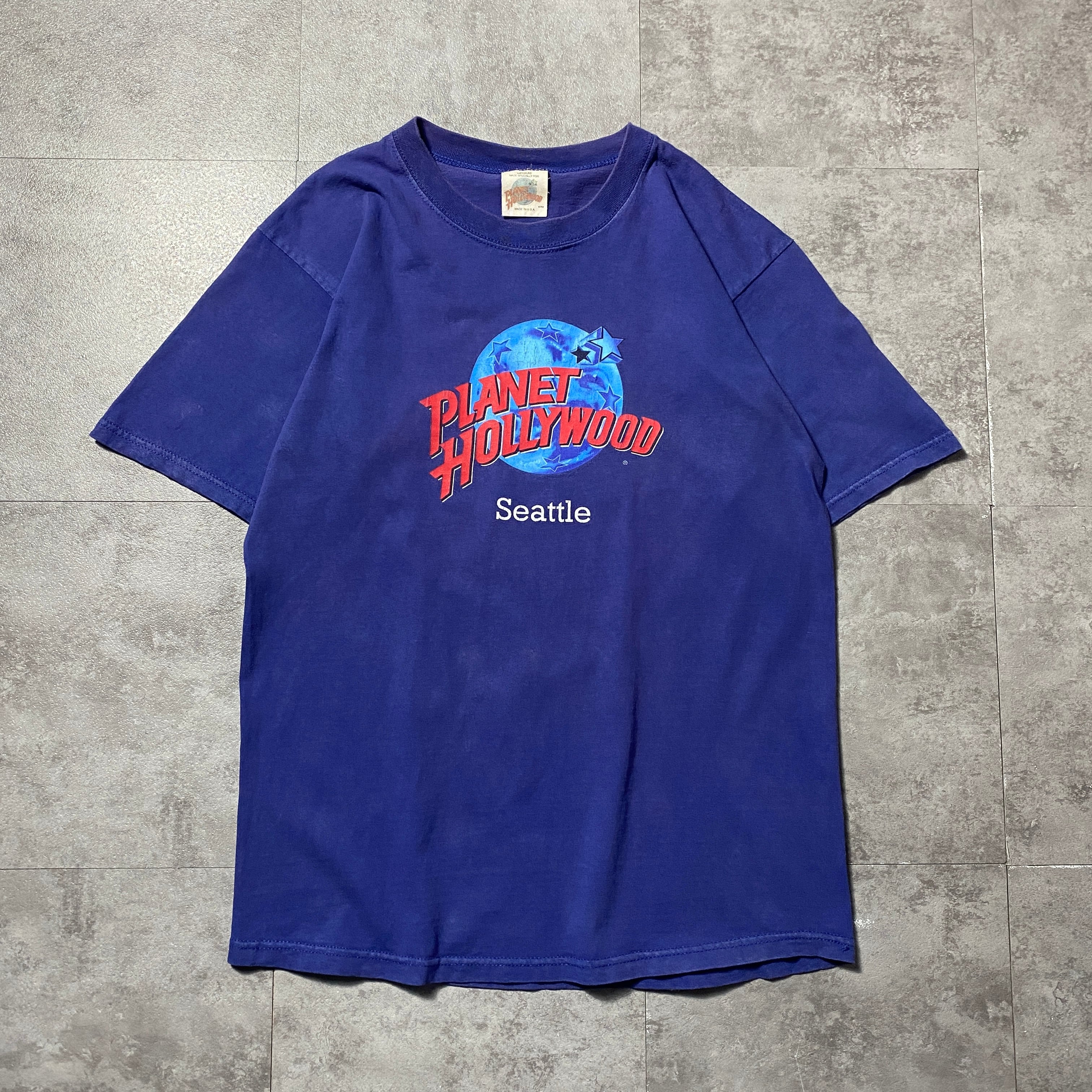 【USA製】90's PLANET HOLLYWOOD Seattle プラネットハリウッド シアトル プリント ネイビー Tシャツ