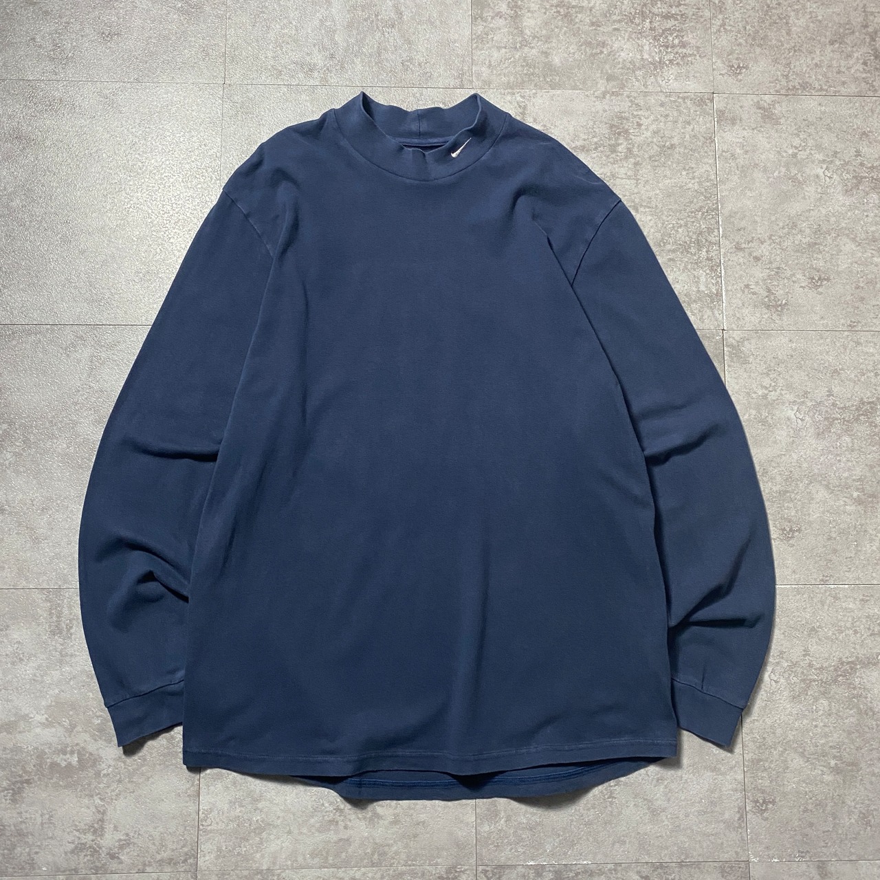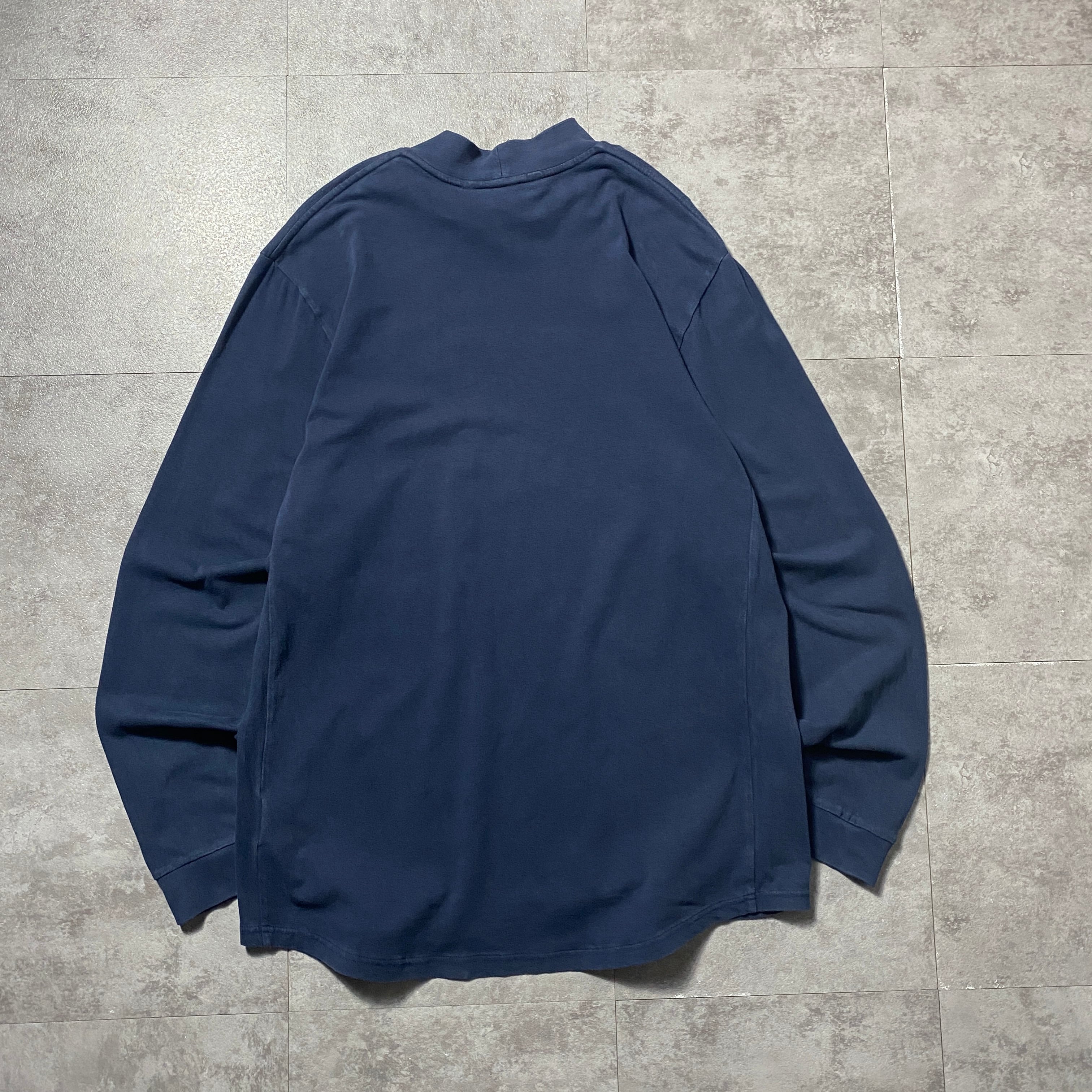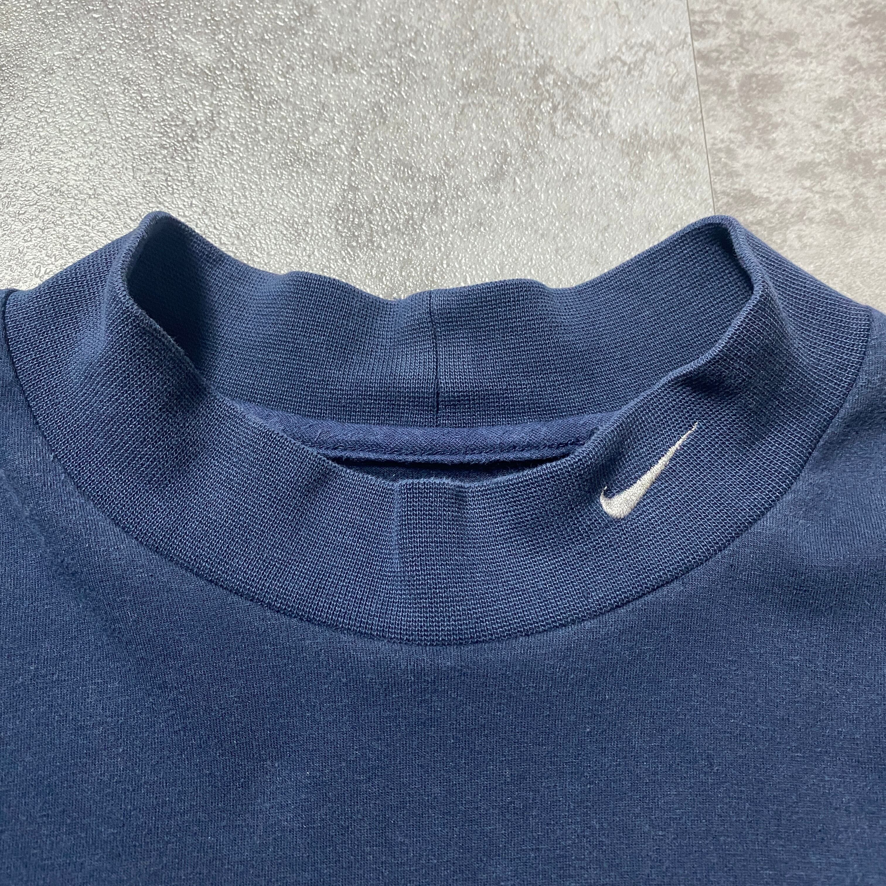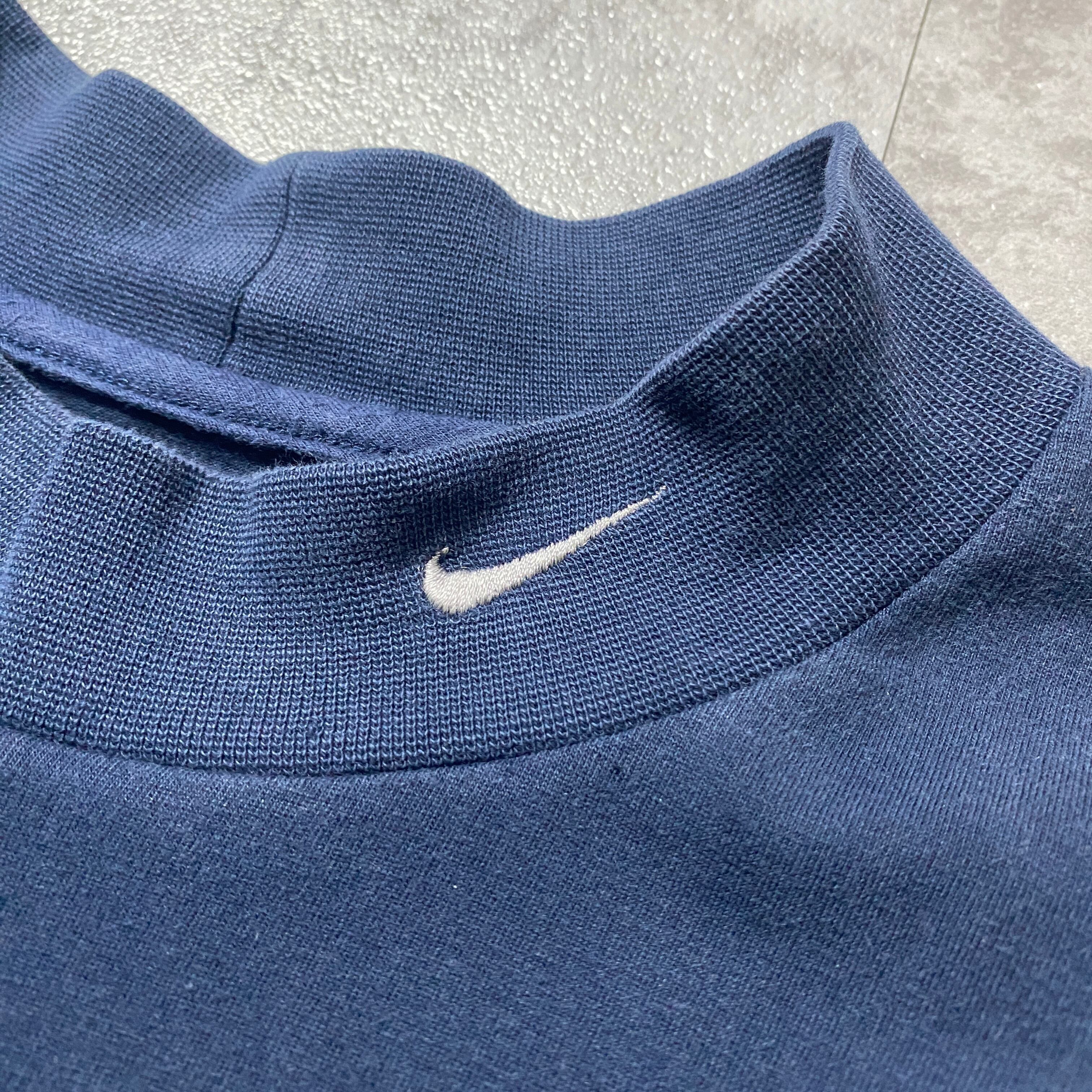 00's NIKE ナイキ ボトルネック スウォッシュ 刺繍ネックロゴ ネイビー Tシャツ ロンT
