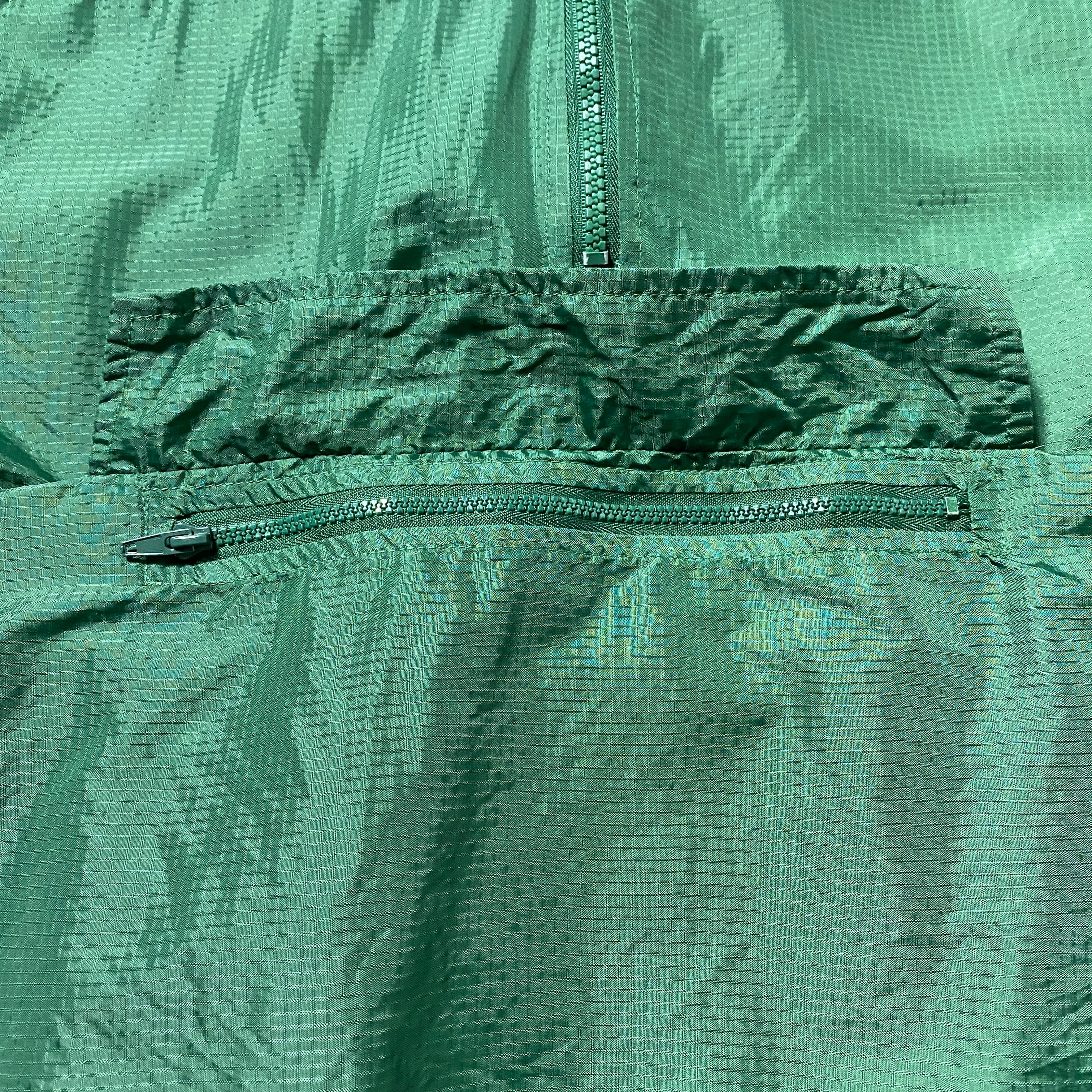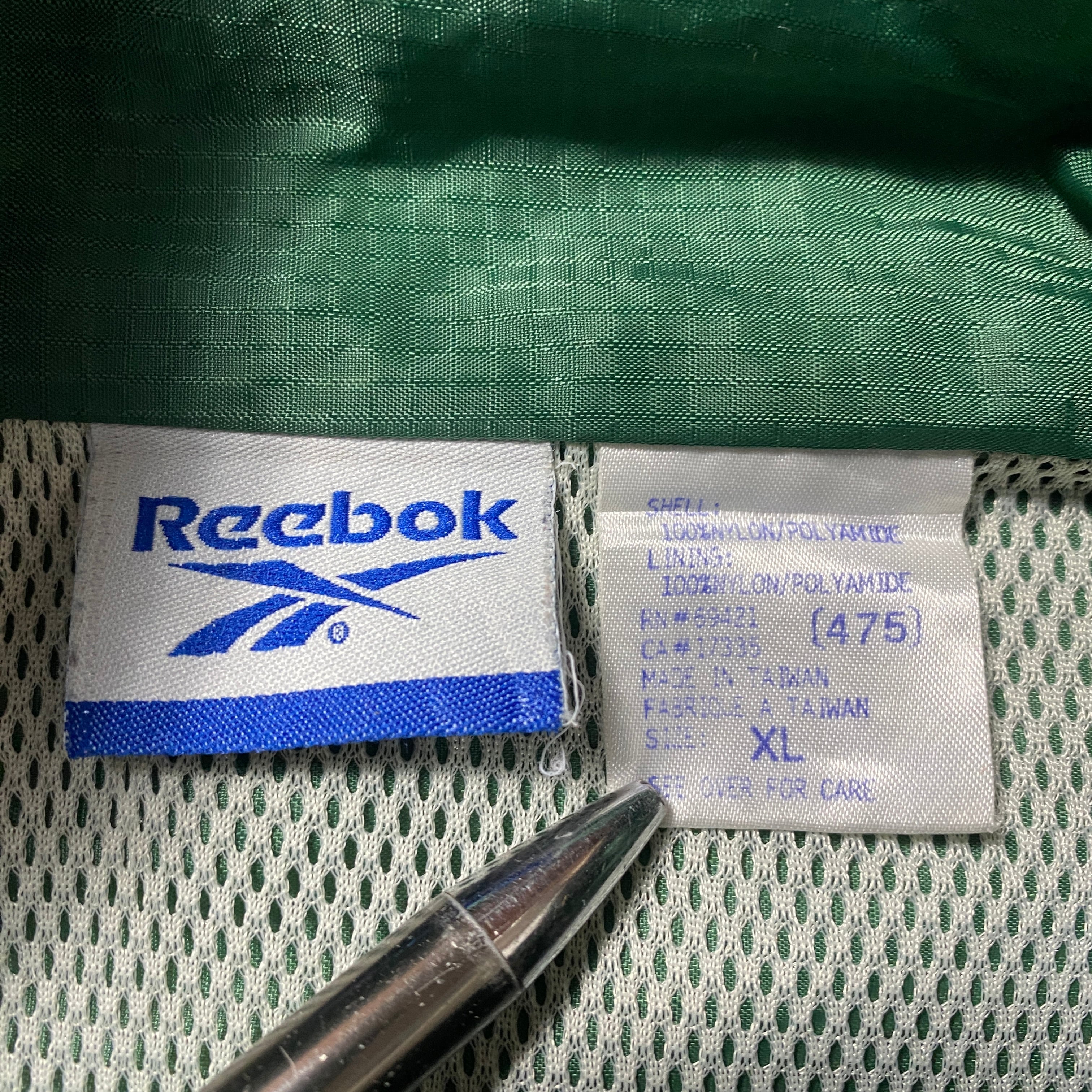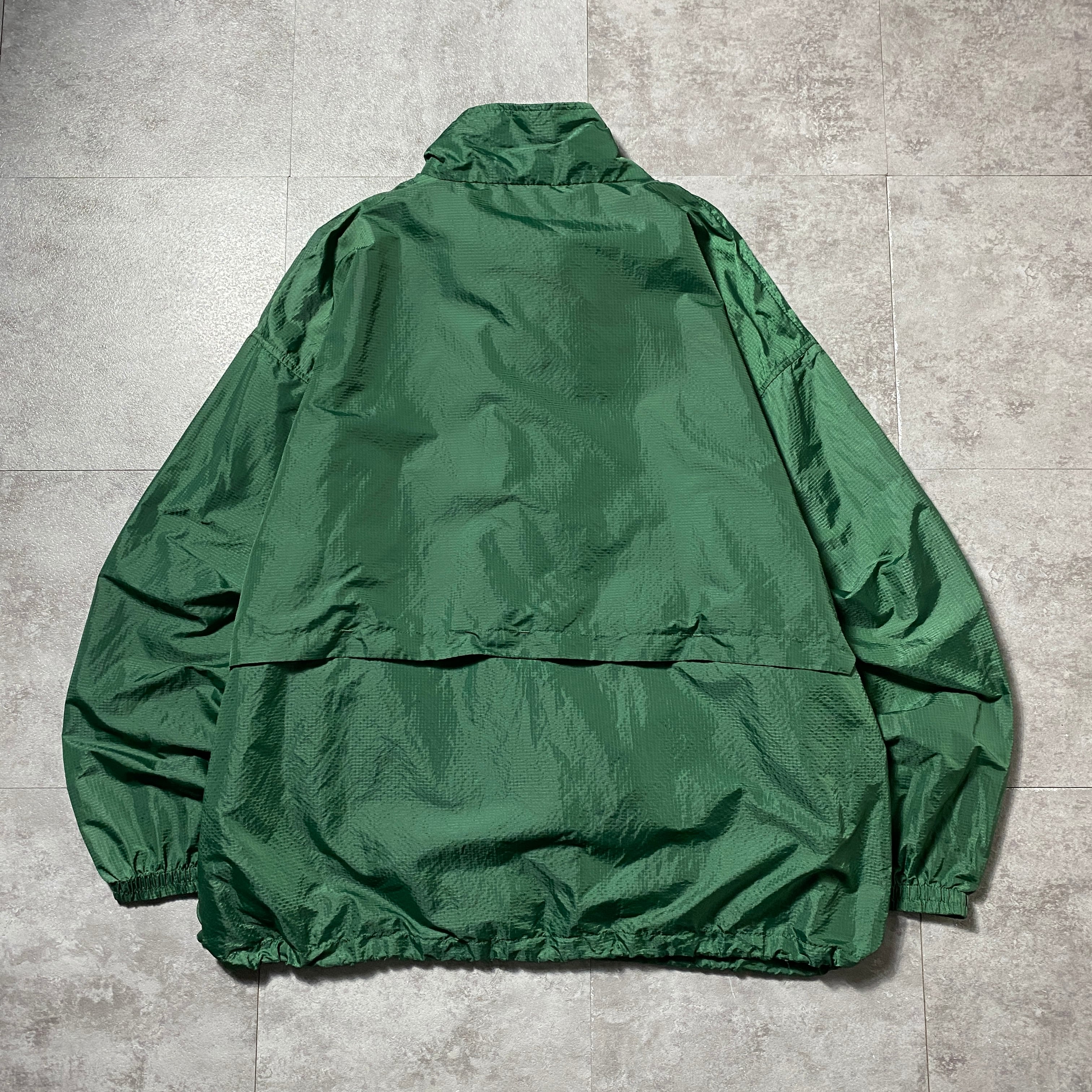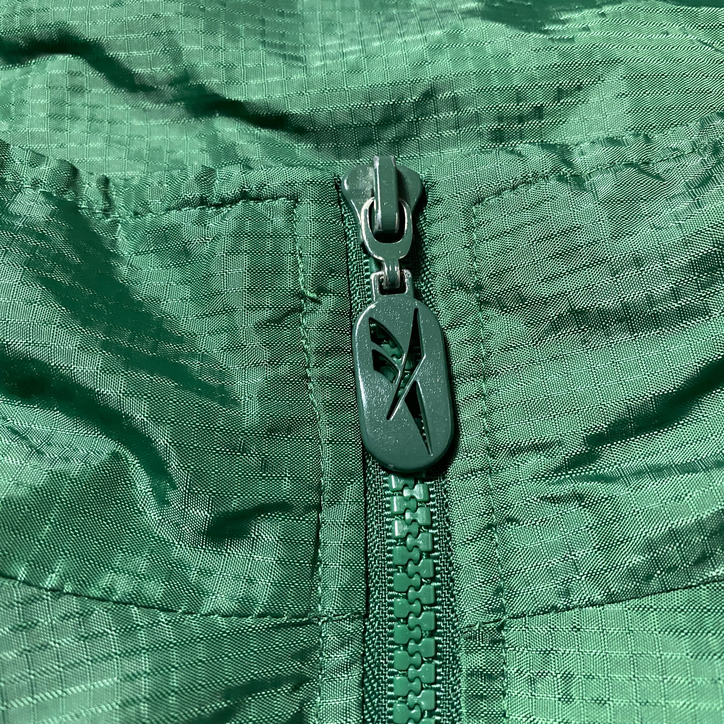 【Size:XL】90's Reebok リーボック ハーフジップ 刺繍ワンポイント ベクターロゴ グリーン ナイロンプルオーバー
