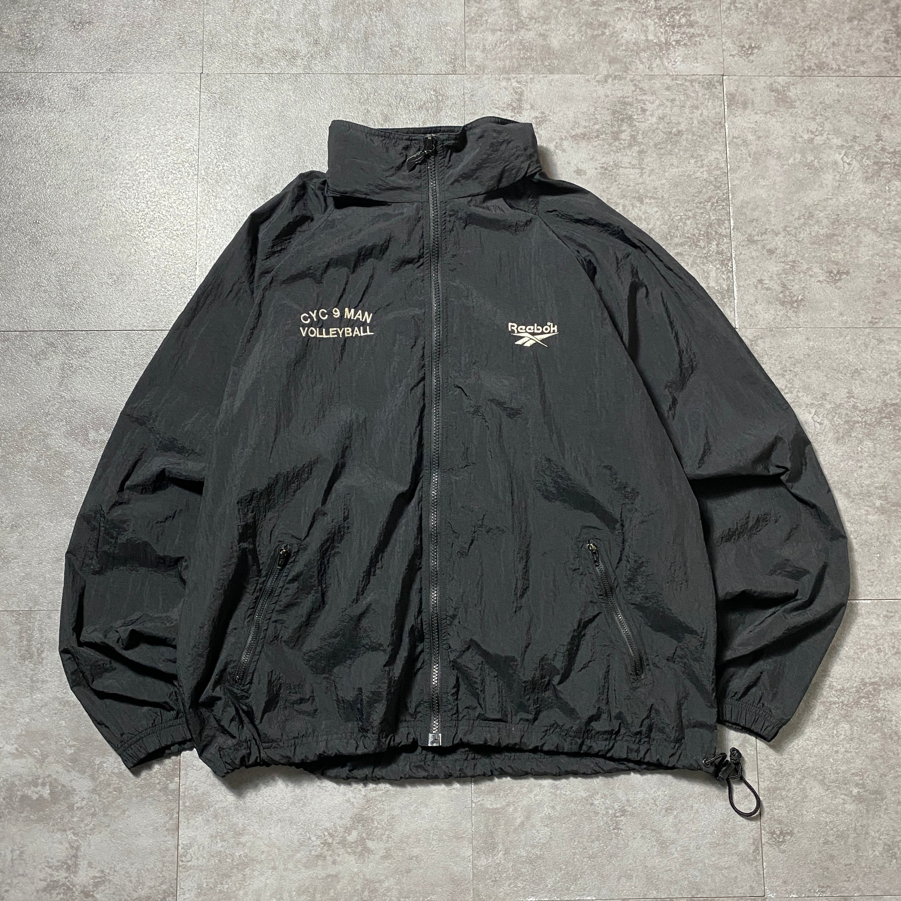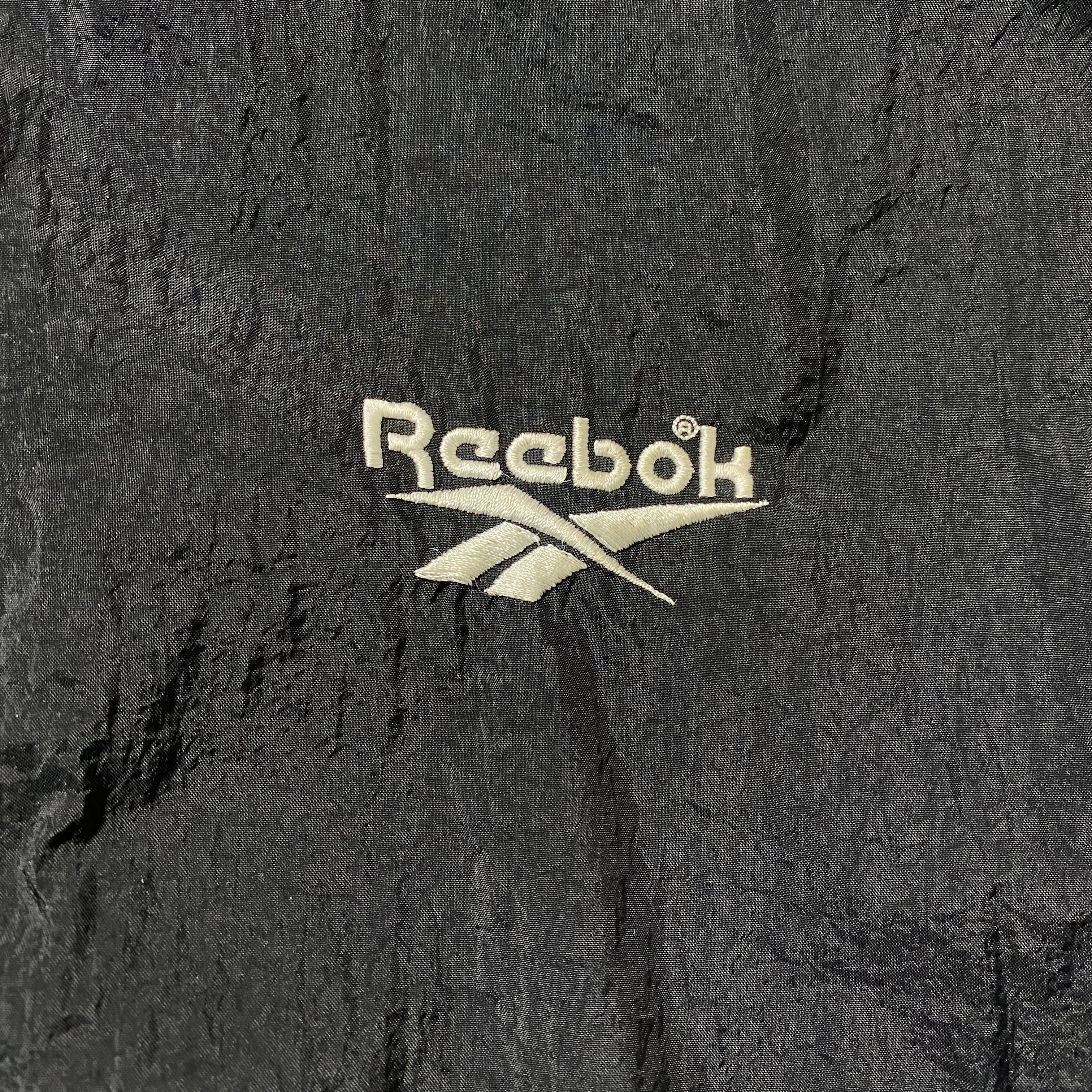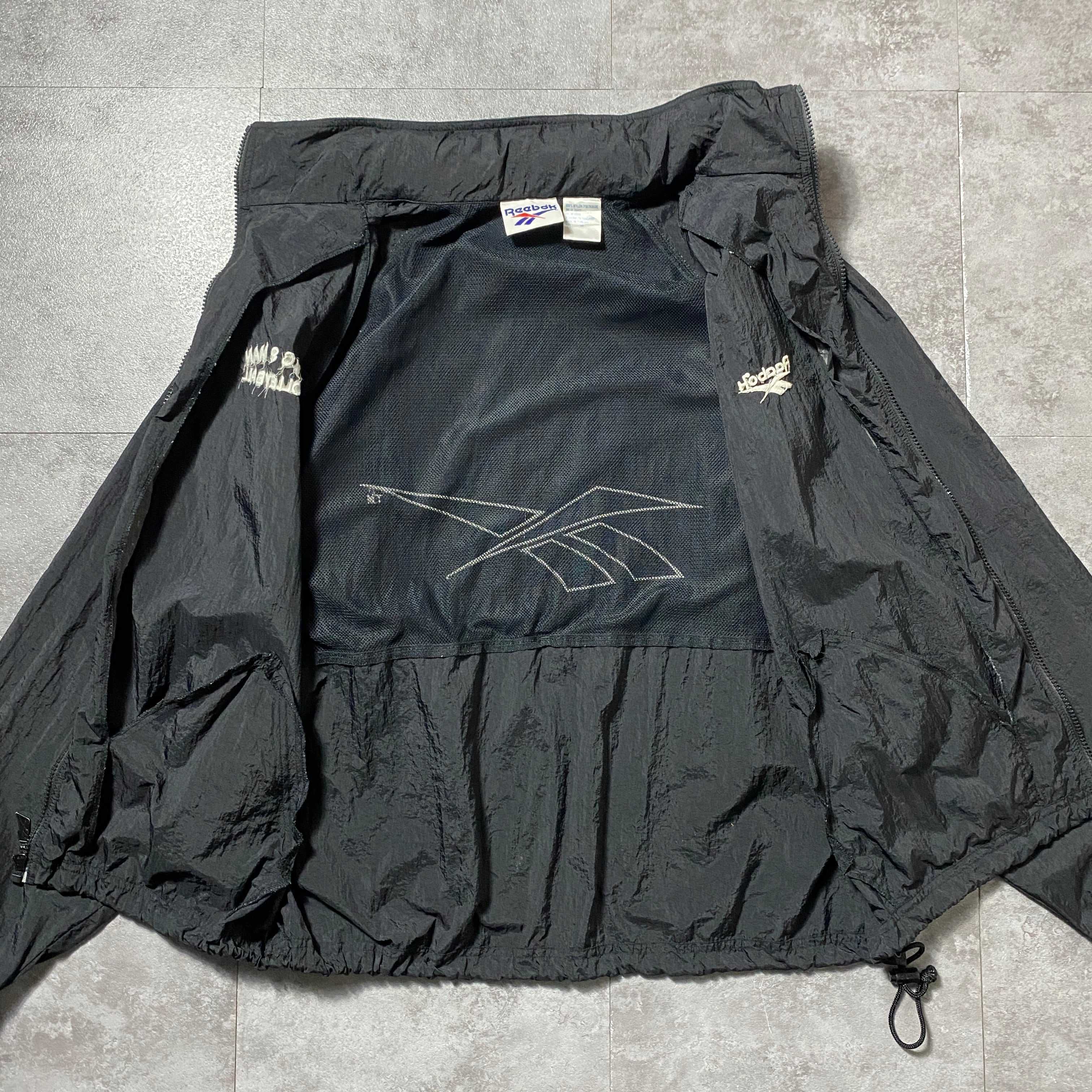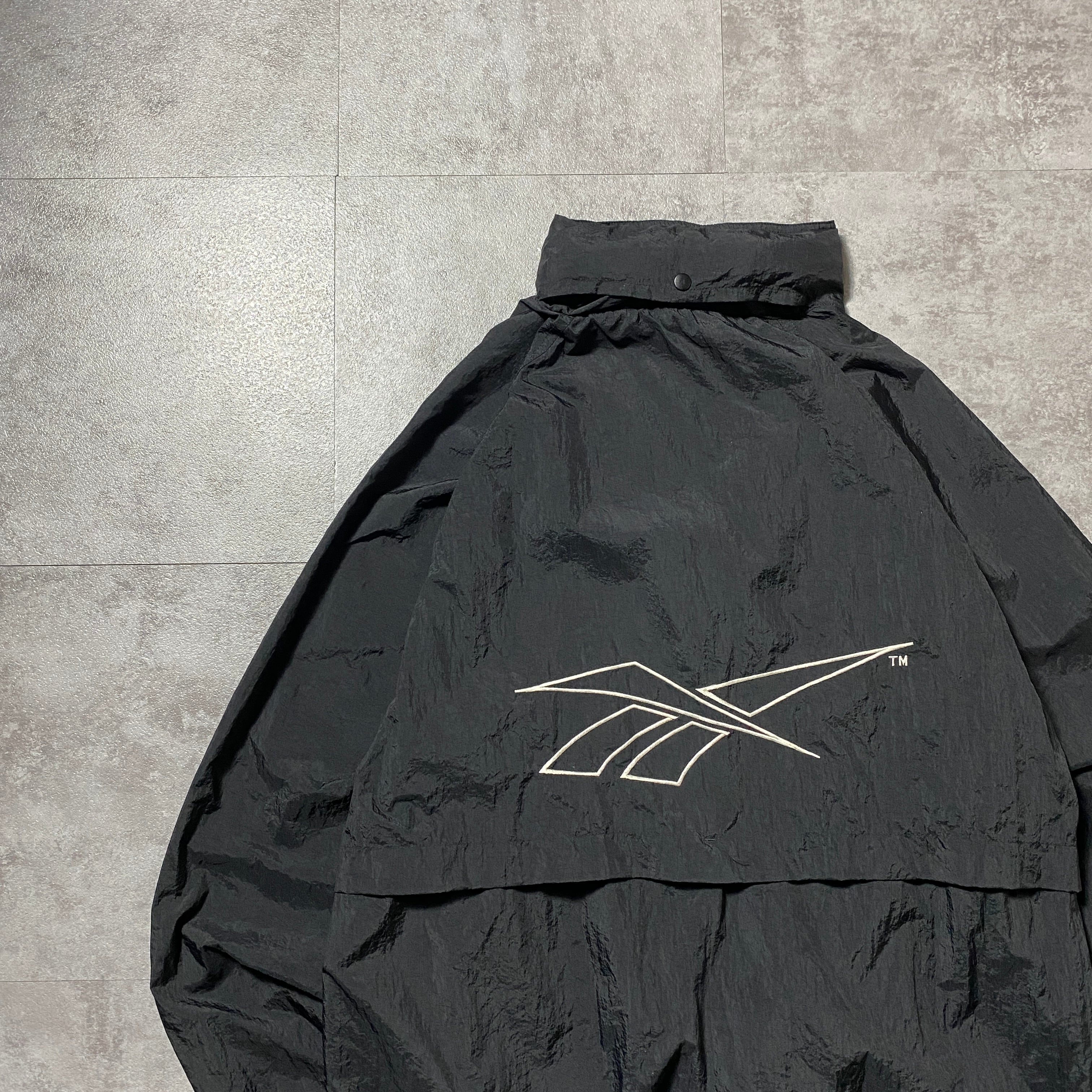 90's Reebok リーボック 刺繍両面ロゴ 薄手 ブラック フード格納 ナイロンジャケット