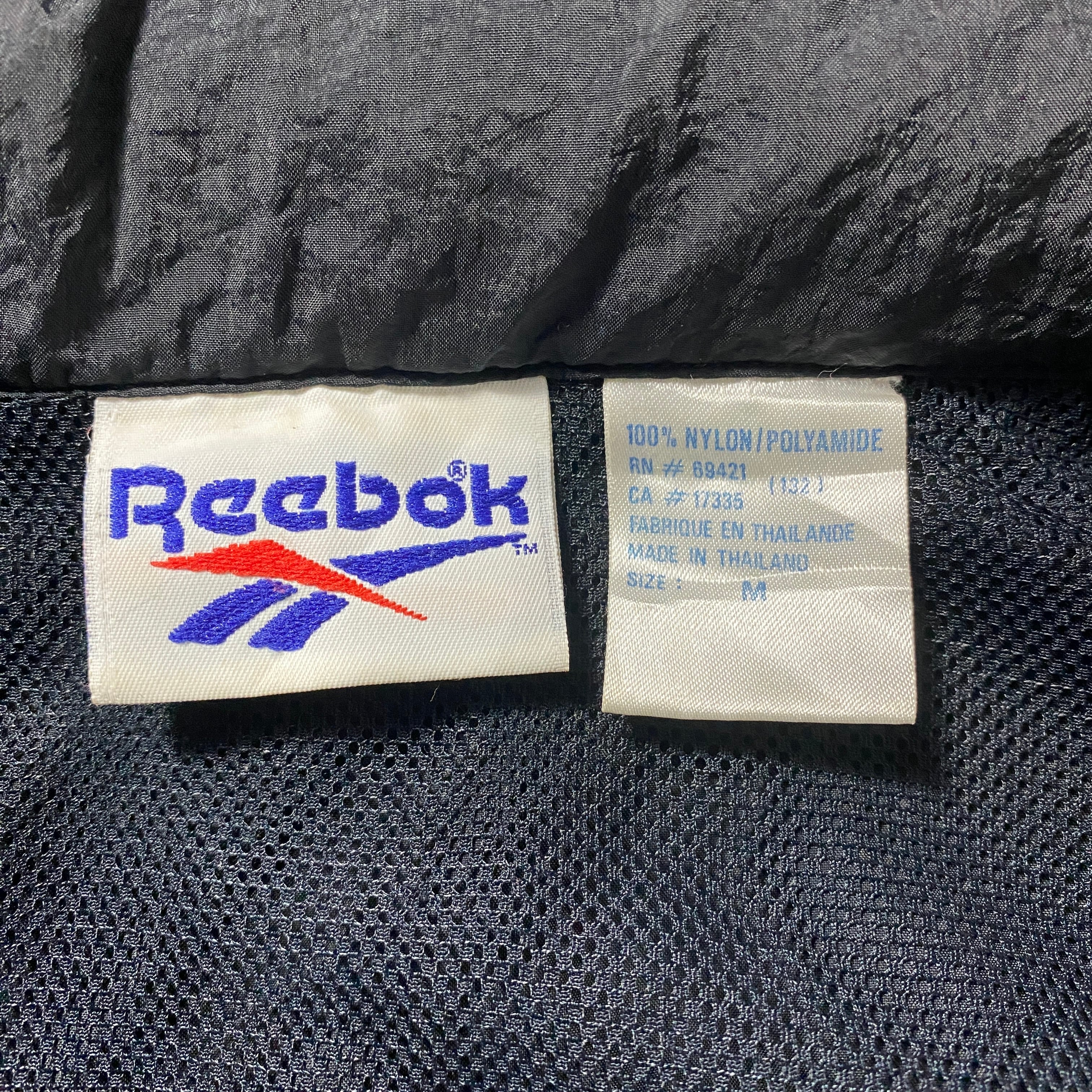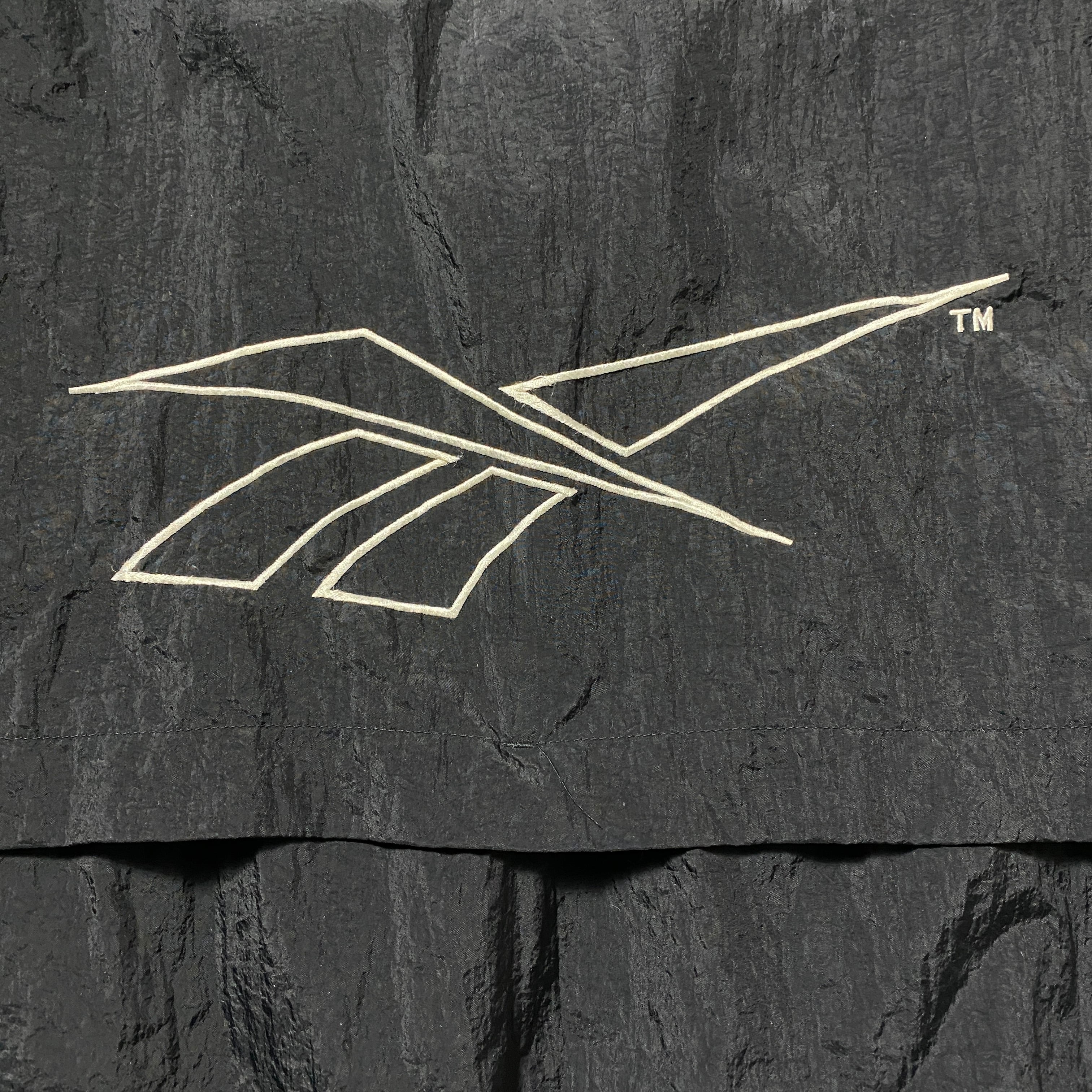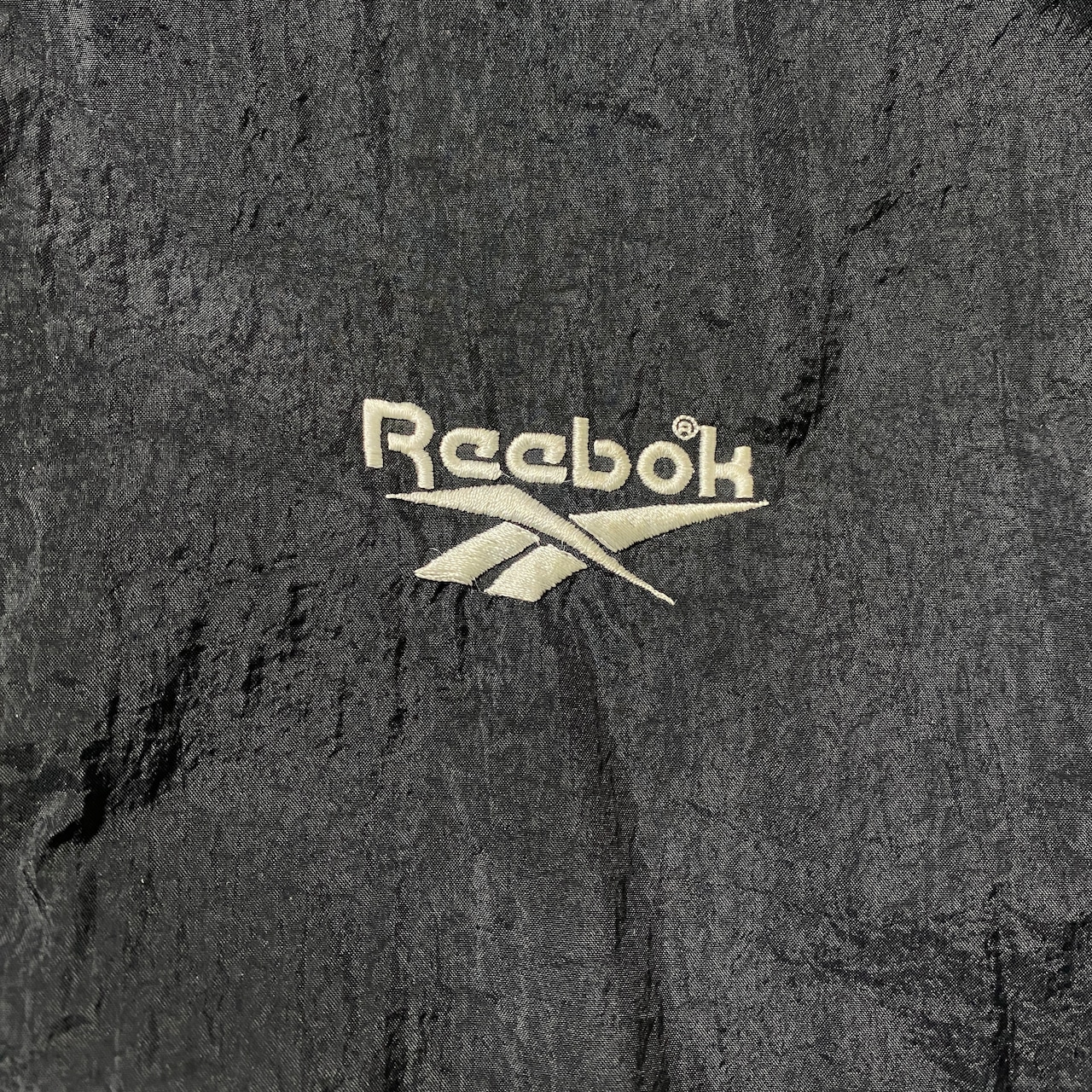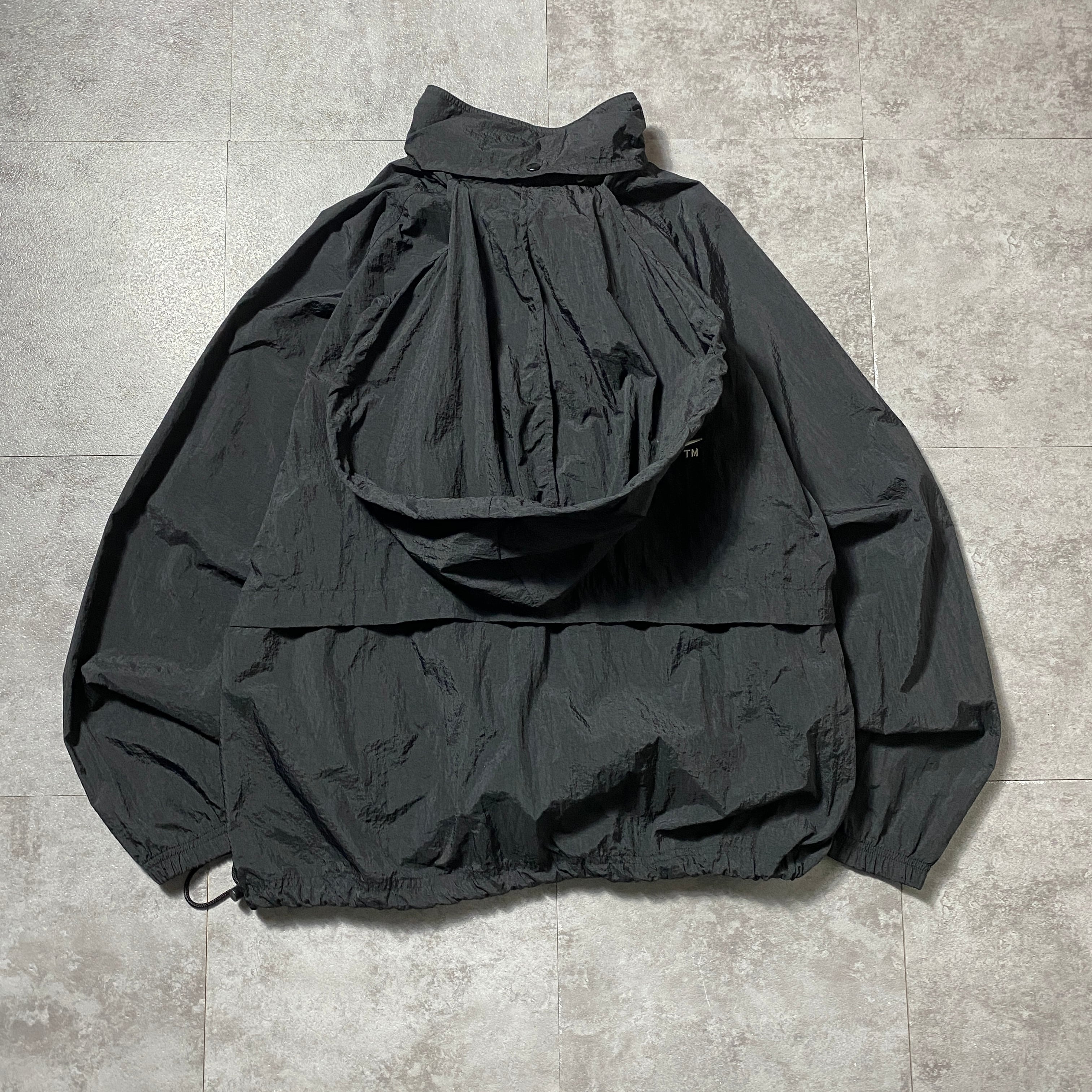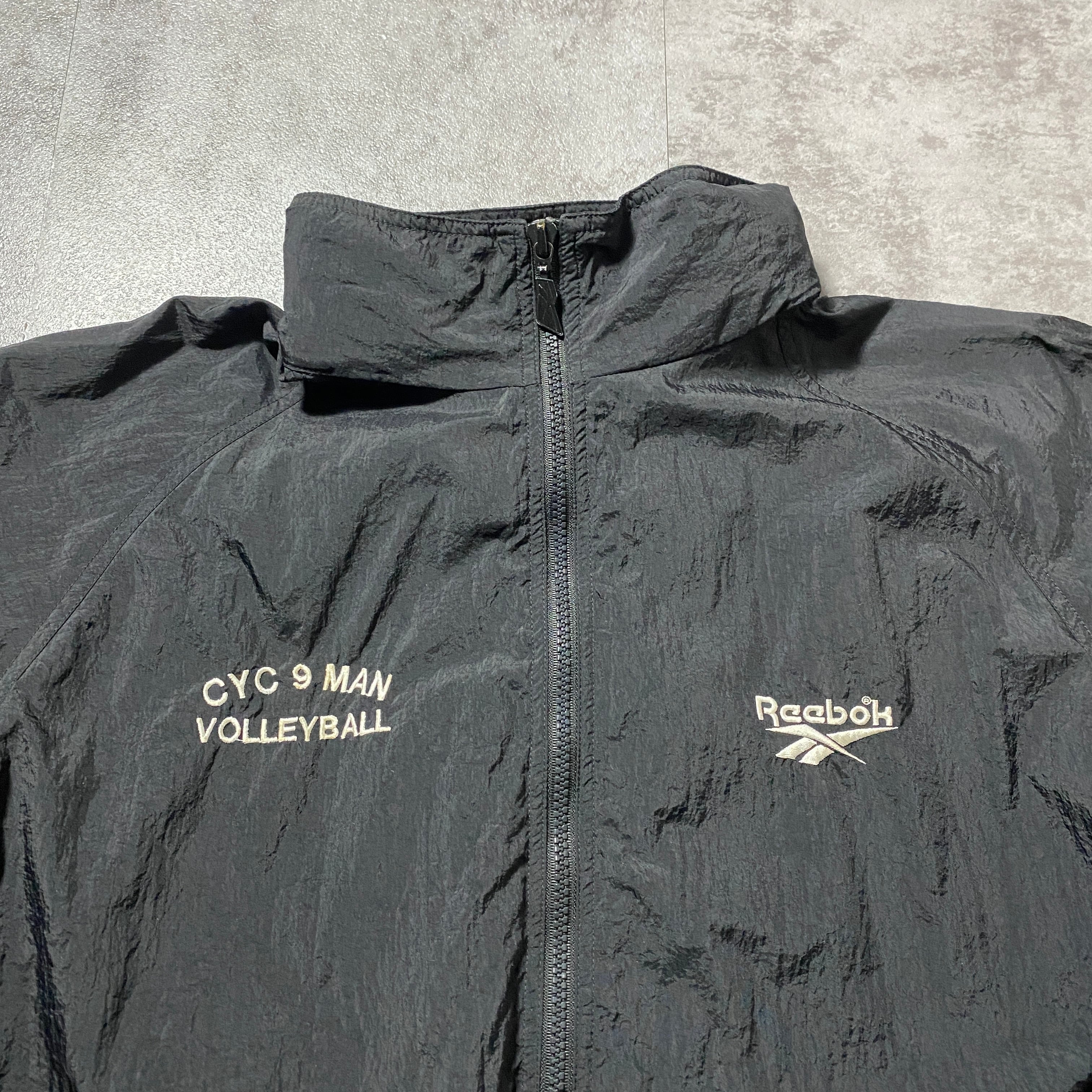 90's Reebok リーボック 刺繍両面ロゴ 薄手 ブラック フード格納 ナイロンジャケット