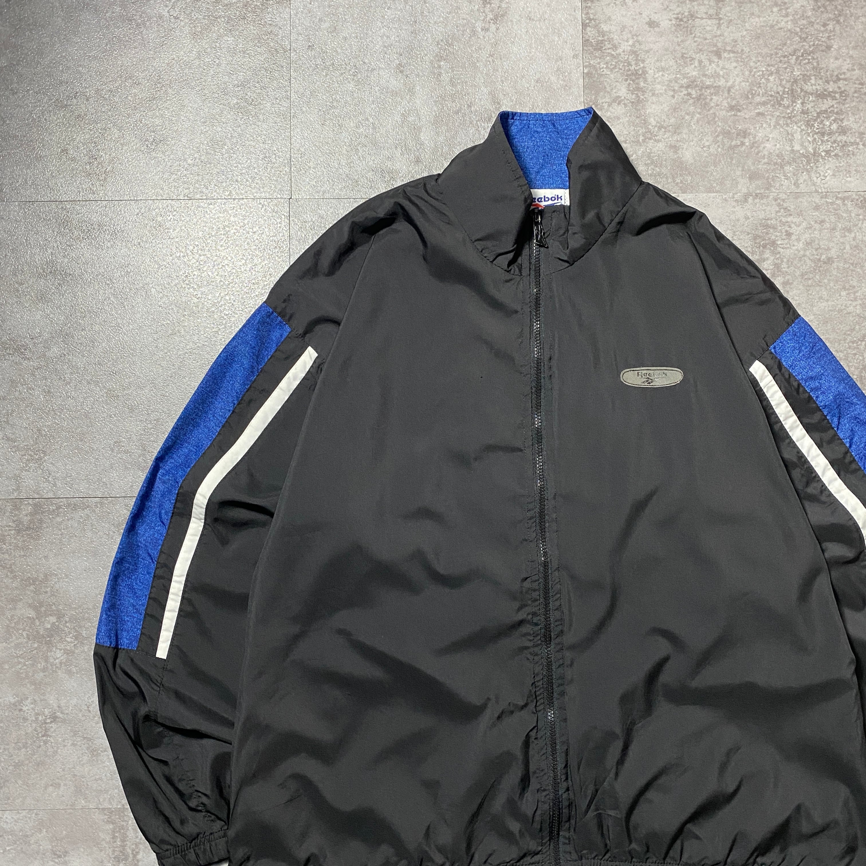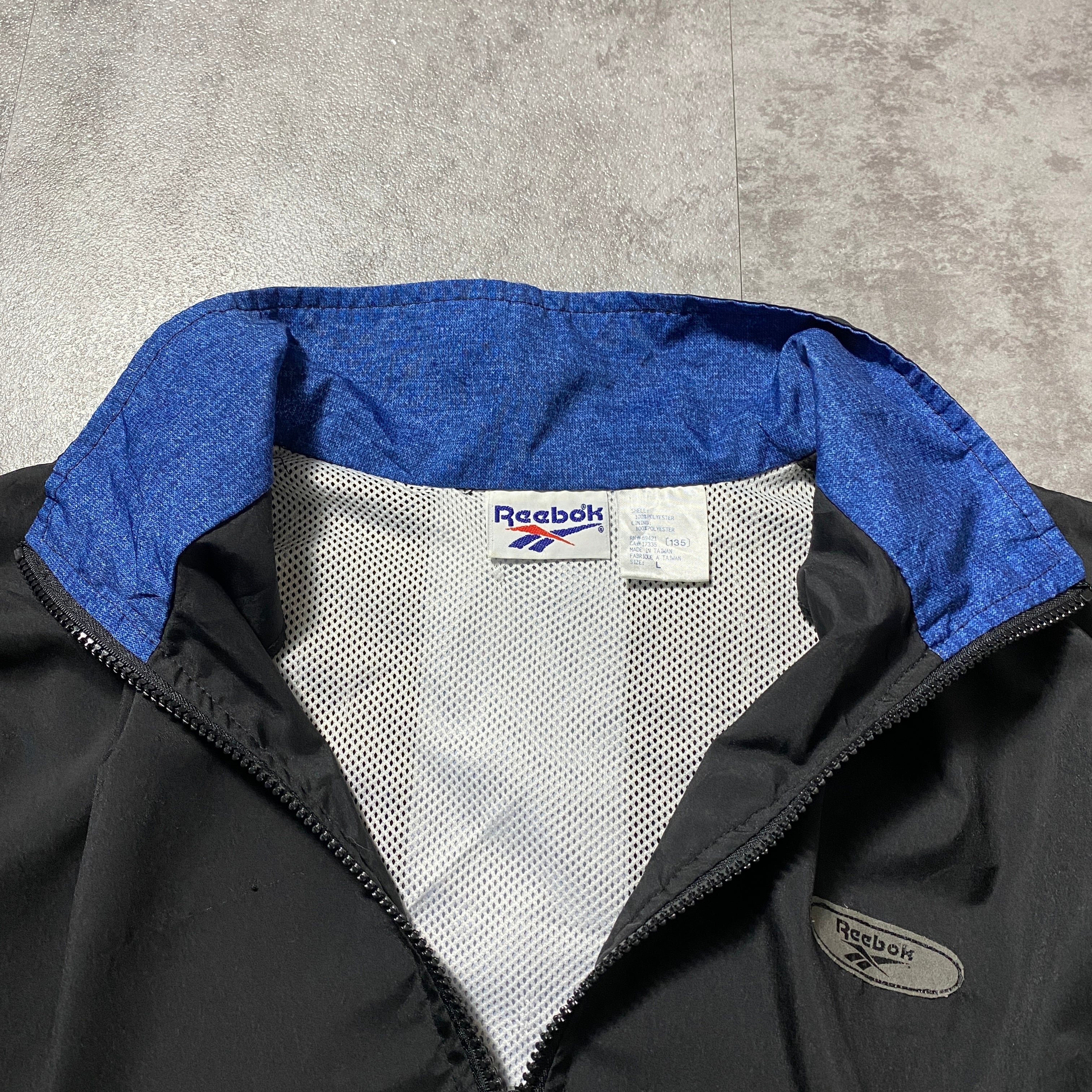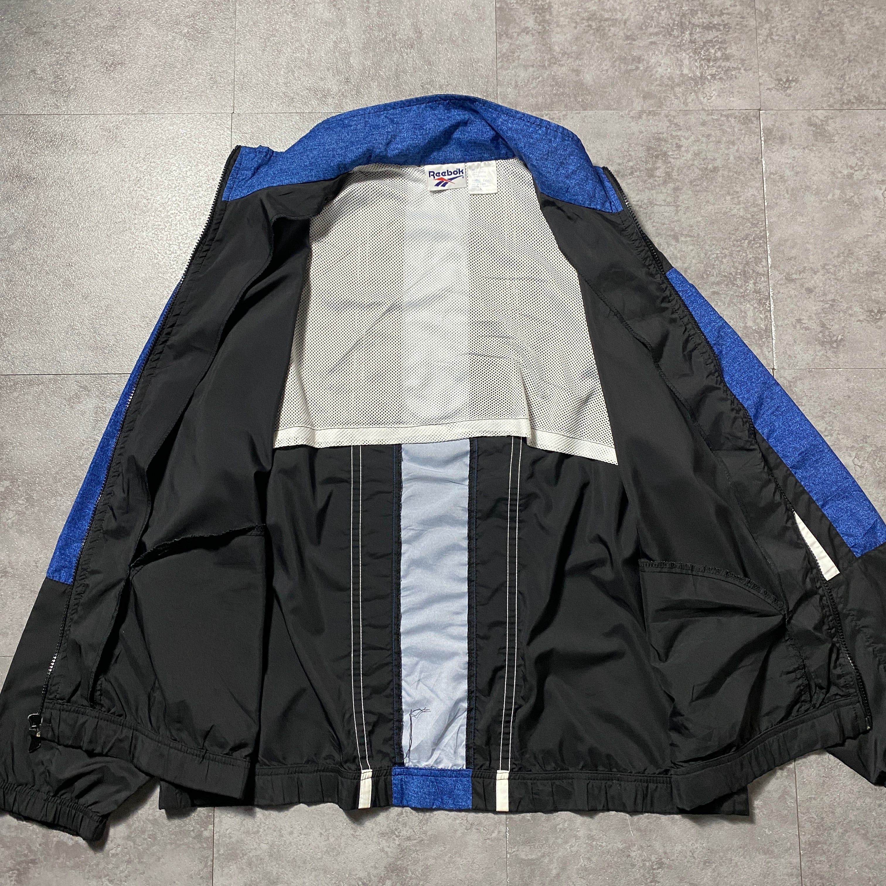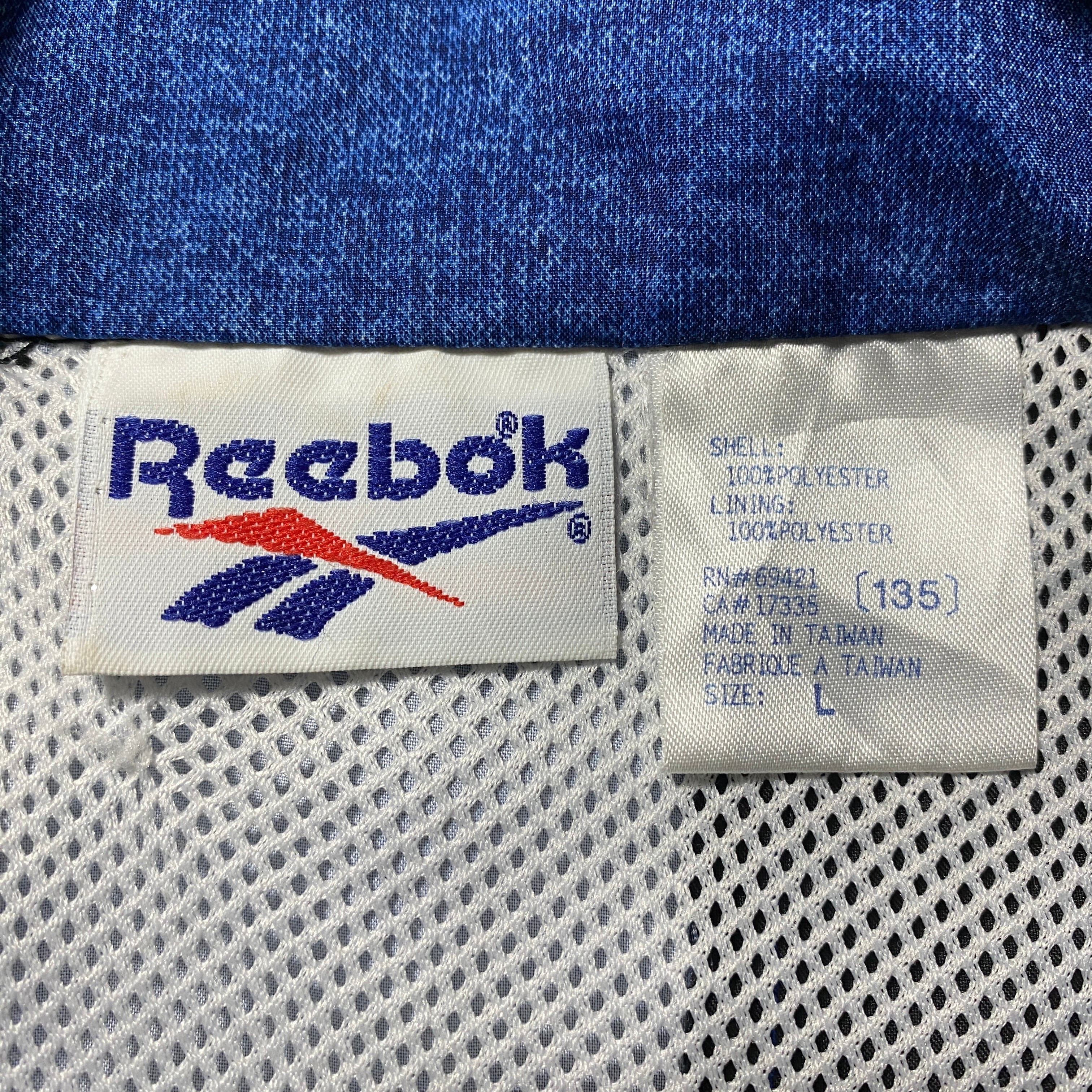 90's Reebok リーボック ワンポイント パッチロゴ デニム風プリント切替 ナイロンジャケット