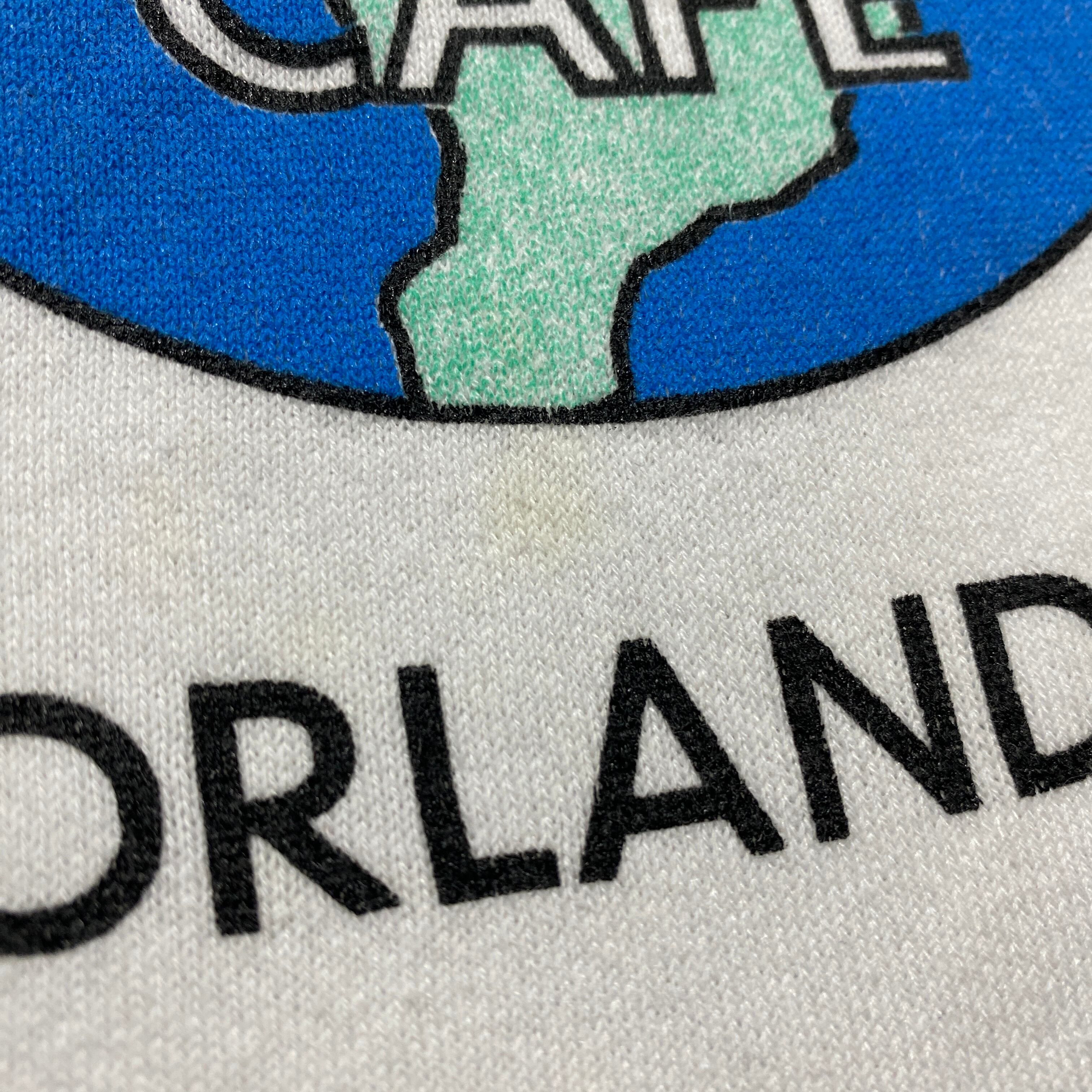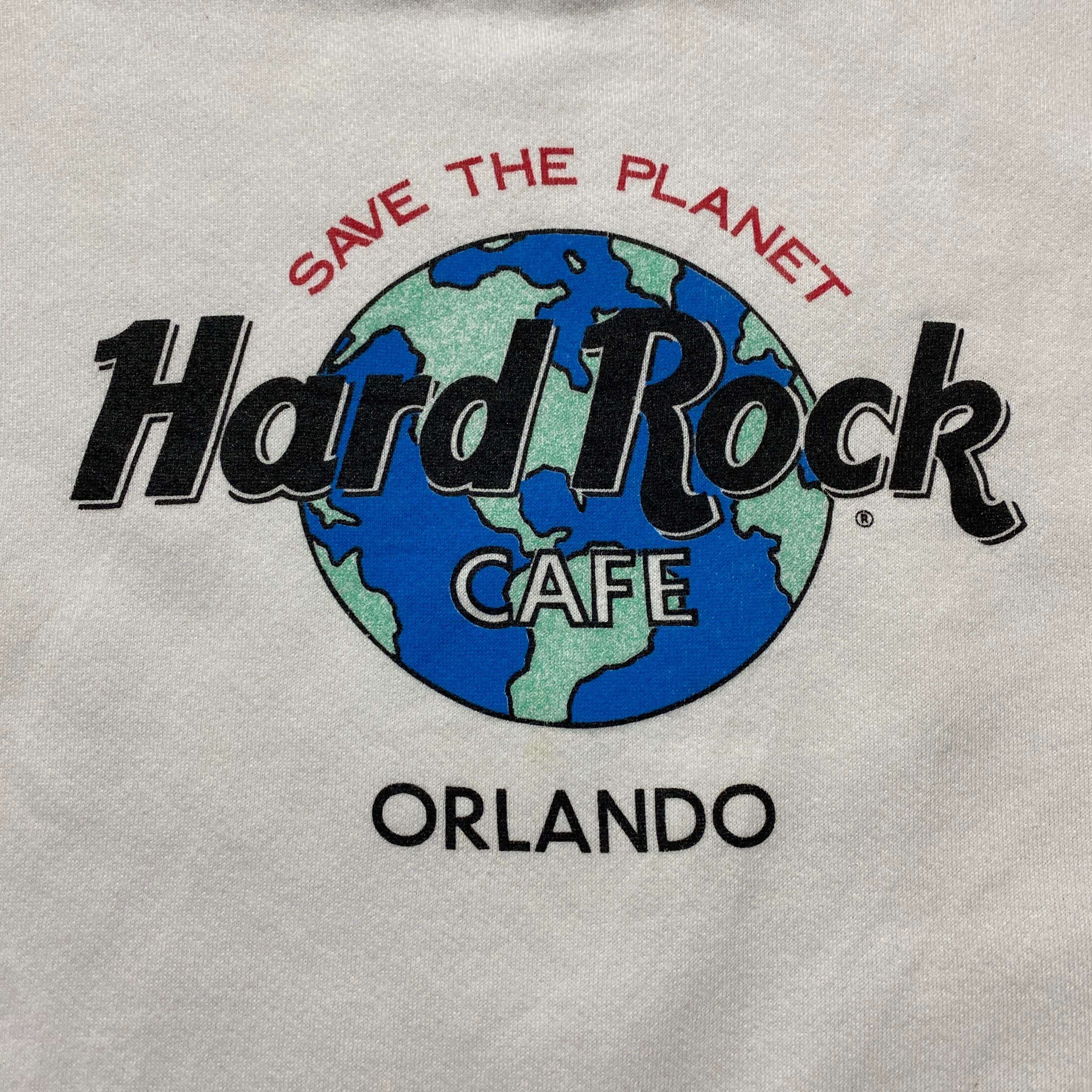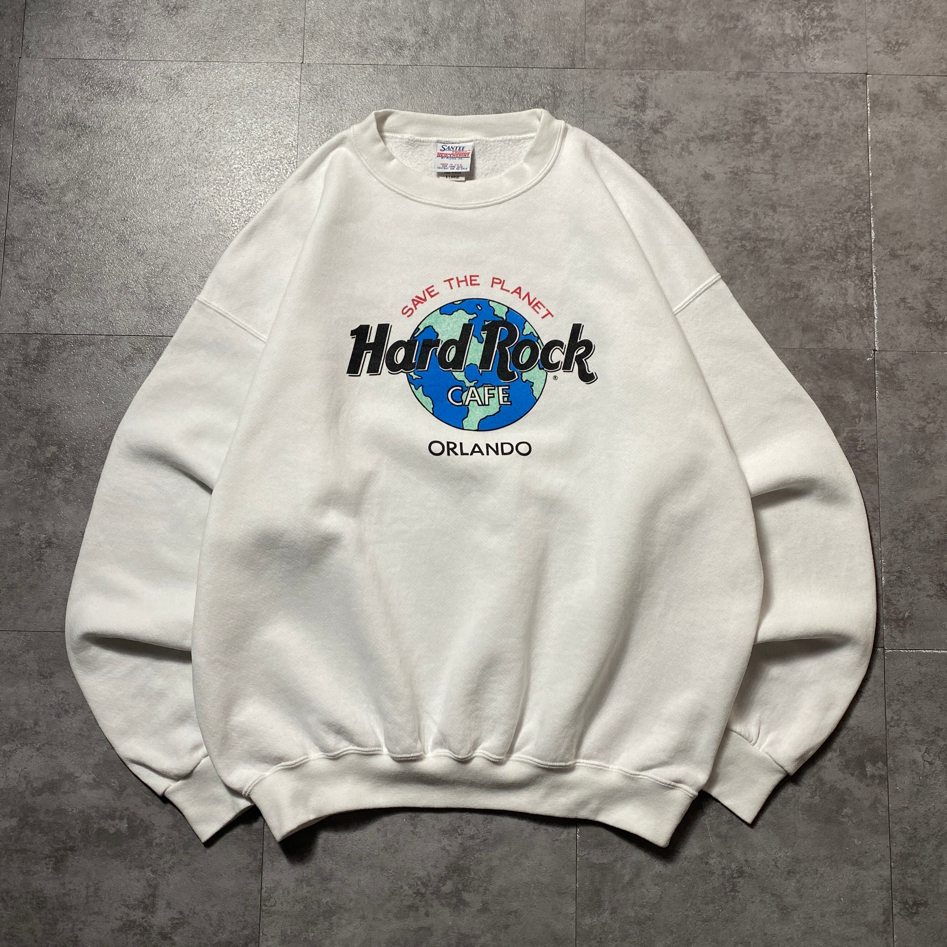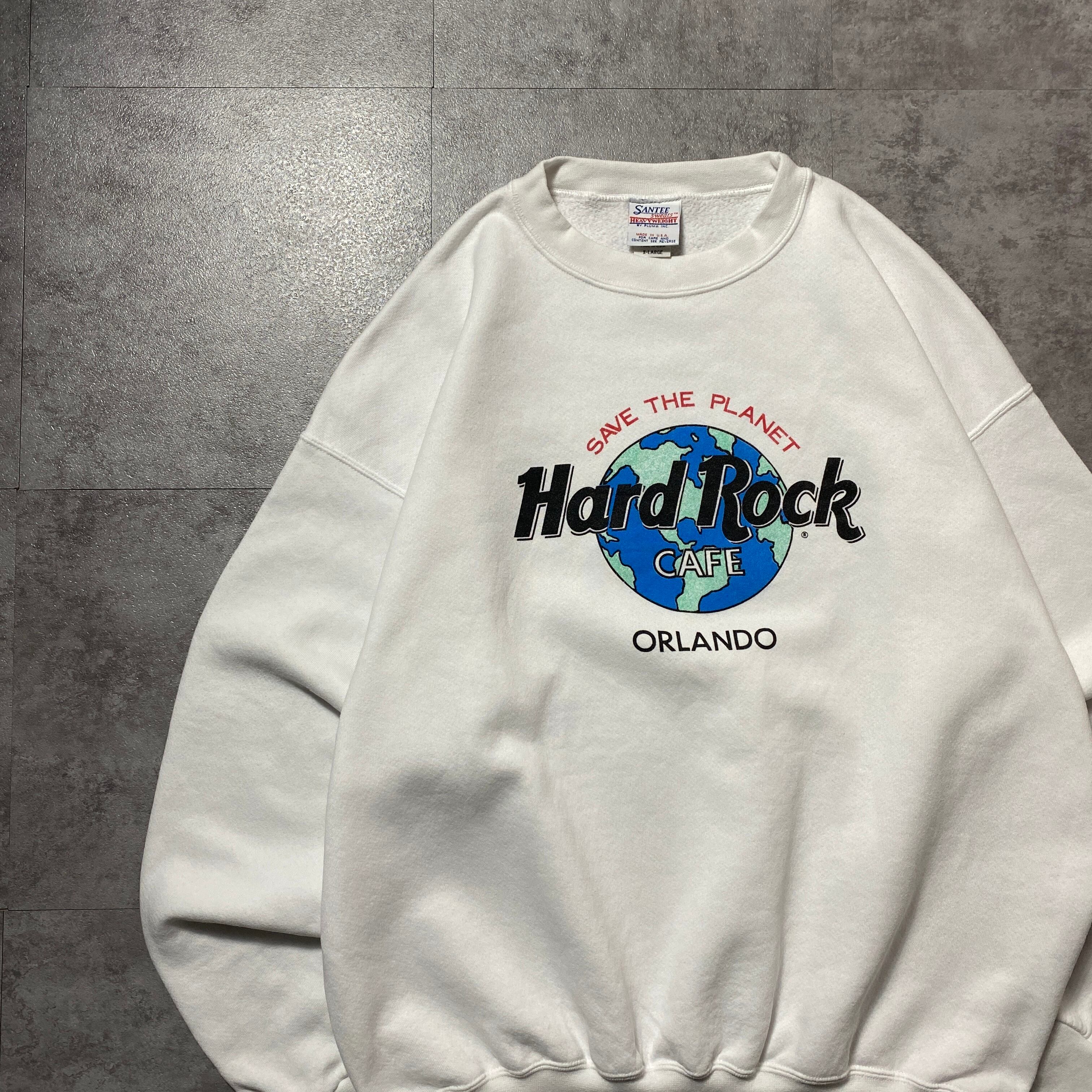 【USA製】90's SANTEE Sweats Hard Rock Cafe ORLAND ハードロックカフェ アースプリント ホワイト 白 スウェット トレーナー