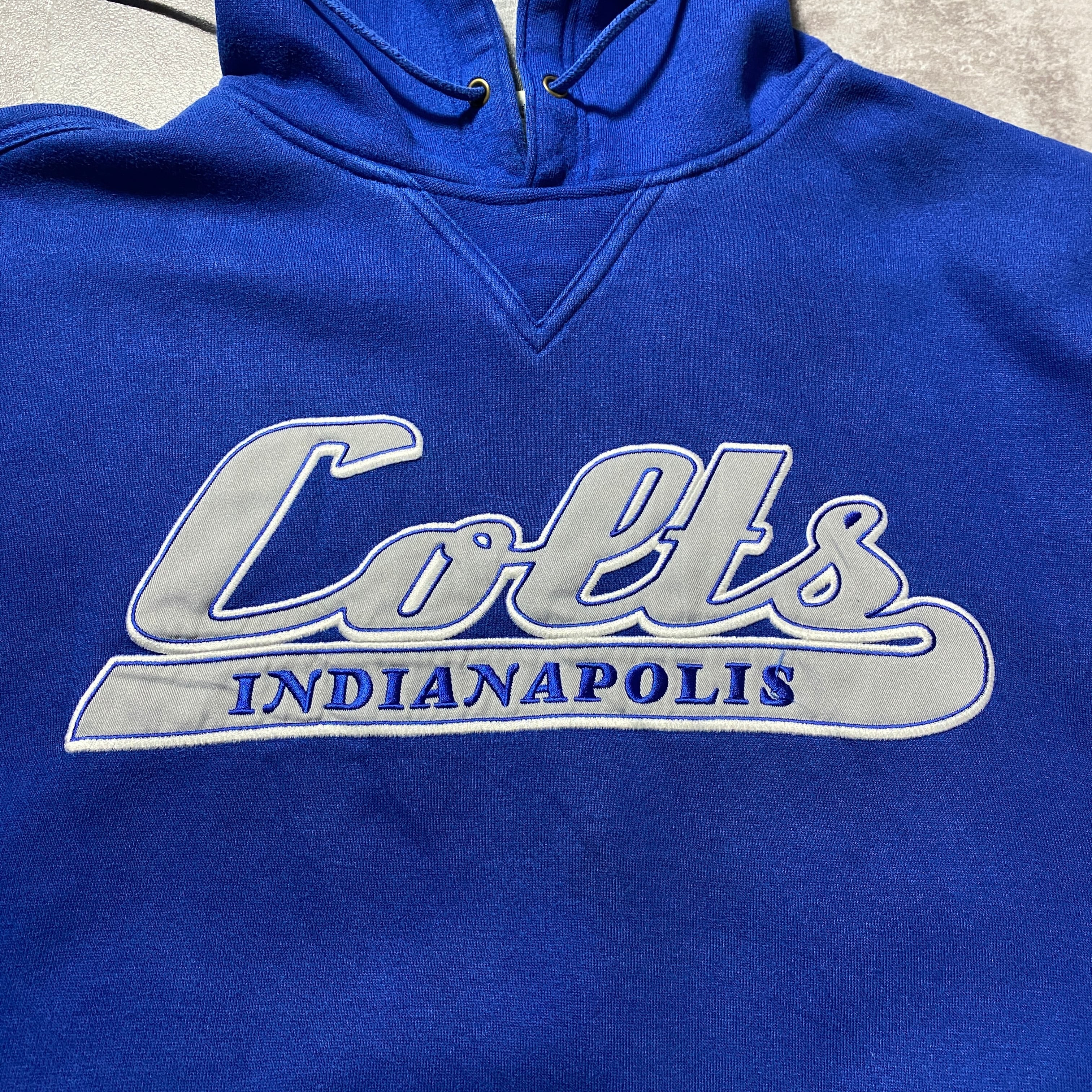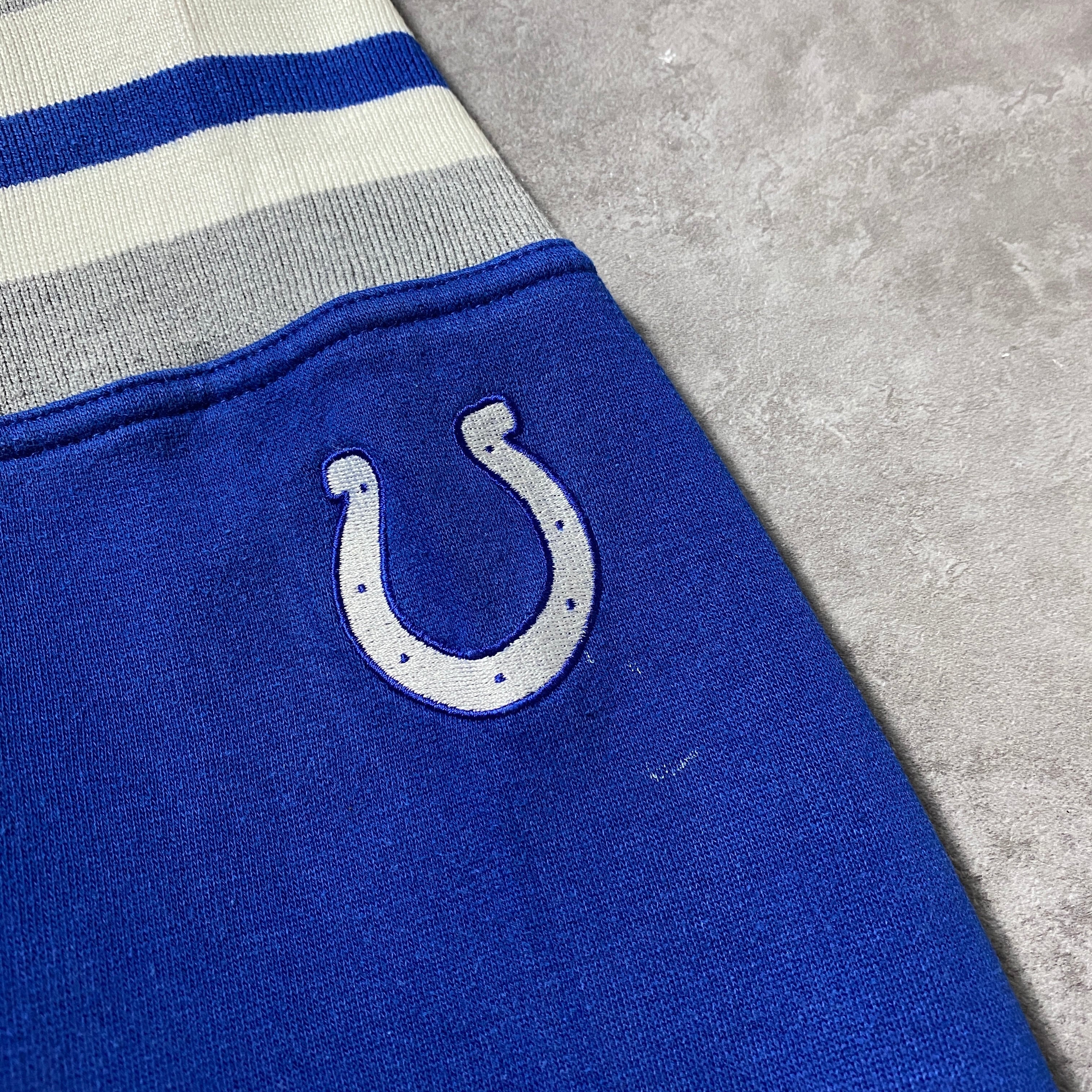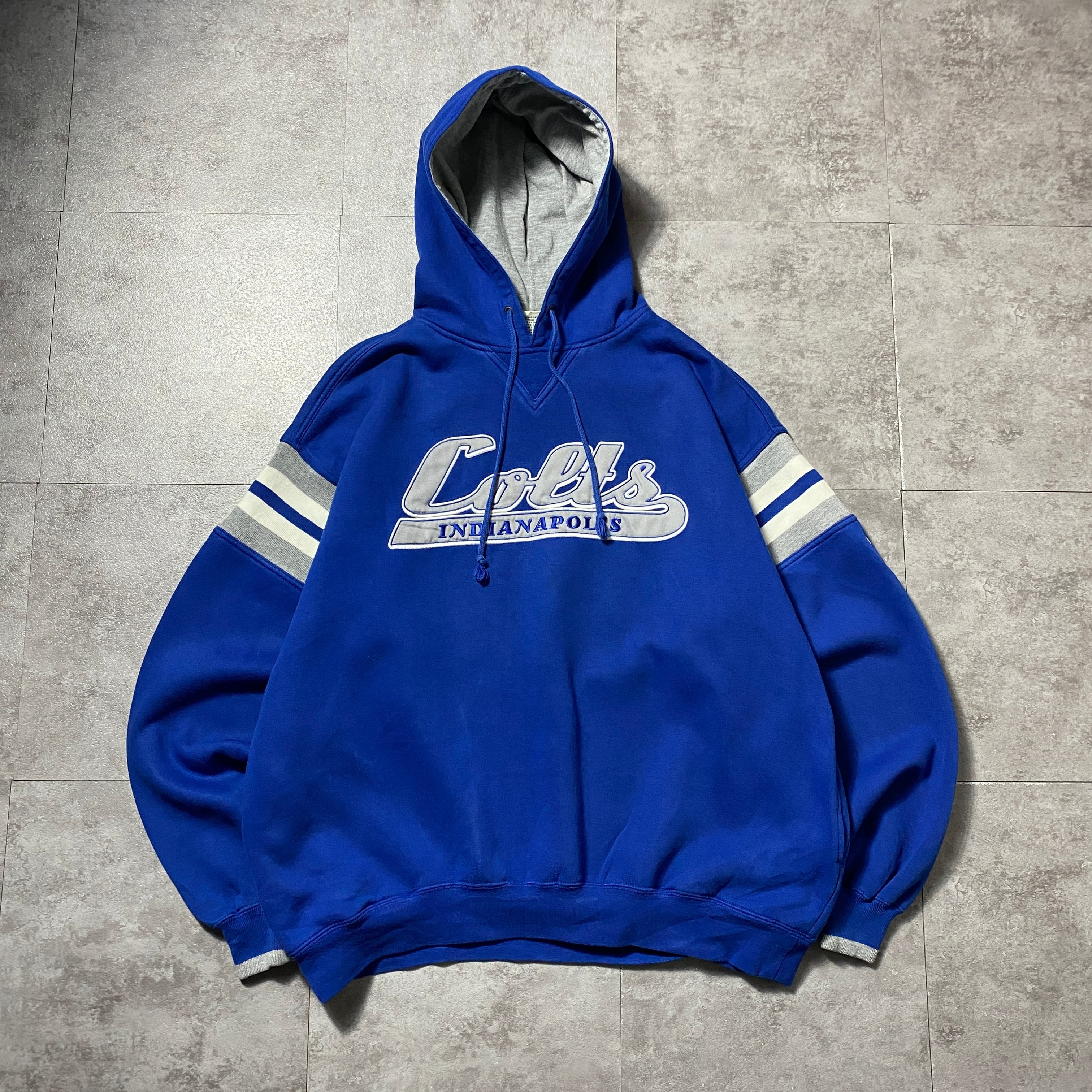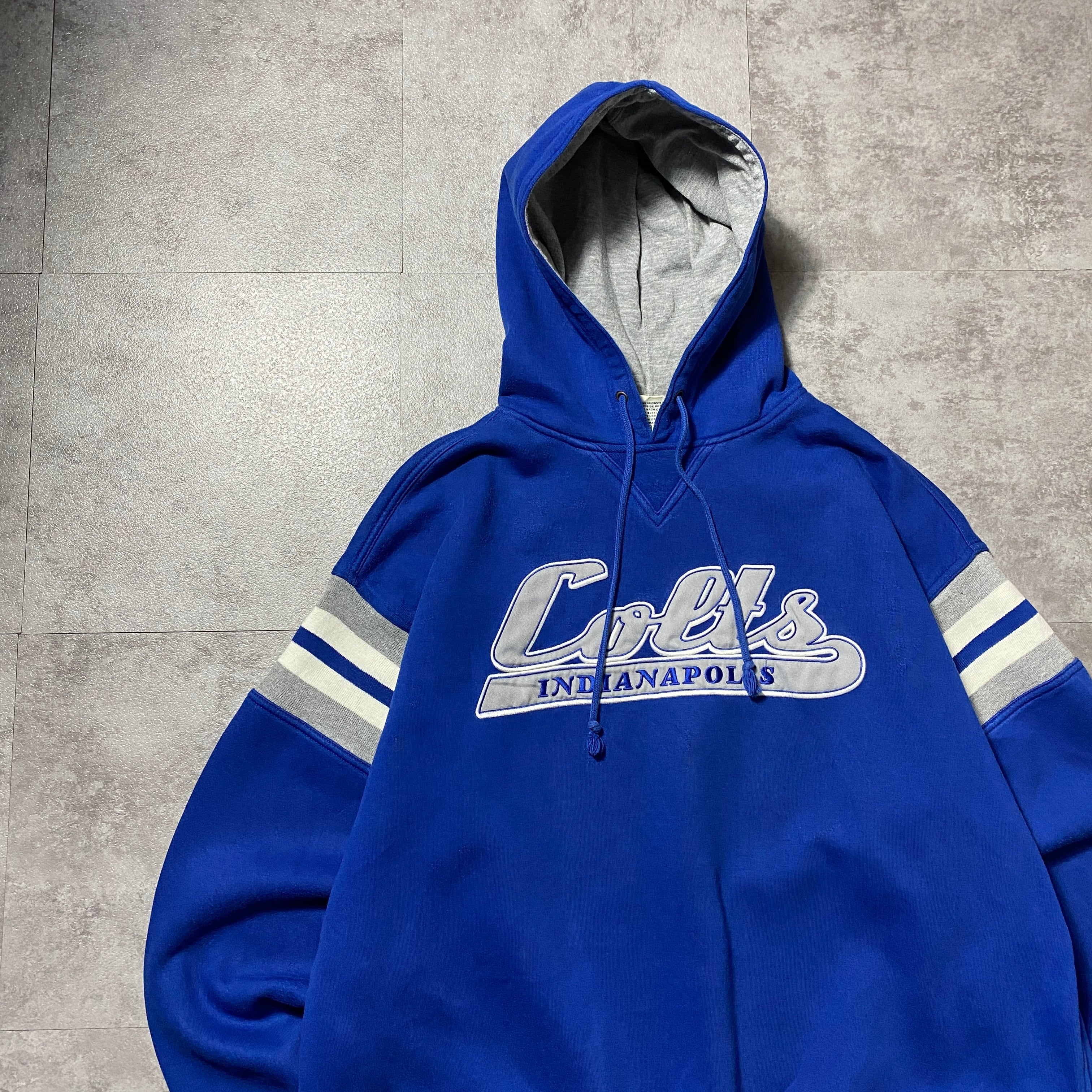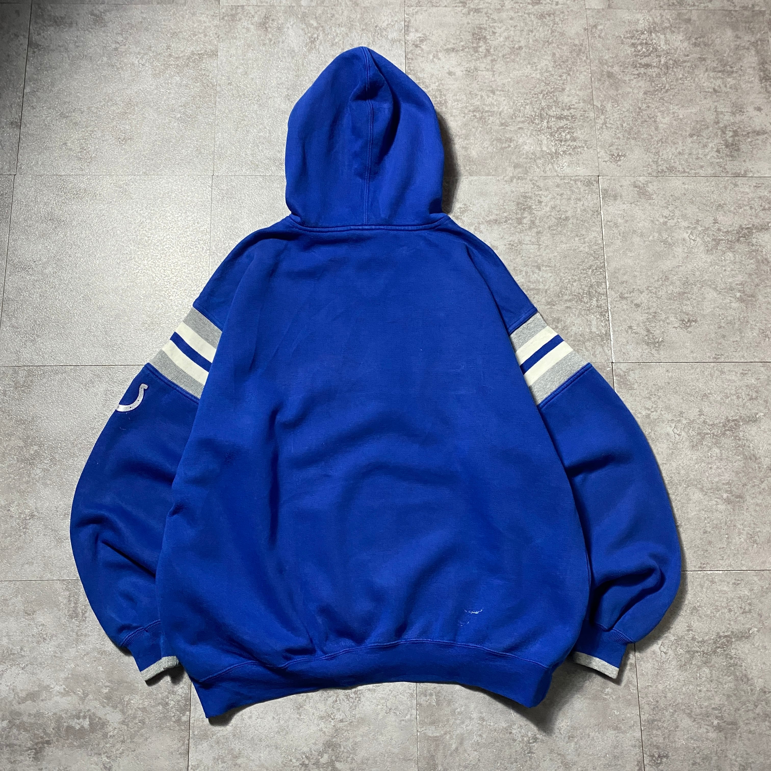 90's Lee Sport NFL INDIANAPOLIS CORTS インディアナポリス・コルツ 刺繍ロゴ ラインリブ 前V ブルー スウェット パーカー