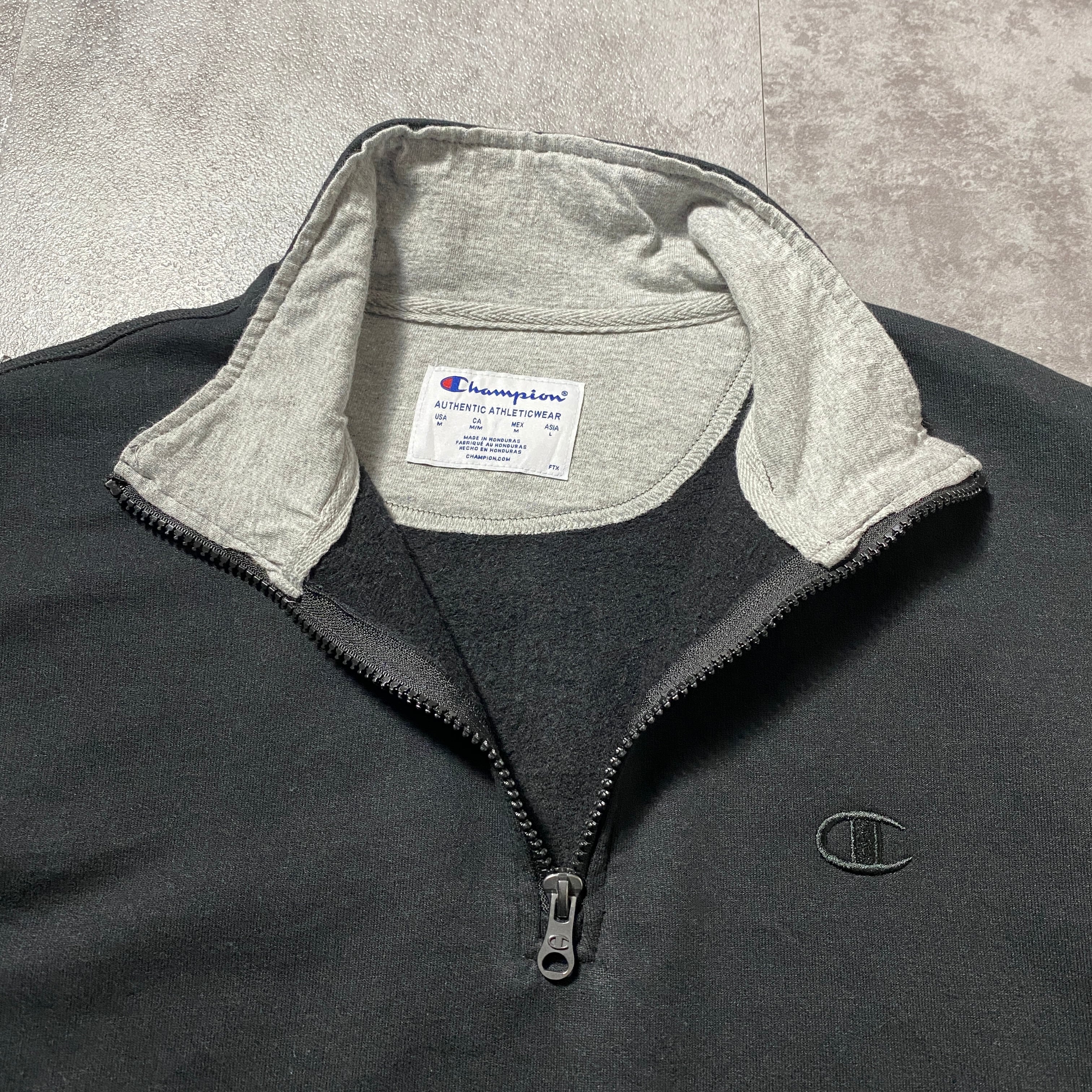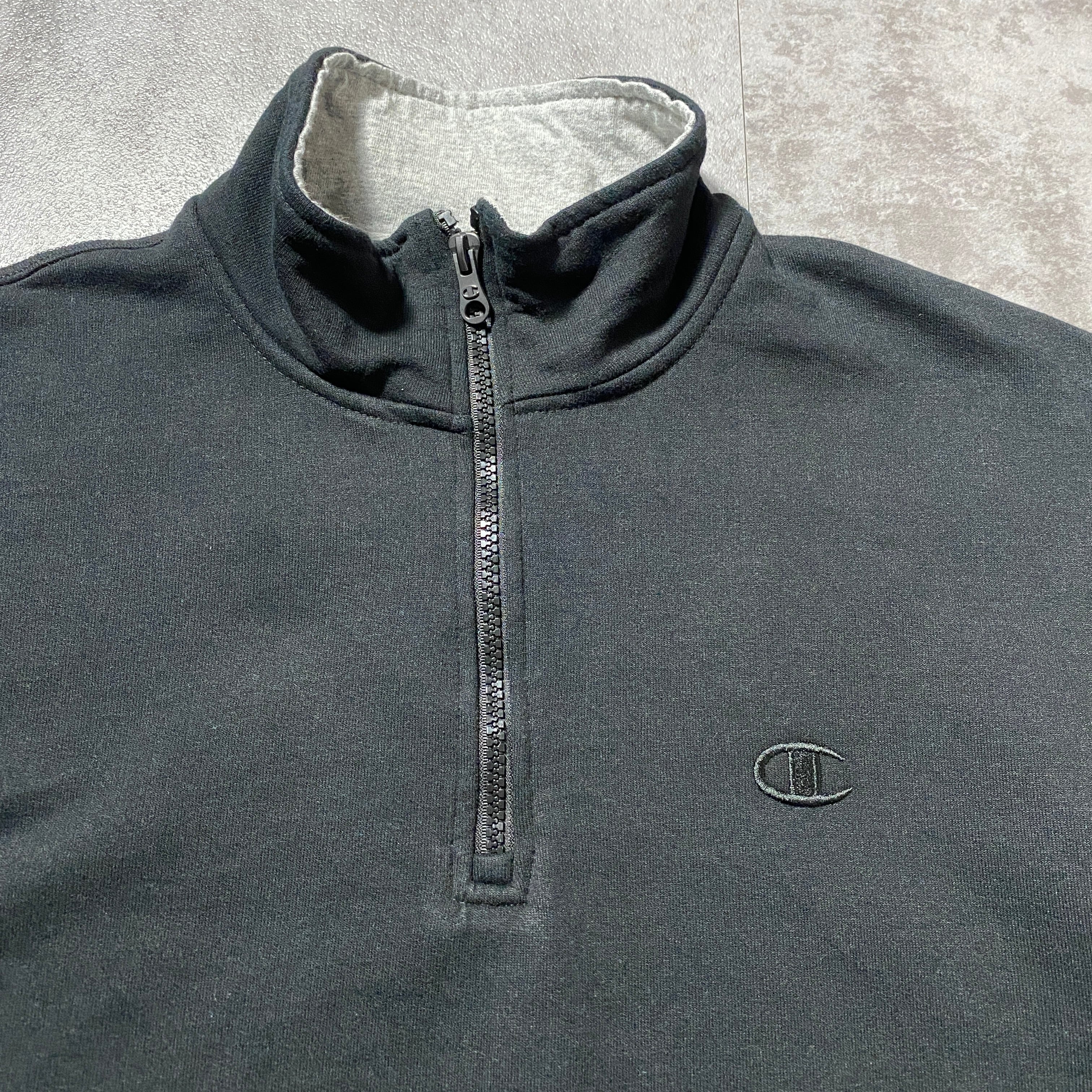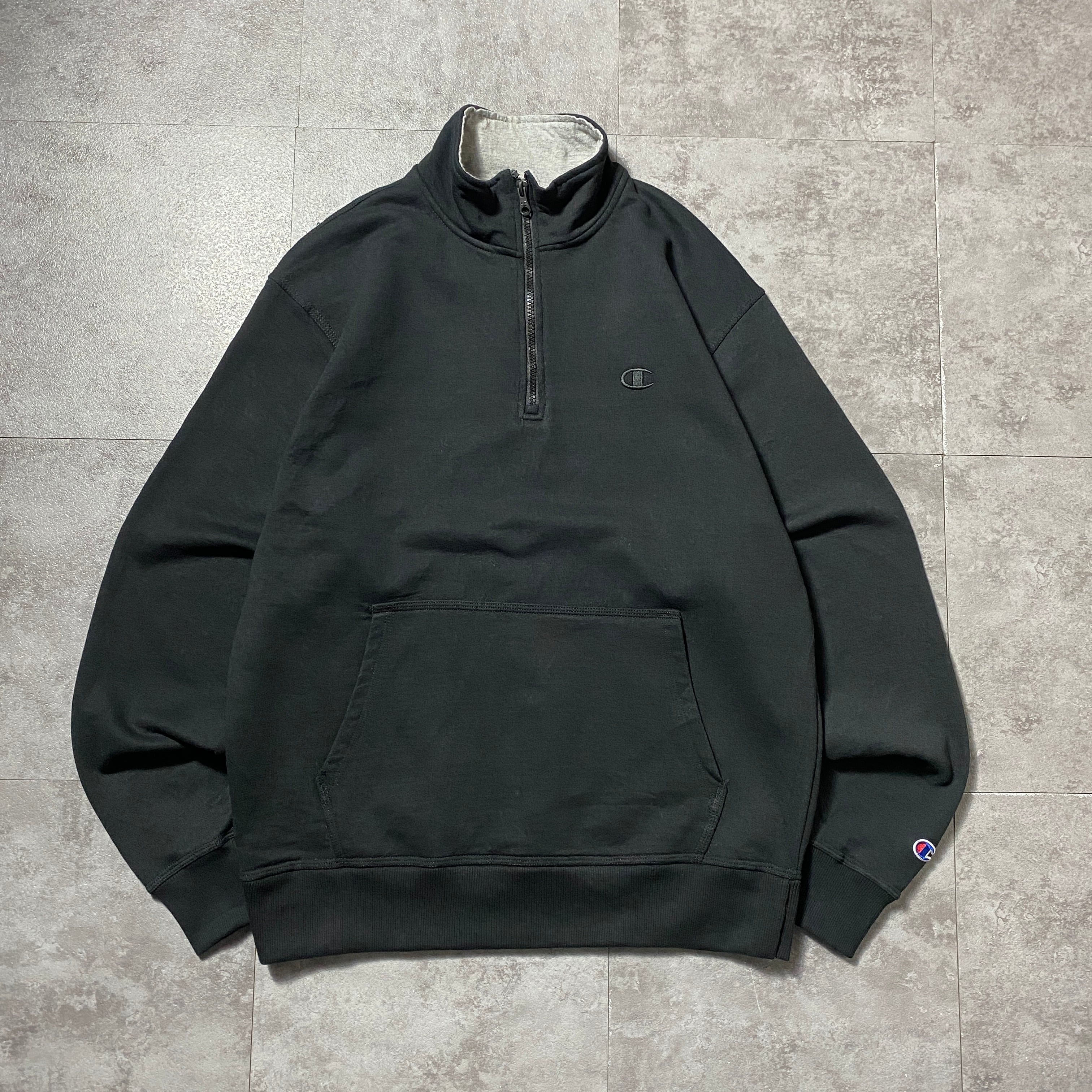 Champion チャンピオン ハーフジップ 刺繍ワンポイント ブラック 黒 スウェット トレーナー