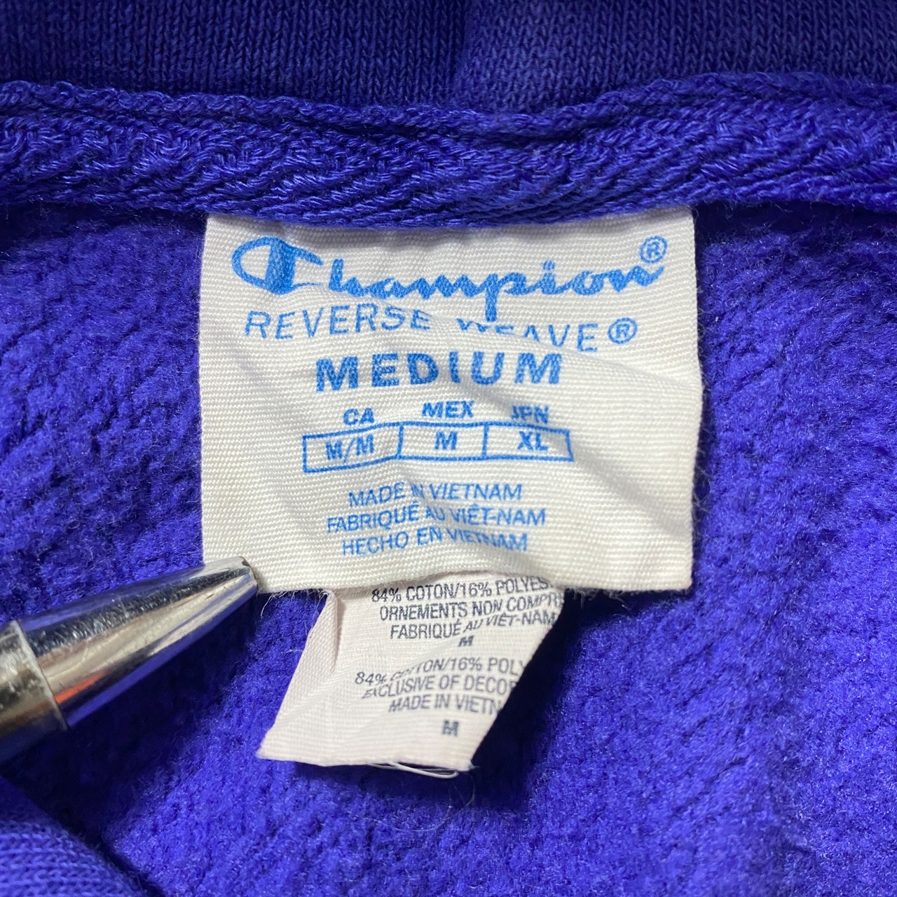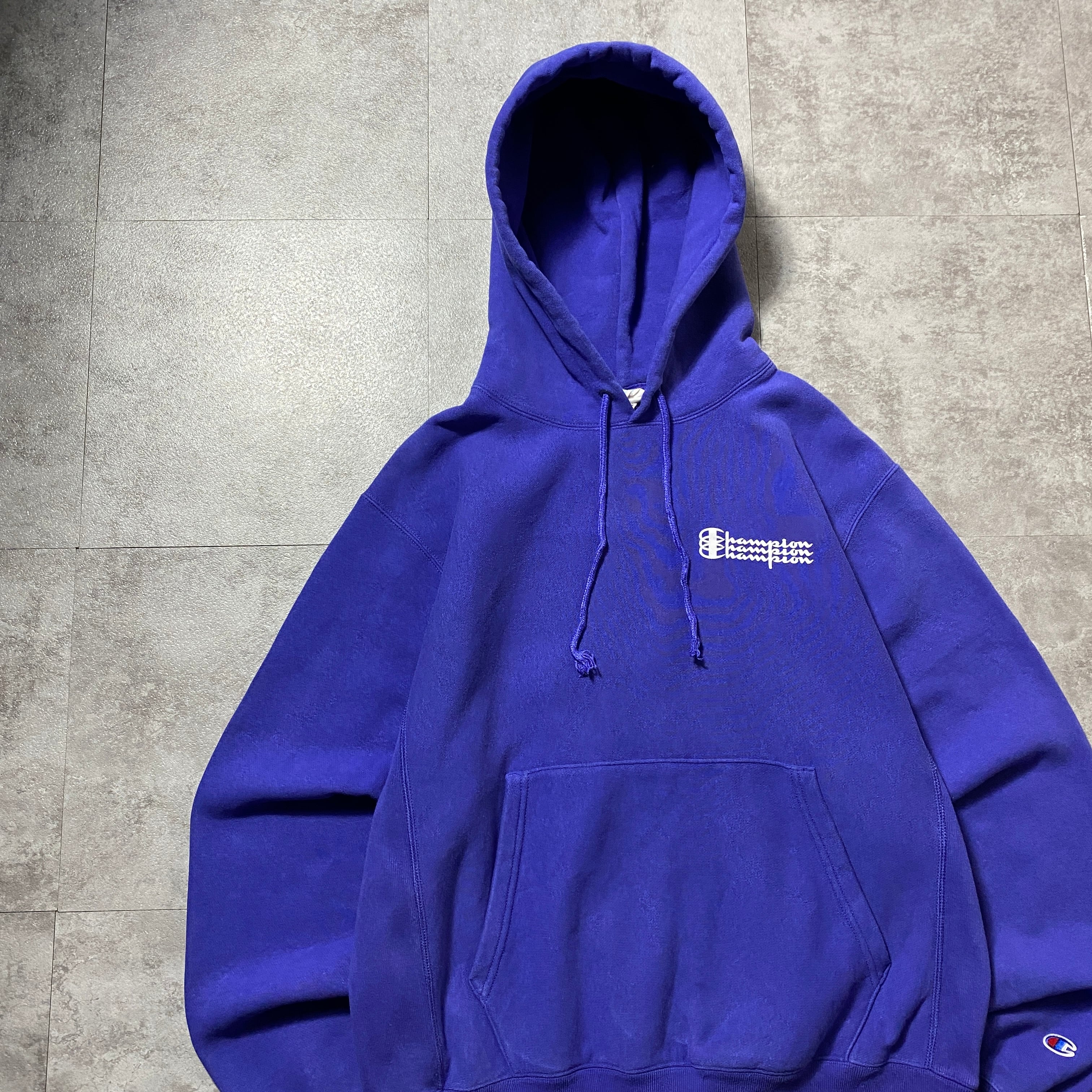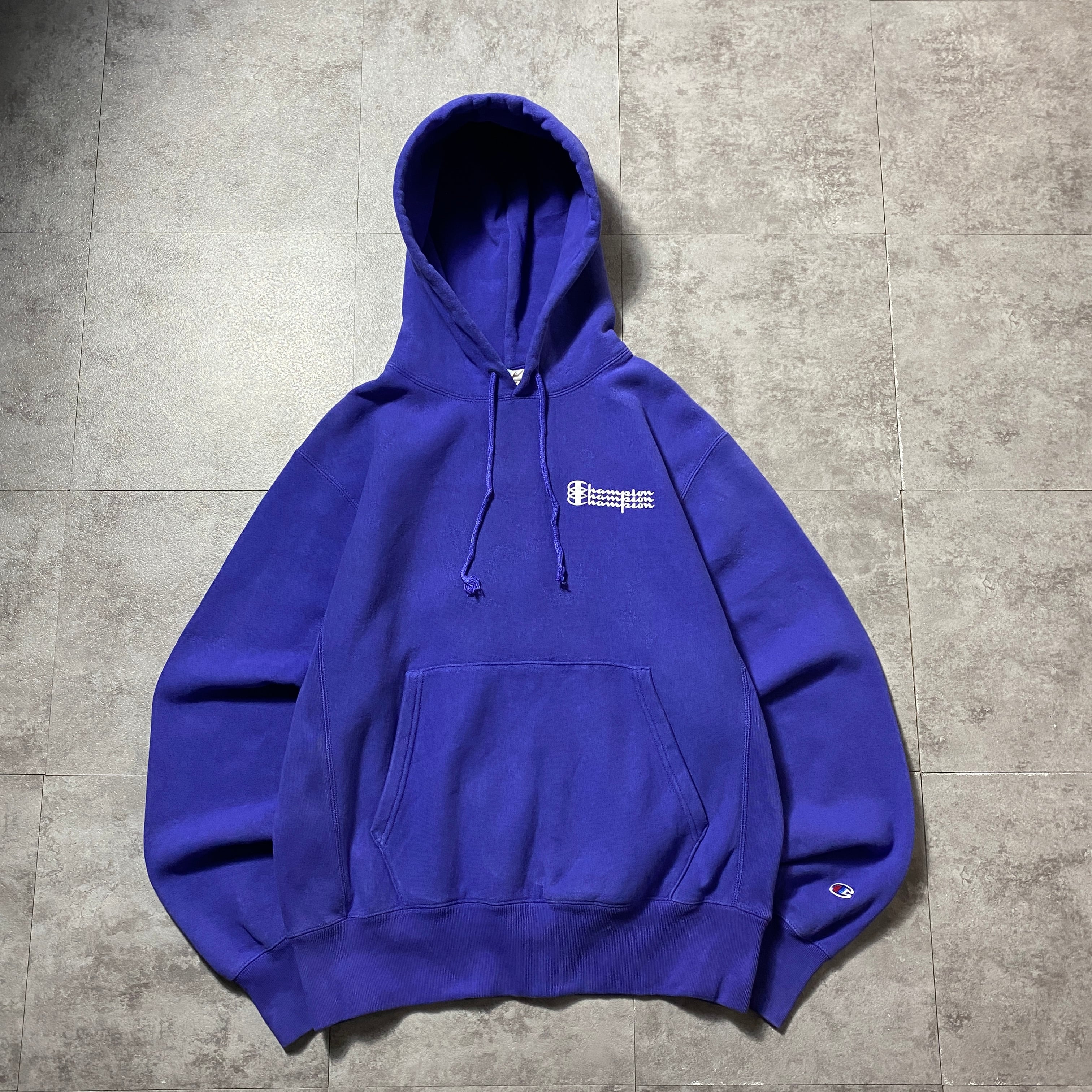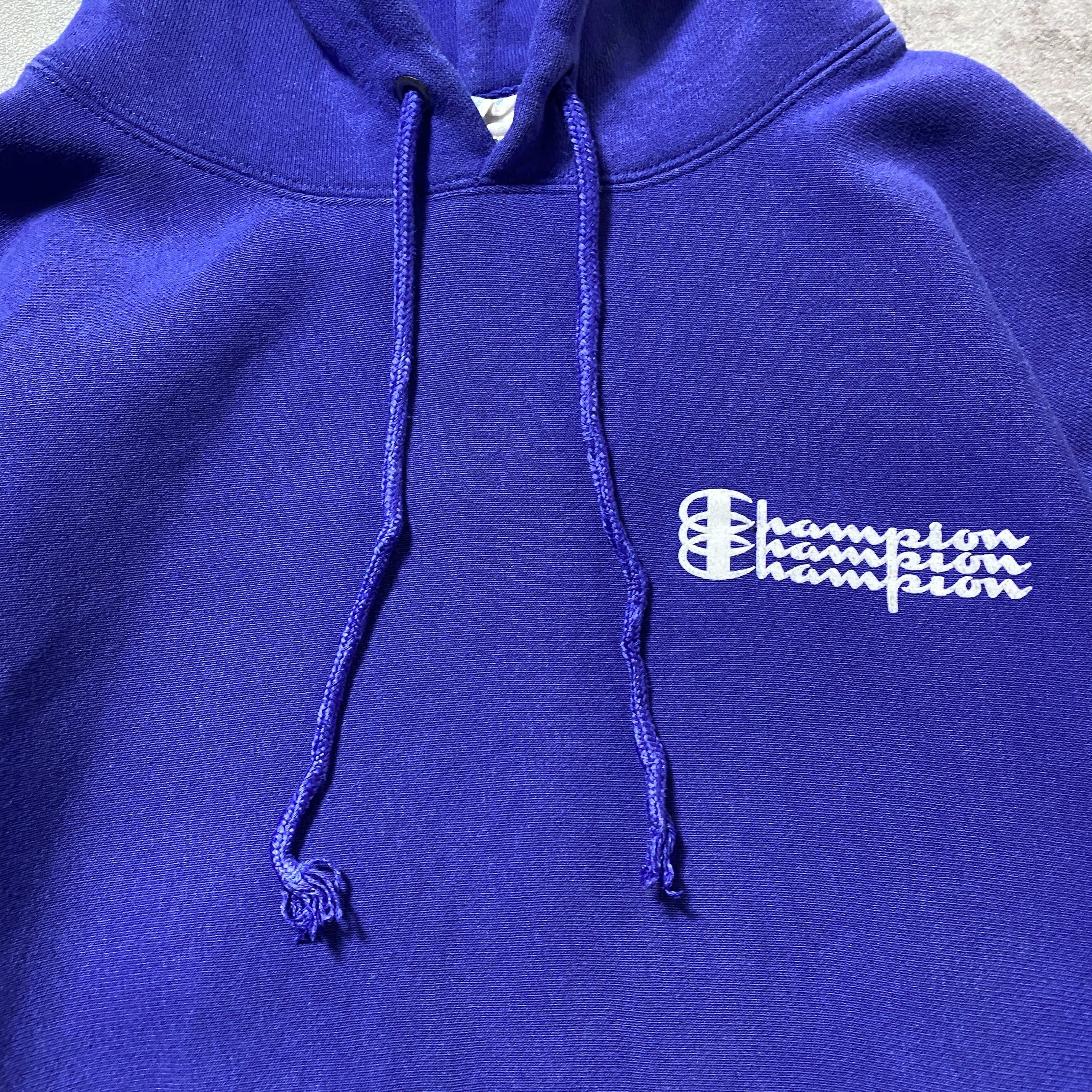 00's Champion チャンピオン リバースウィーブ ワンポイント 3段プリント ナス紺 スウェット パーカー