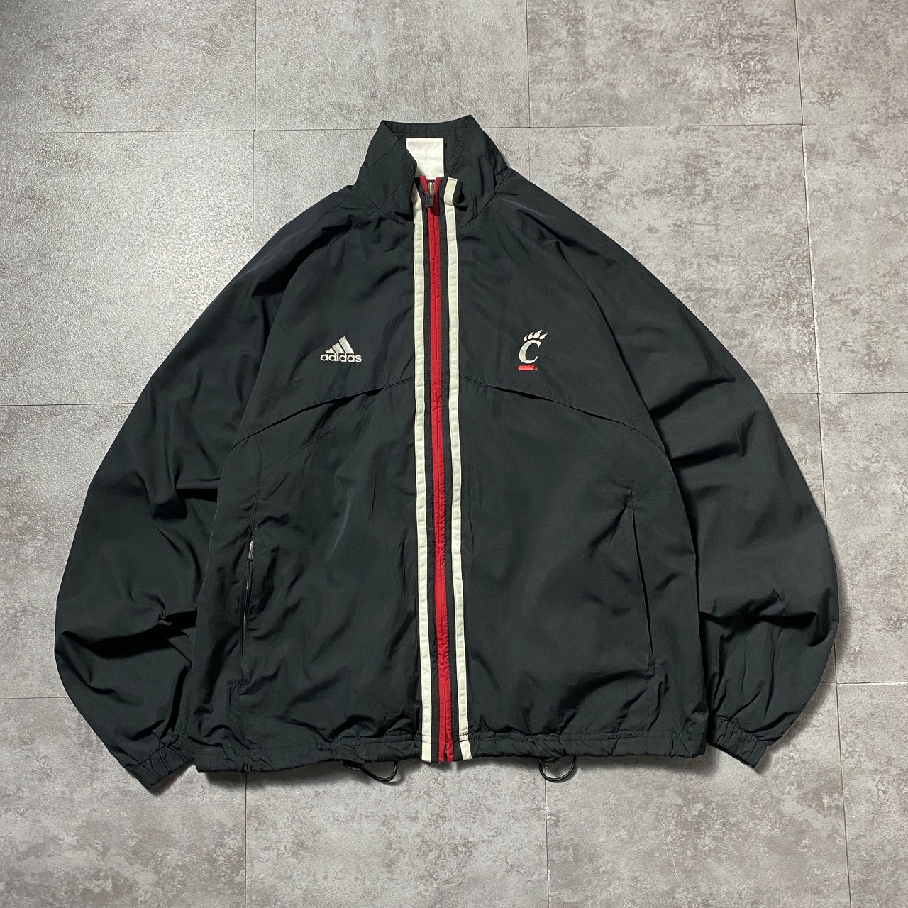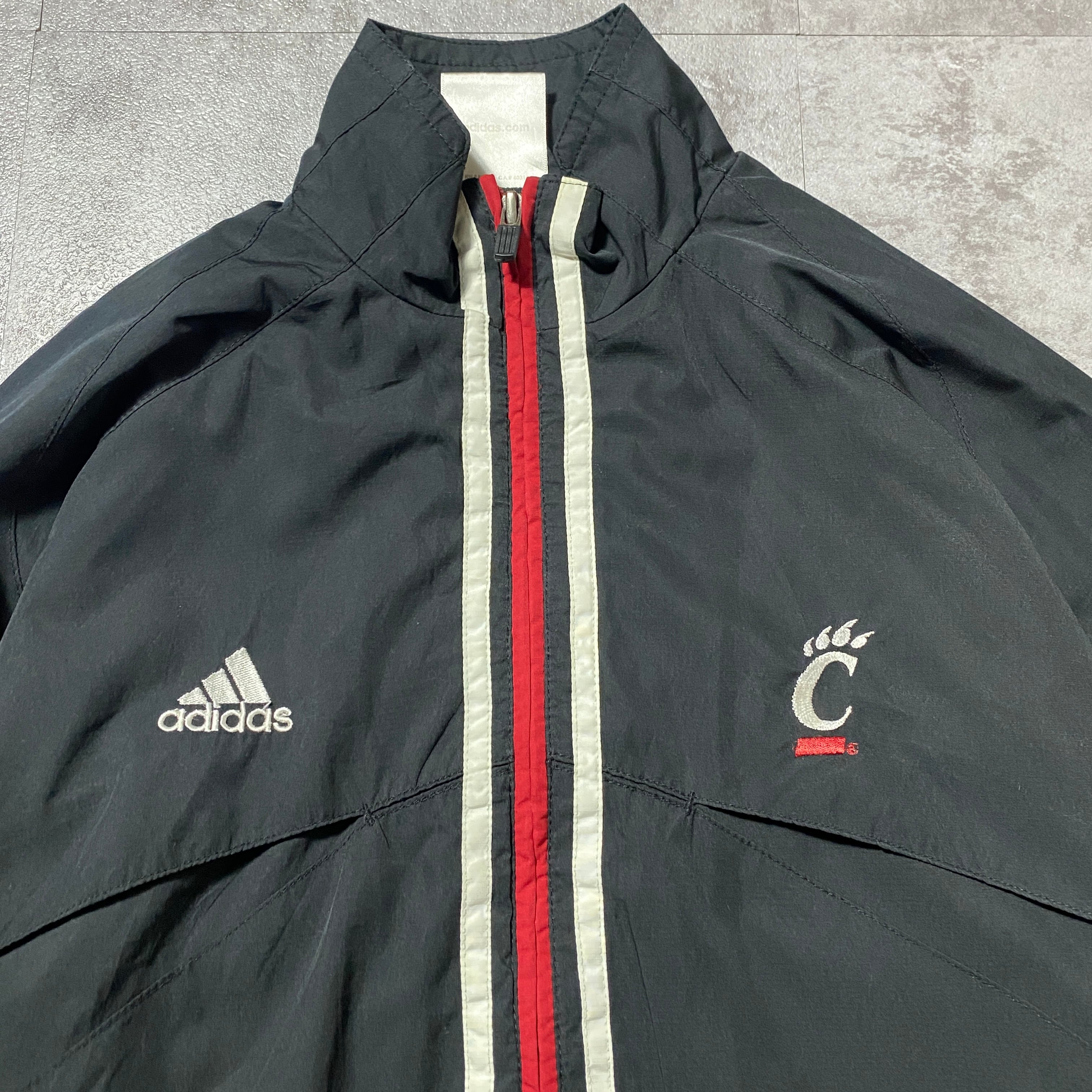 00's adidas アディダス 刺繍パフォーマンスロゴ スリーストライプ ブラック ナイロンジャケット