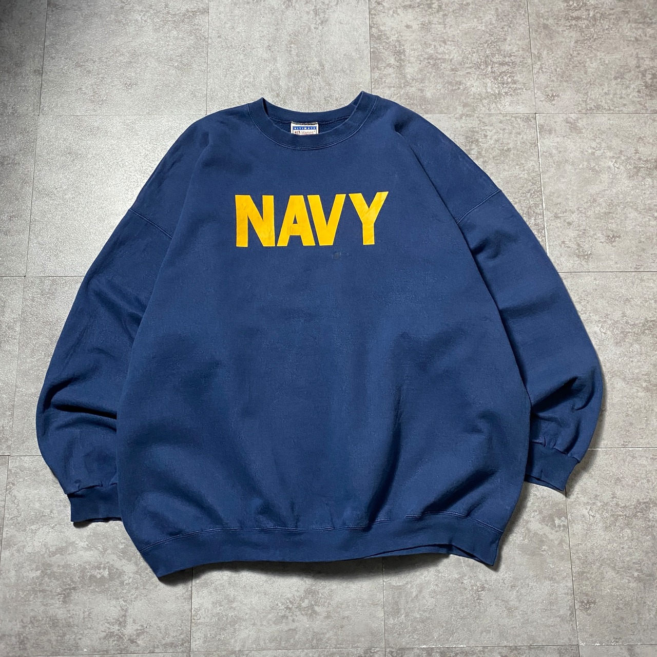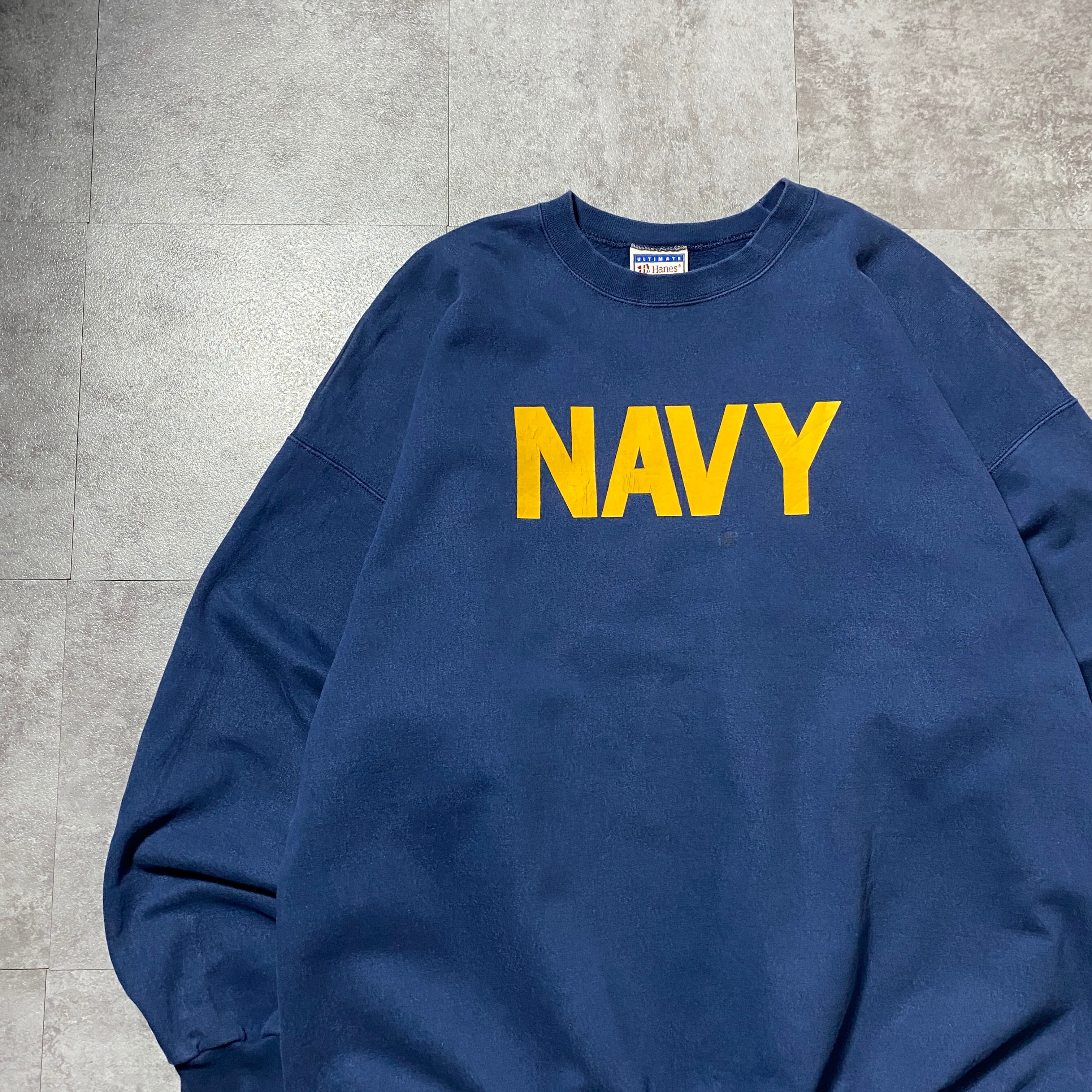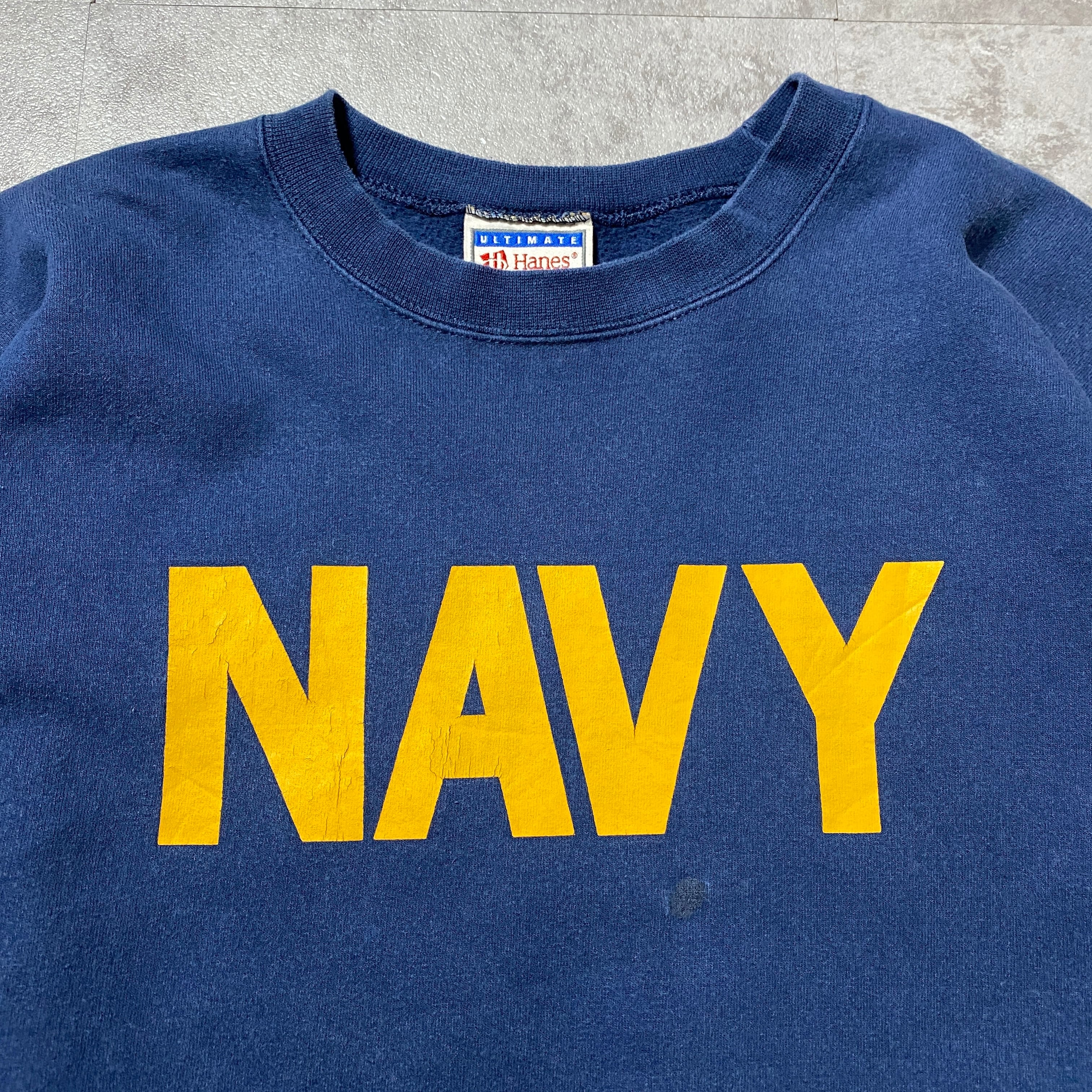 【Size:3XL】90's Hanes ヘインズ U.S.NAVY アメリカ海軍 ミリタリー プリント ネイビー ヘビーオンス スウェット トレーナー