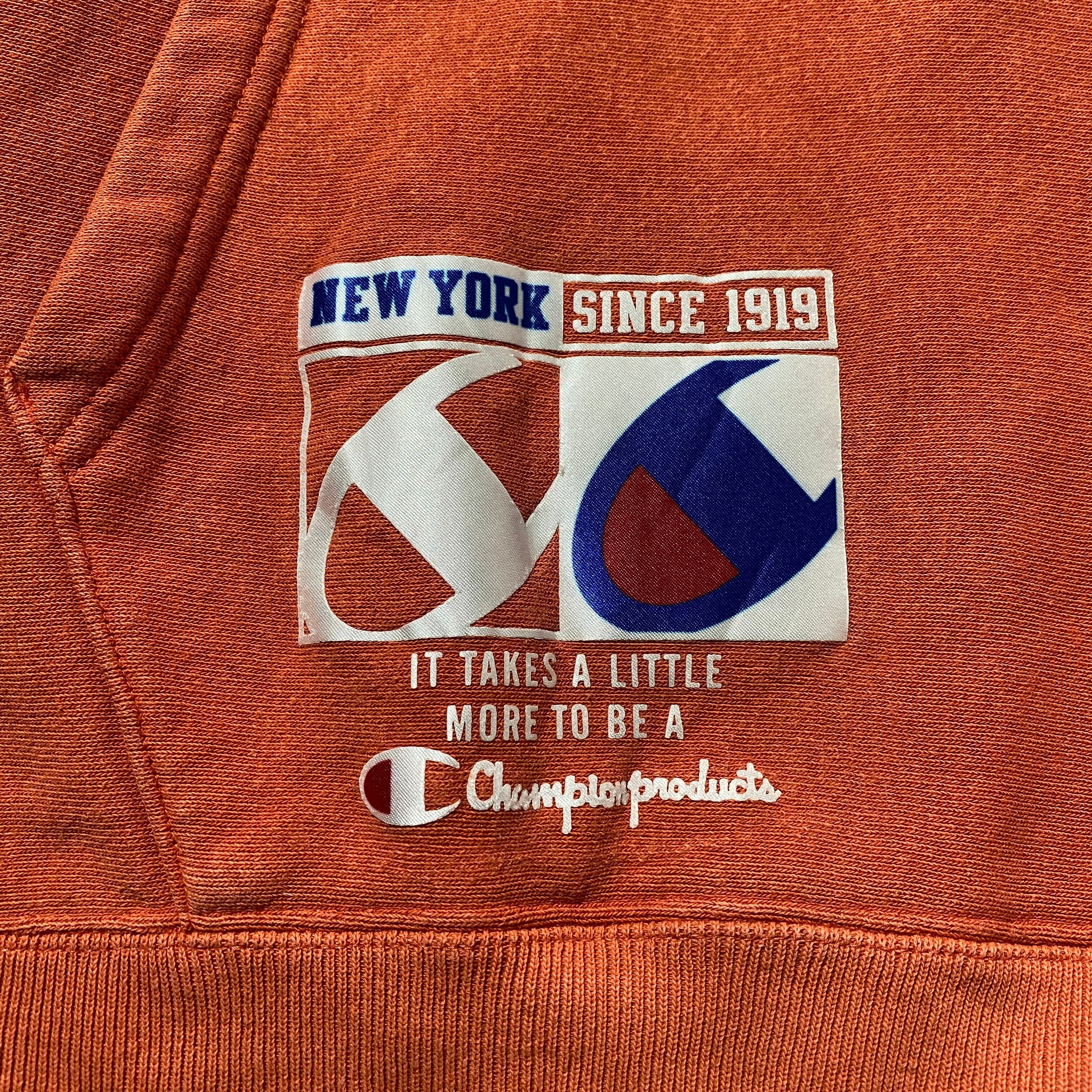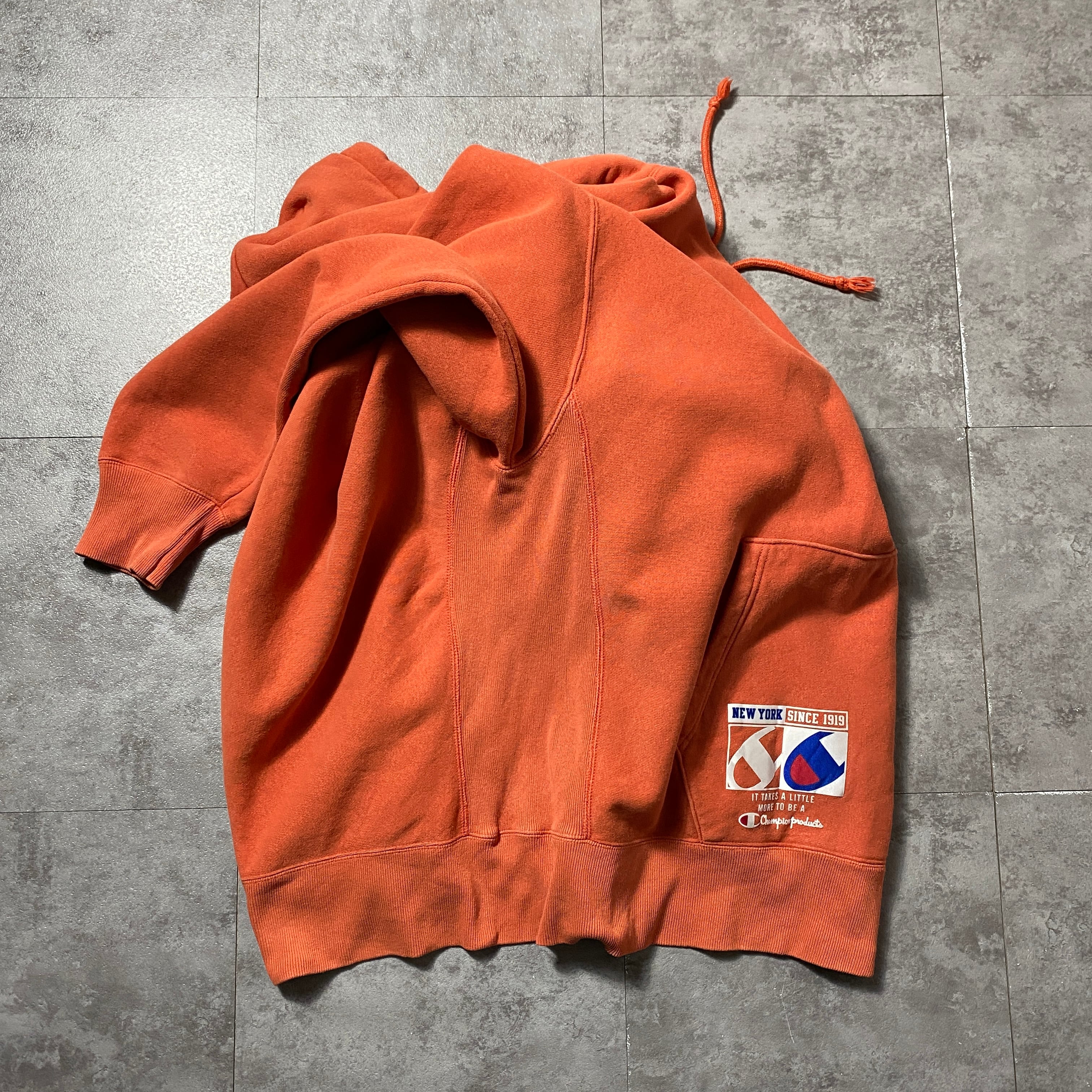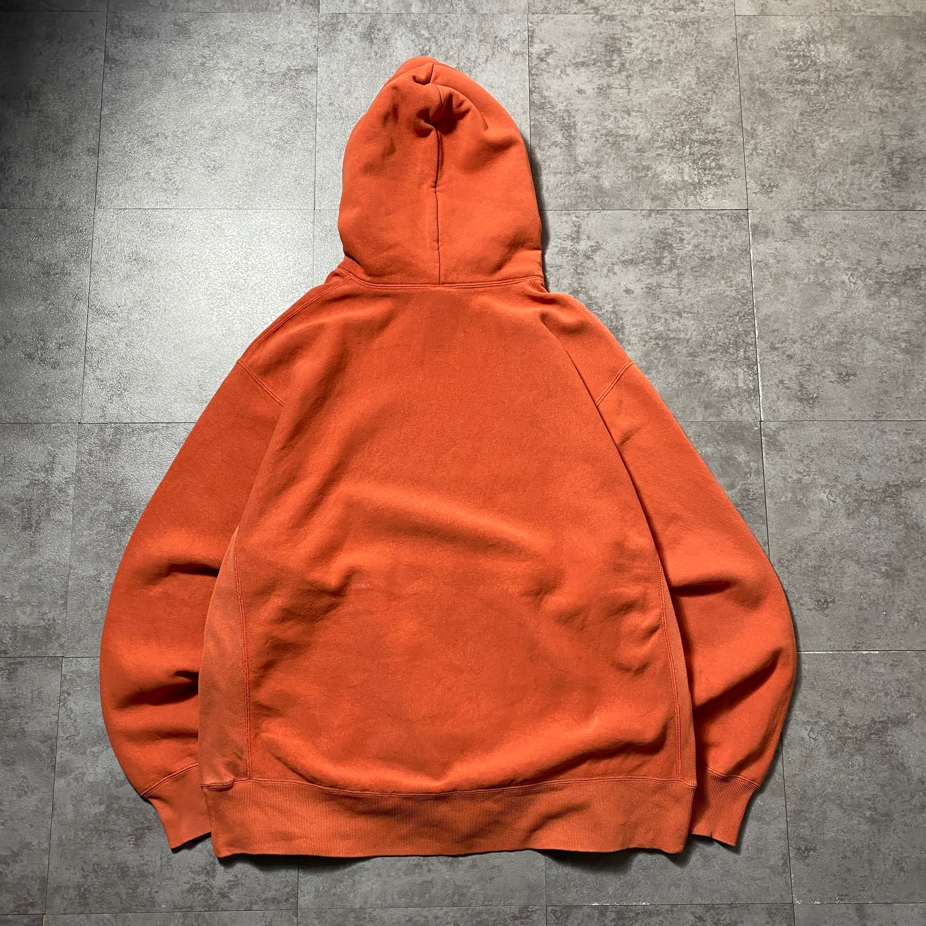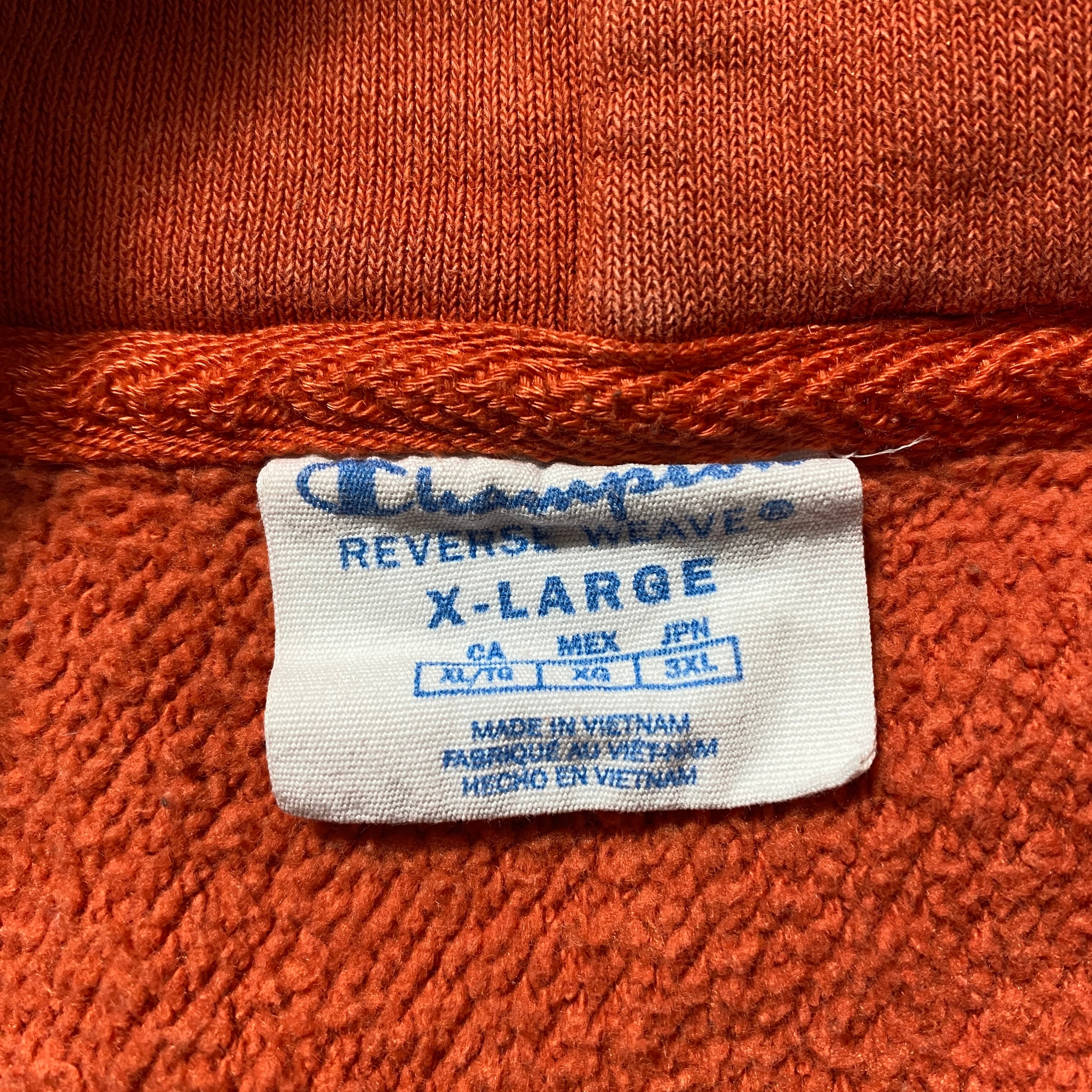 【Size:XL】00's Champion チャンピオン リバースウィーブ 刺繍ワンポイント プリント入りカンガルーポケット オレンジ スウェット パーカー
