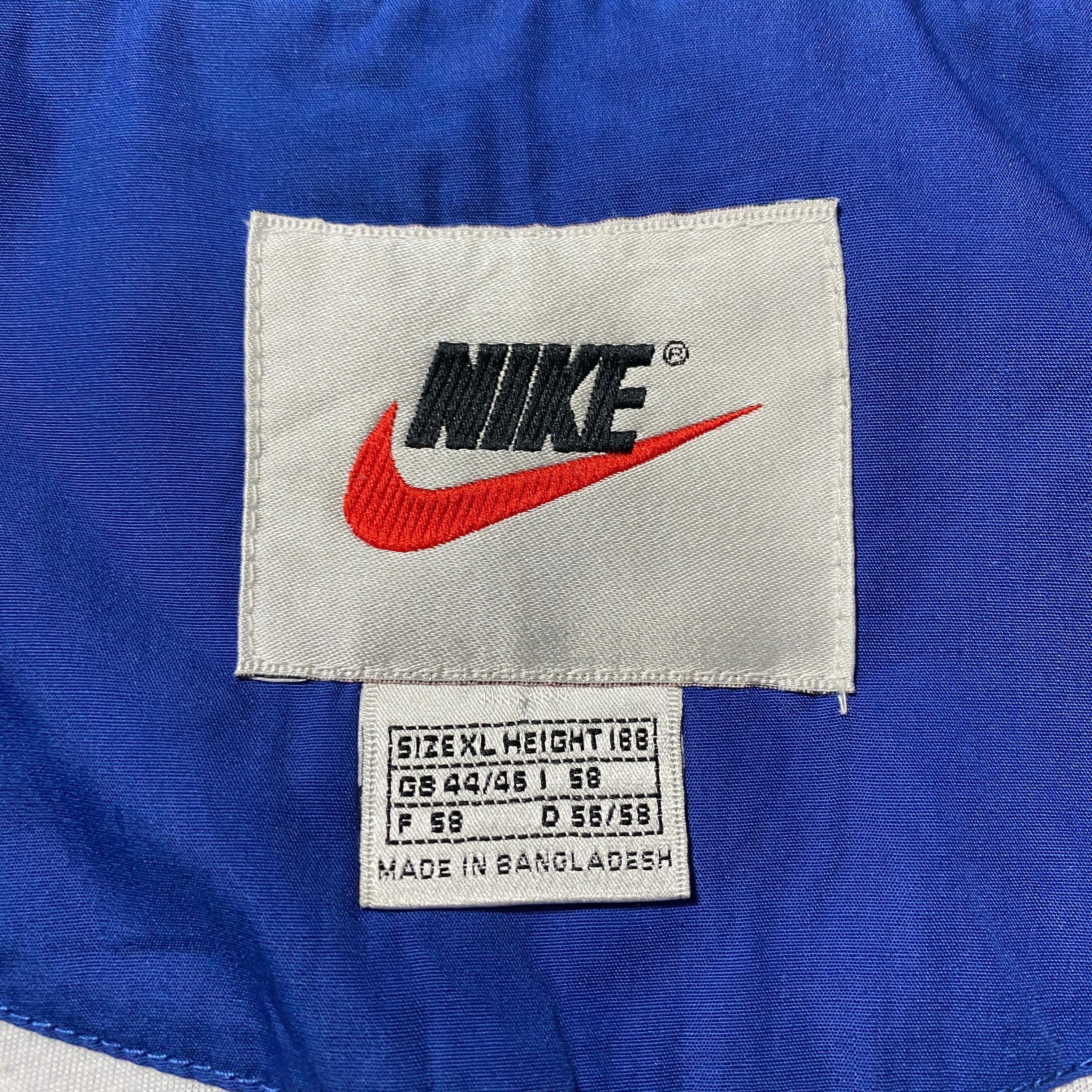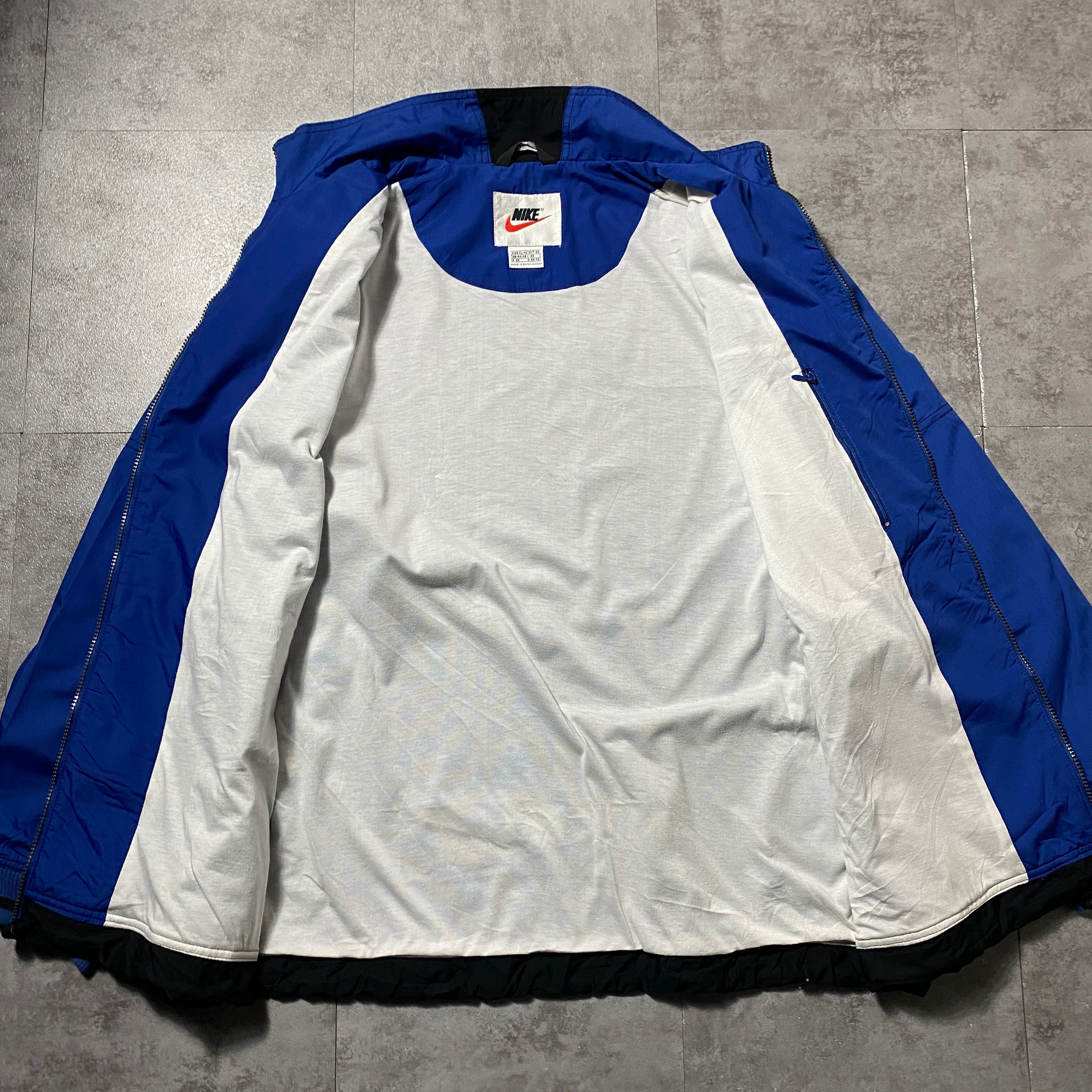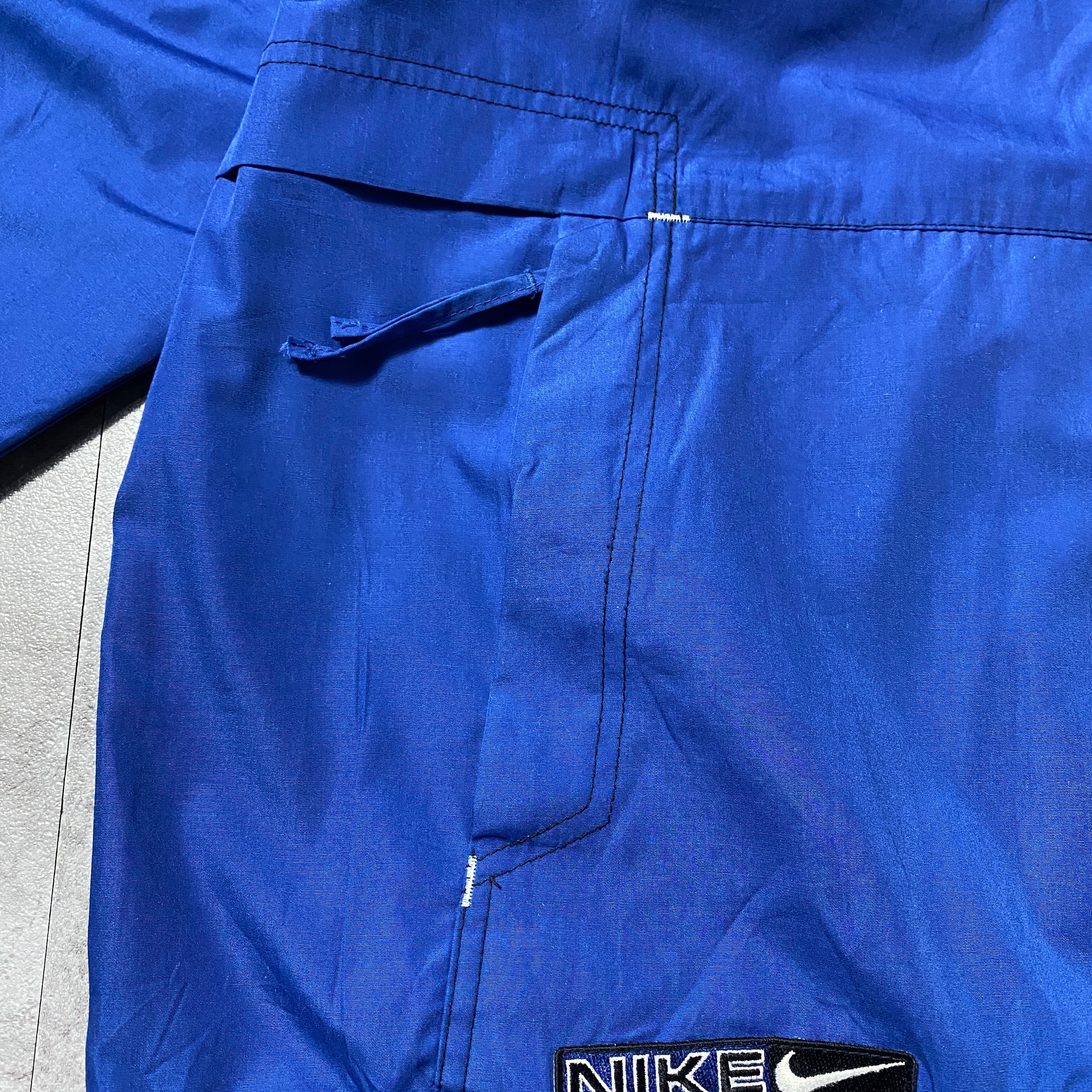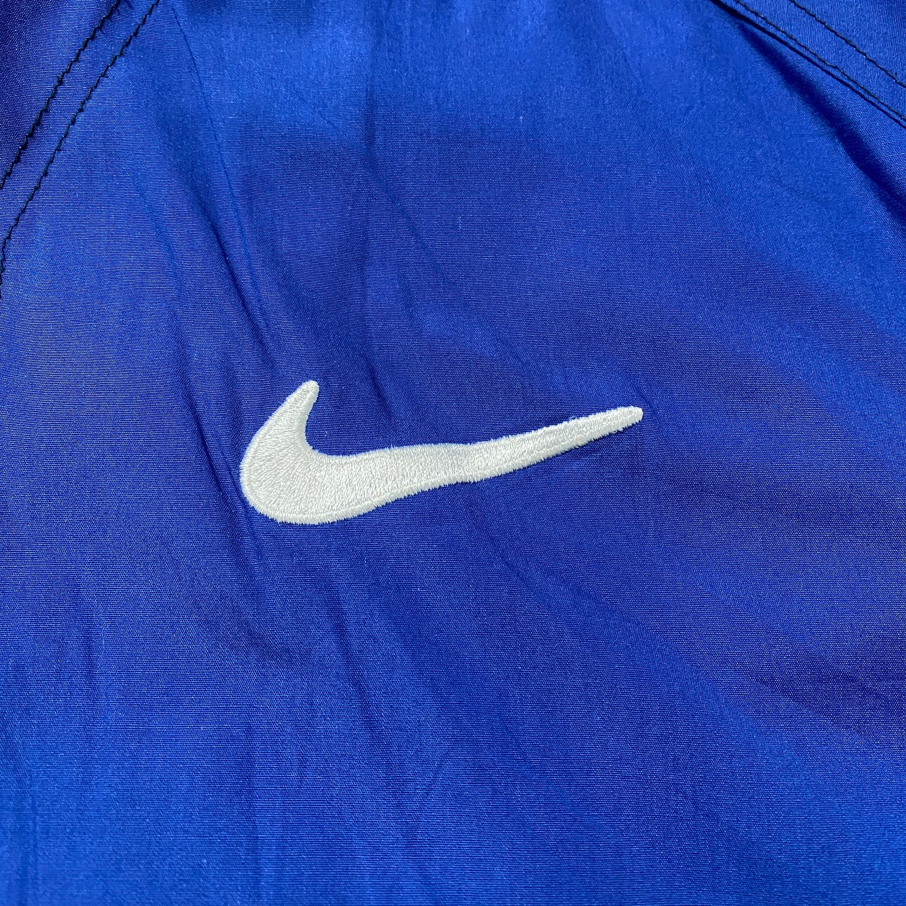 【Size:XL】90's NIKE ナイキ スウォッシュ 刺繍ワンポイント バックロゴ ブルー ナイロンジャケット