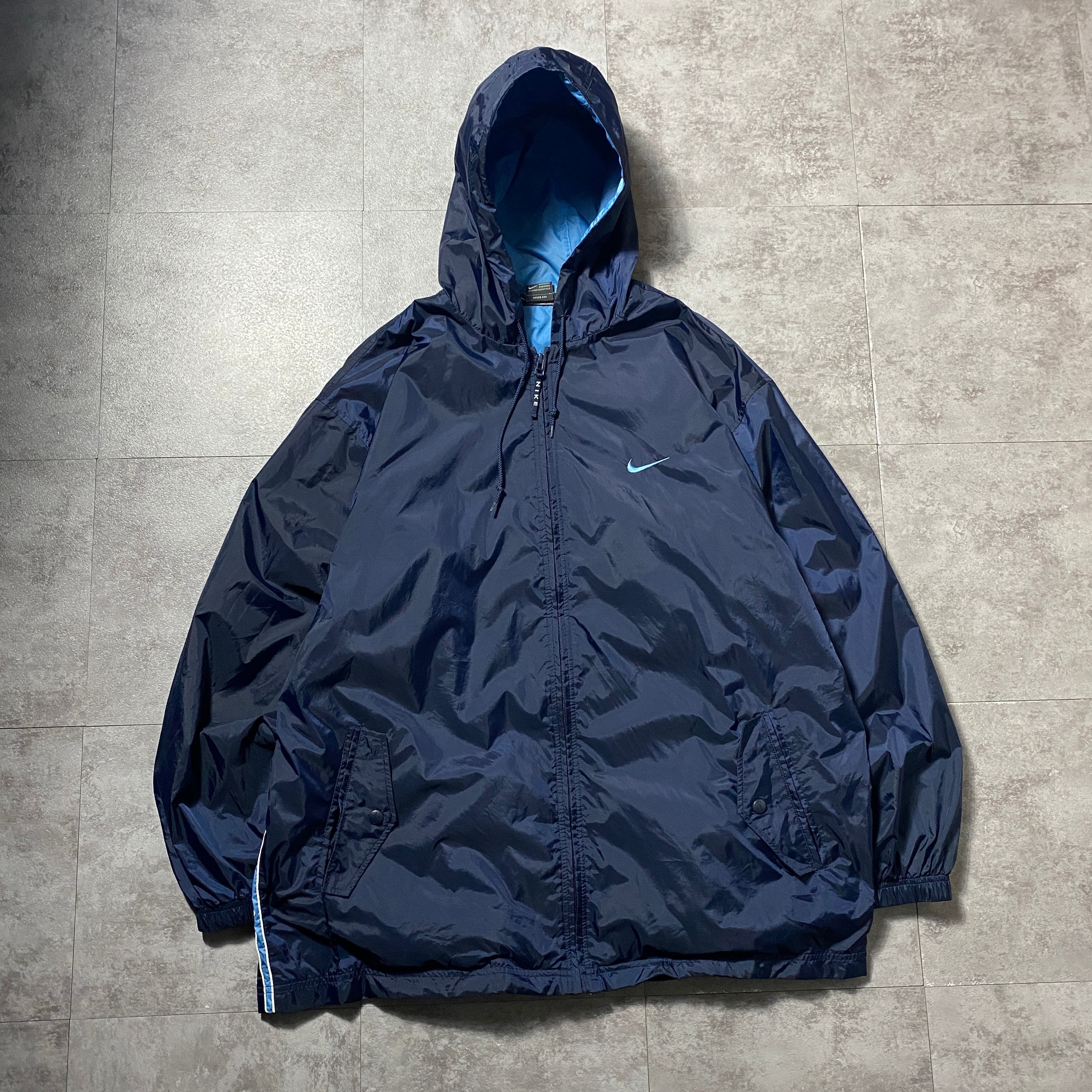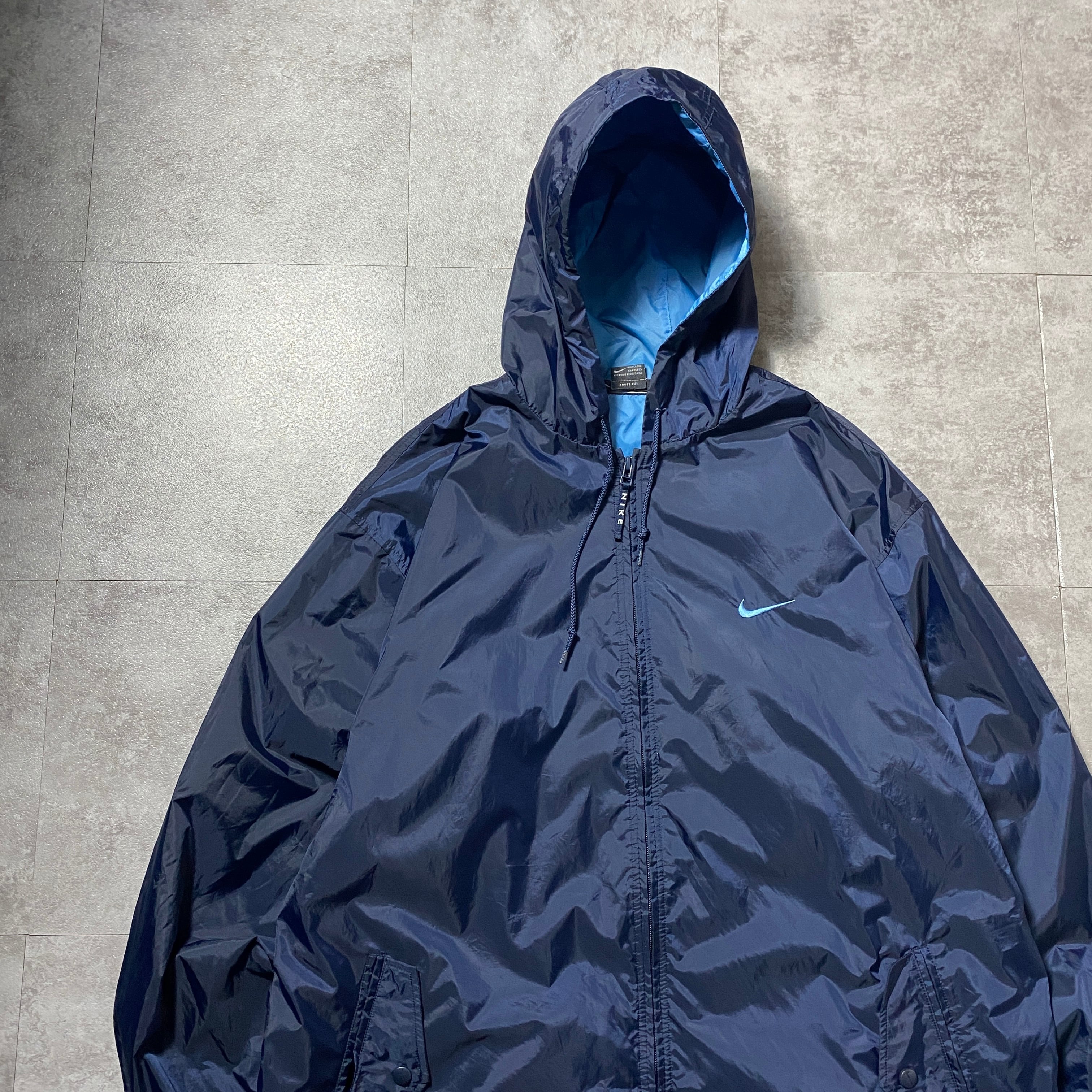 【Size:XL】00's NIKE ナイキ スウォッシュ 刺繍ワンポイント バックプリント ネイビー ナイロンジャケット
