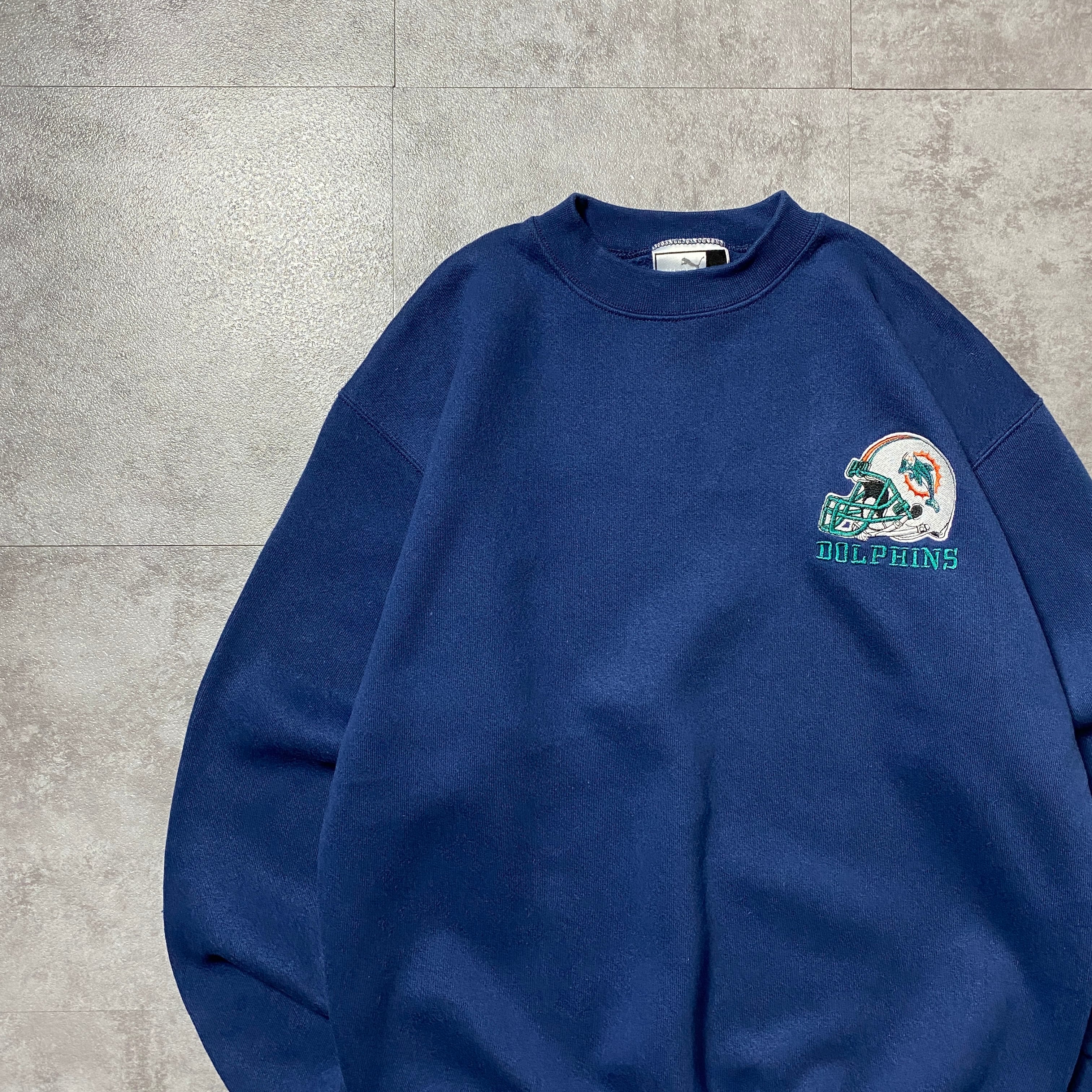 90's PUMA Miami Dolphins プーマ NFL マイアミドルフィンズ 刺繍ワンポイント ネイビー スウェット トレーナー