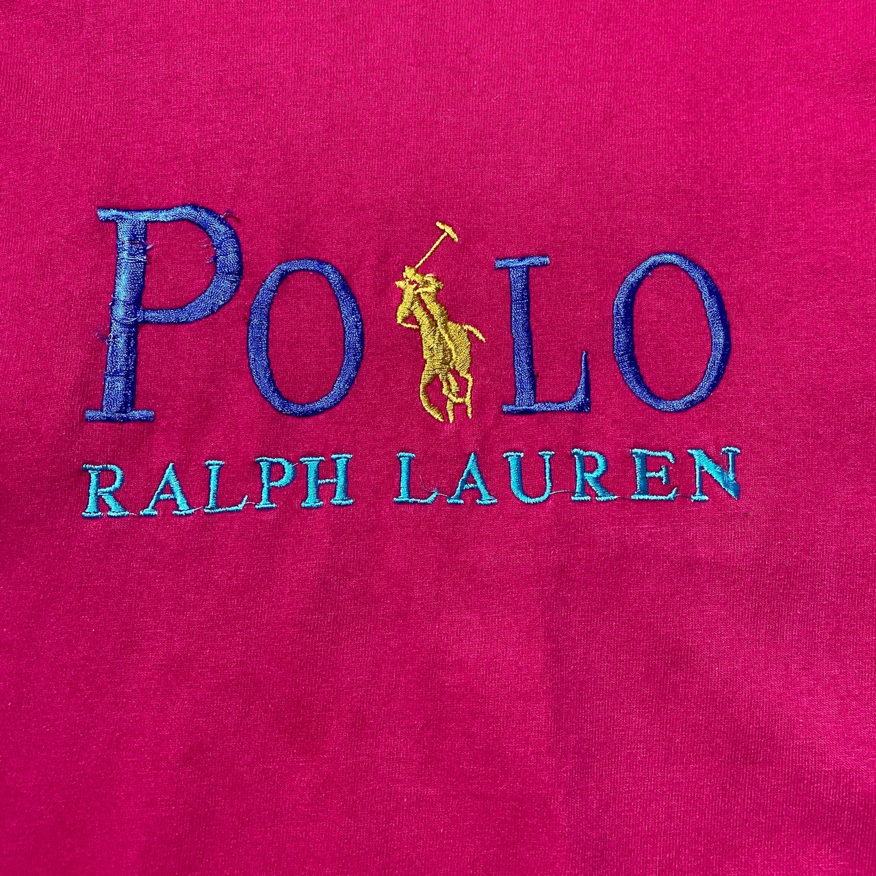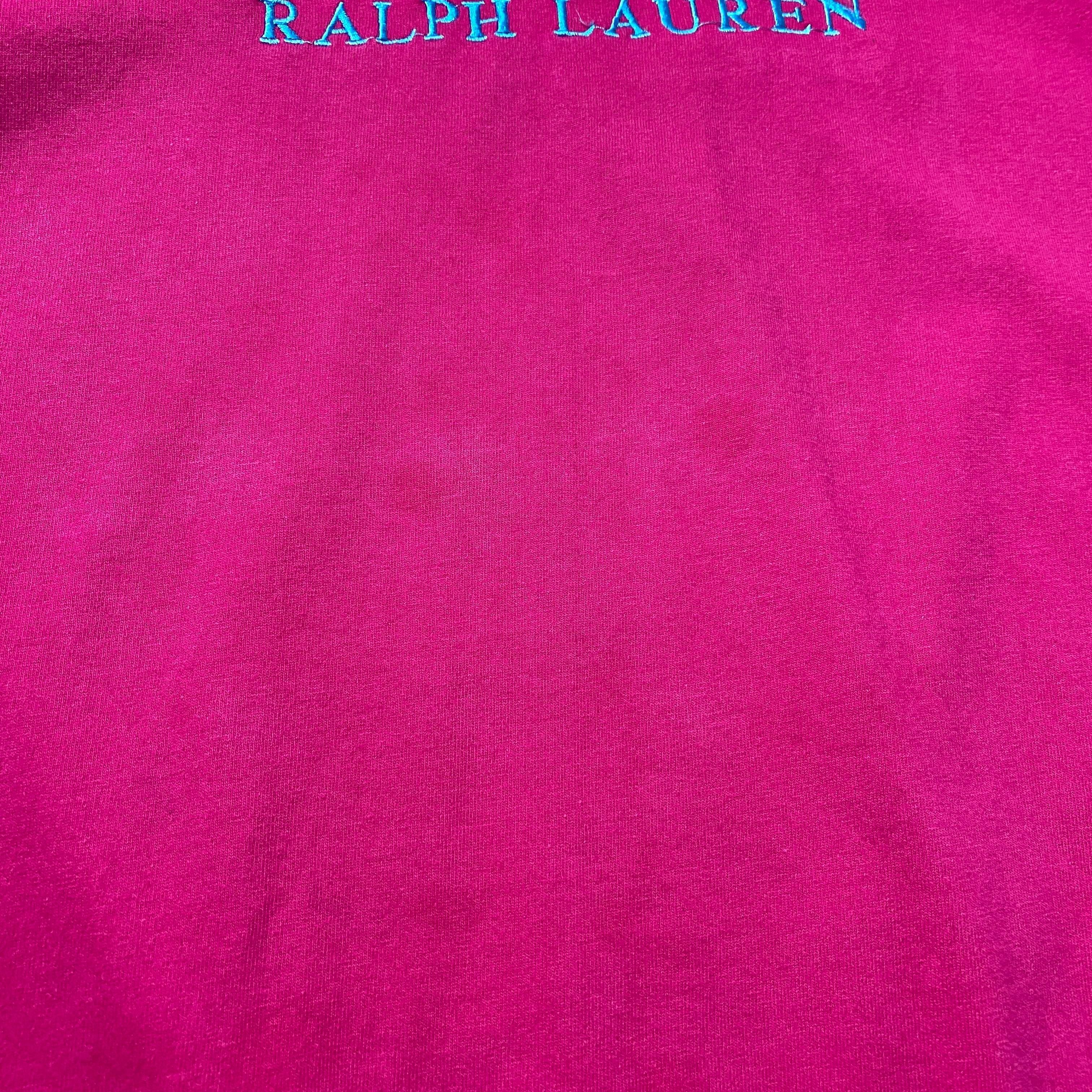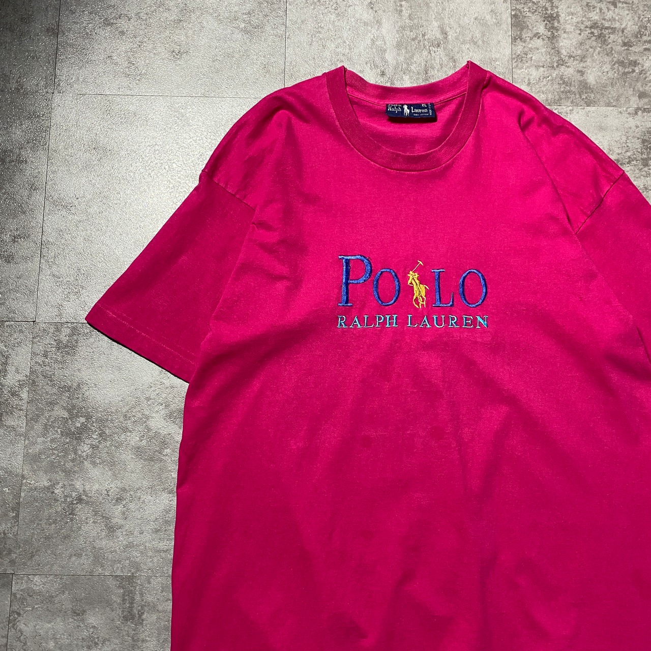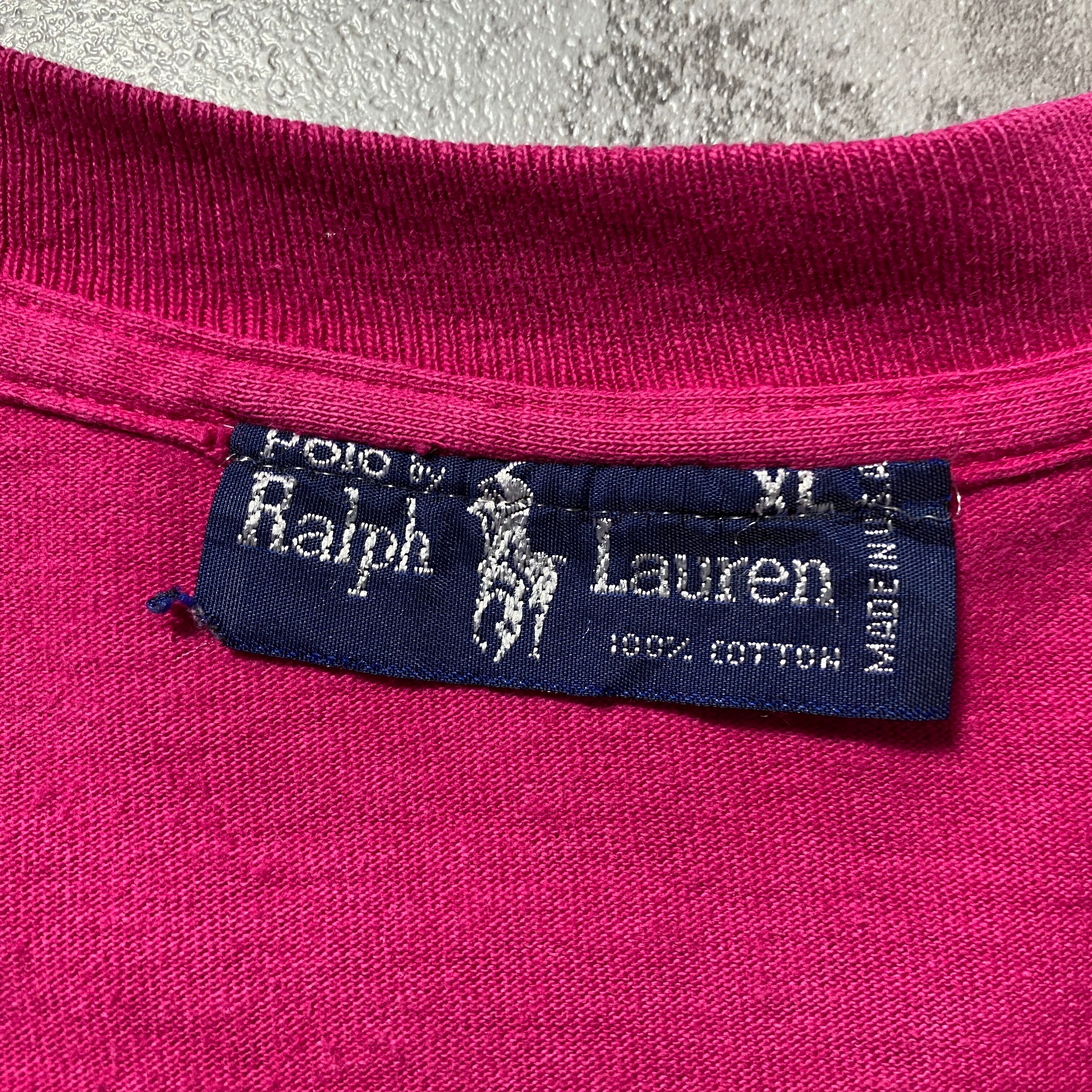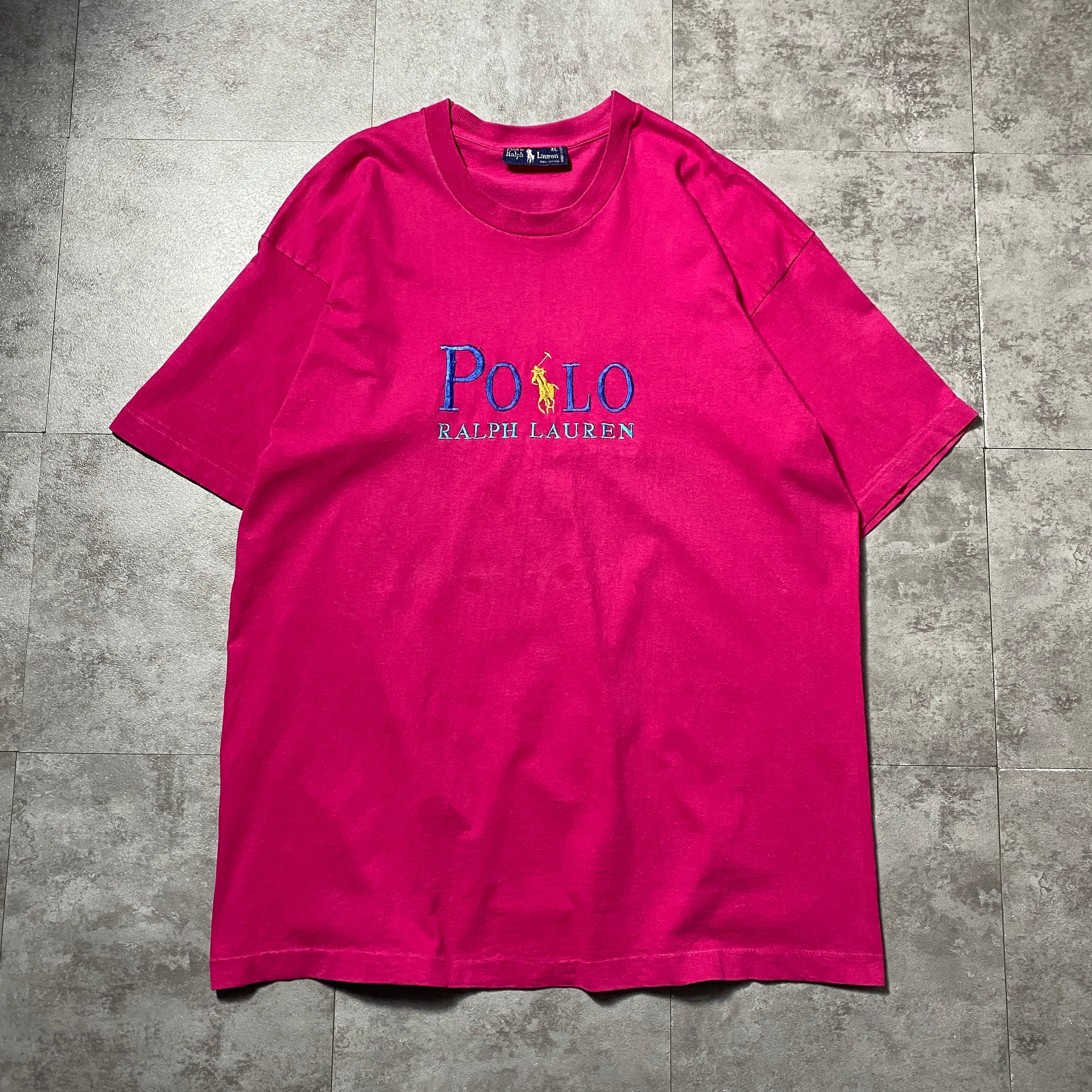 【USA製】90's Polo by Ralph Lauren boot leg ポロバイラルフローレン ブート 刺繍ロゴ ピンク シングルステッチ Tシャツ