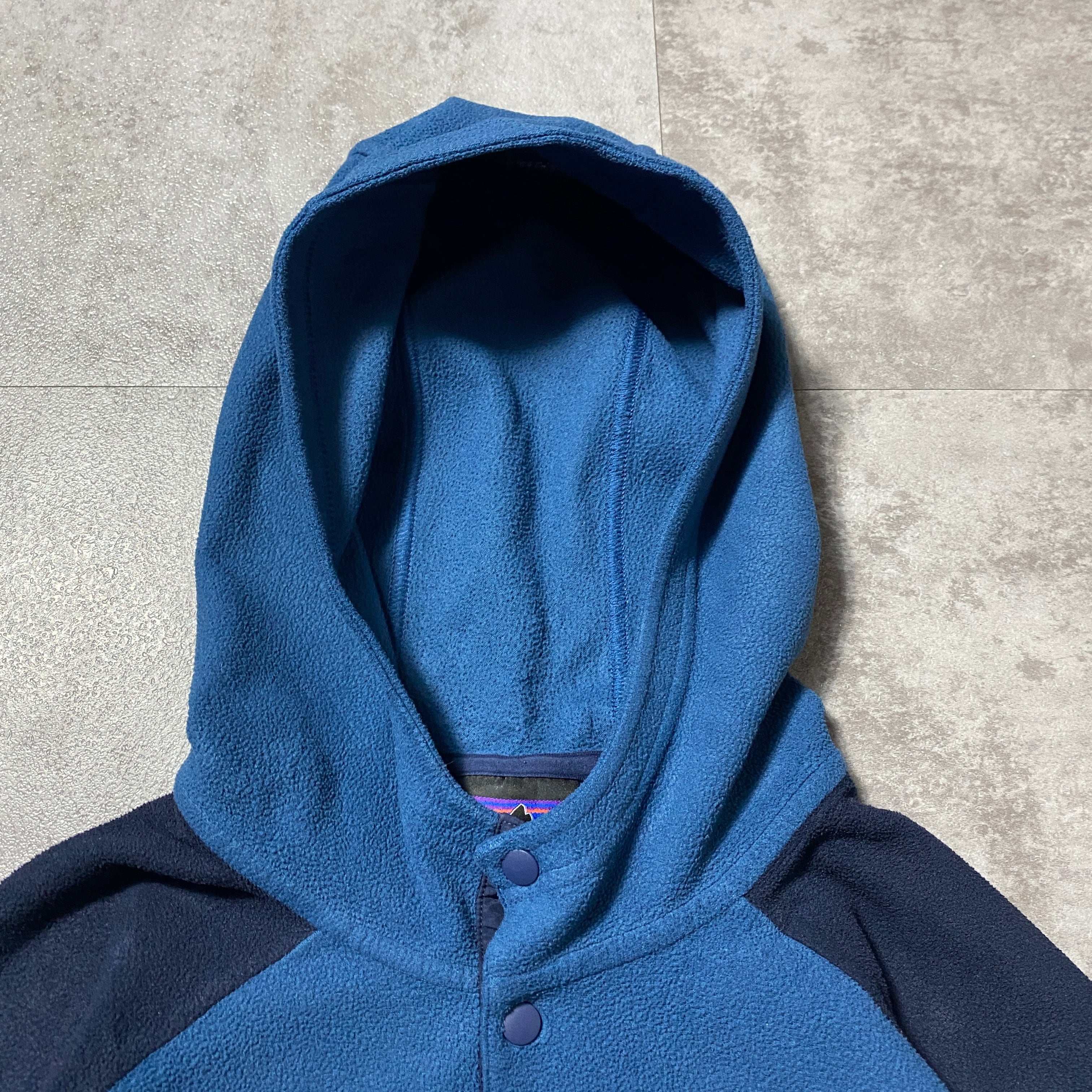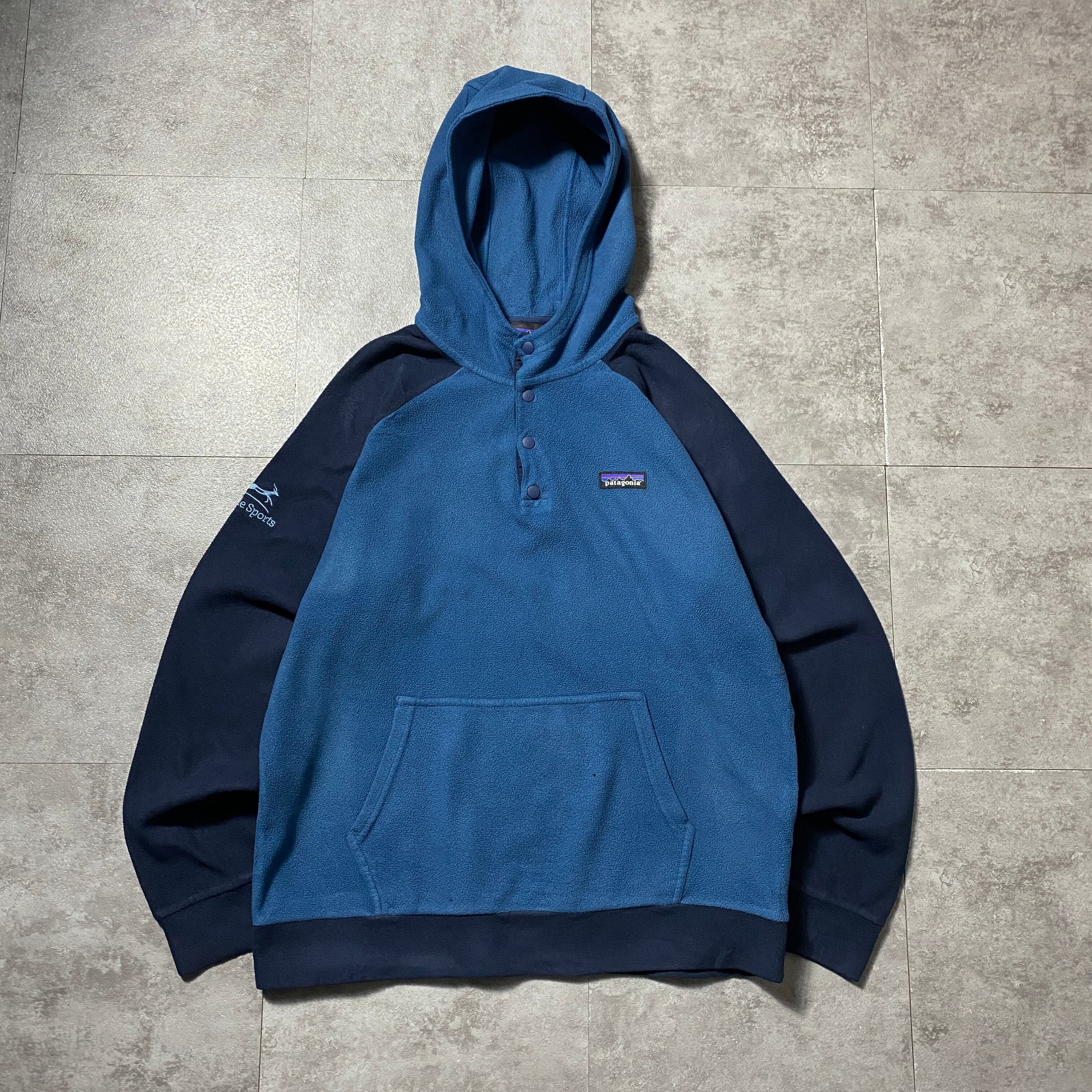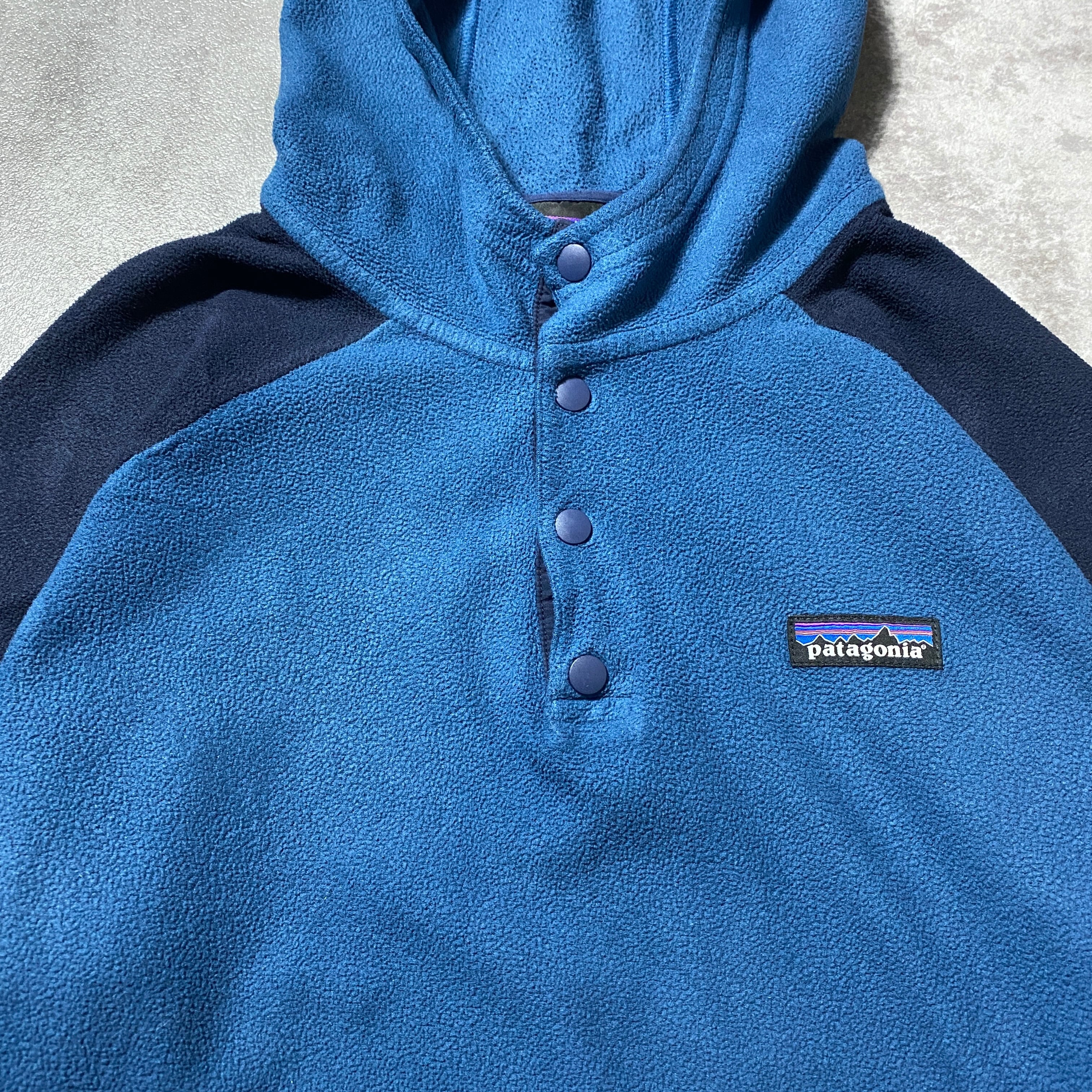 Patagonia パタゴニア ワンポイント アーム刺繍ロゴ 首元スナップボタン フード ラグラン フリースパーカー