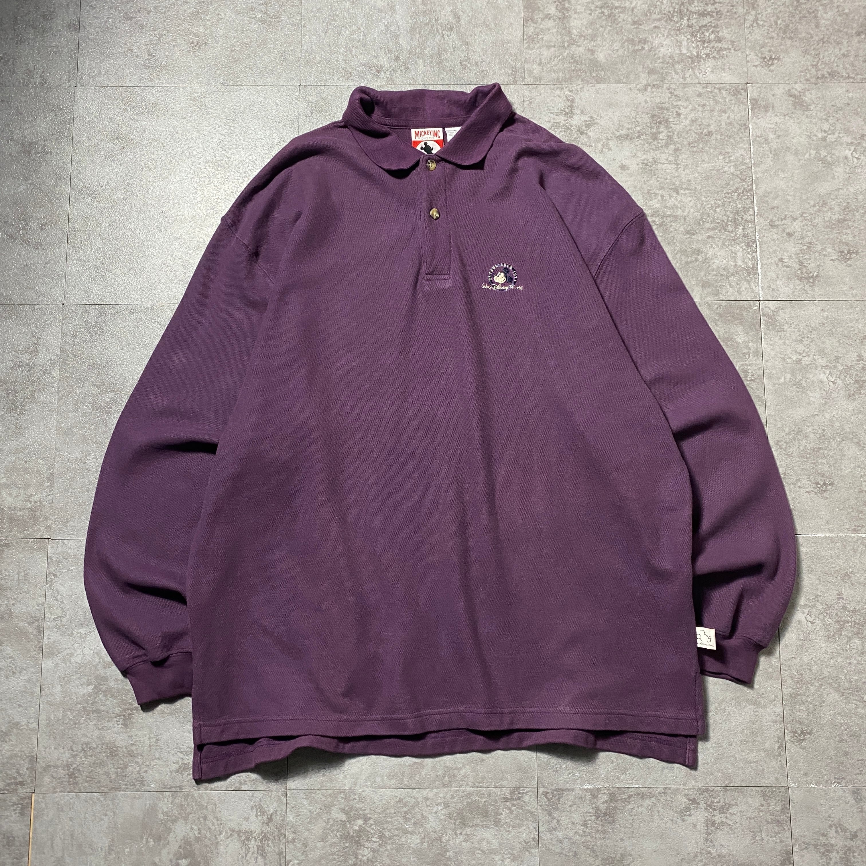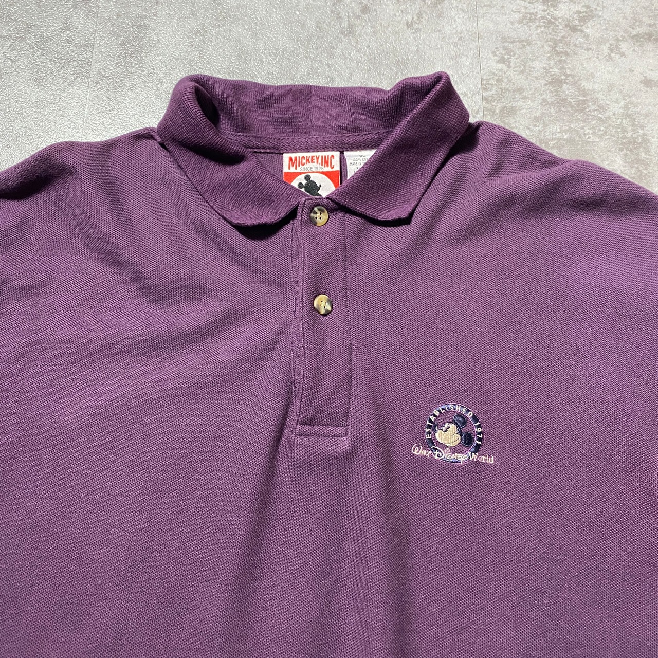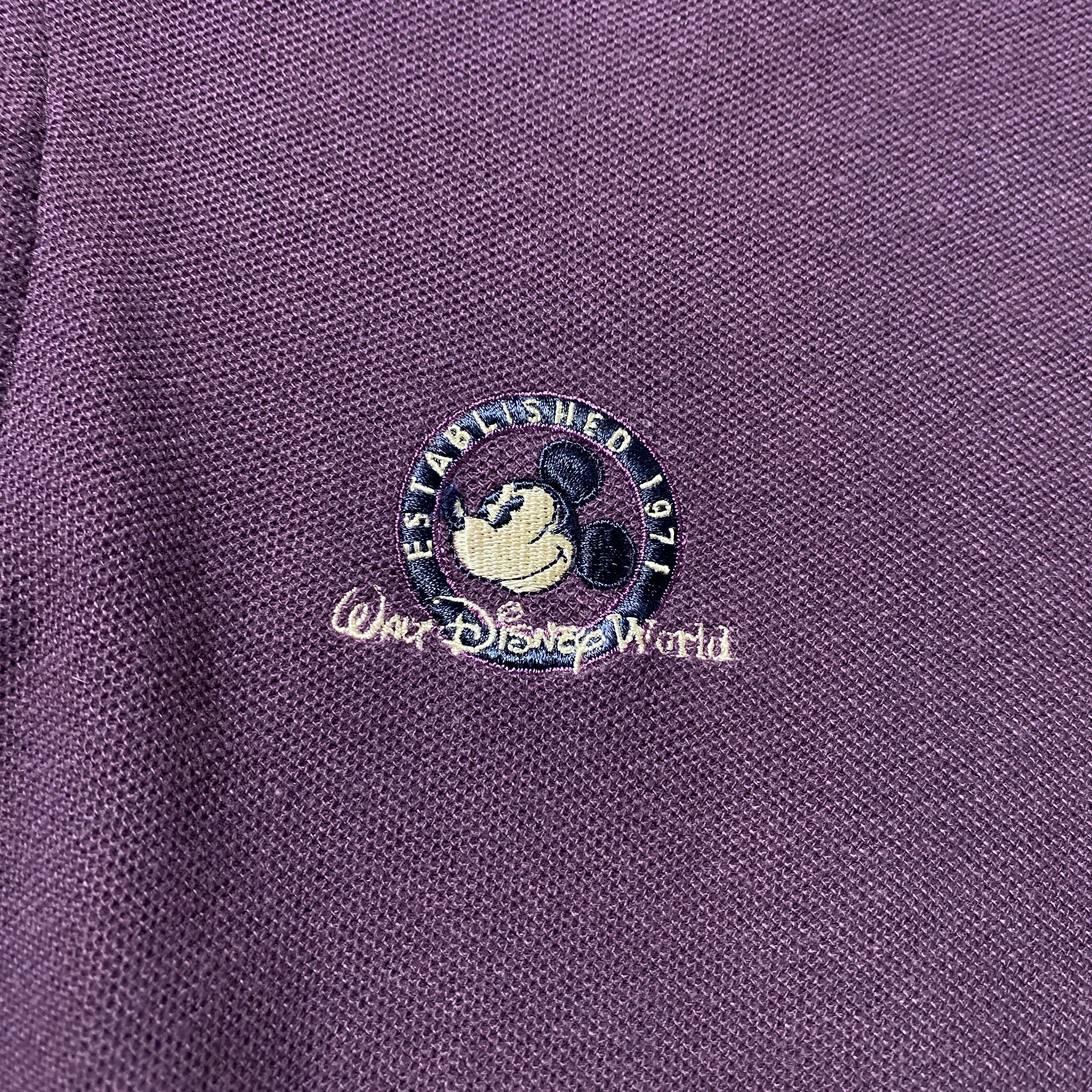 【Size:XL】90's-00's old Disney オールドディズニー 刺繍ワンポイント ミッキー ワインレッド ロンT ポロシャツ