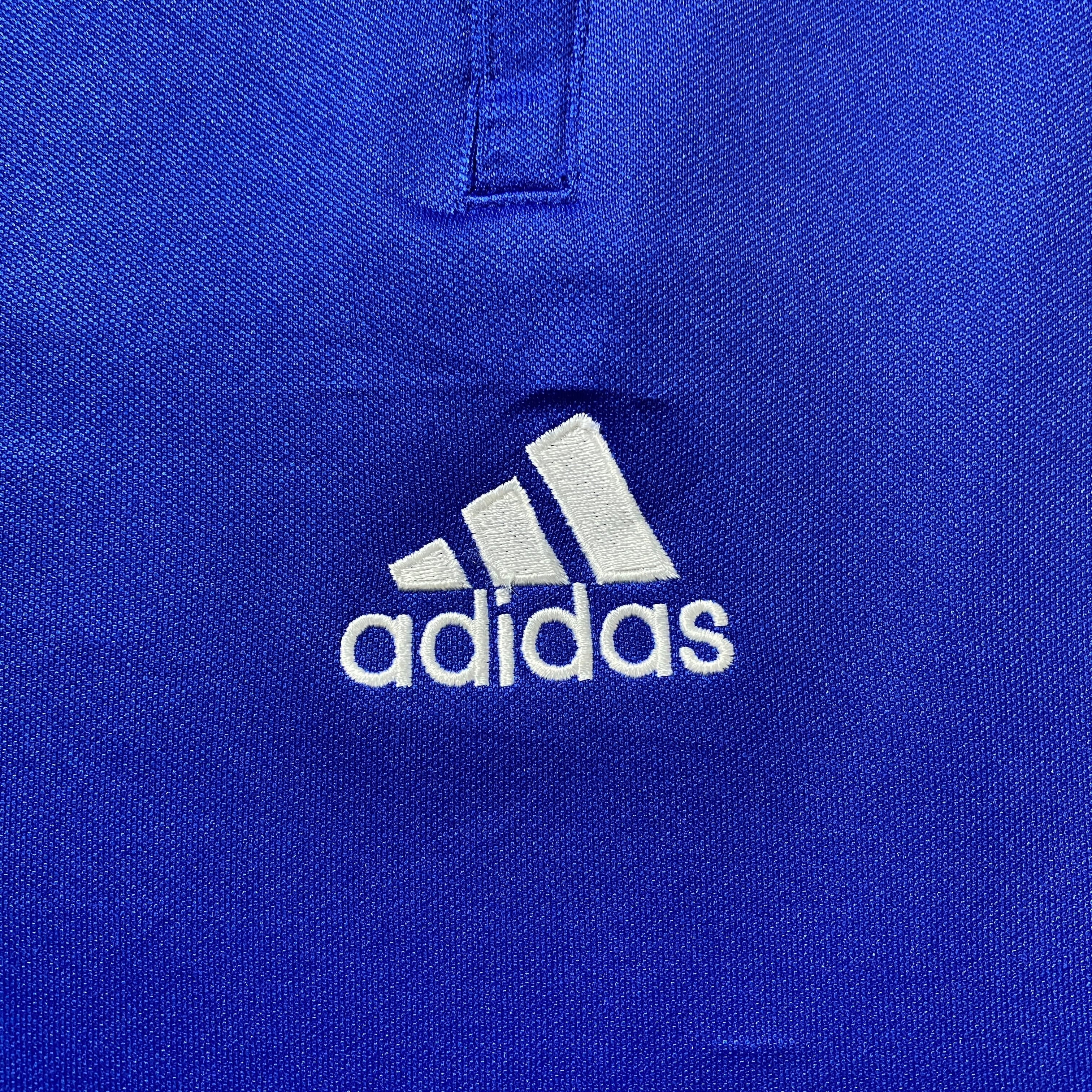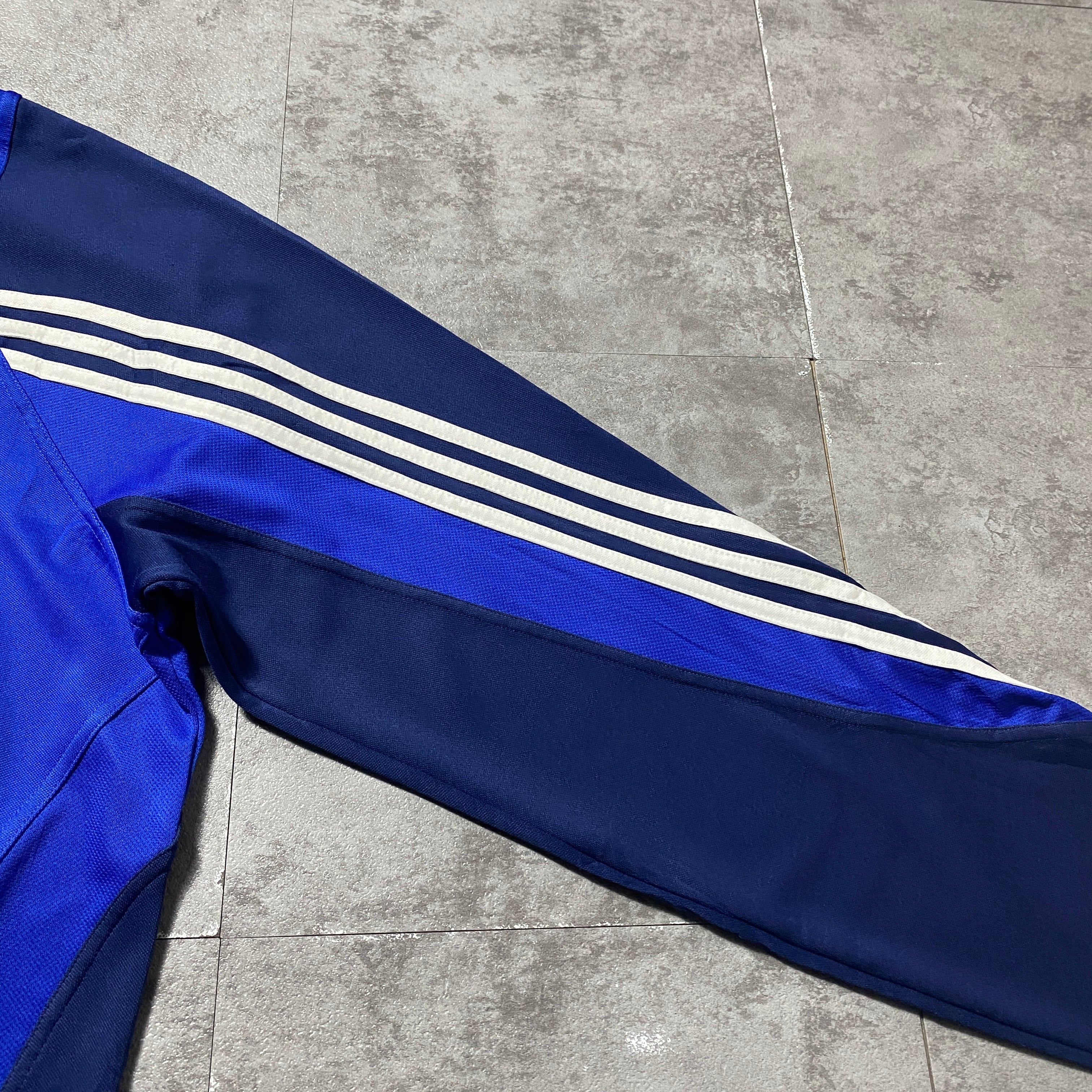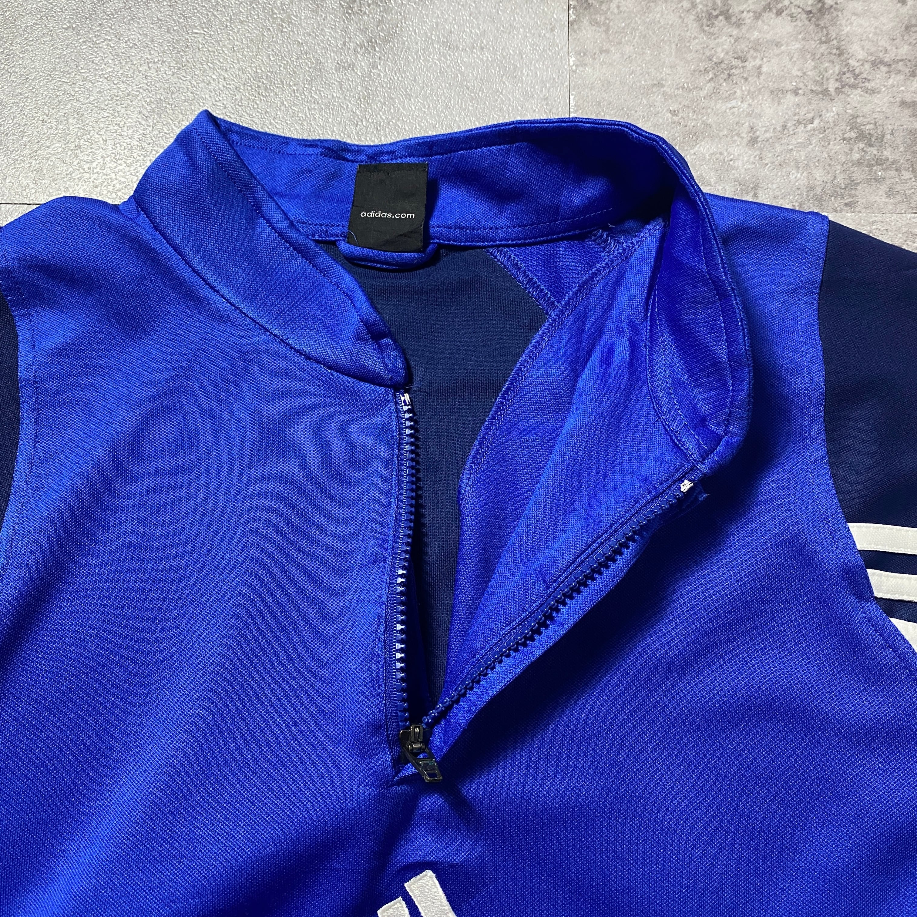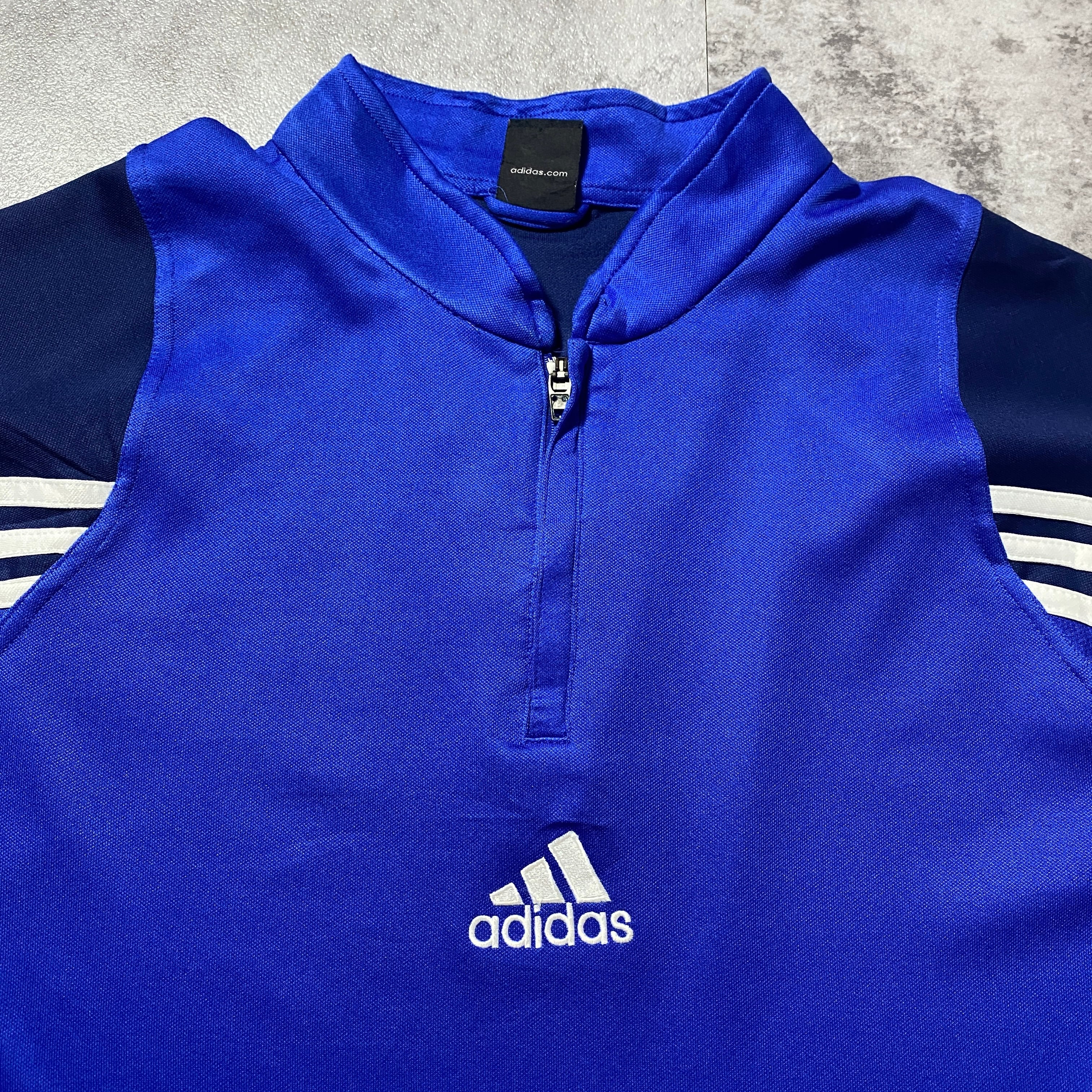 00's adidas アディダス センター刺繍 パフォーマンスロゴ ハーフジップ ブルー プルオーバー ジャージ トラックジャケット