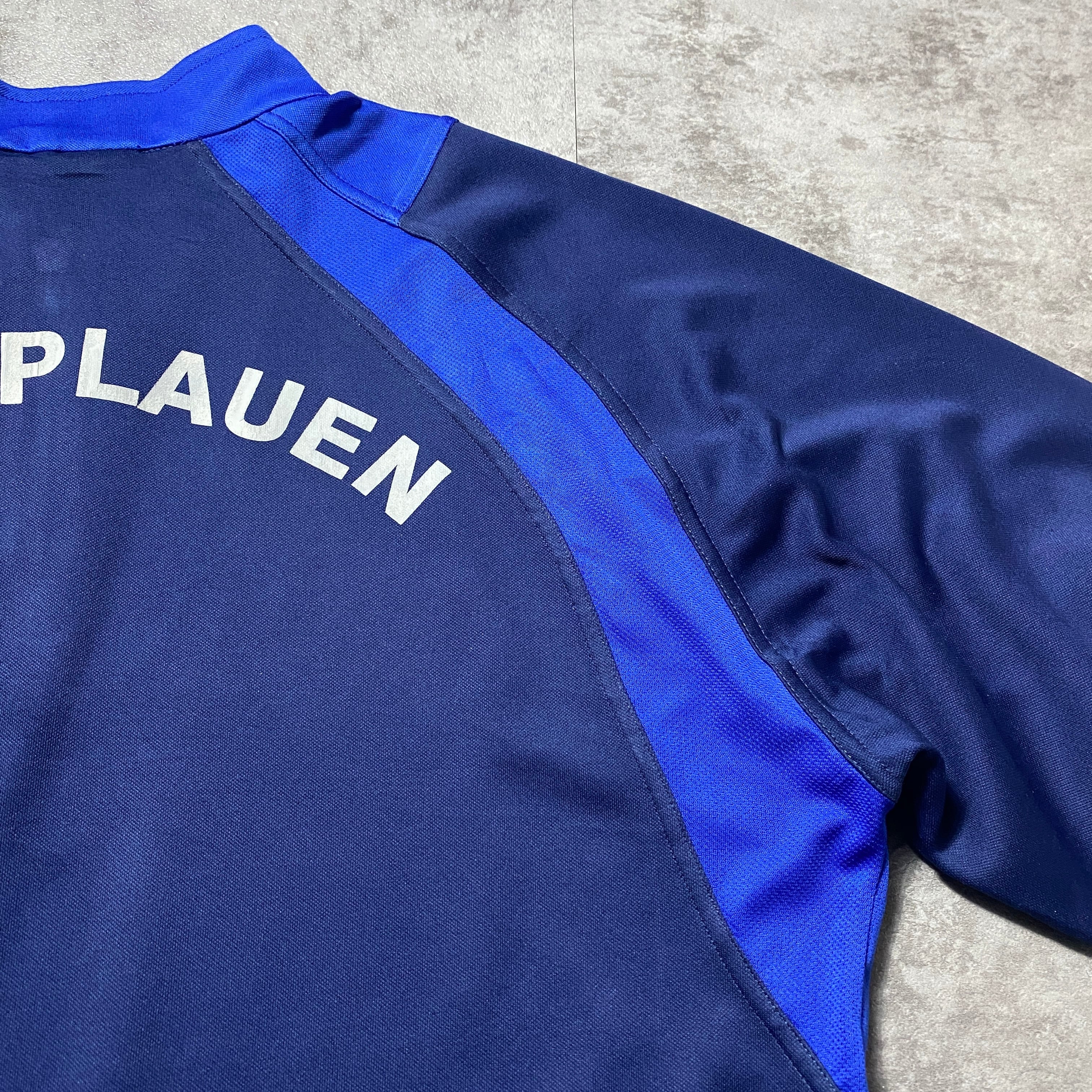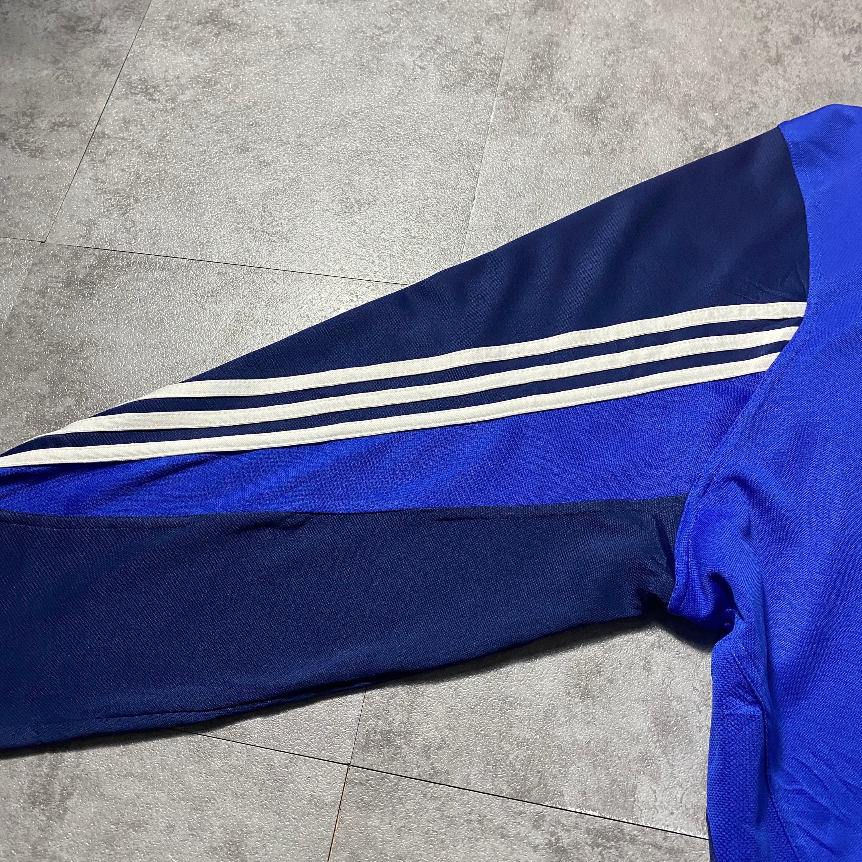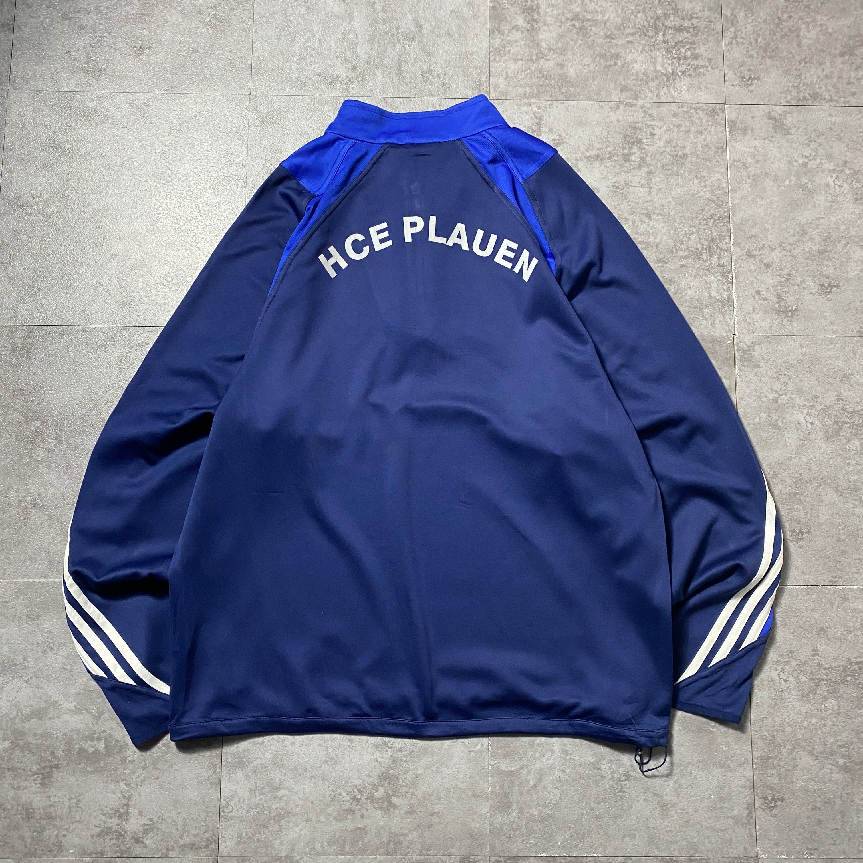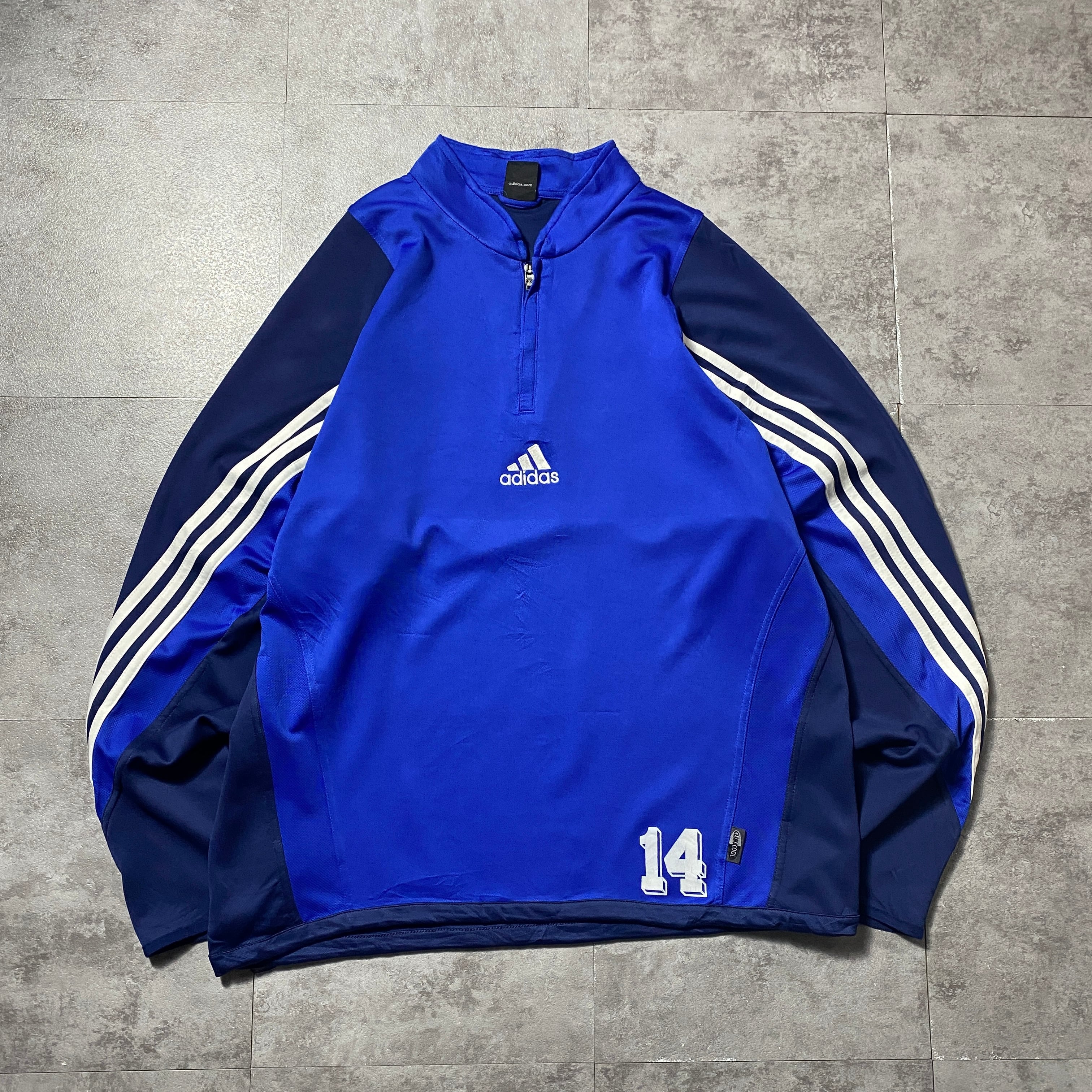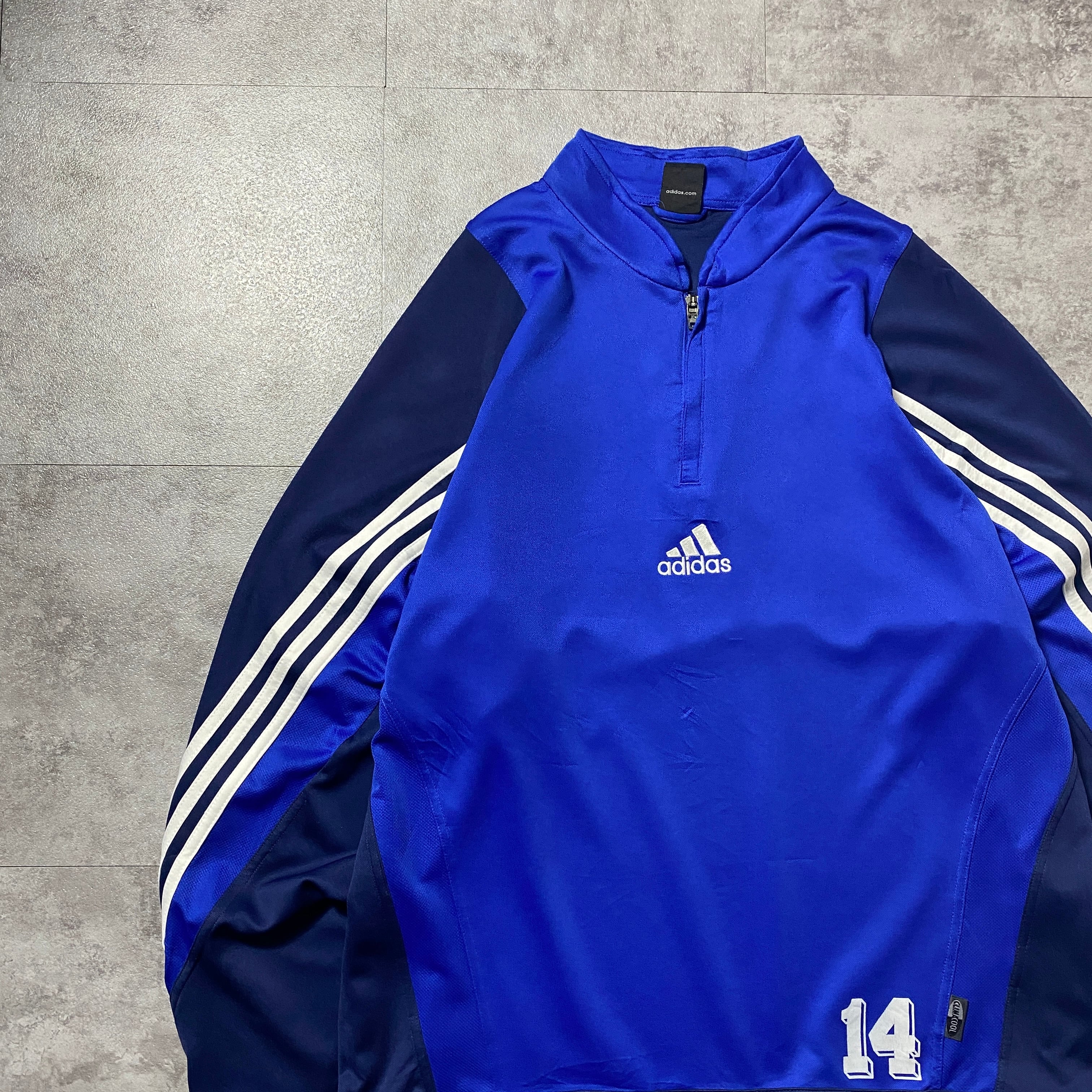 00's adidas アディダス センター刺繍 パフォーマンスロゴ ハーフジップ ブルー プルオーバー ジャージ トラックジャケット