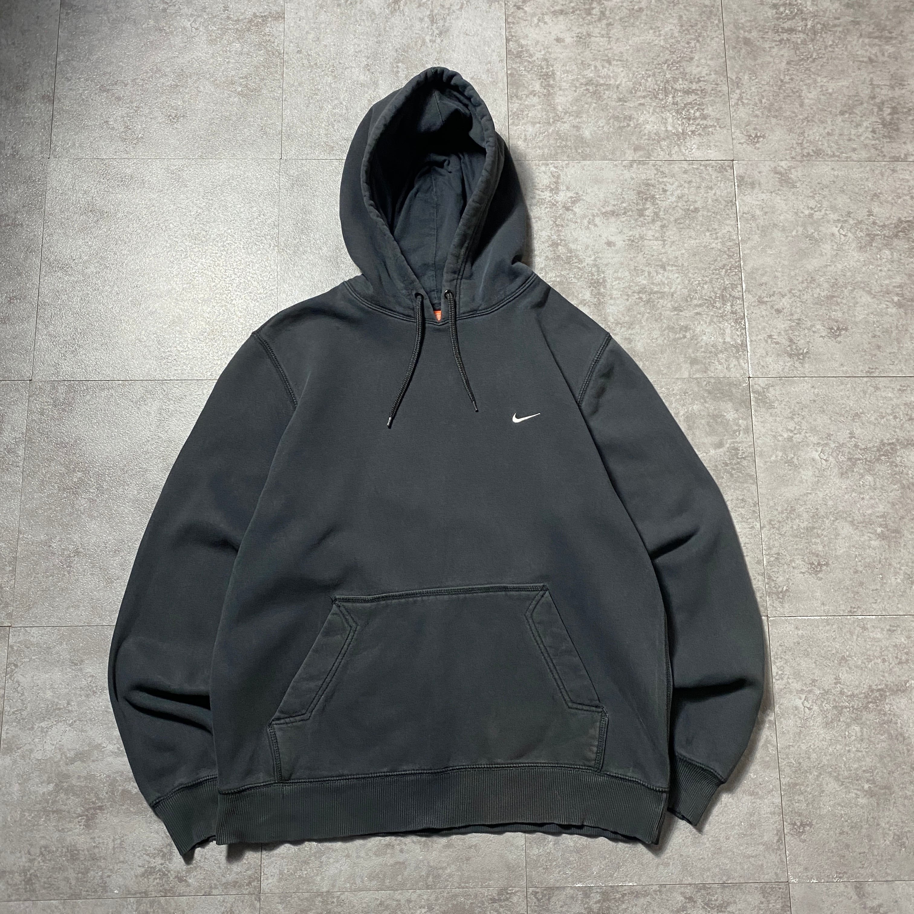 00's NIKE ナイキ スウォッシュ 刺繍ワンポイント ブラック 黒 スウェット パーカー