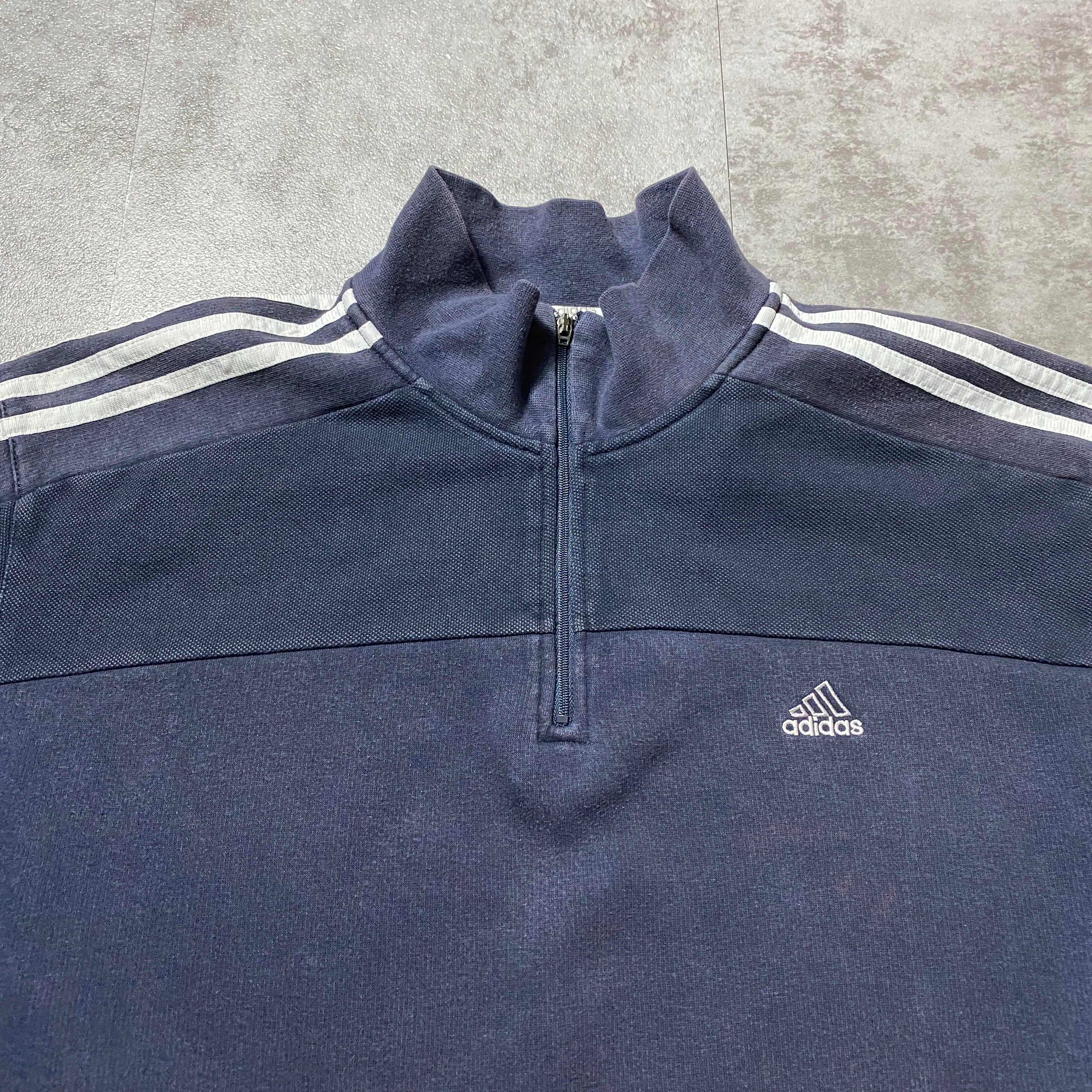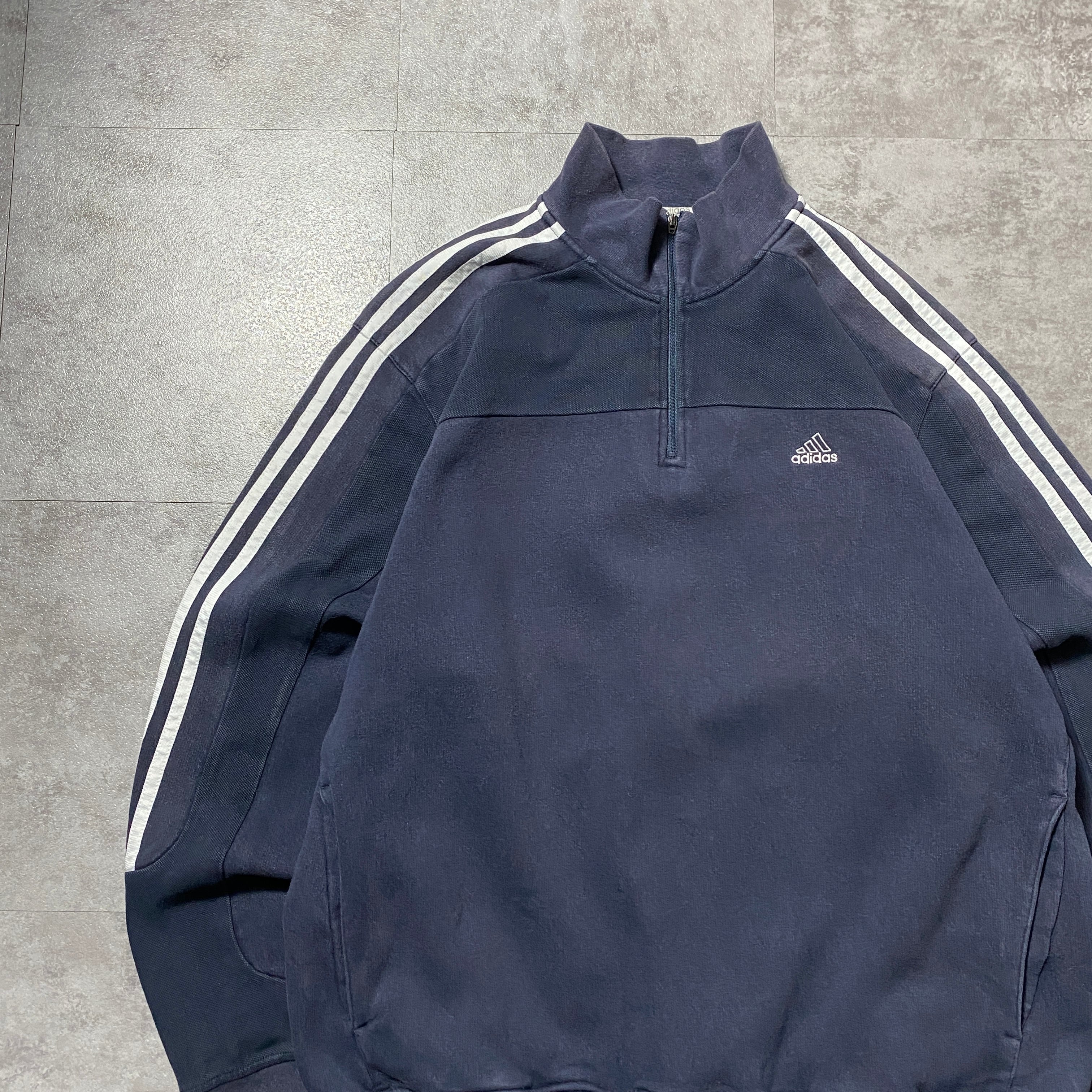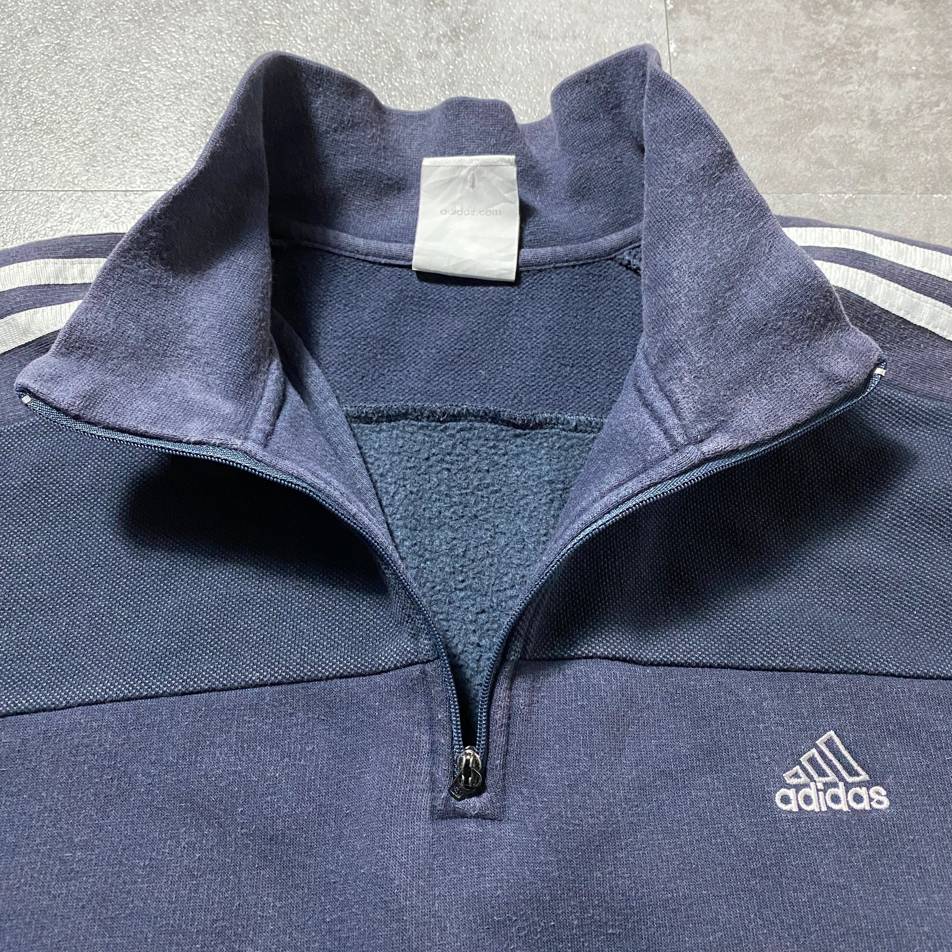 00's adidas アディダス ハーフジップ 刺繍ワンポイント パフォーマンスロゴ ネイビー スウェット トレーナー