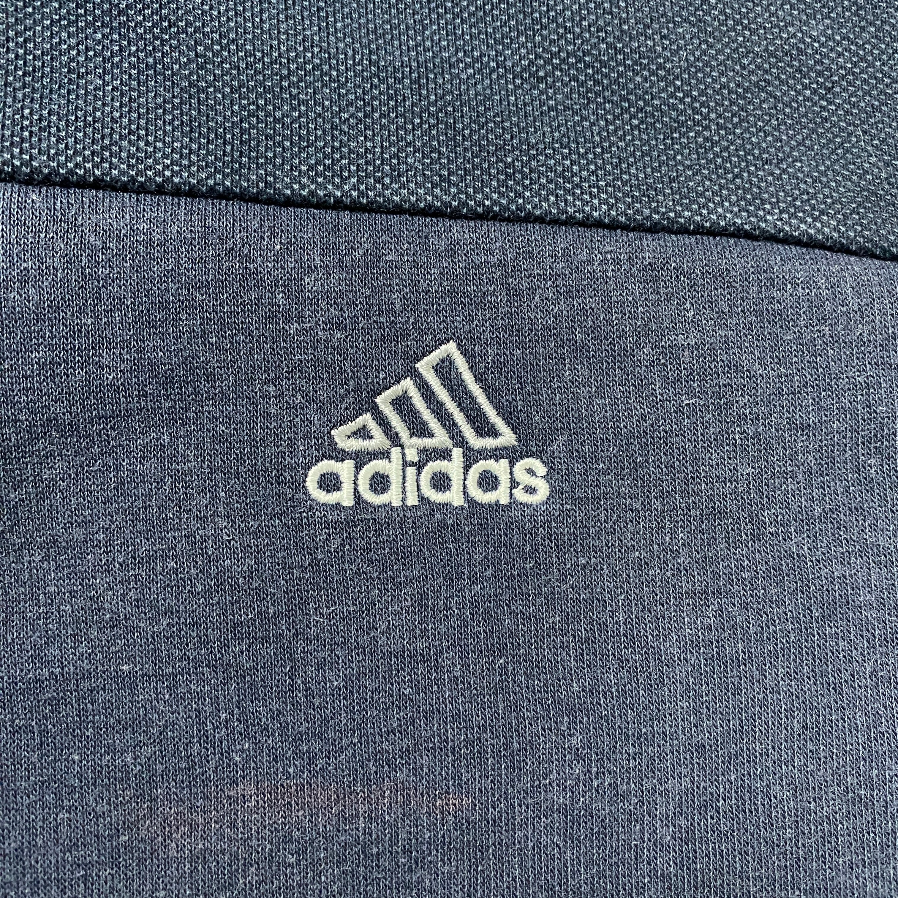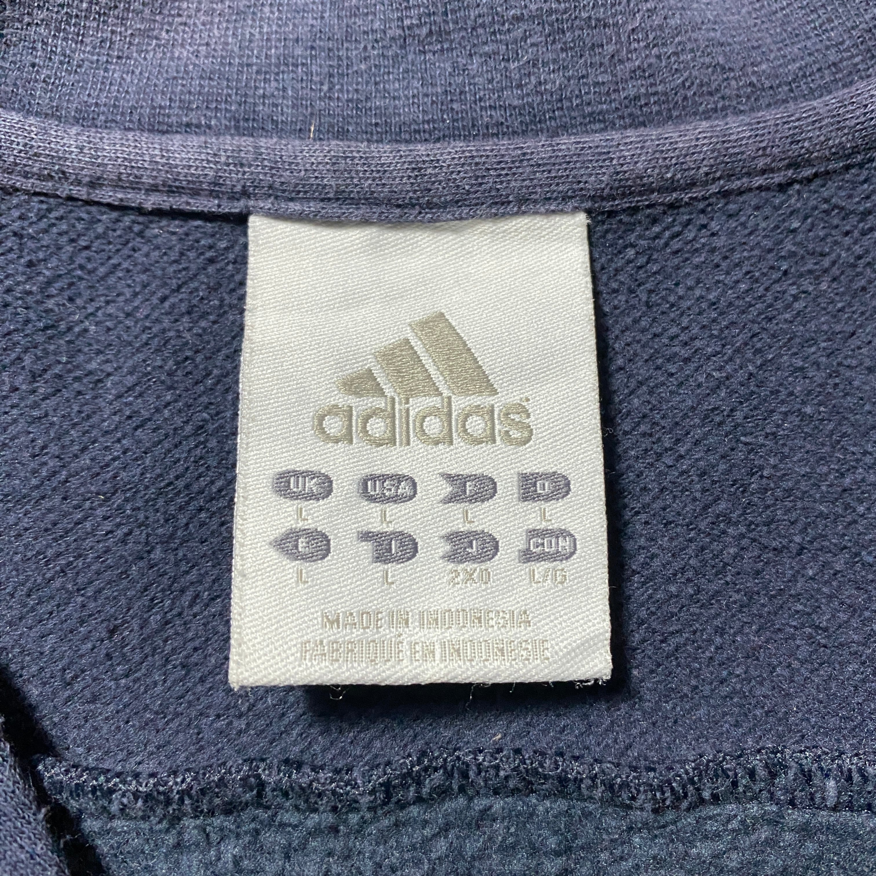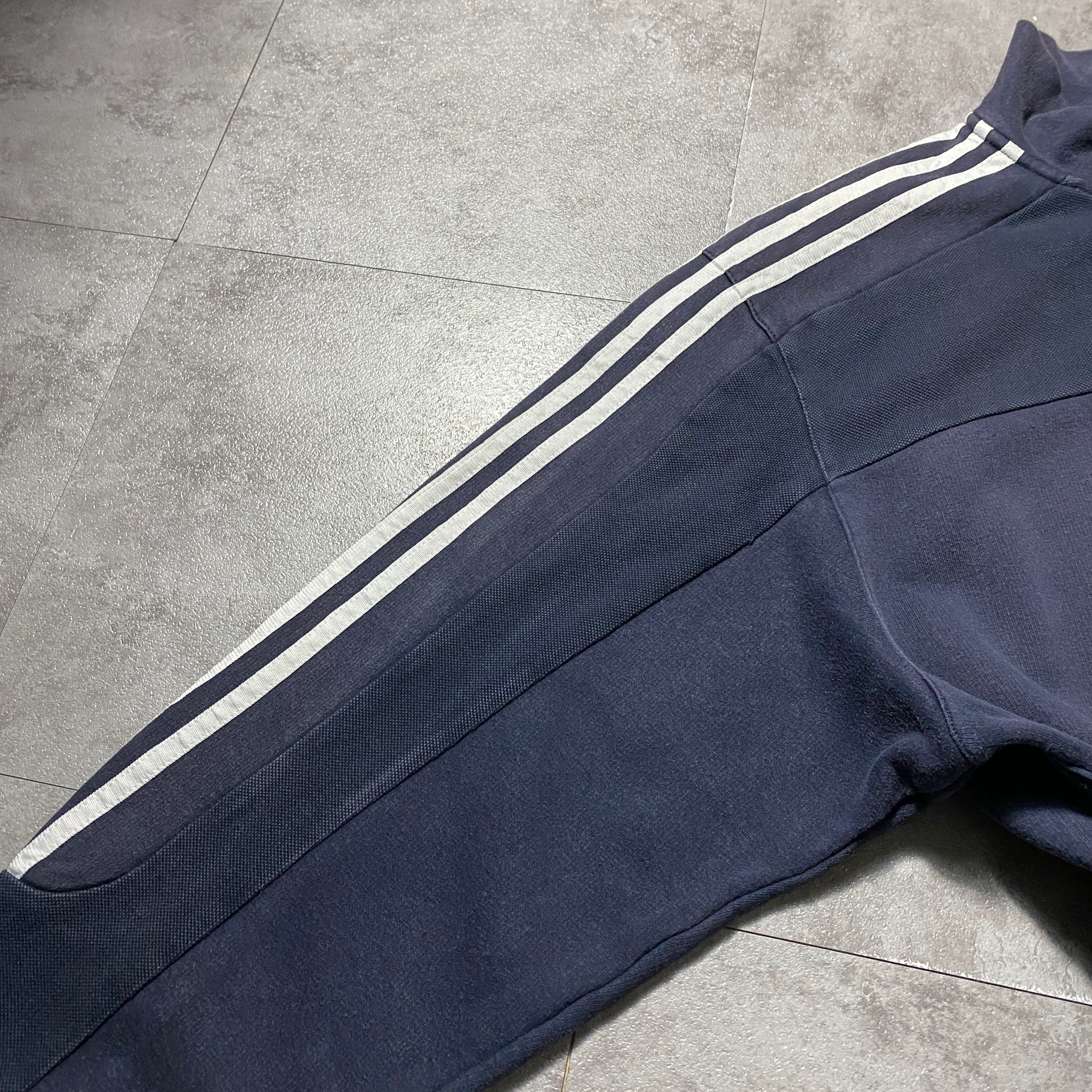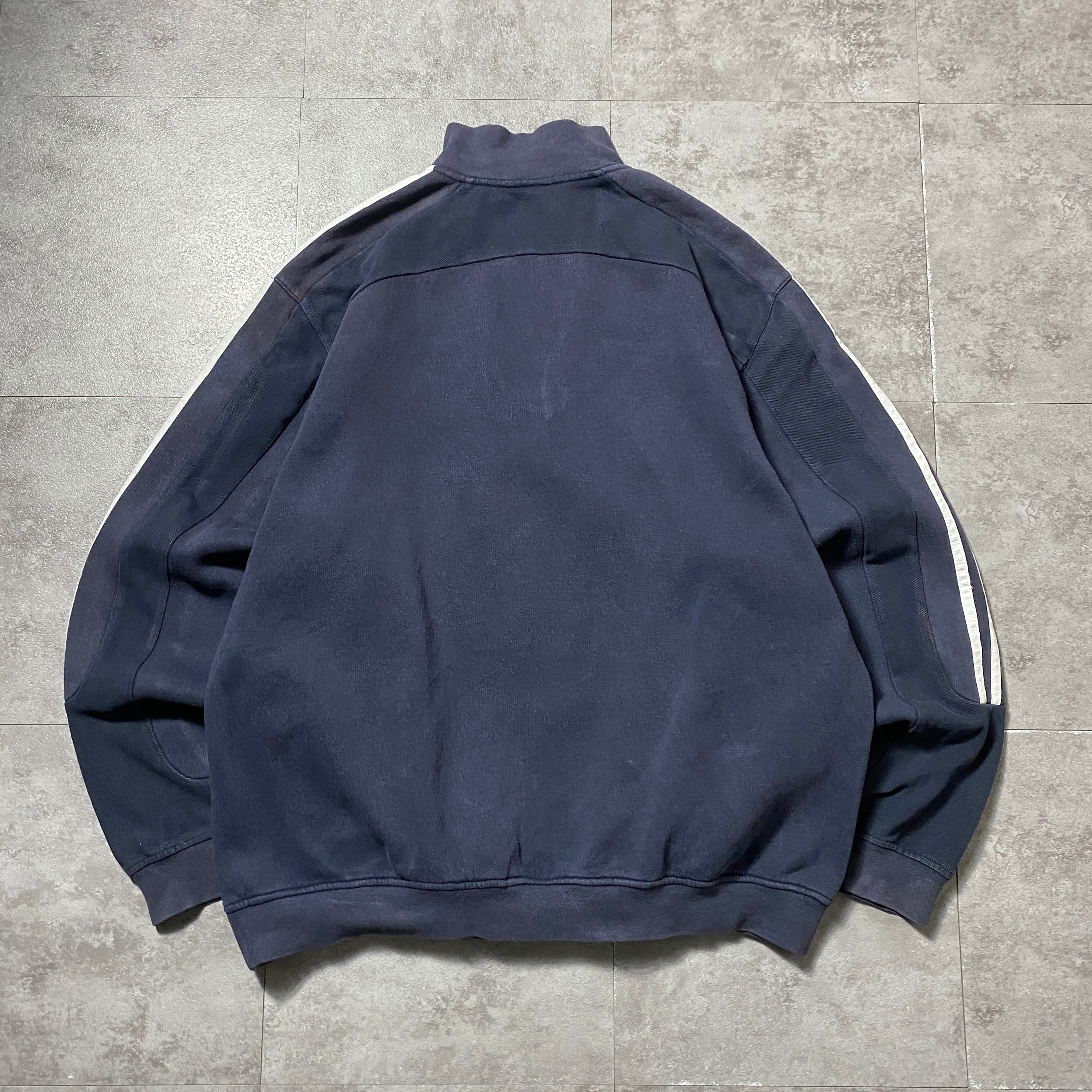 00's adidas アディダス ハーフジップ 刺繍ワンポイント パフォーマンスロゴ ネイビー スウェット トレーナー