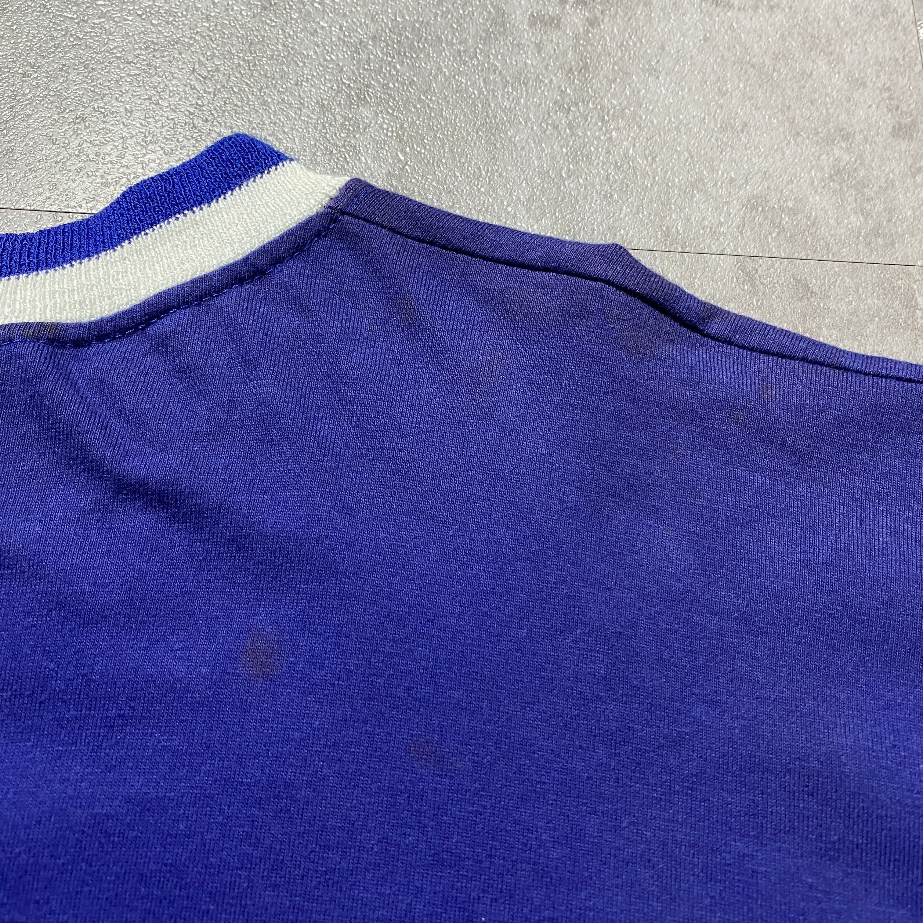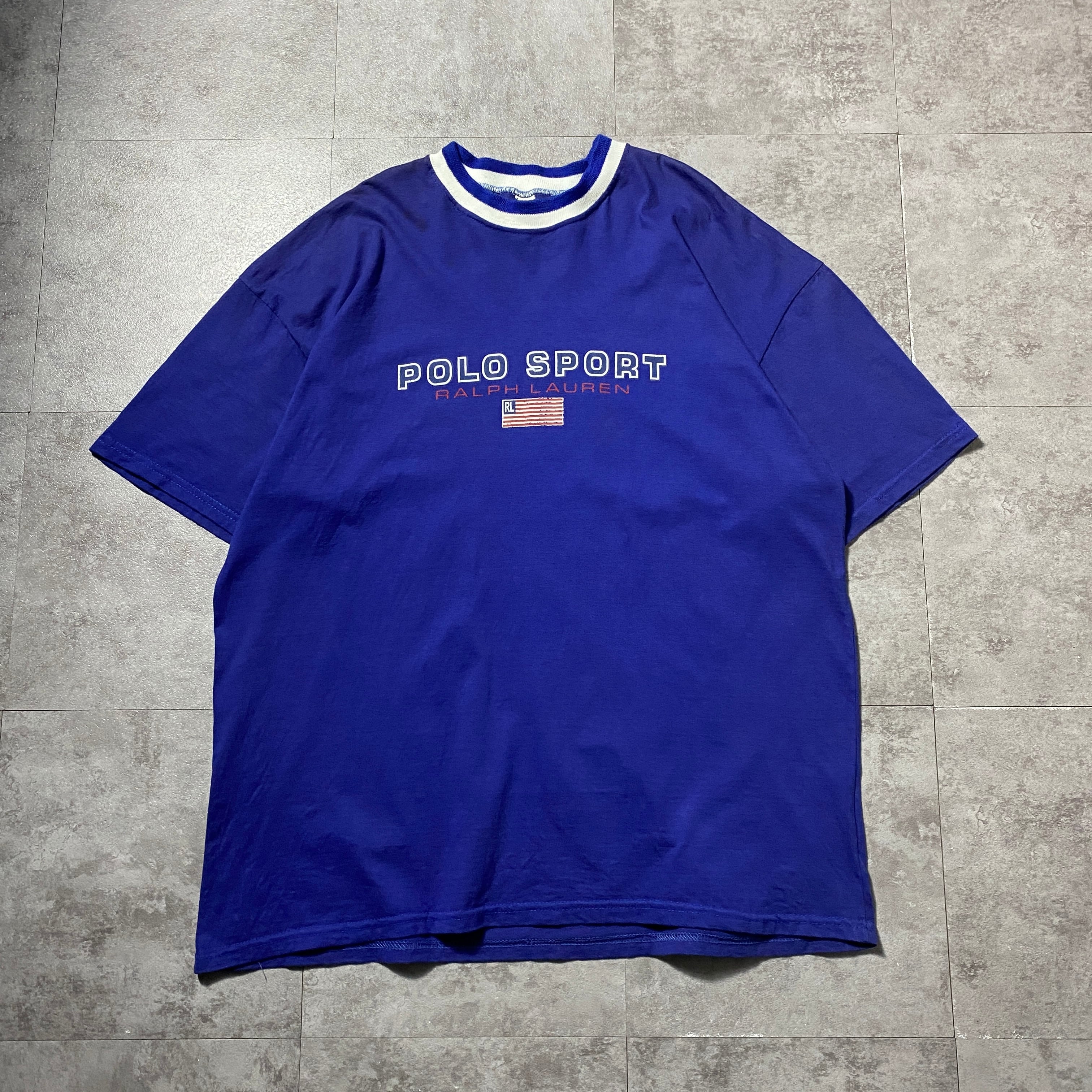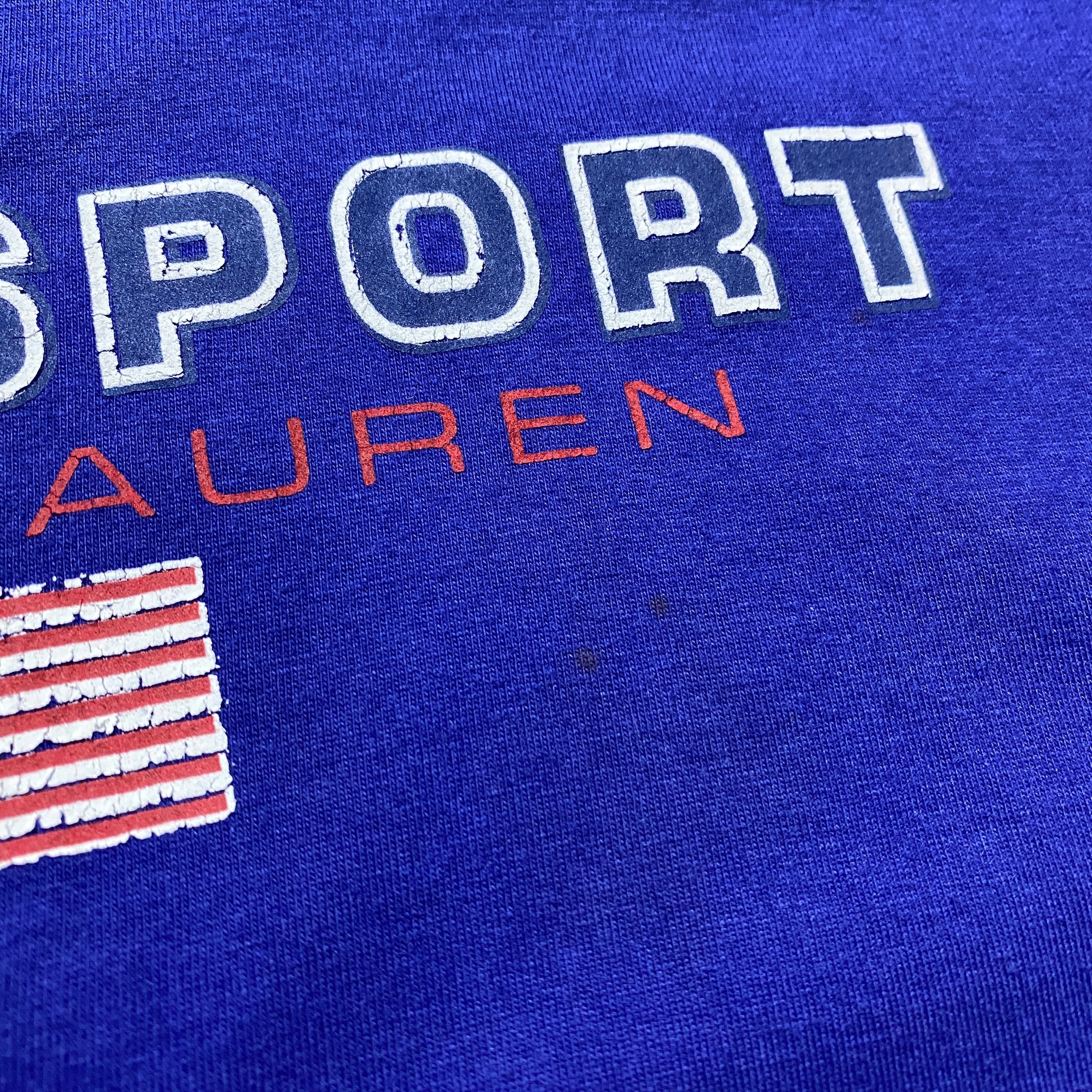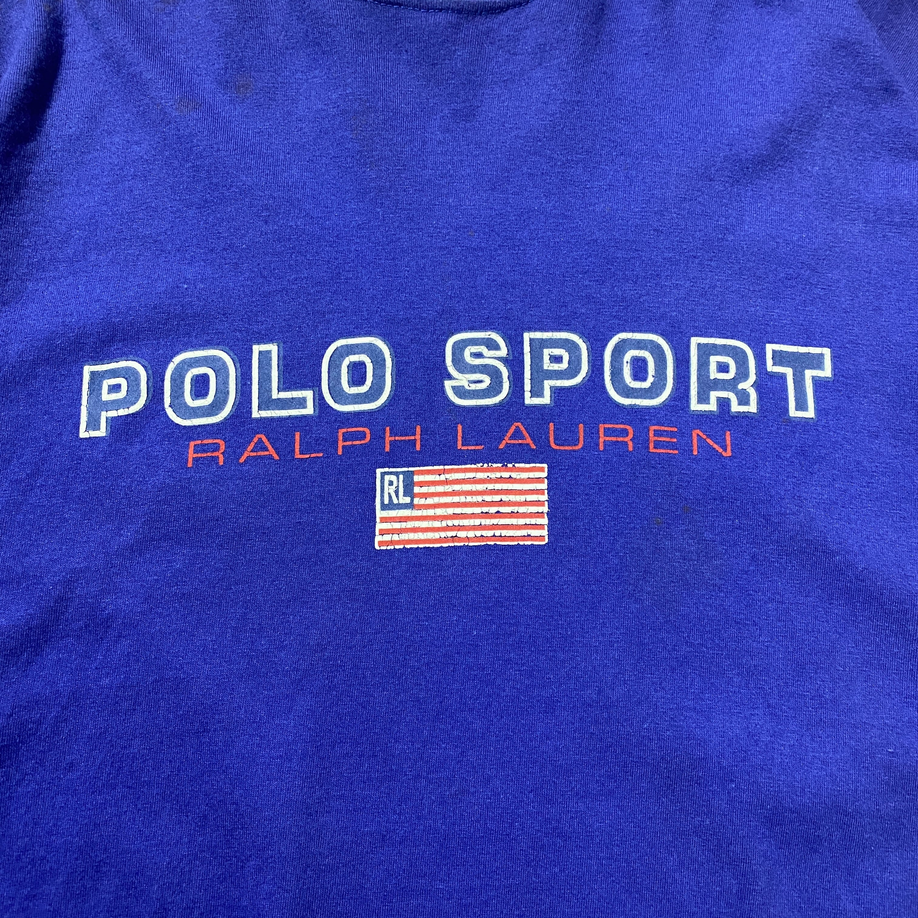 90's Ralph Lauren Polo Sport boot leg ラルフローレン ポロスポーツ ブート プリント ラインリブ ブルー Tシャツ