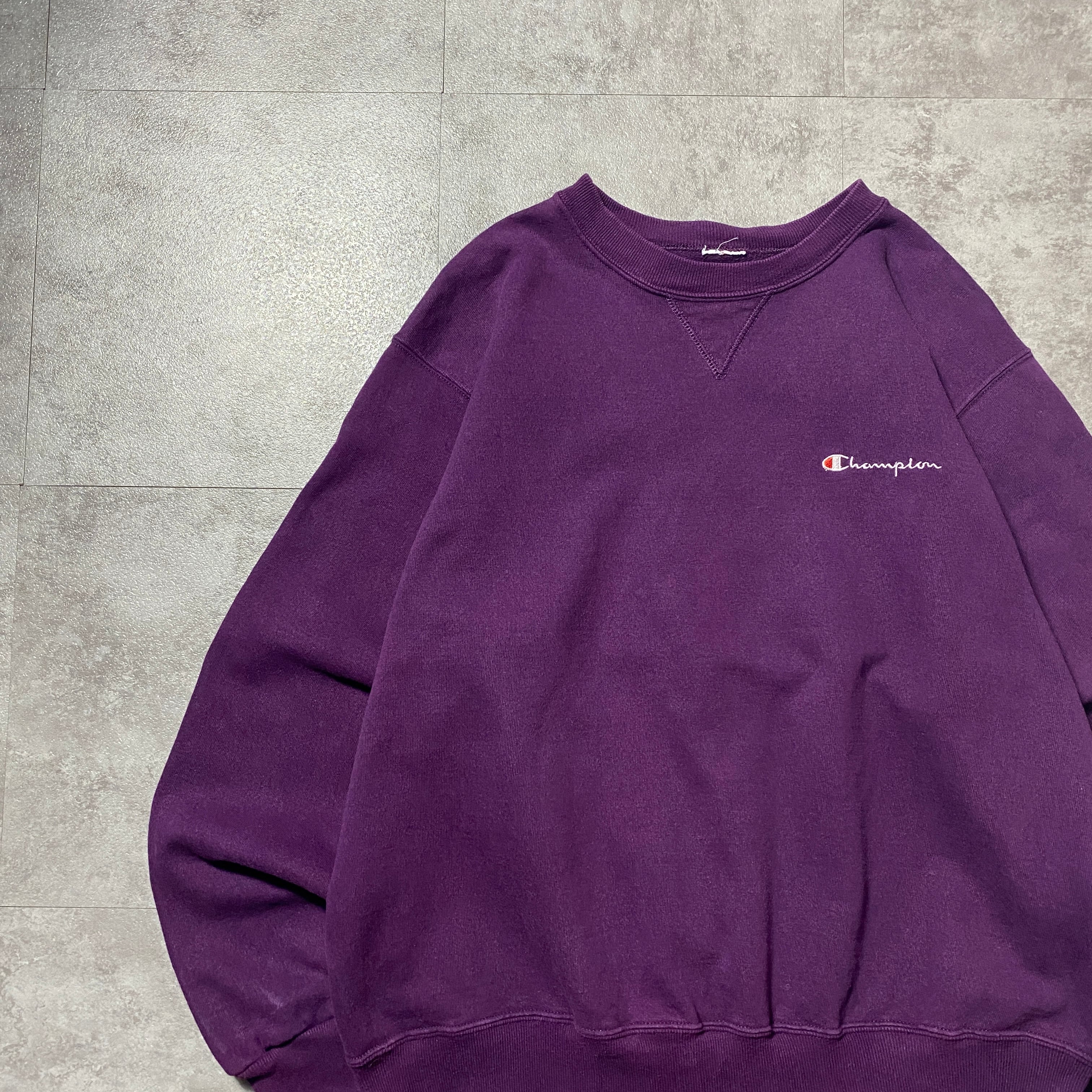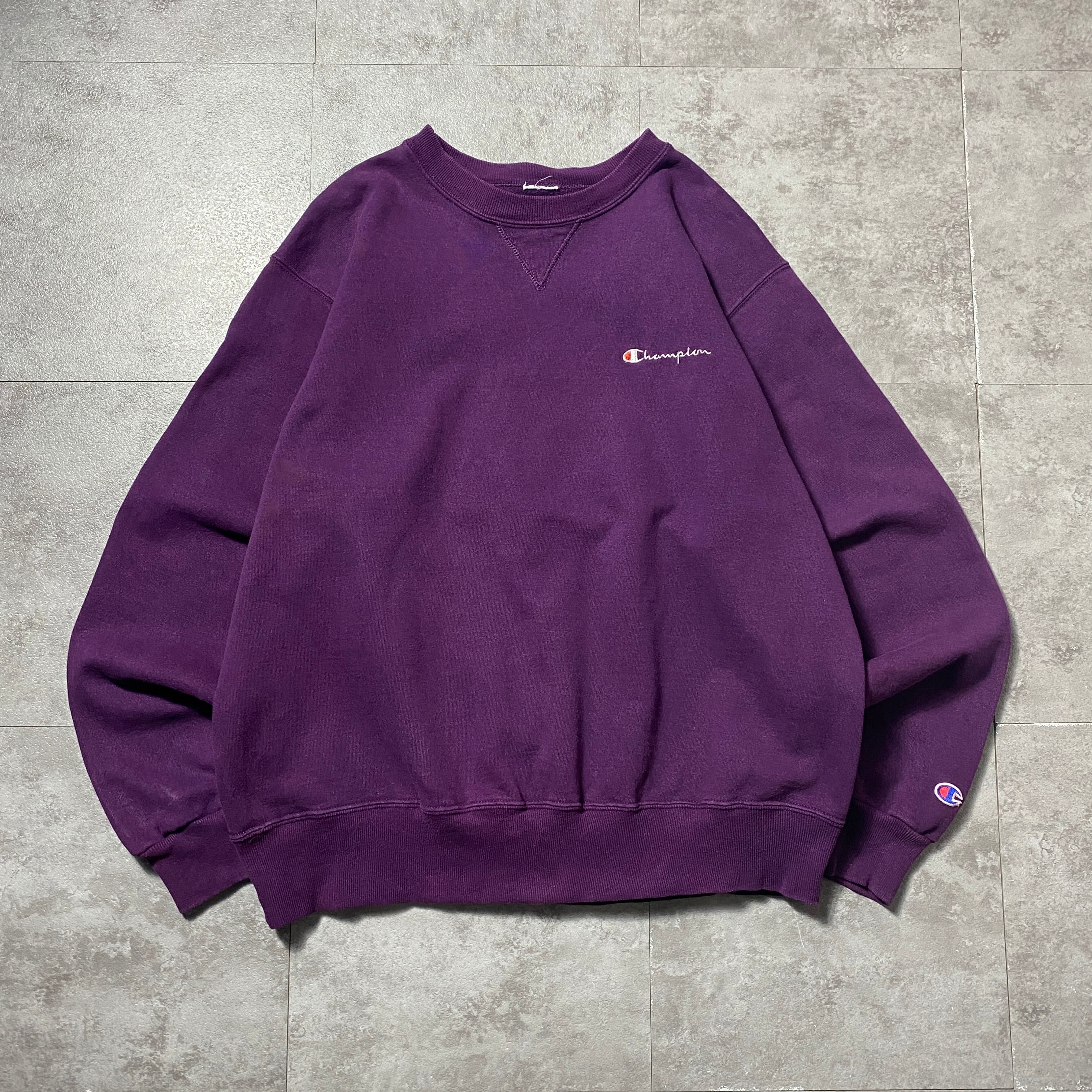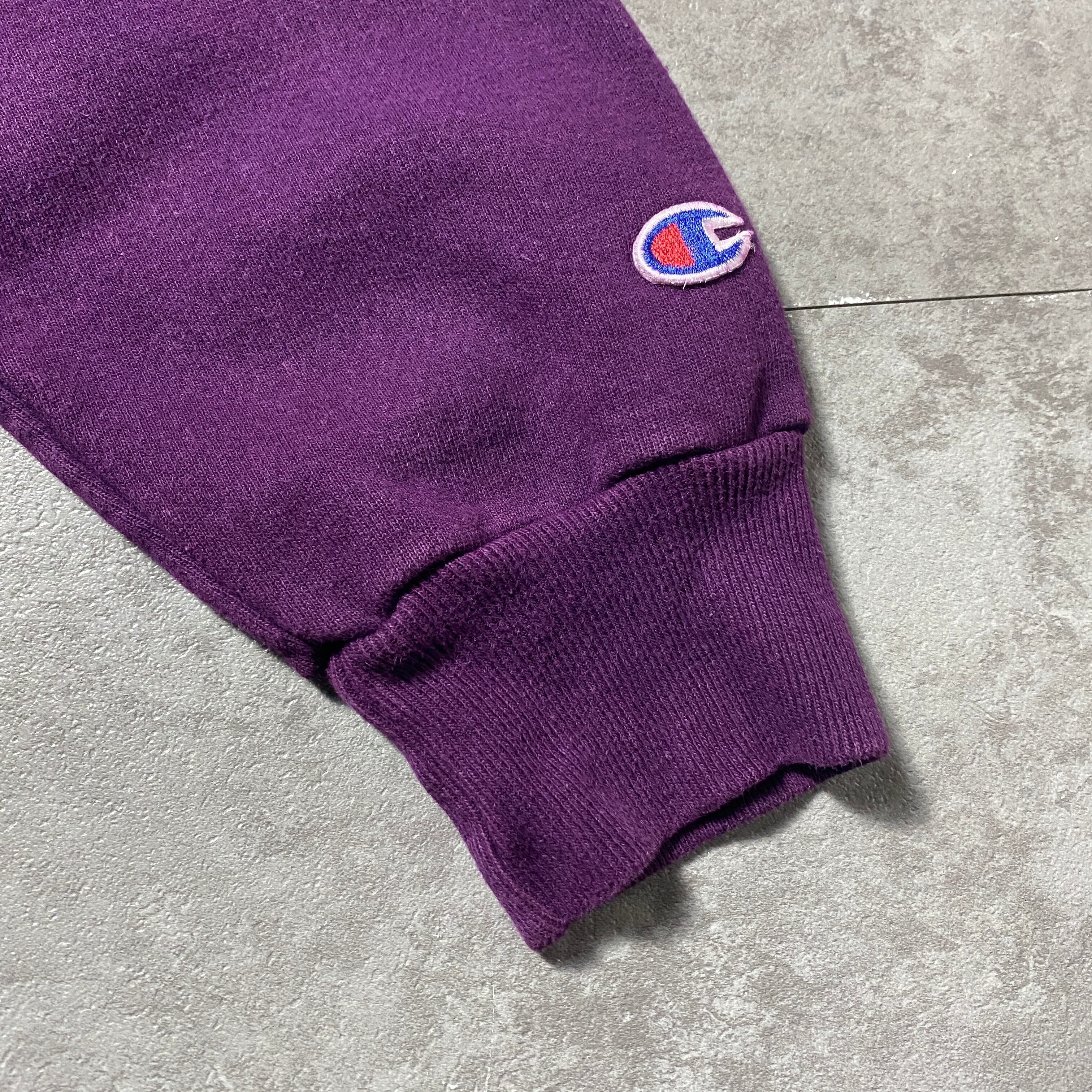 90's Champion チャンピオン 刺繍ワンポイント 前V パープル スウェット トレーナー
