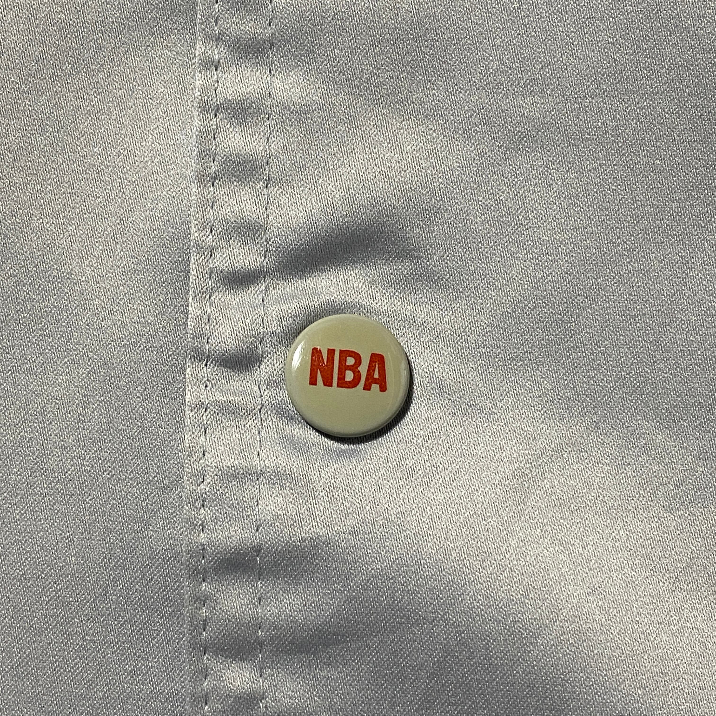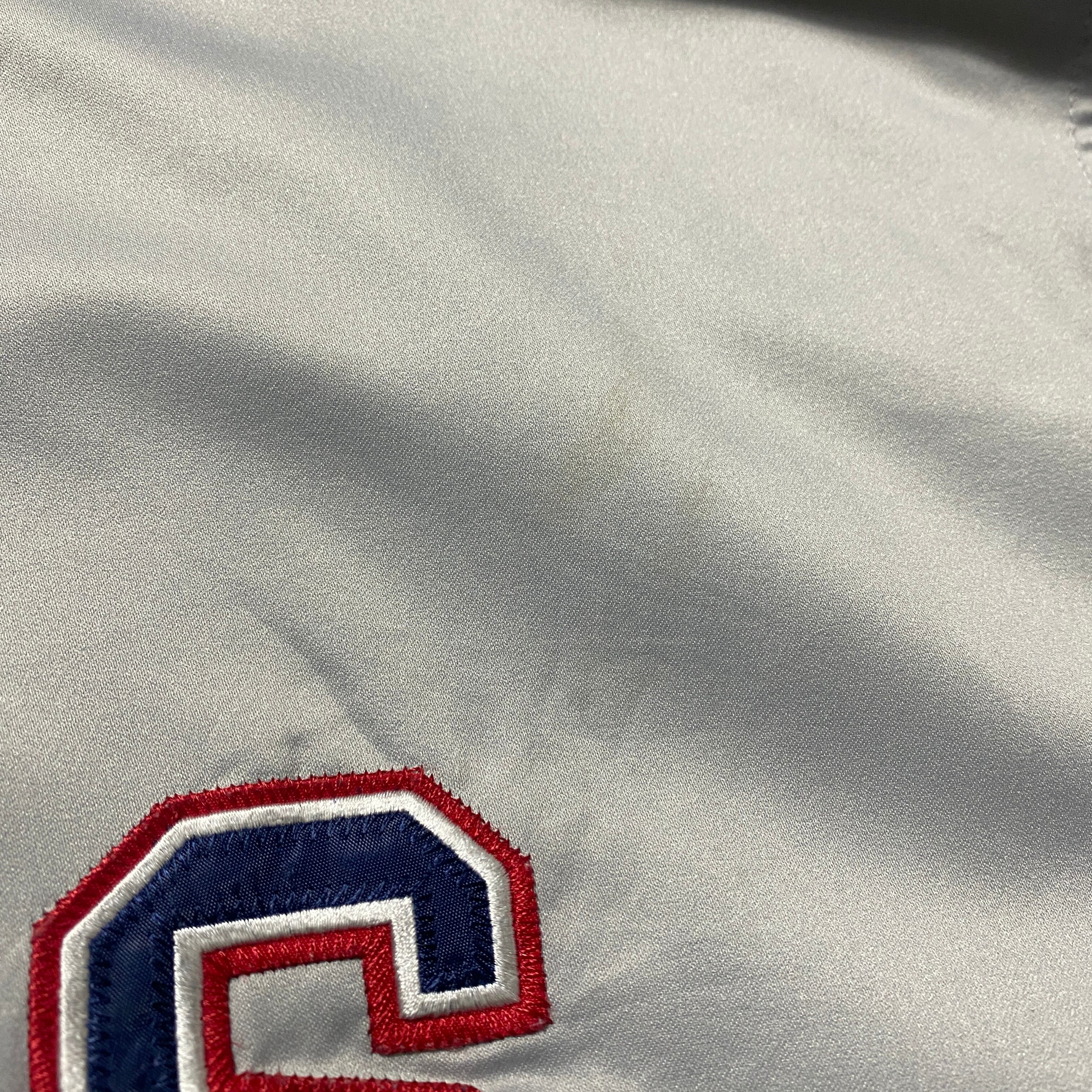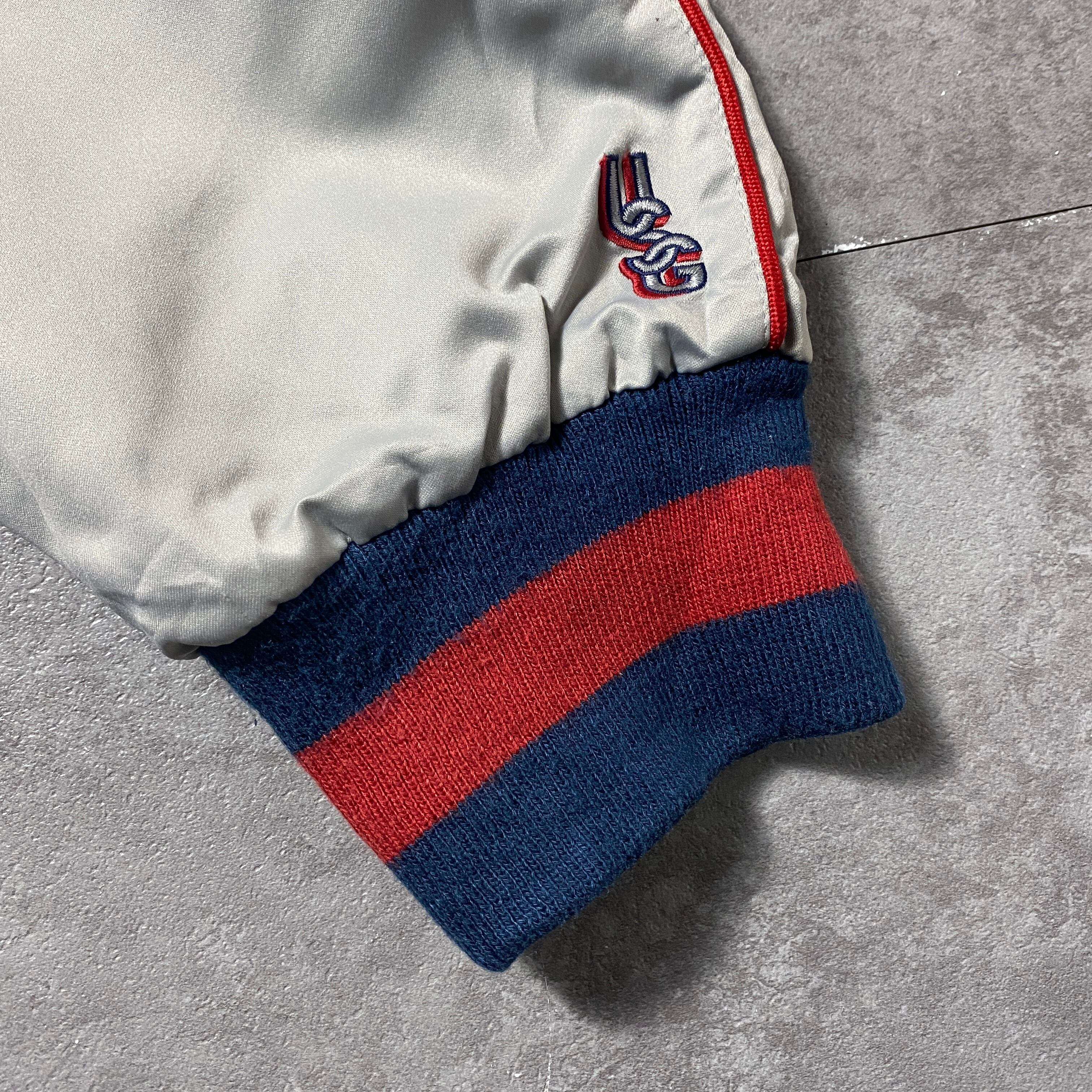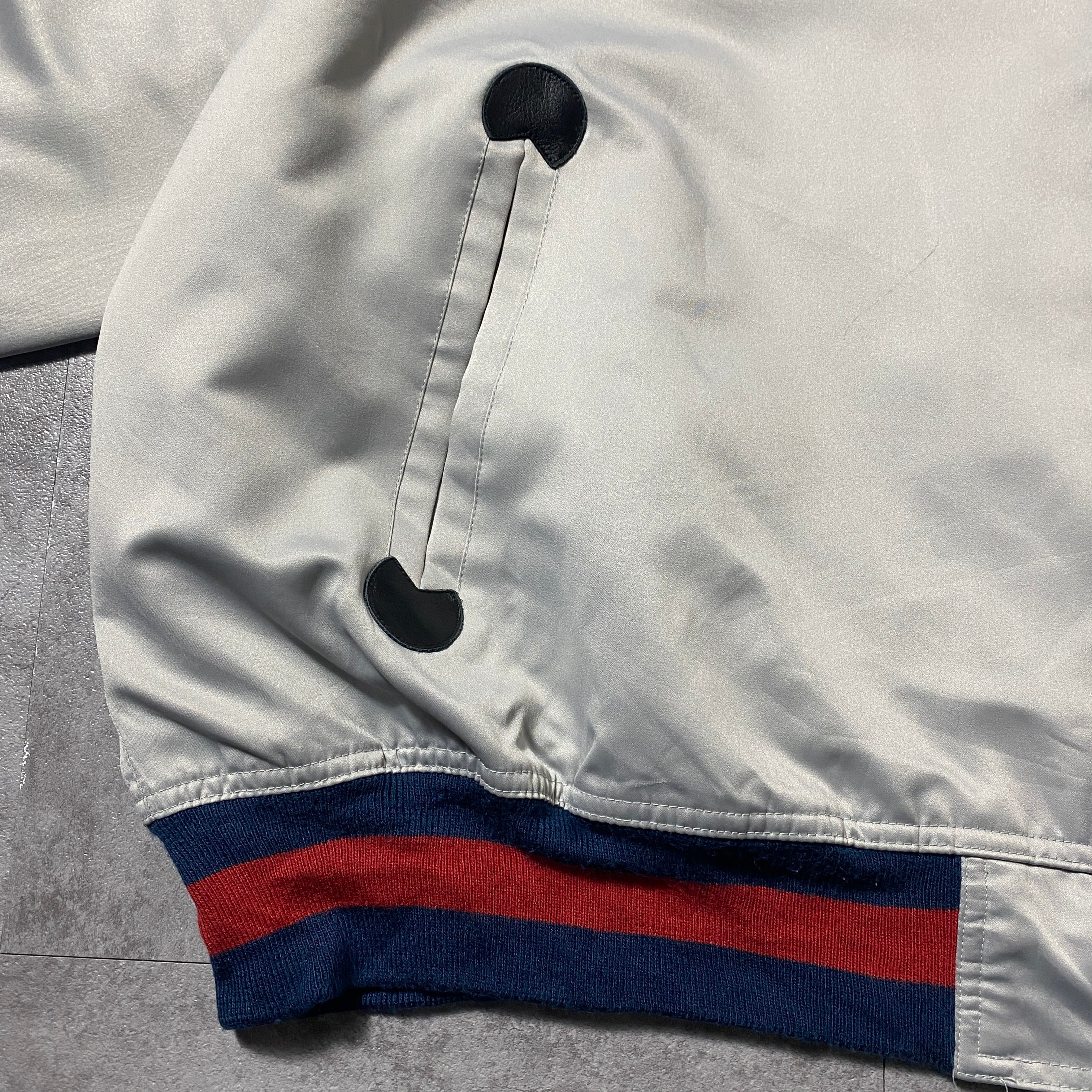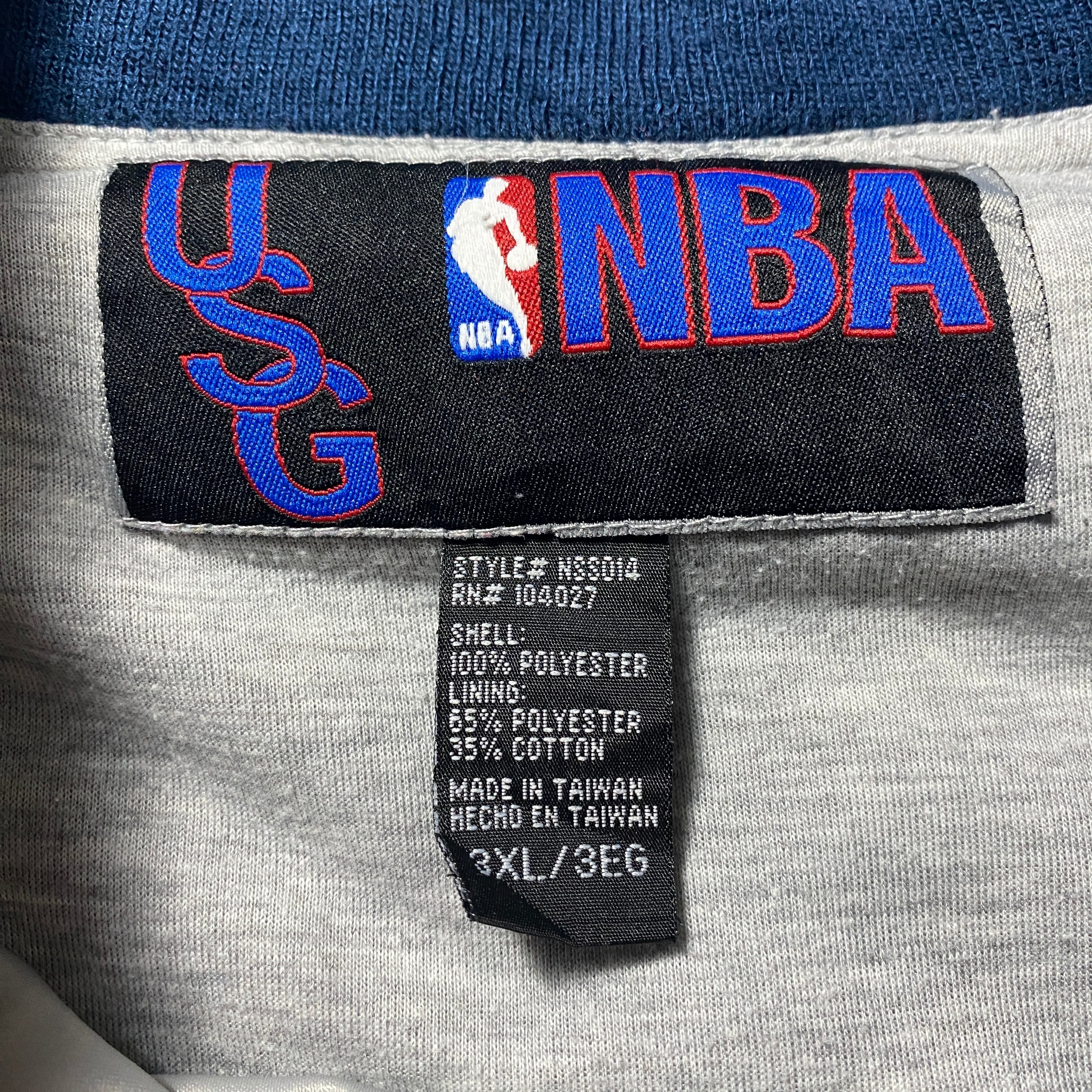 【Size:3XL】90's NBA New Jersey NETS ニュージャージー・ネッツ 刺繍両面ロゴ ラインリブ シルバー ナイロンジャケット スタジャン