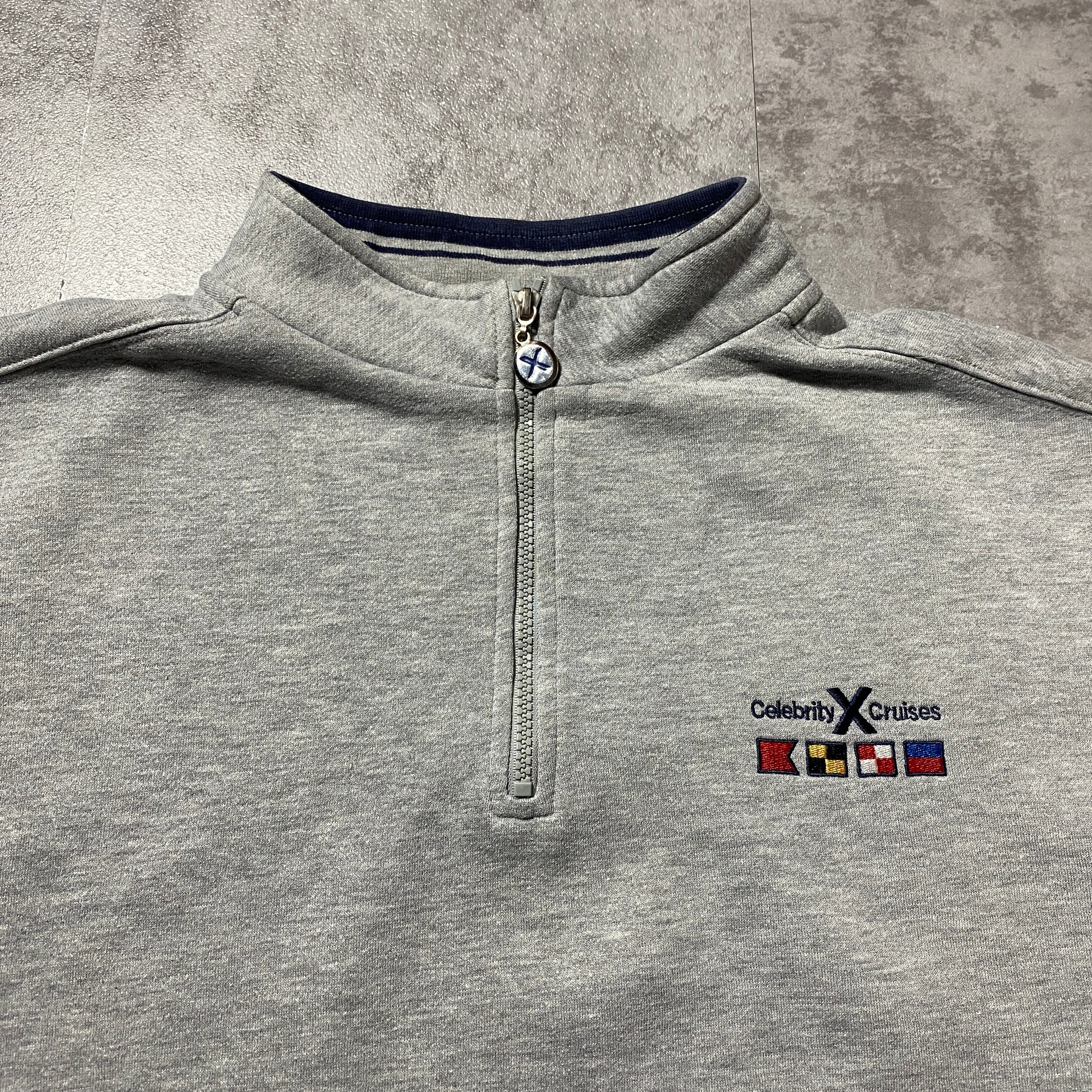 【Size:XXL】Celebrity Cruises セレブリティクライシス ハーフジップ 刺繍ワンポイント グレー スウェット トレーナー
