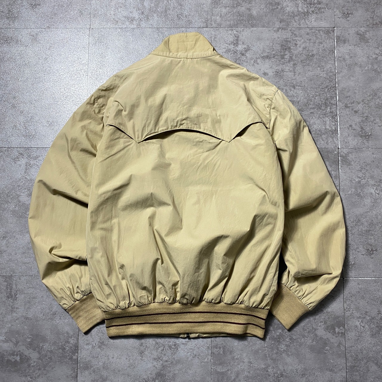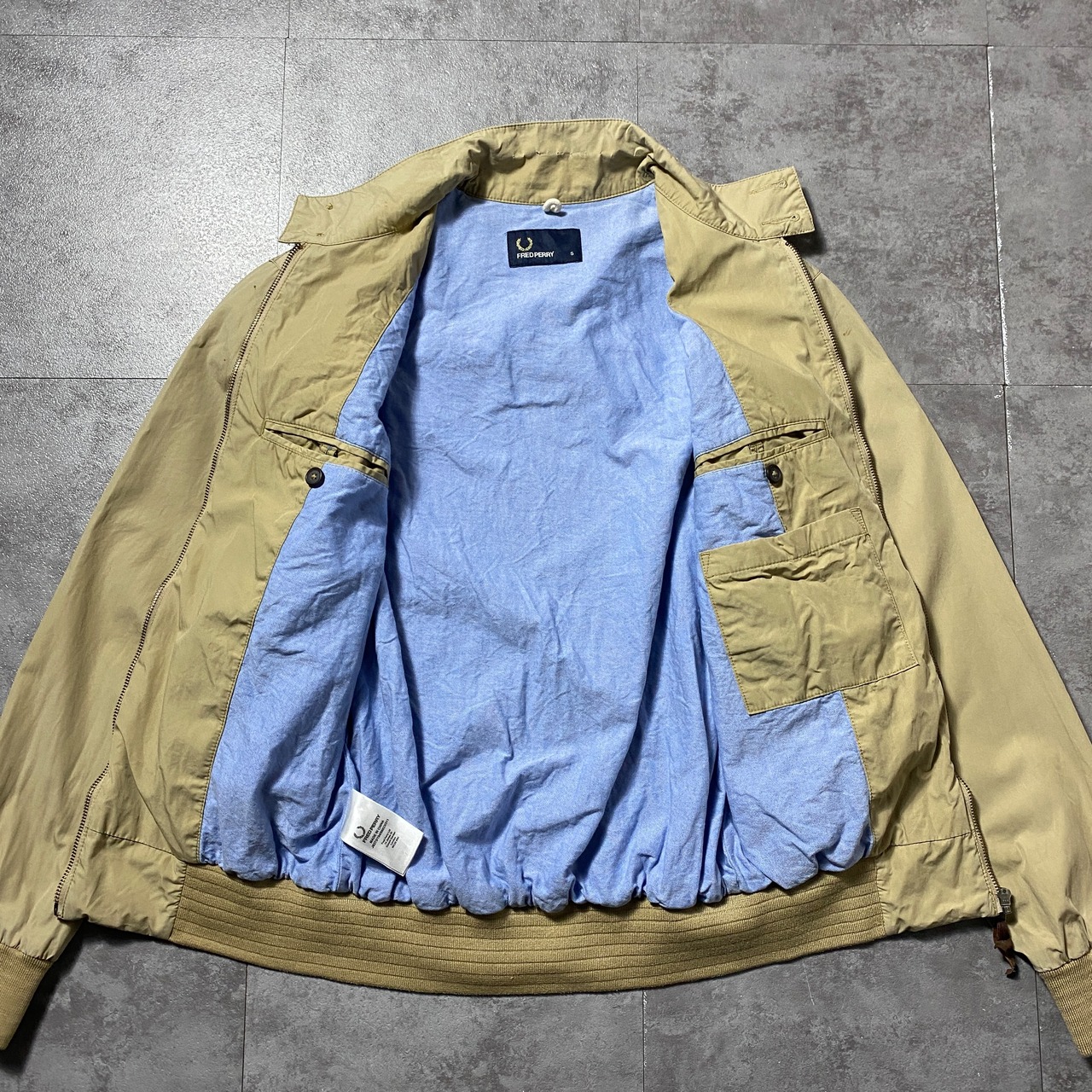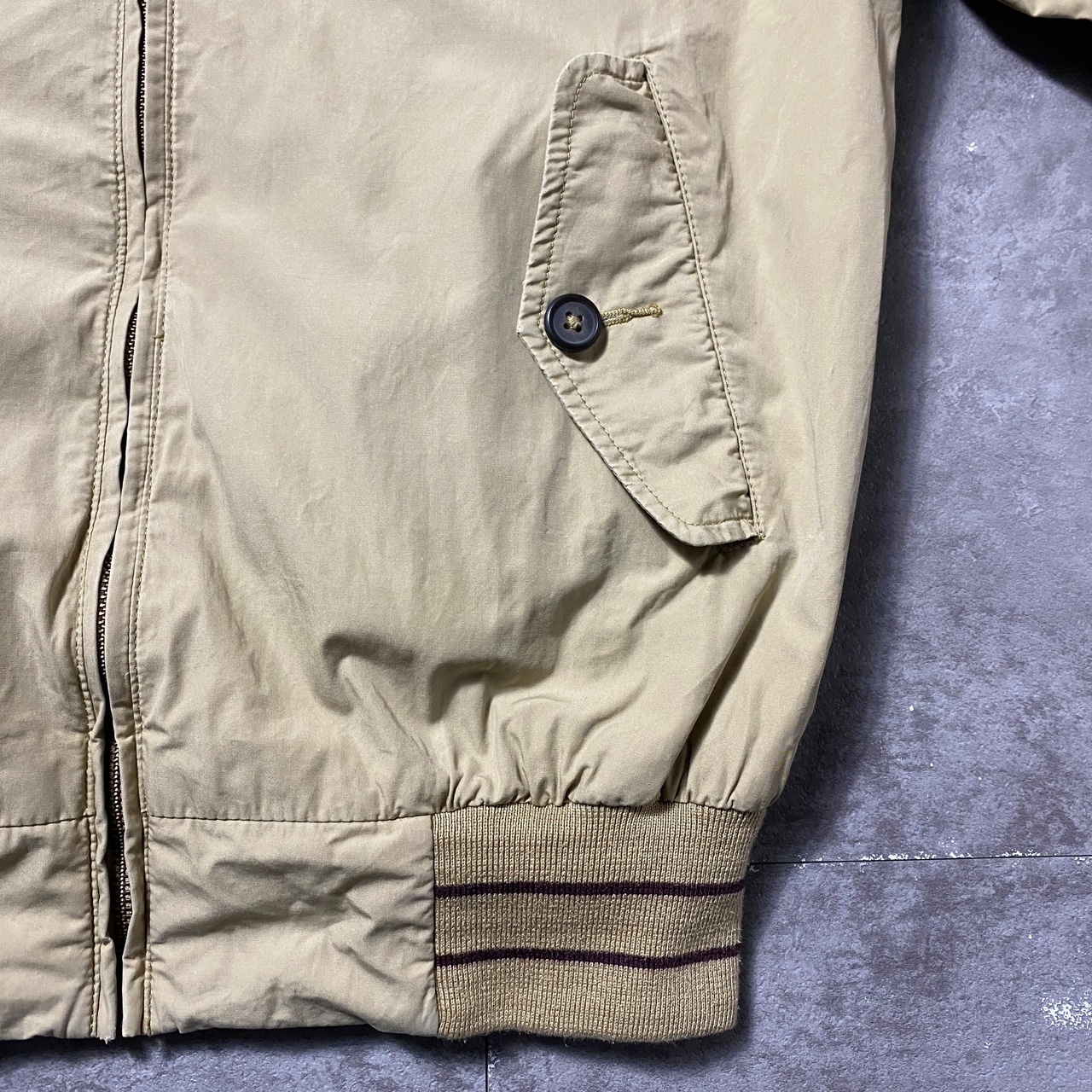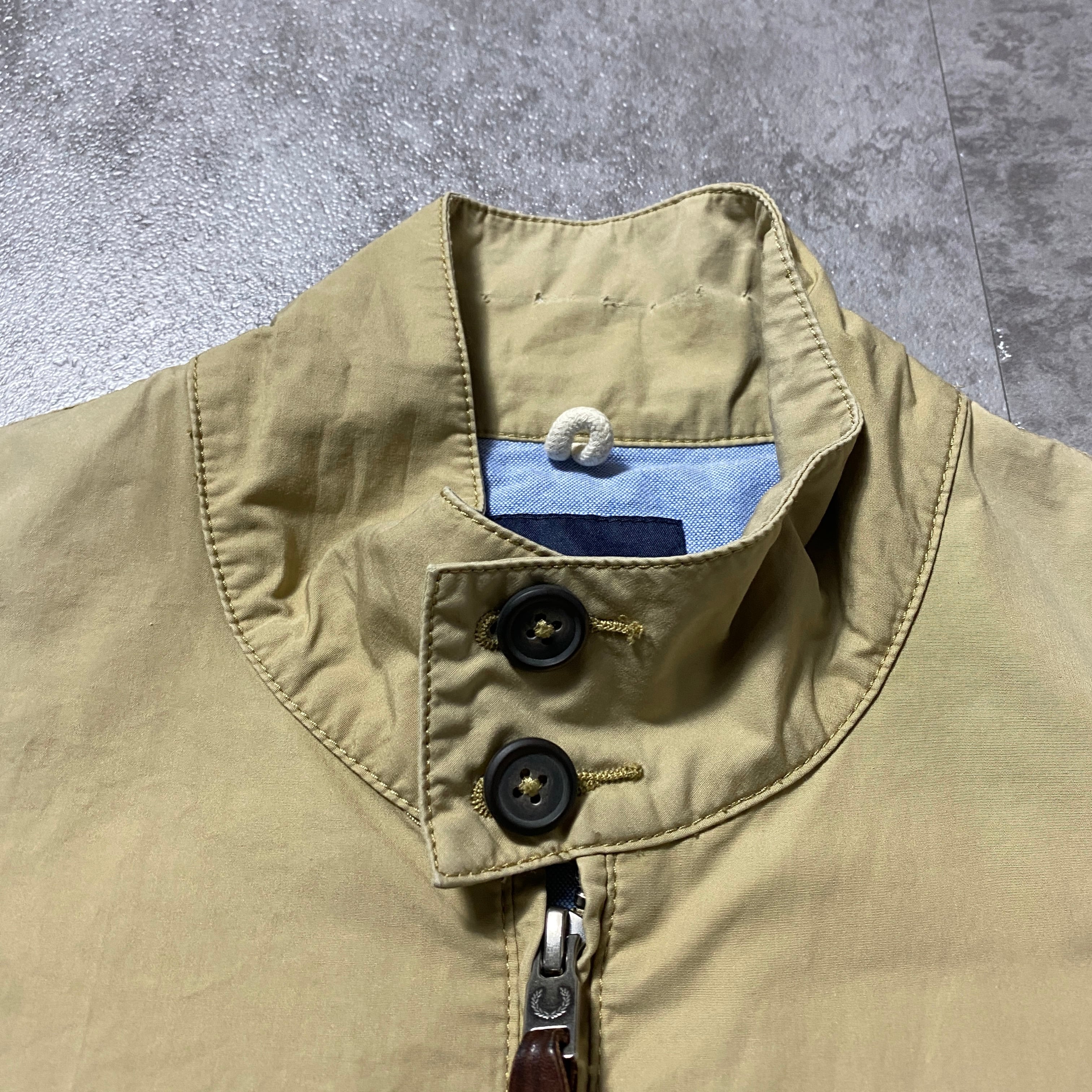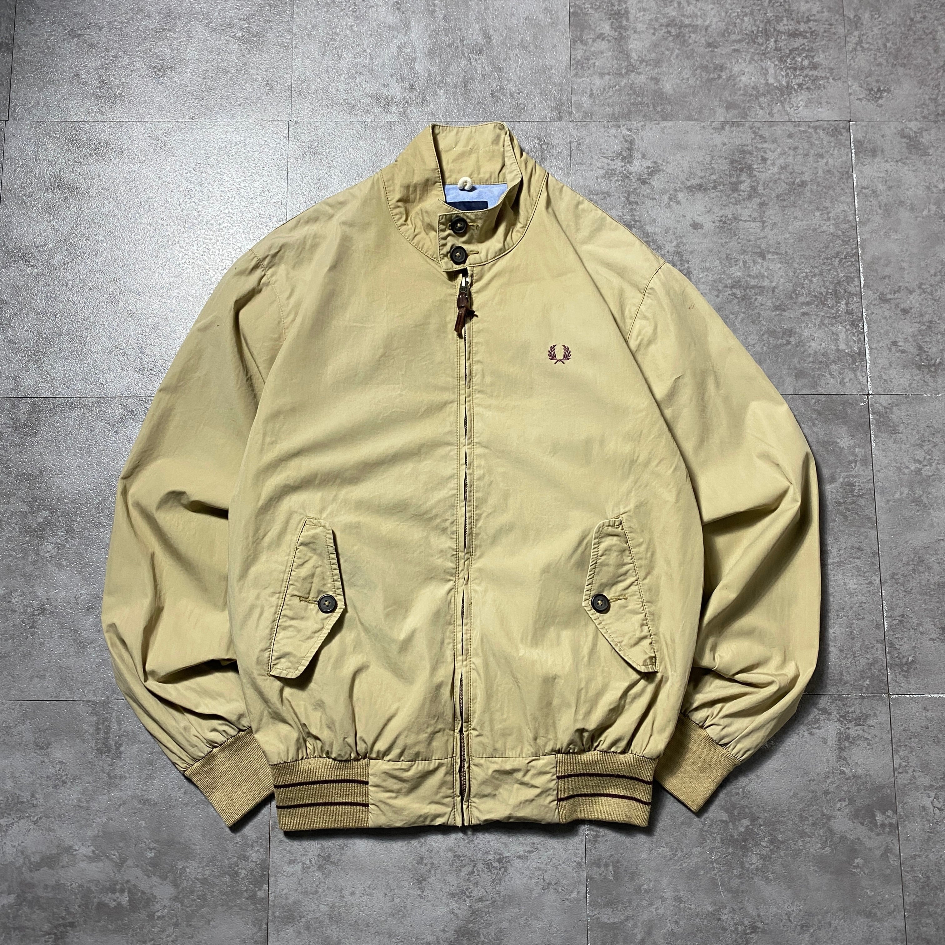 FRED PERRY フレッドペリー 月桂樹 刺繍ワンポイント ラインリブ ベージュ スウィングトップ ドリズラージャケット