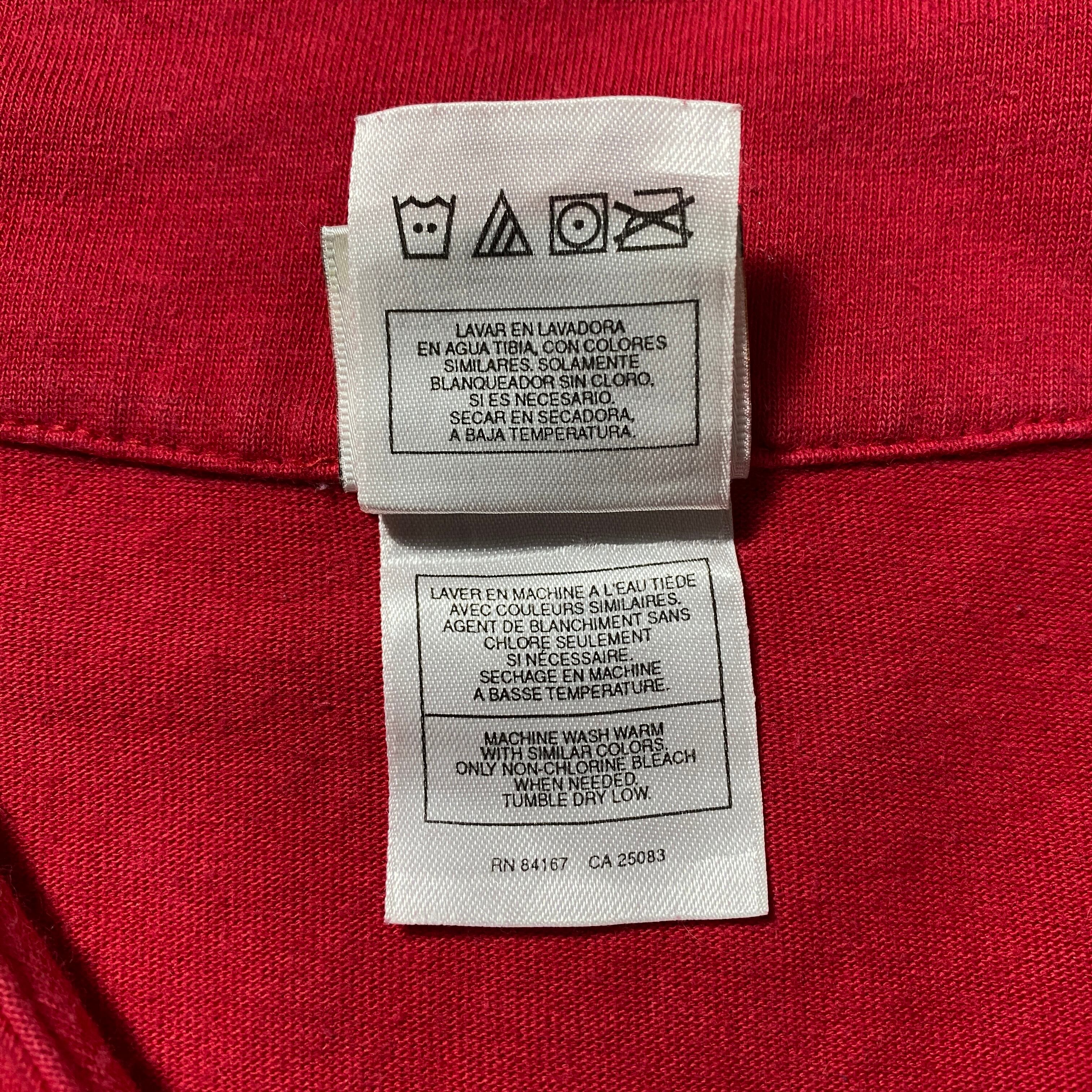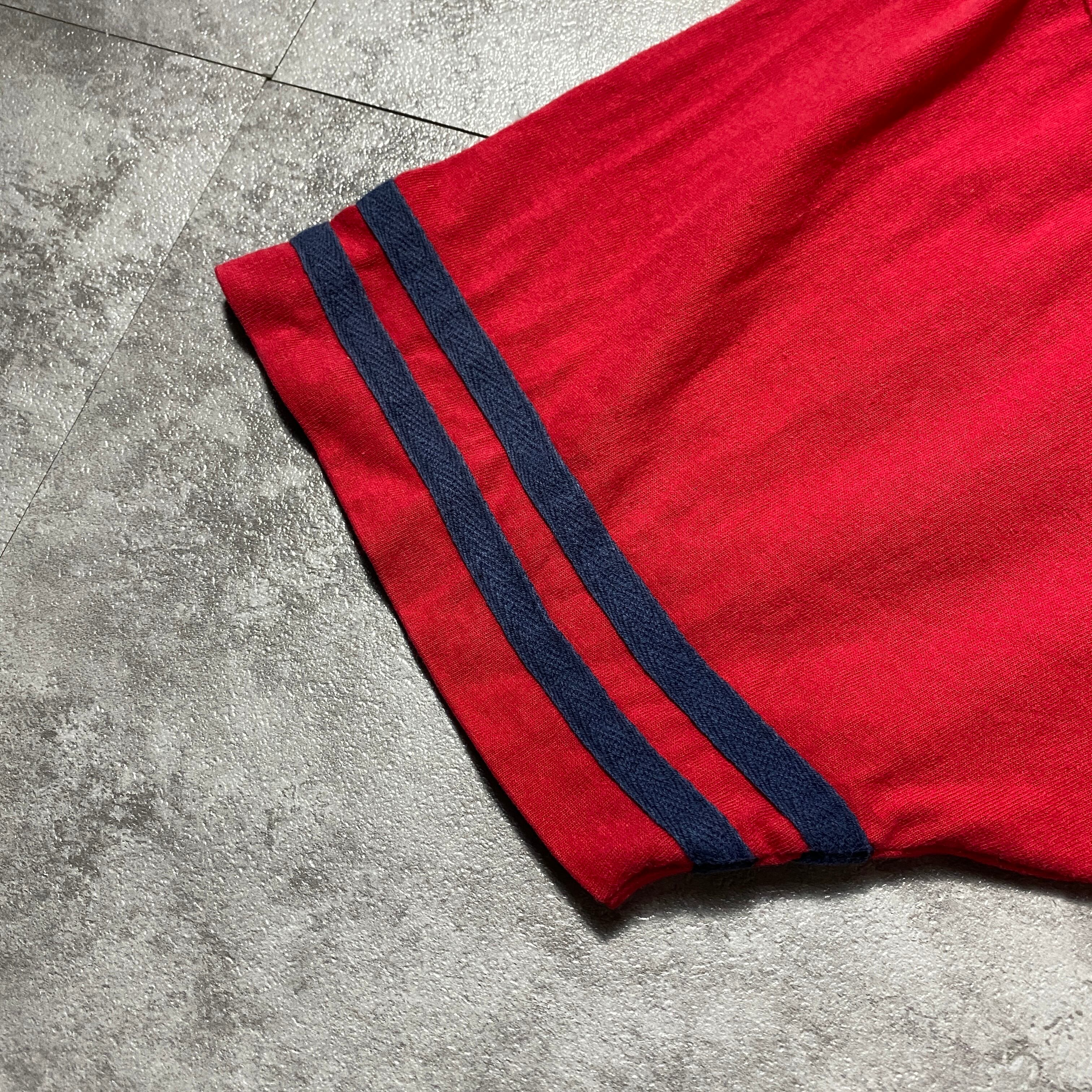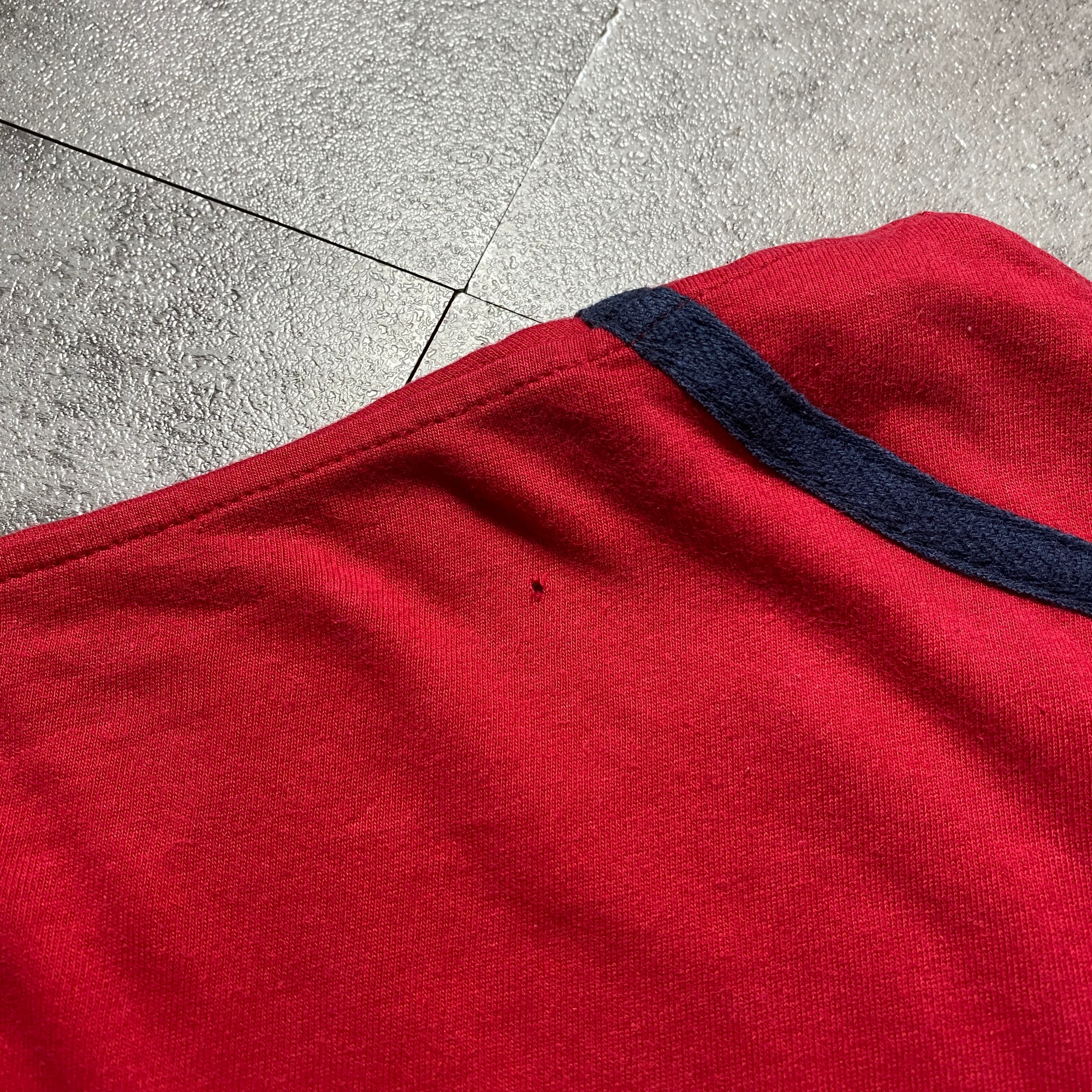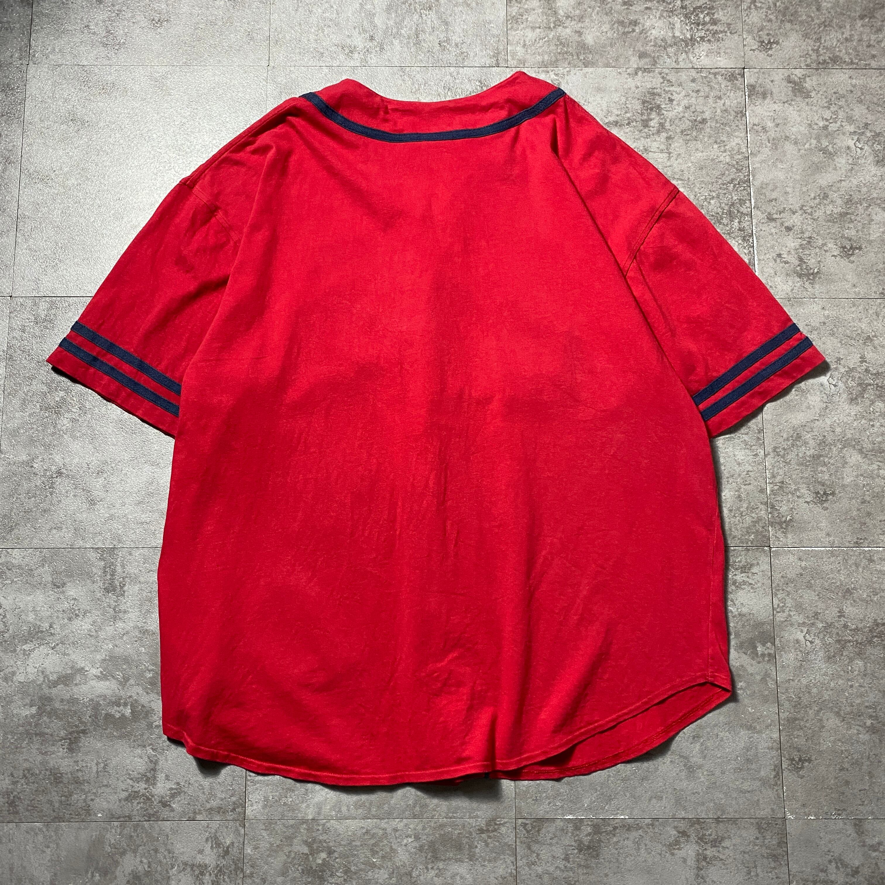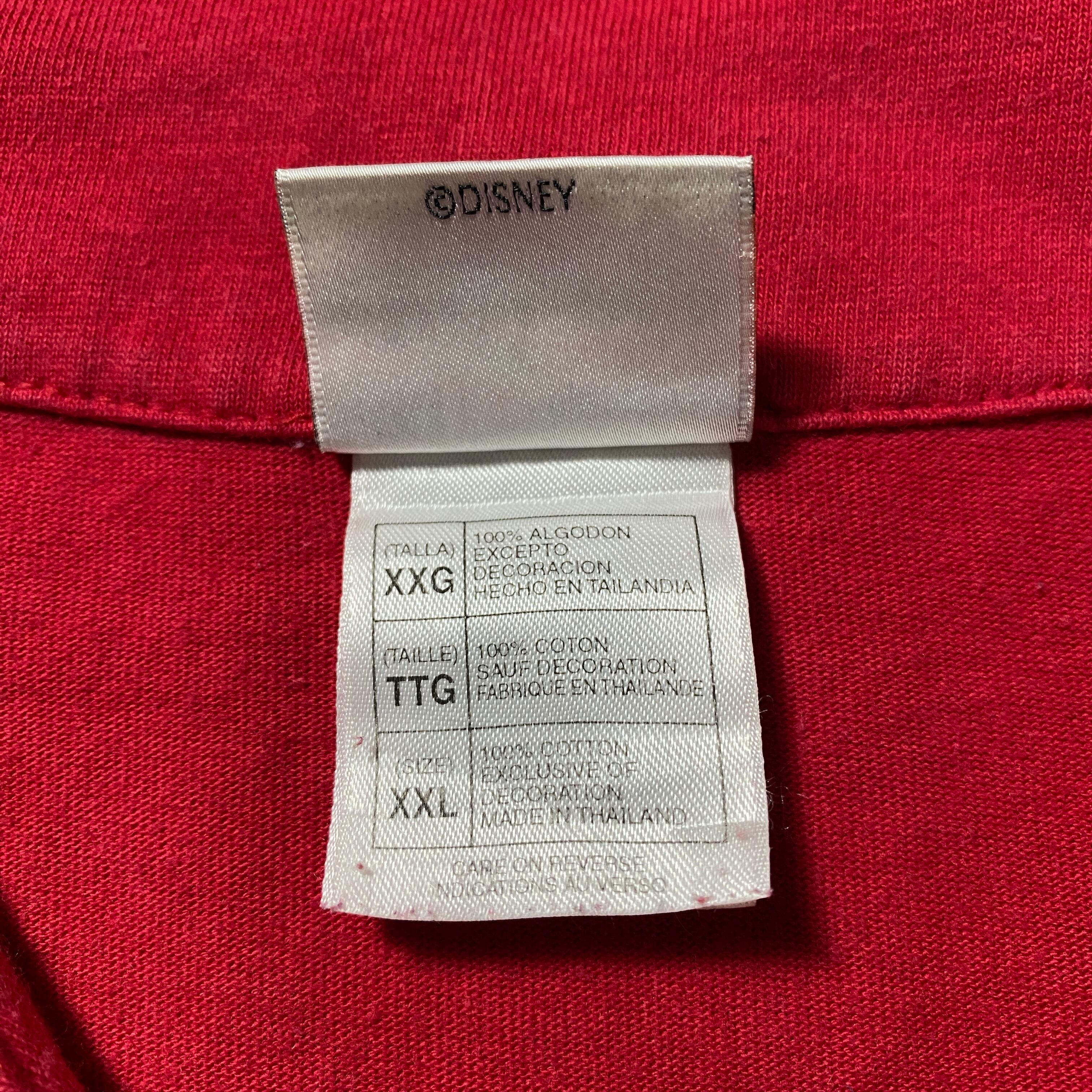 【Size:XXL】90's-00's old Disney オールドディズニー ミッキー 刺繍×ワッペンロゴ レッド 赤 ベースボールシャツ