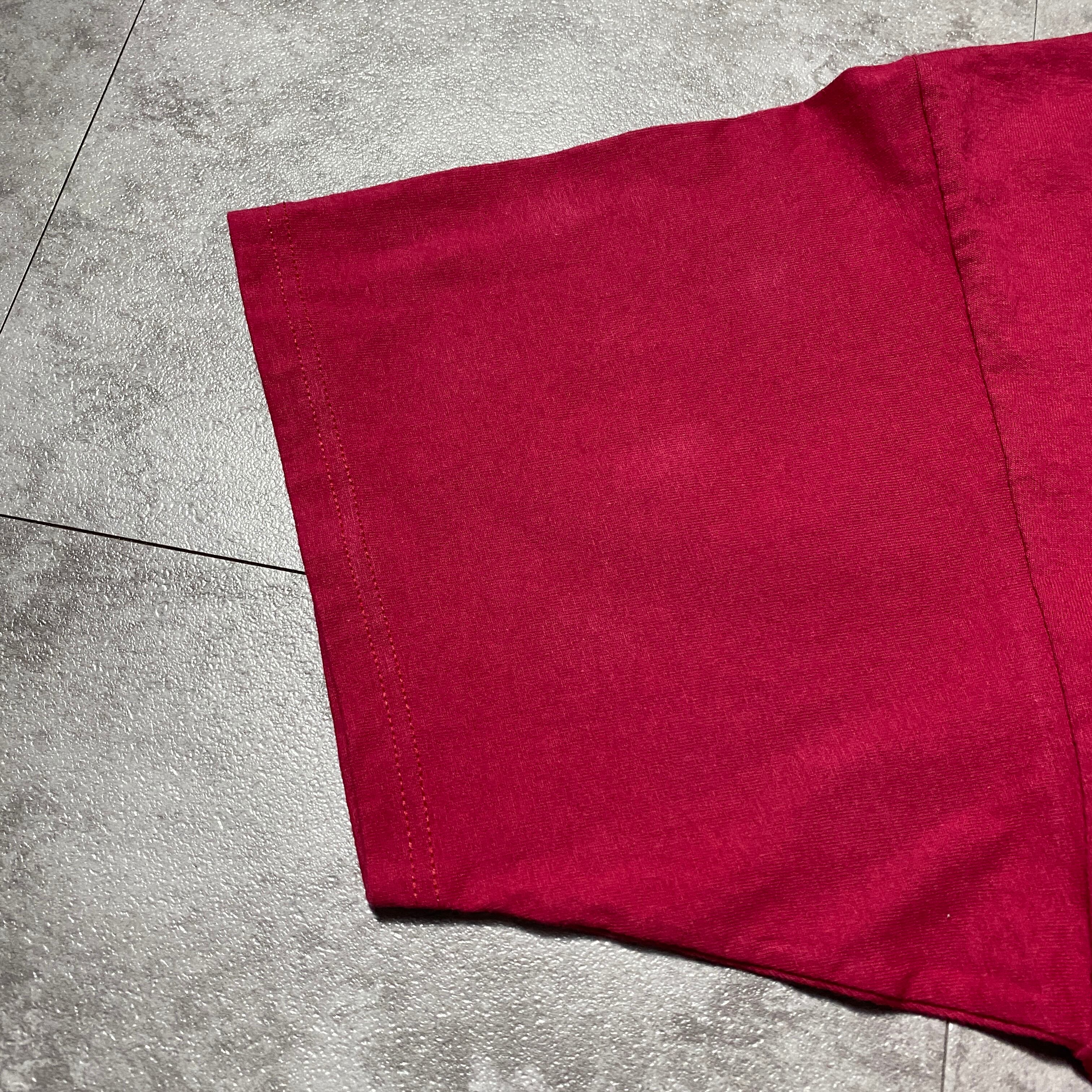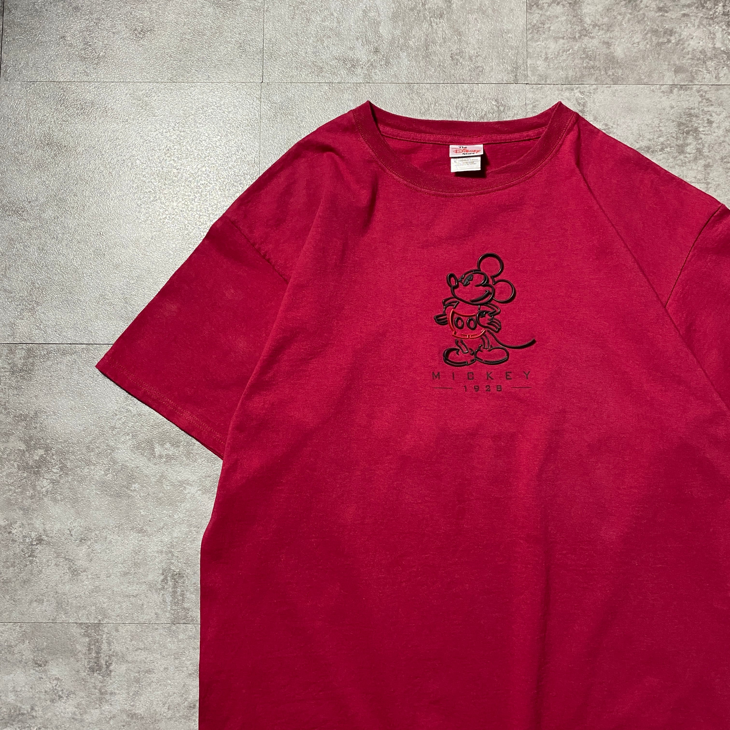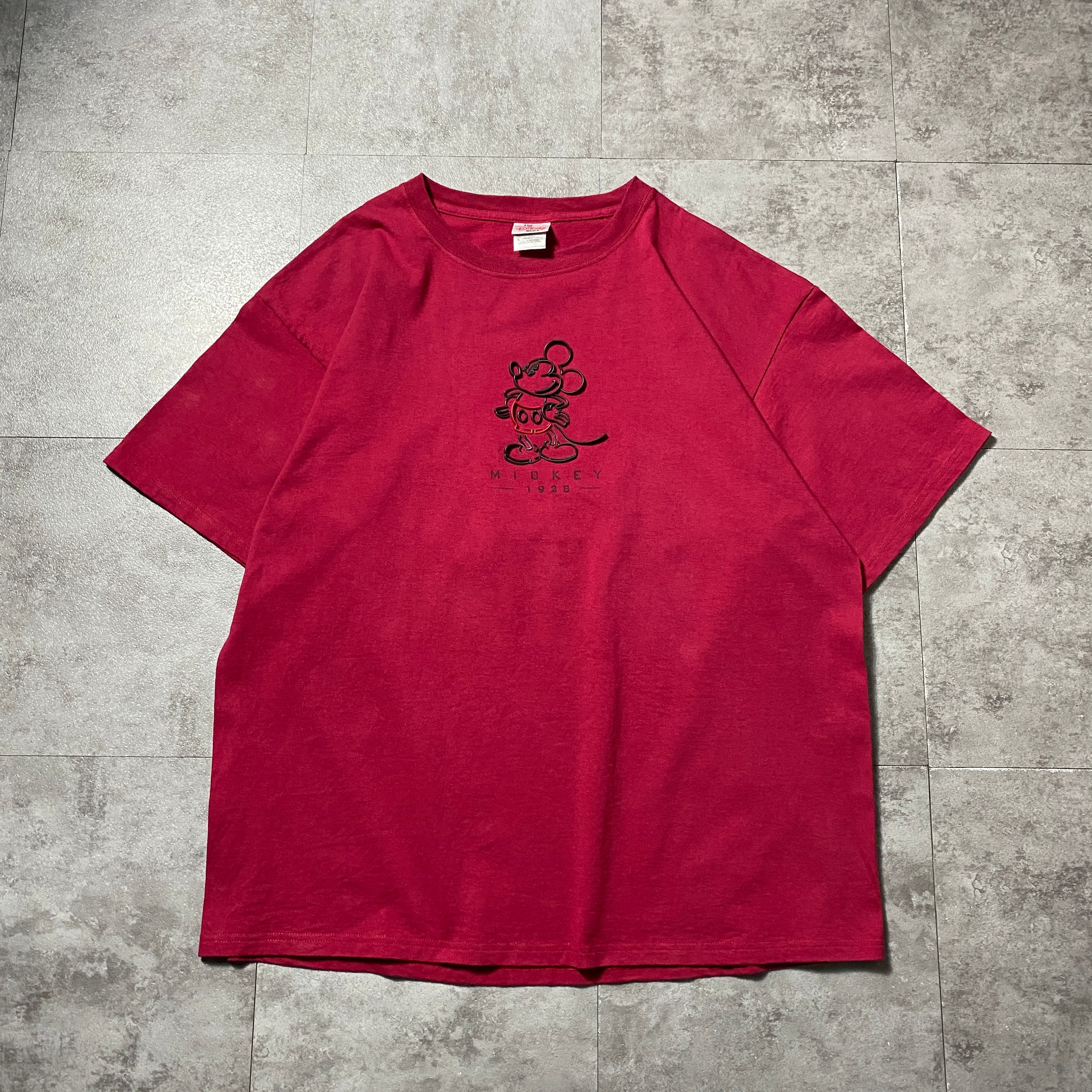 【Size:XL】90's-00's old Disney オールドディズニー ミッキー ラバーロゴ ワインレッド Tシャツ