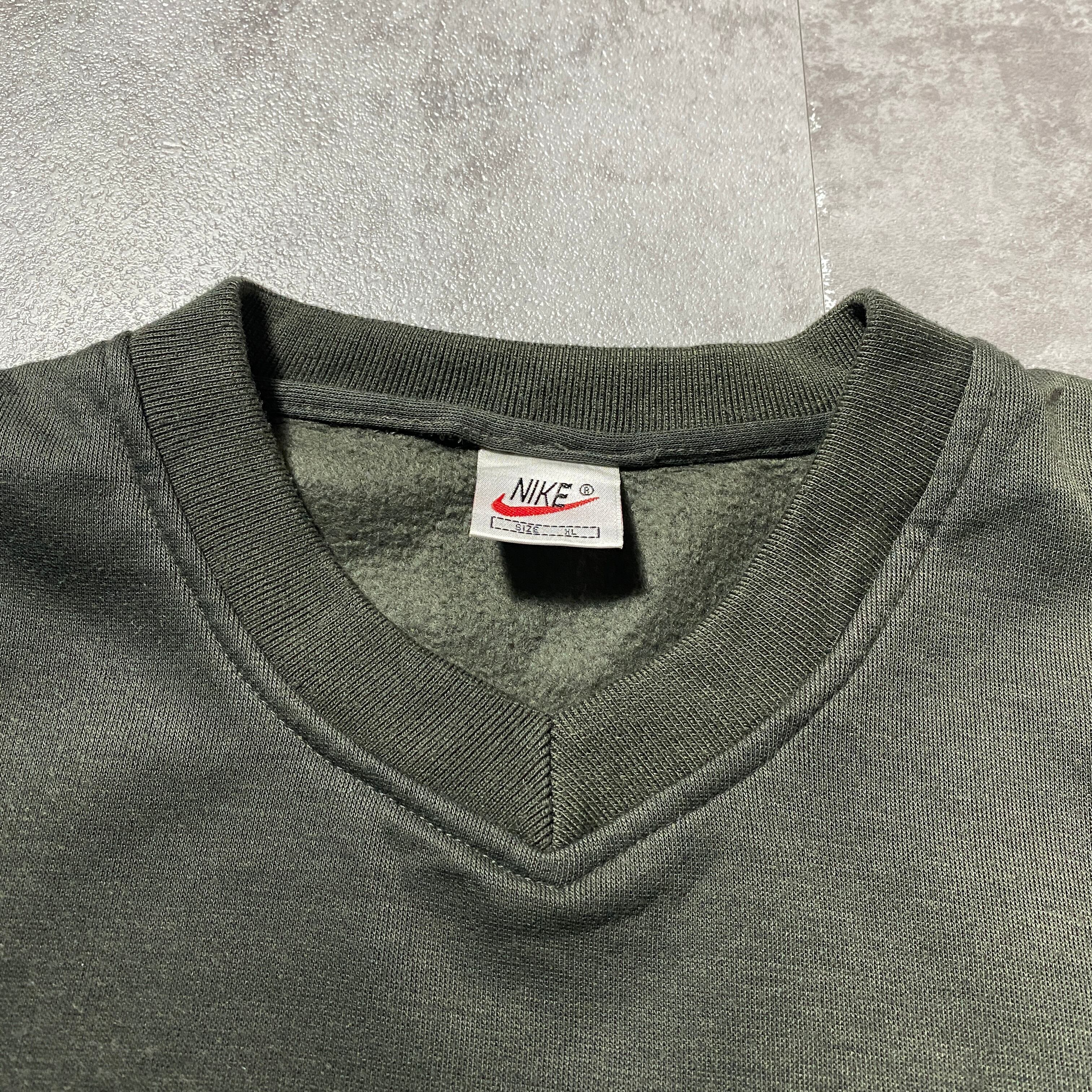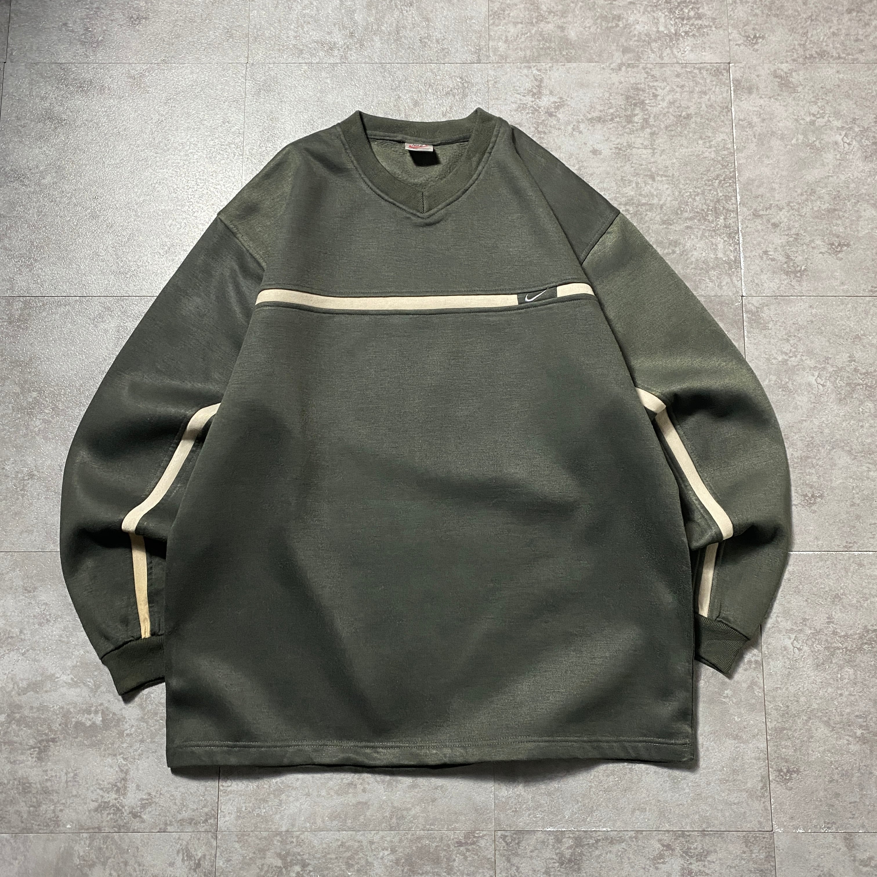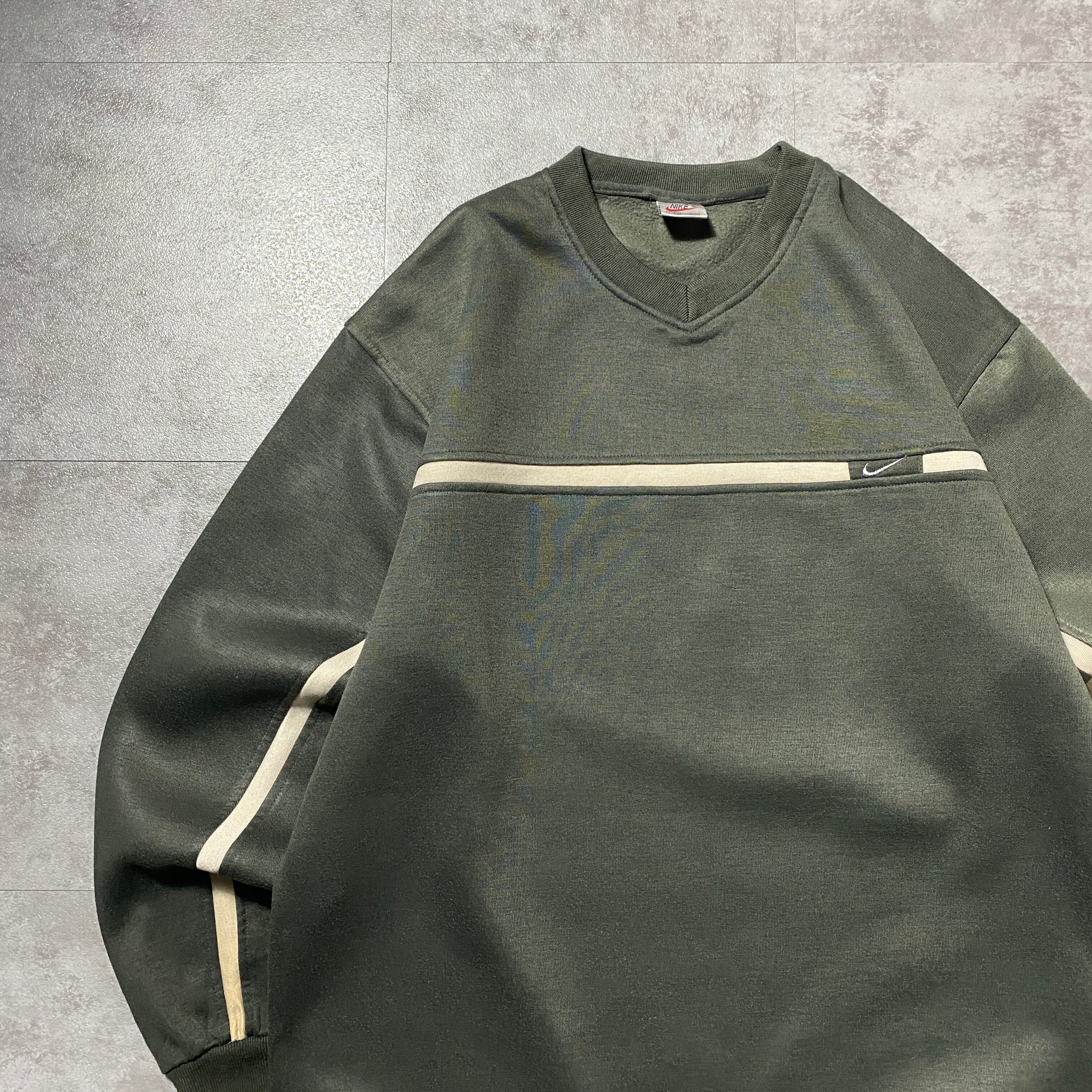 【Size:XL】90's NIKE boot leg ナイキ ブート スウォッシュ 刺繍ワンポイント カーキグリーン スウェット トレーナー