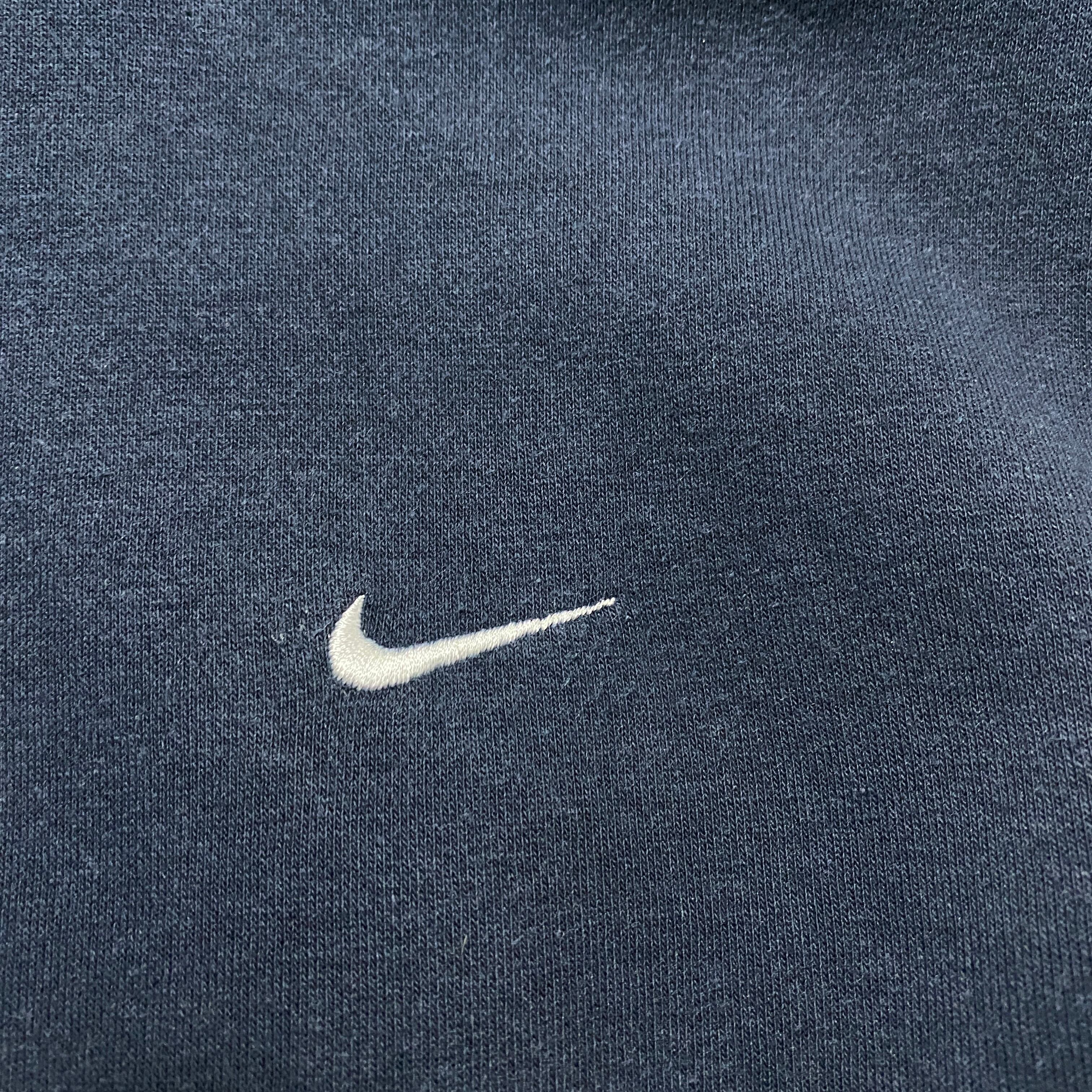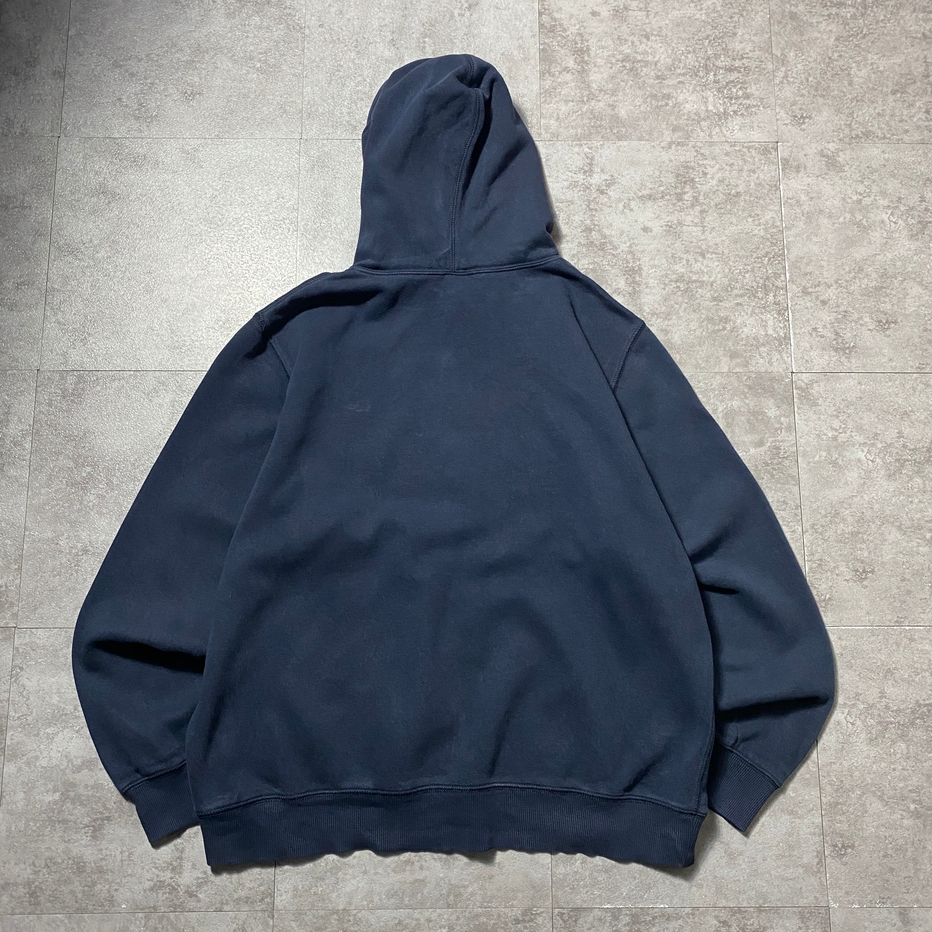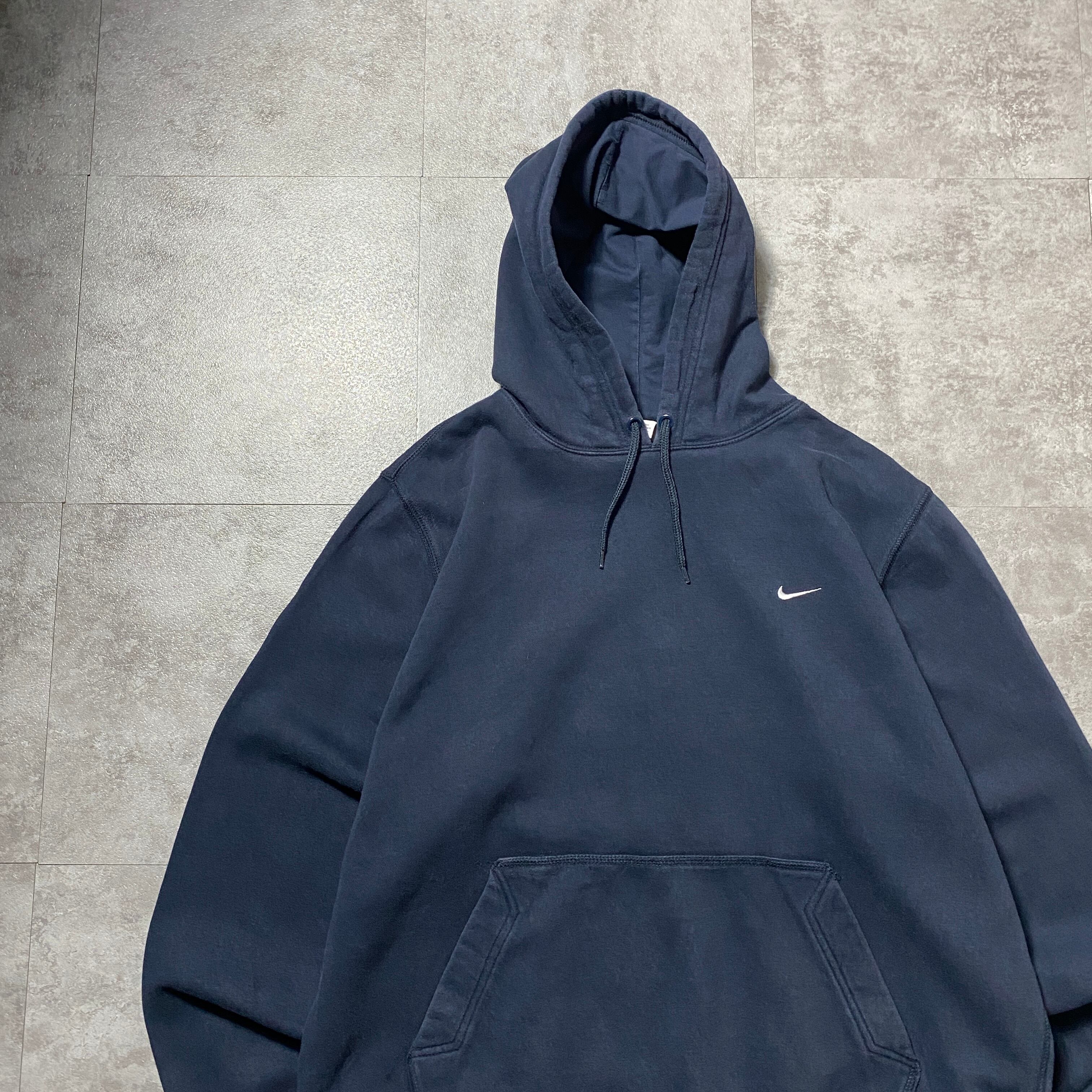 【Size:XL】00's NIKE ナイキ スウォッシュ 刺繍ワンポイント ネイビー スウェット パーカー