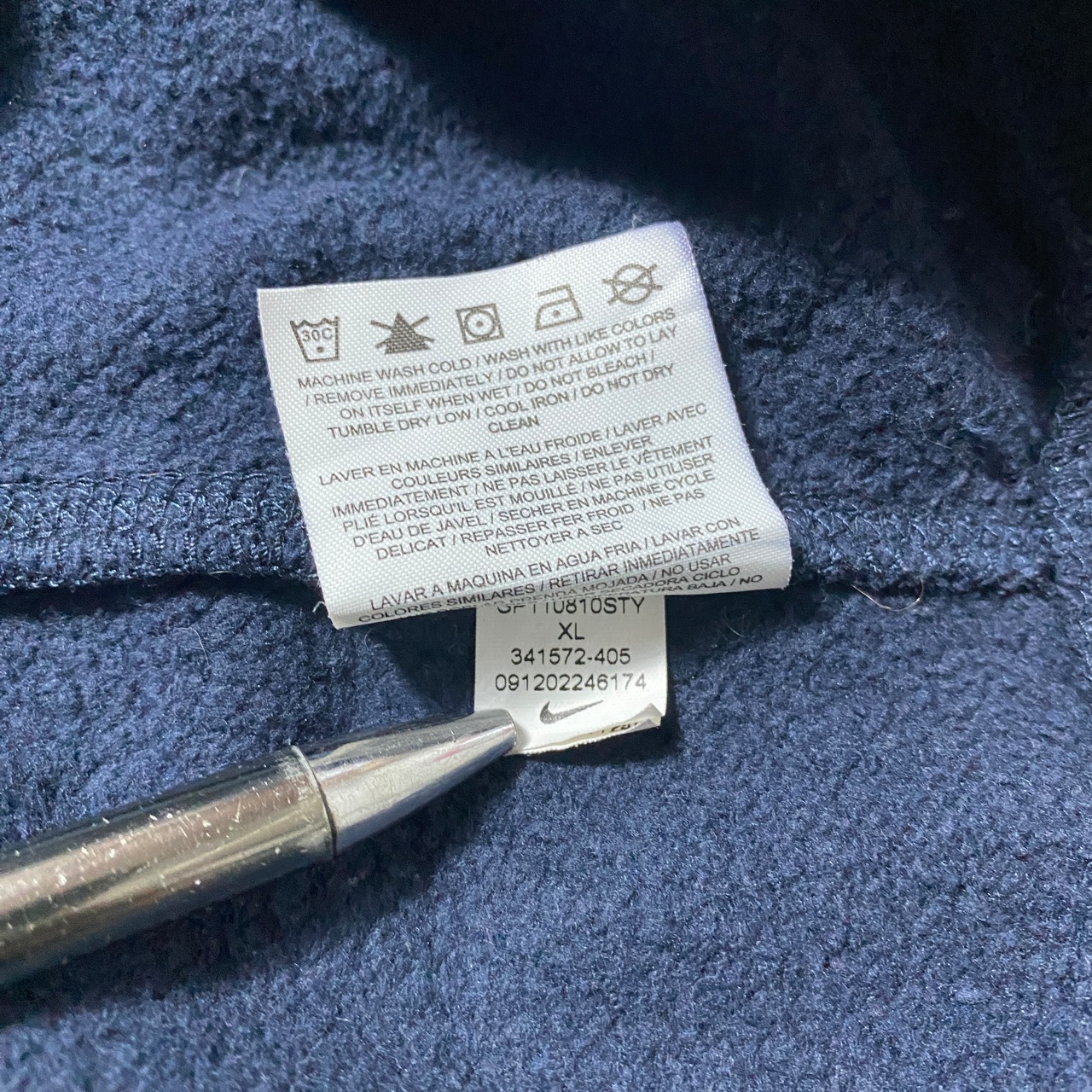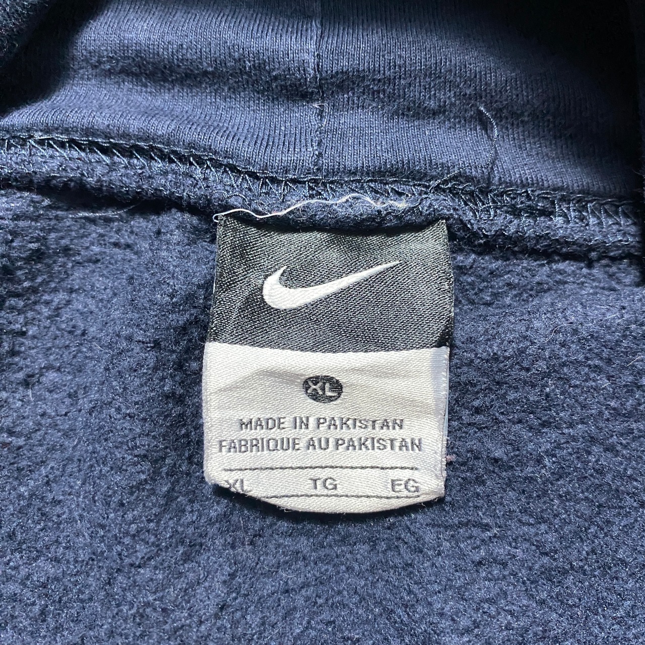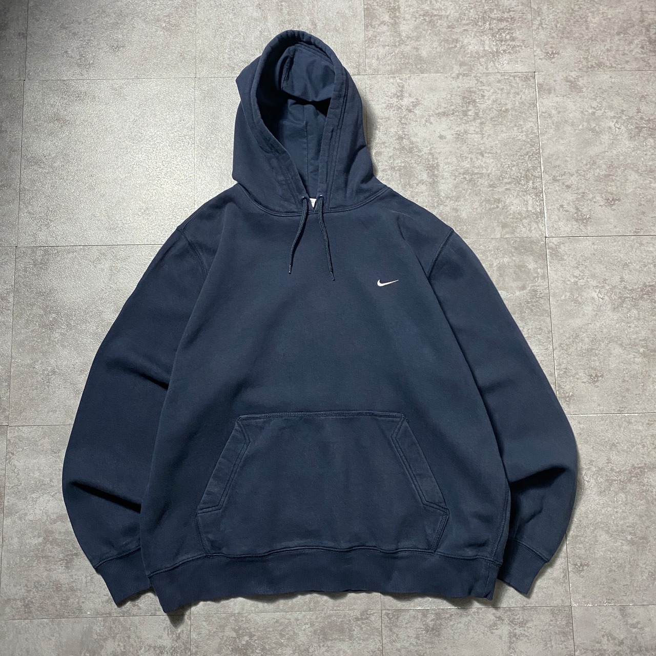 【Size:XL】00's NIKE ナイキ スウォッシュ 刺繍ワンポイント ネイビー スウェット パーカー