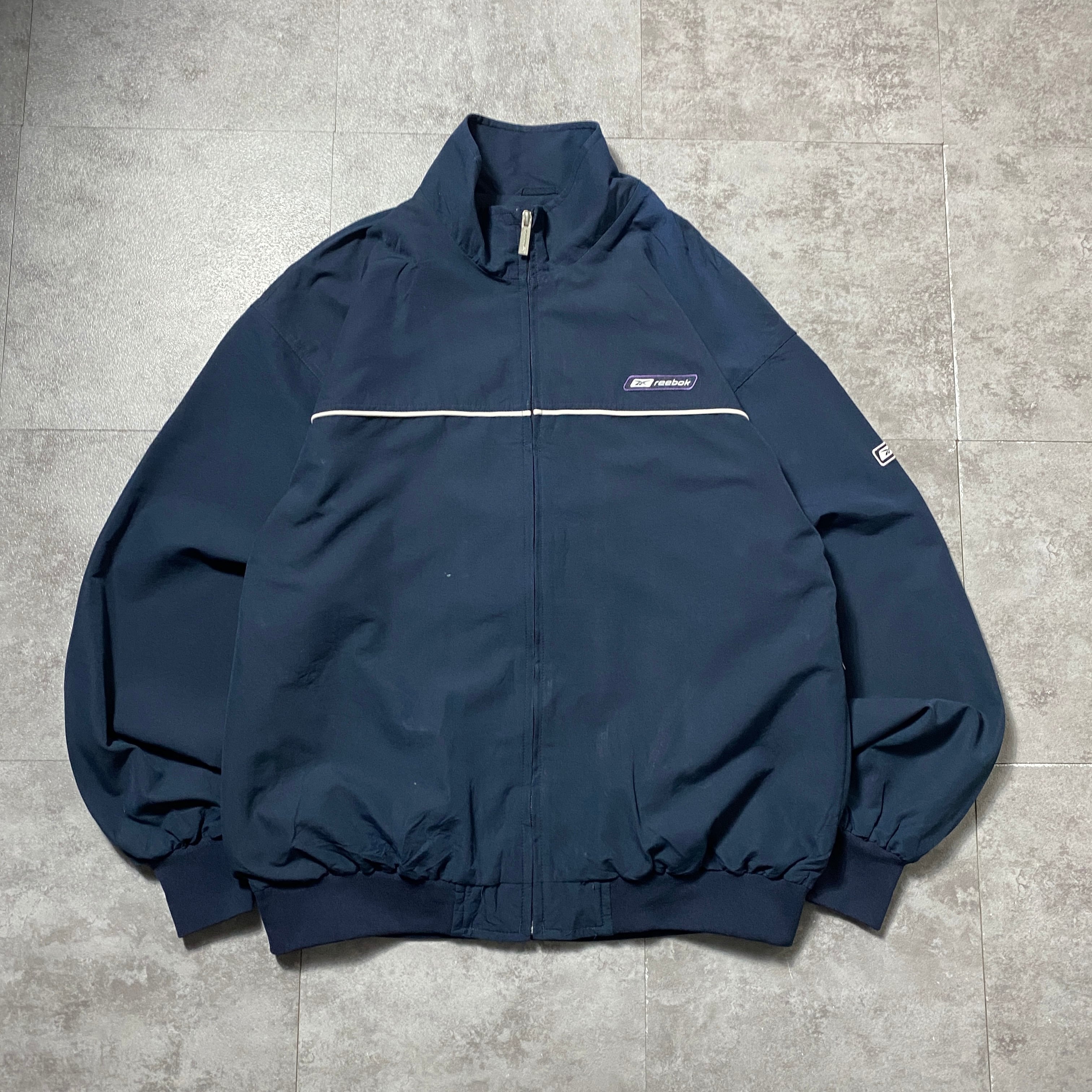90's 00's Reebok リーボック 刺繍ワンポイント ベクターロゴ ネイビー ナイロンジャケット