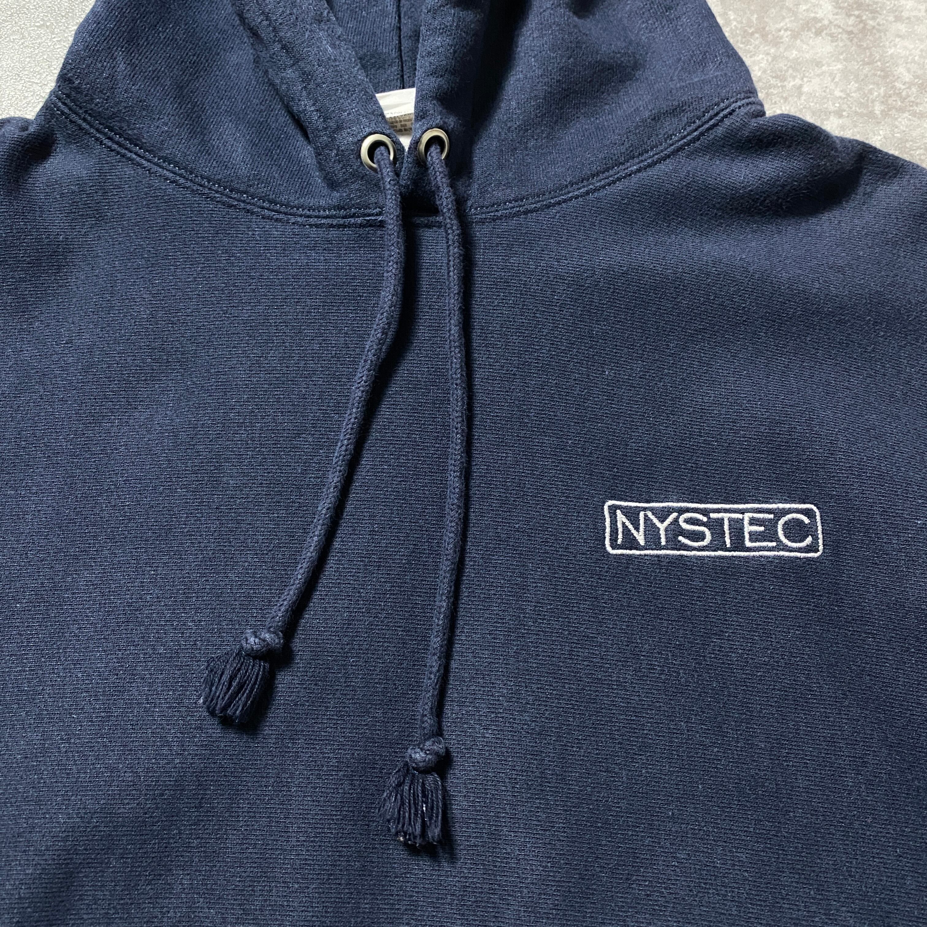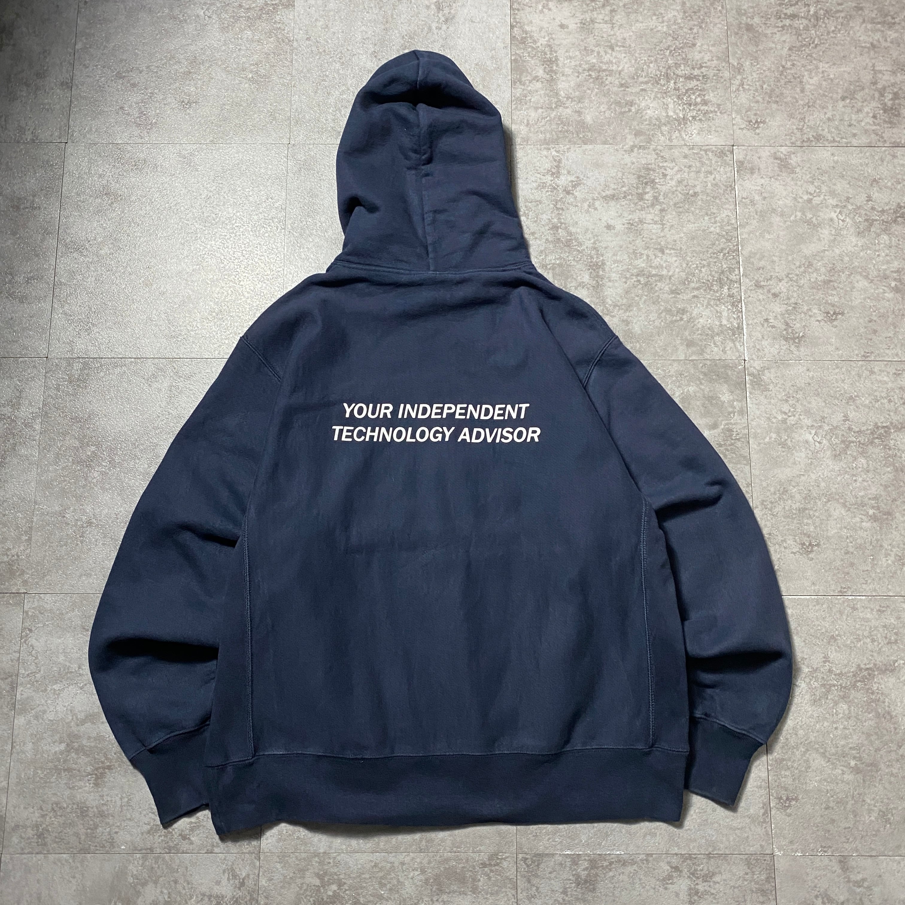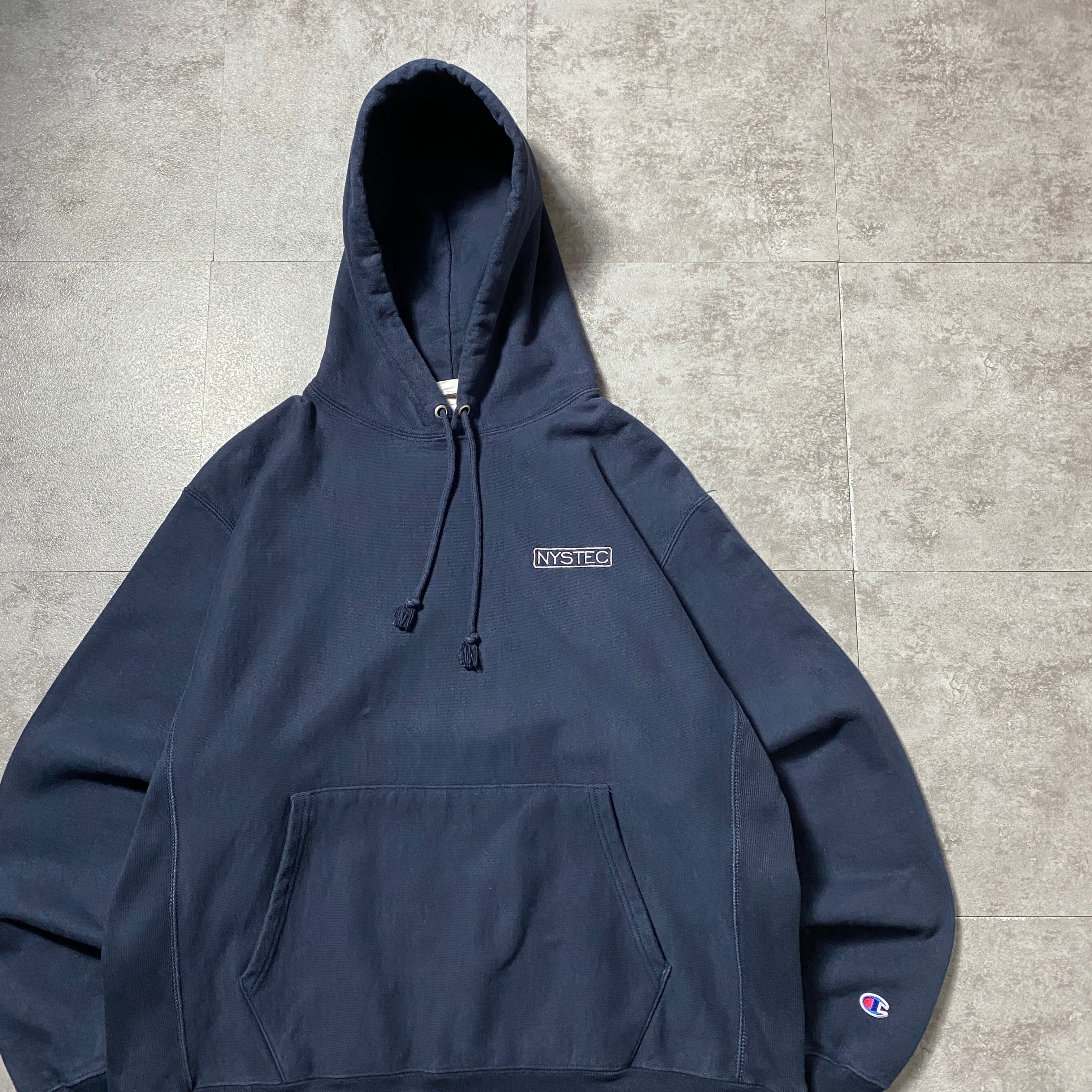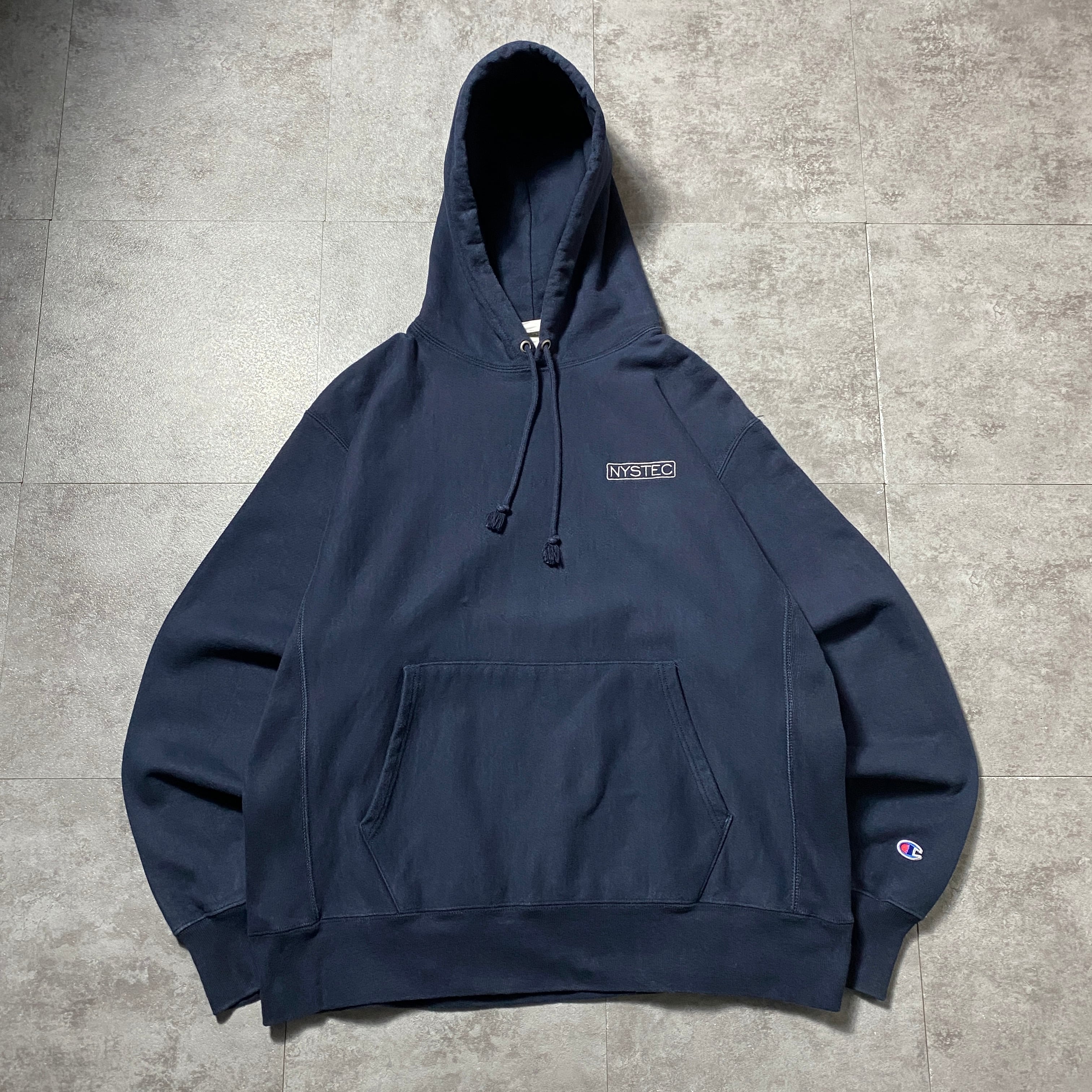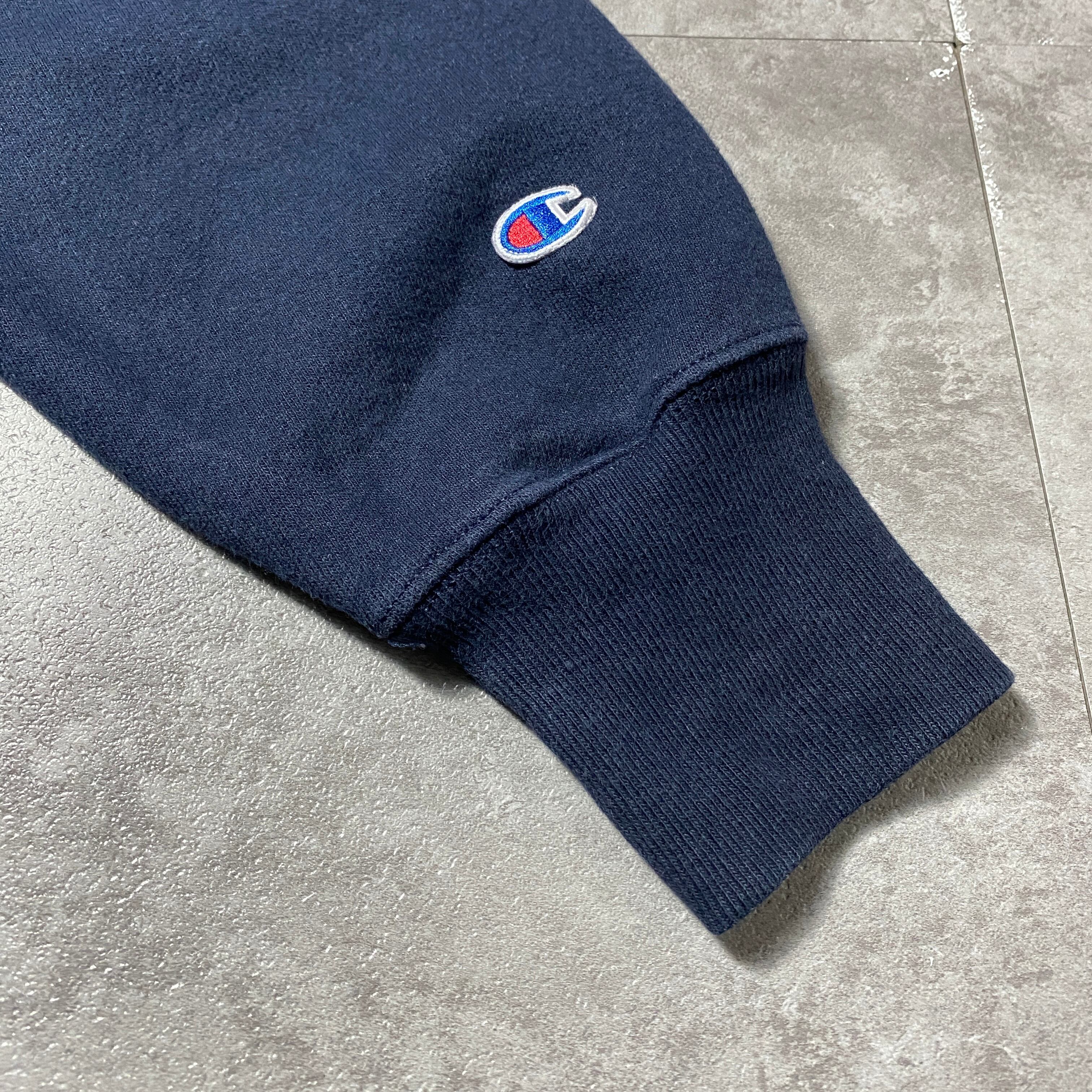 00's Champion チャンピオン プレミアムリバースウィーブ 刺繍ワンポイント 企業ロゴ ネイビー スウェット パーカー