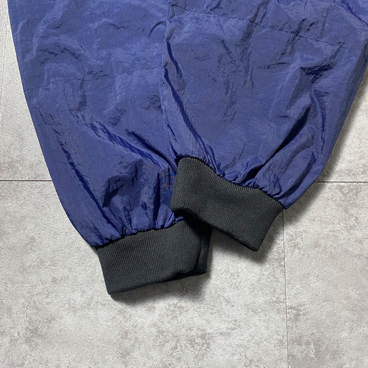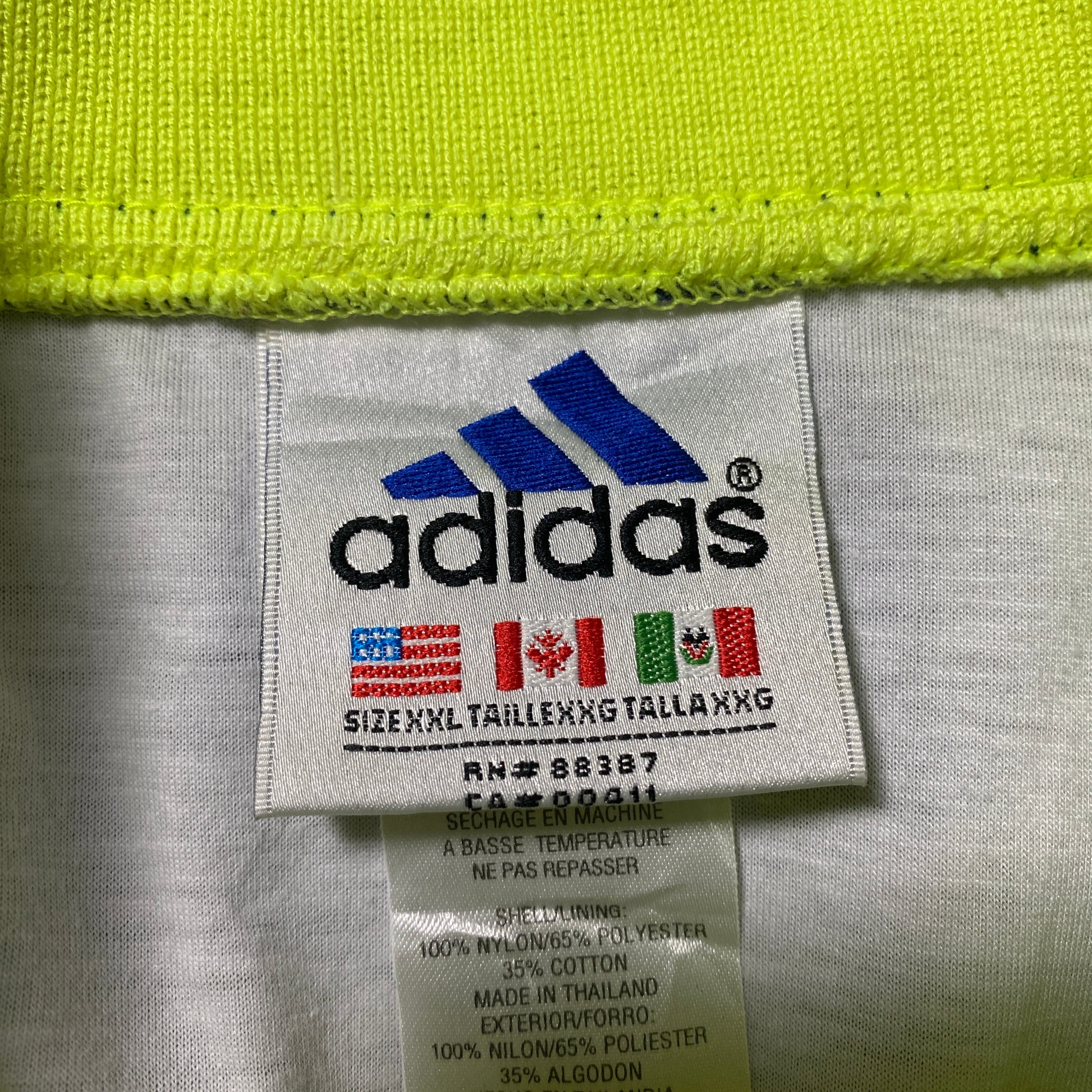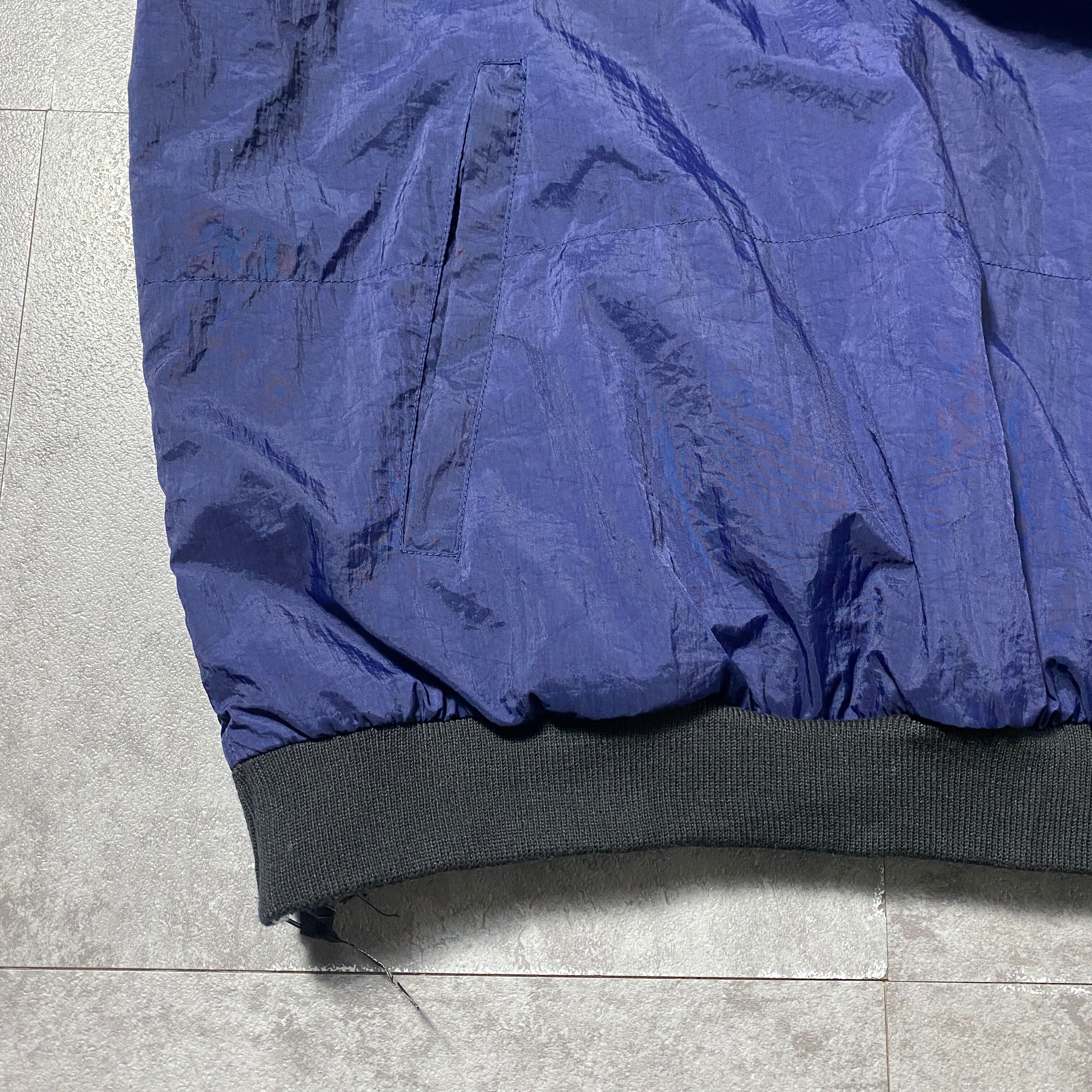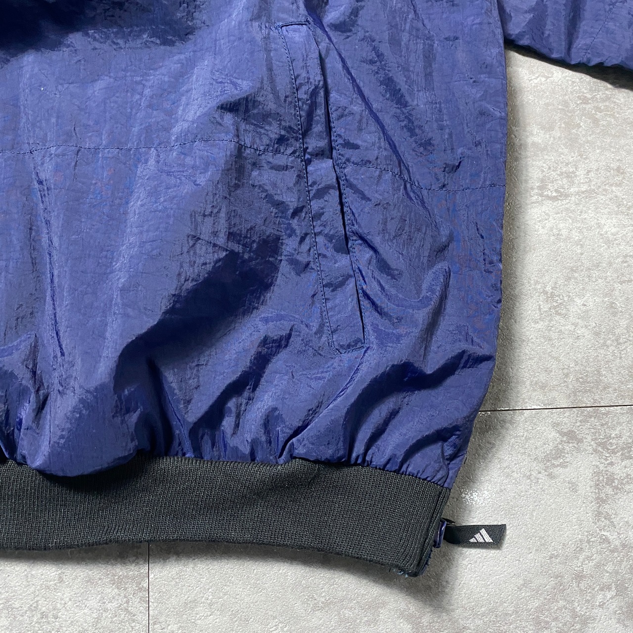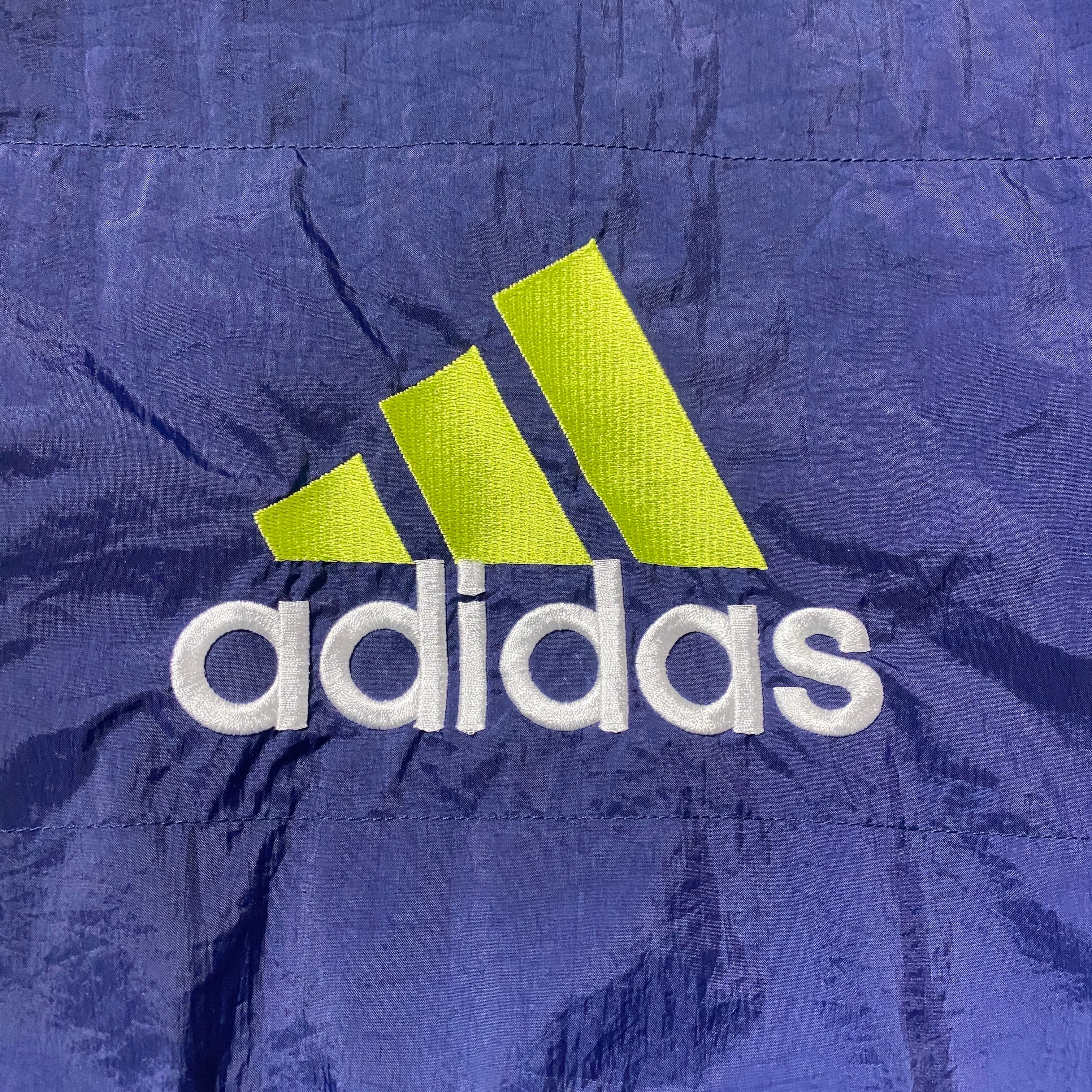 90's adidas アディダス パフォーマンスロゴ バック刺繍 ラインリブ ネイビー ナイロンプルオーバー