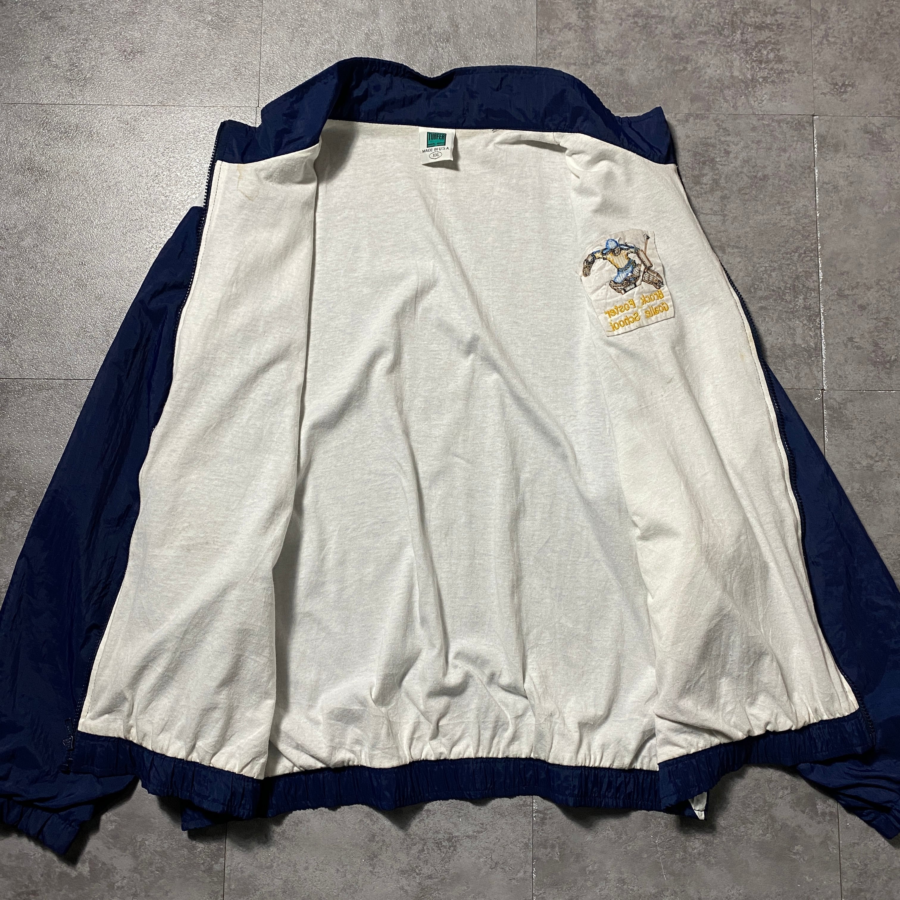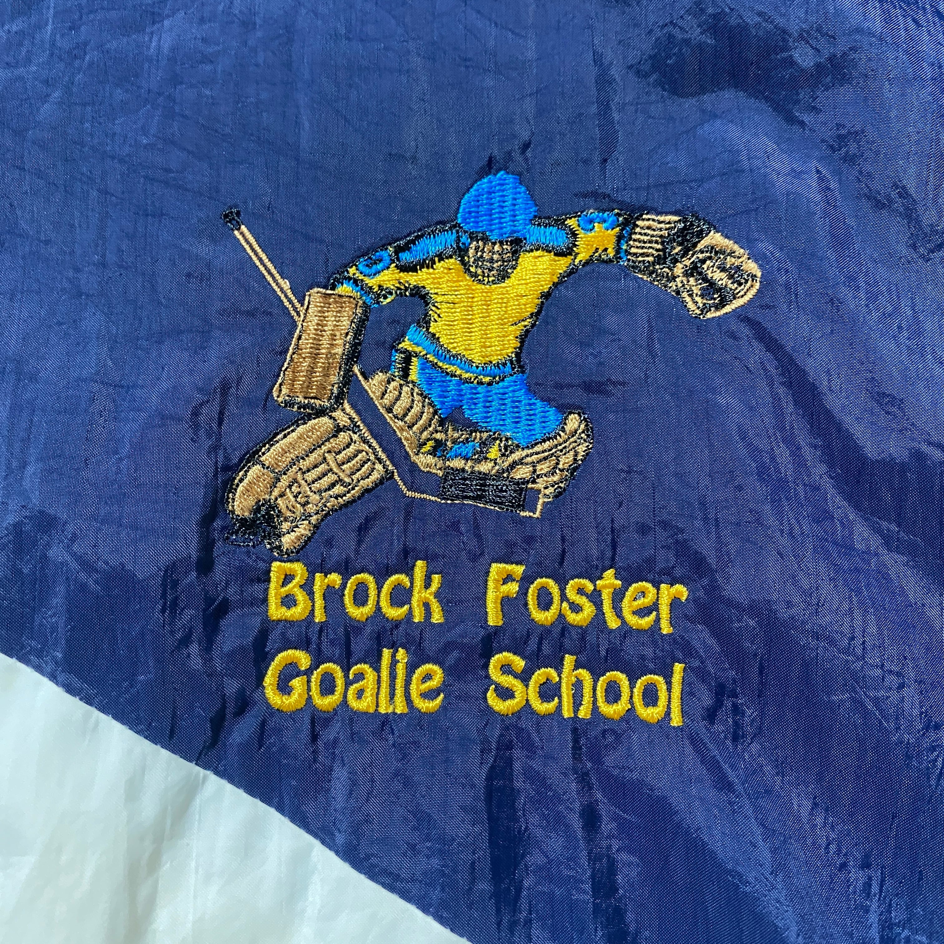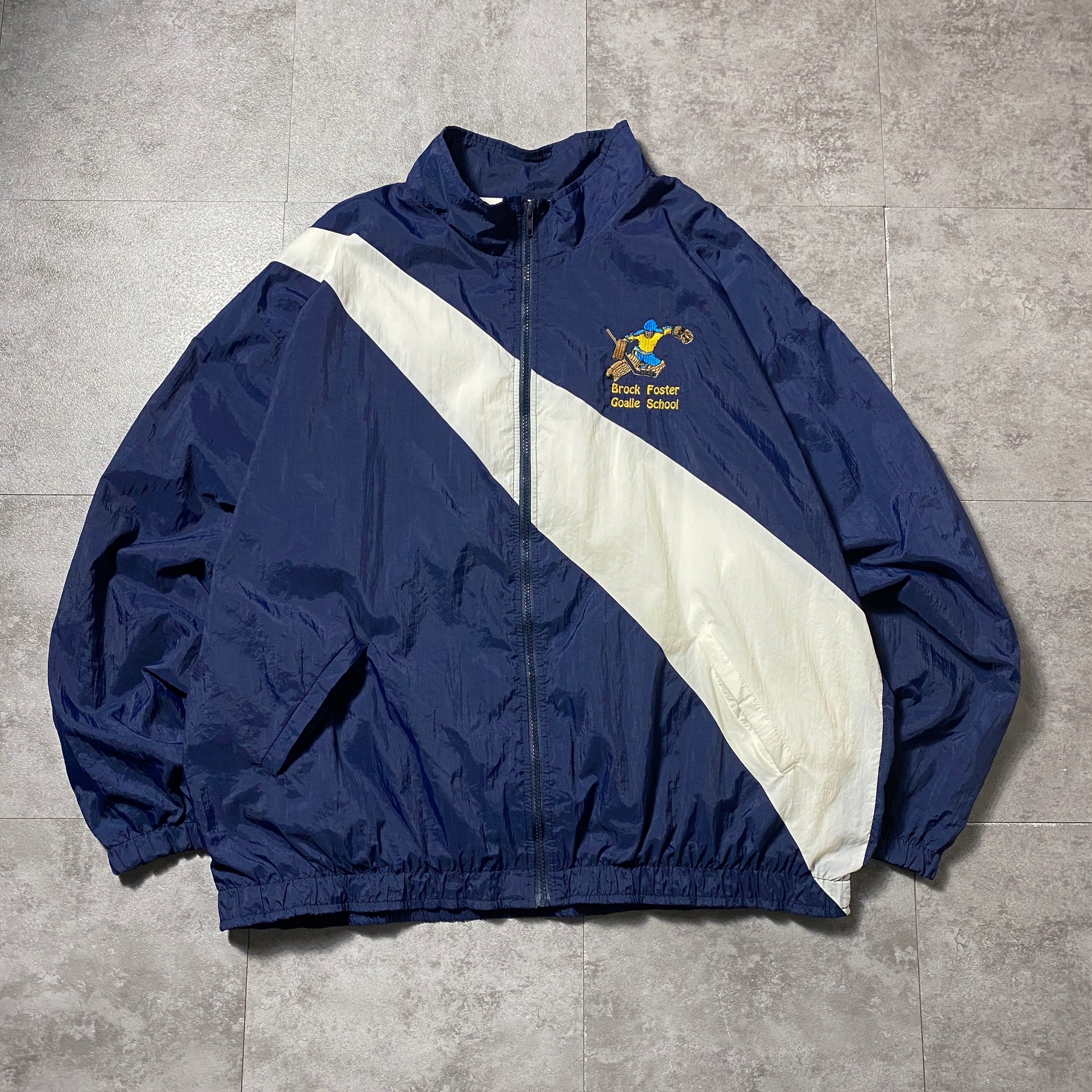 【USA製】90's TURFER Brock Foster Goalie School ホッケー 刺繍チームロゴ ネイビー ナイロンジャケット