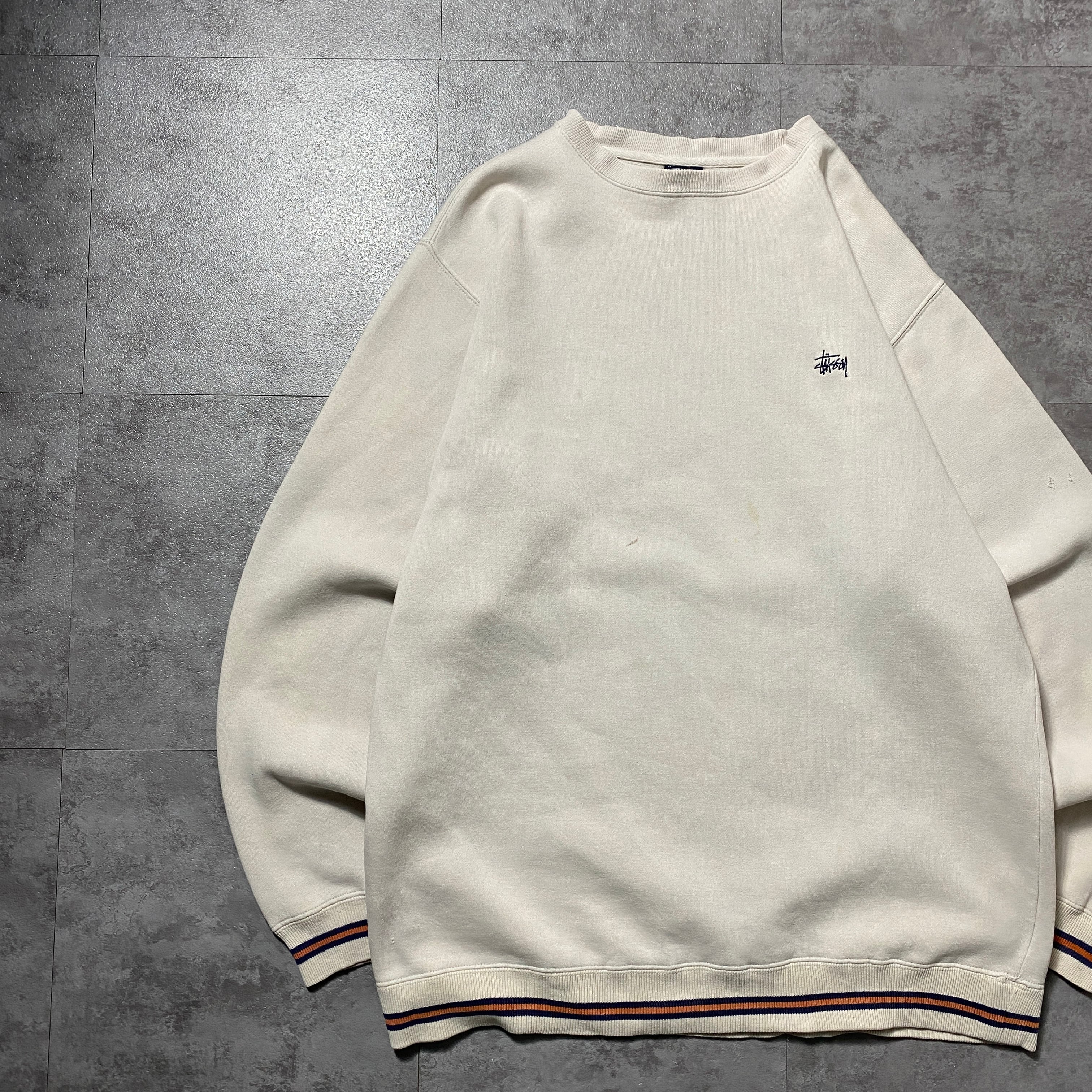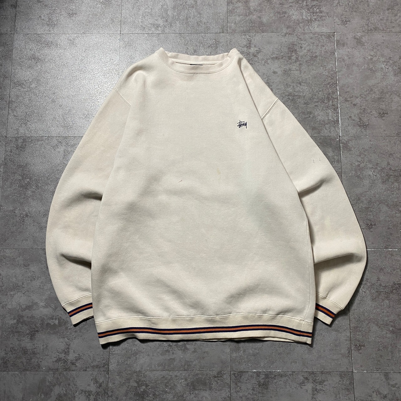 90's old stussy オールドステューシー 刺繍ワンポイント ショーンフォント ラインリブ スウェット トレーナー