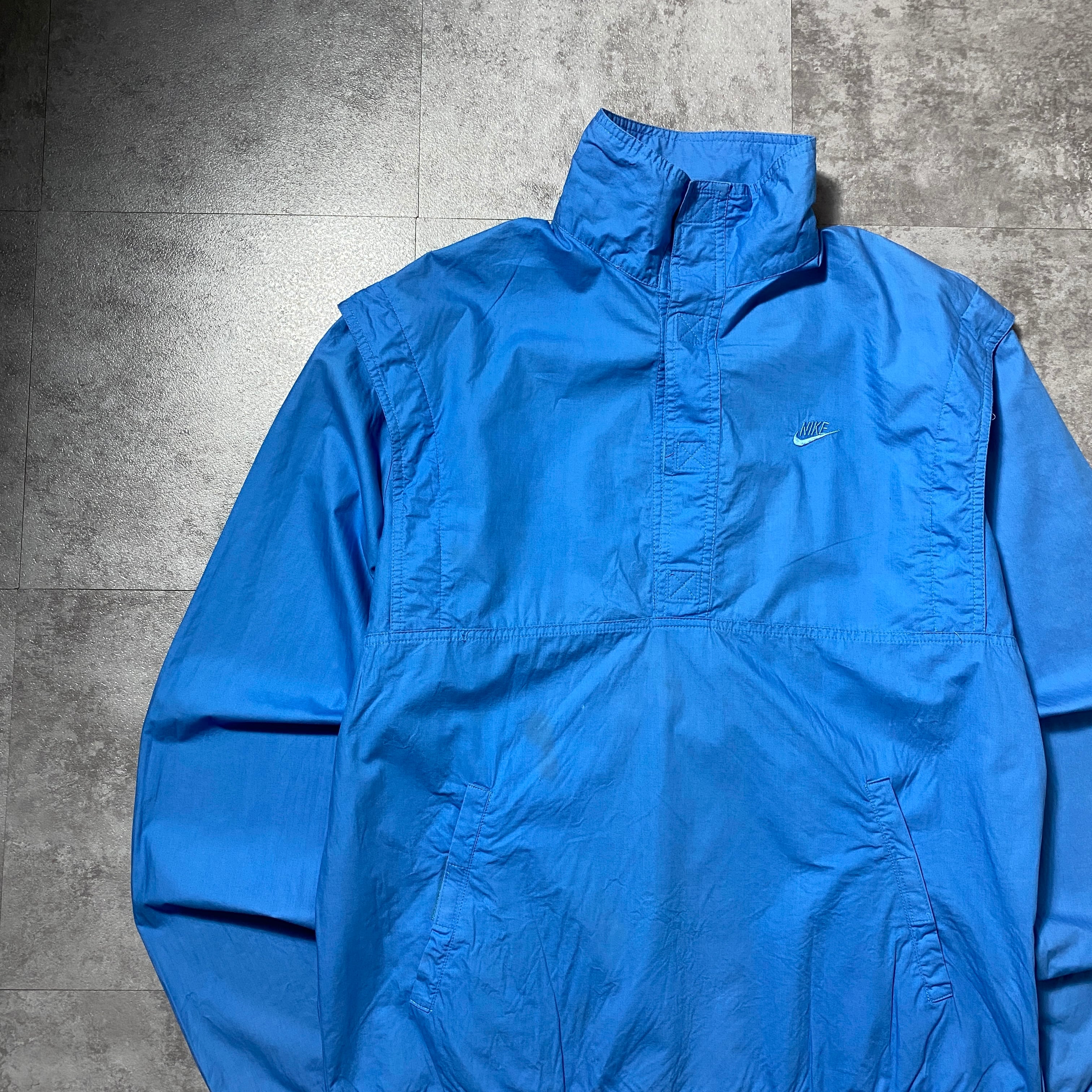 【希少80's紺タグ】80's NIKE ナイキ 紺タグ スウォッシュ 刺繍ワンポイント スタンドカラー ブルー コットンナイロンプルオーバー アノラック