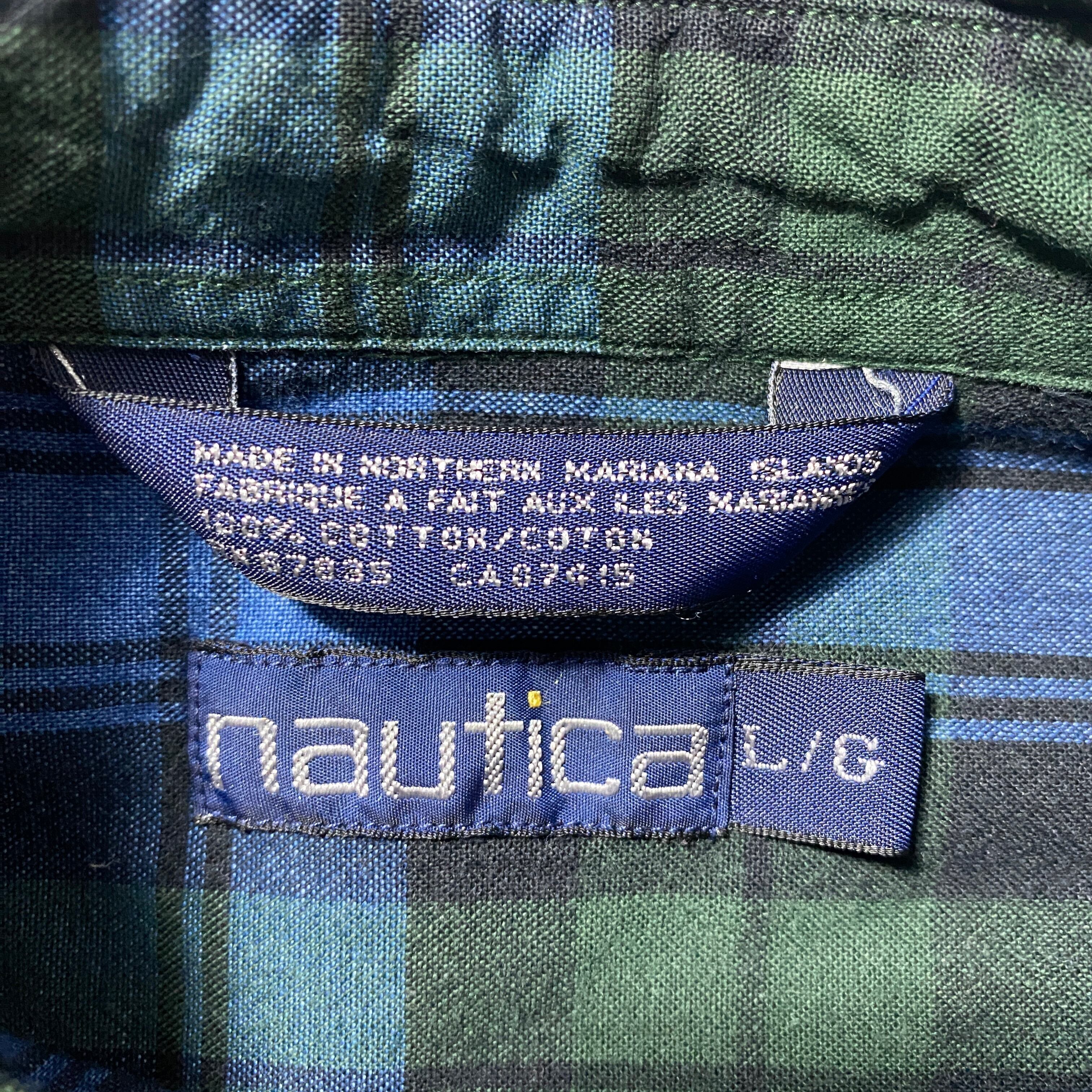 90's nautica ノーティカ 旧タグ 刺繍ロゴ 胸ポケット チェック総柄 ボタンダウン フランネルシャツ
