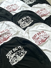 日々、古着事業を営む中でそんなところから着想を得て、当店1番人気のブランド「NIKE」のキャッチコピーを皮肉ったデザインを作成してみました。