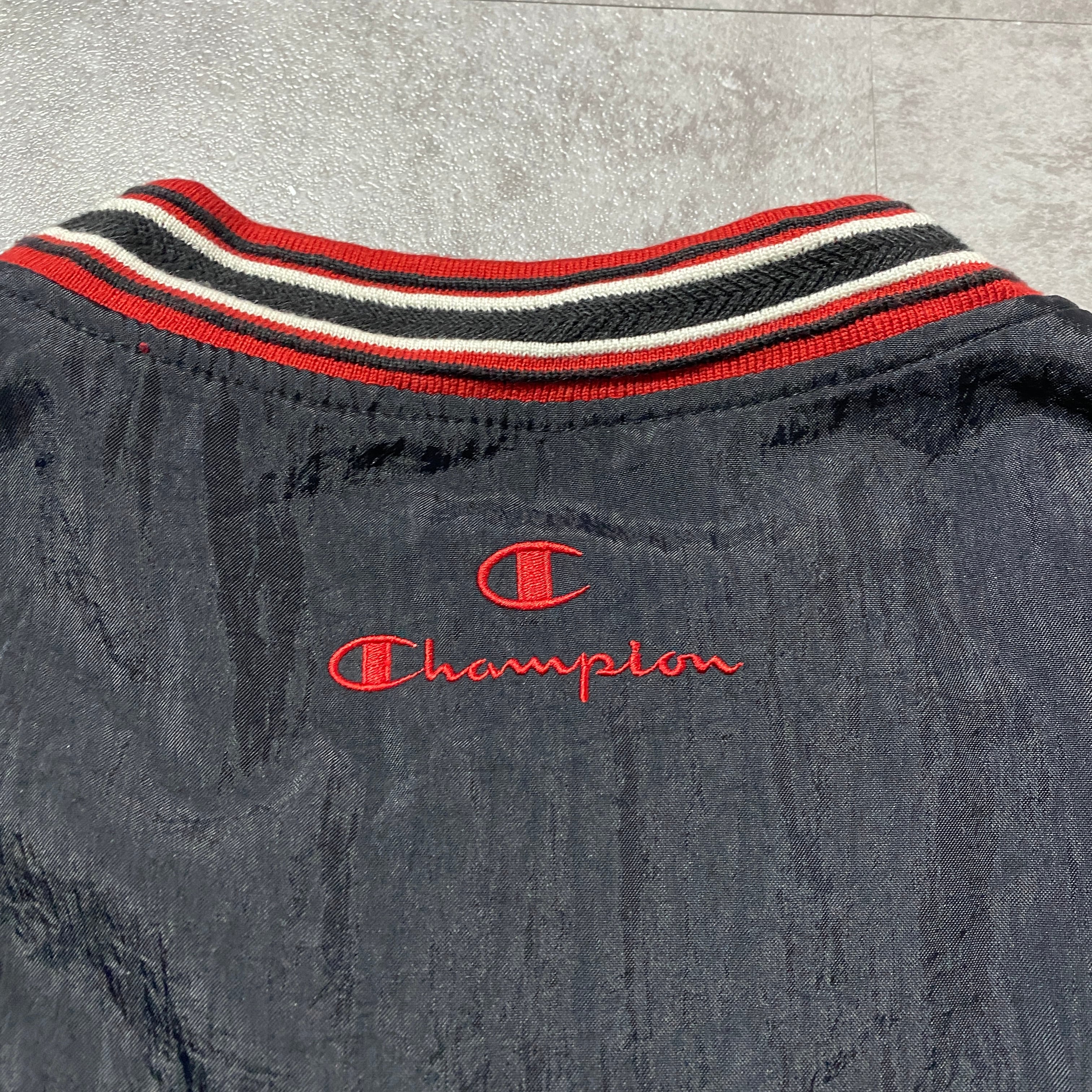 90's Champion チャンピオン 刺繍ロゴ ラインリブ ブラック ナイロンプルオーバー