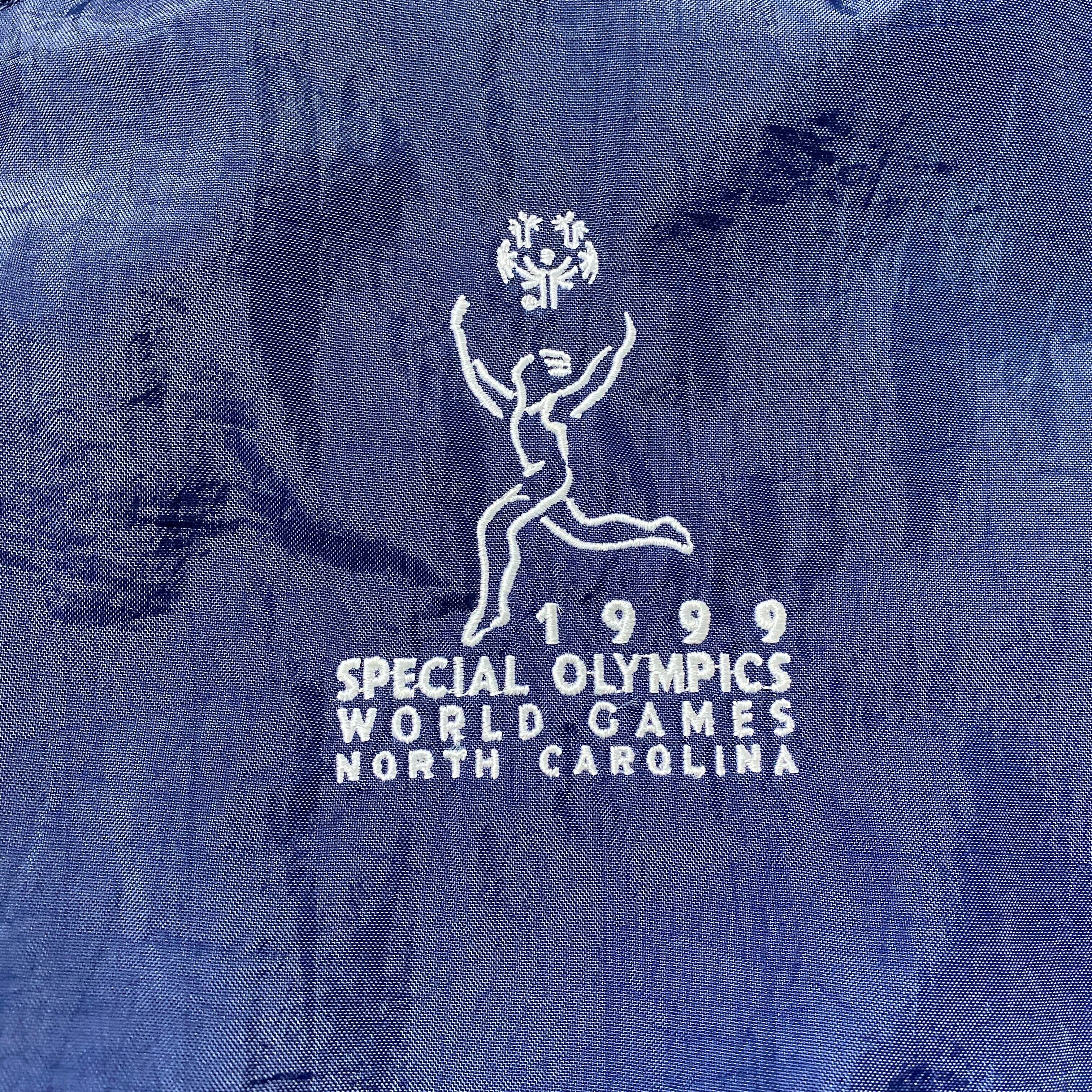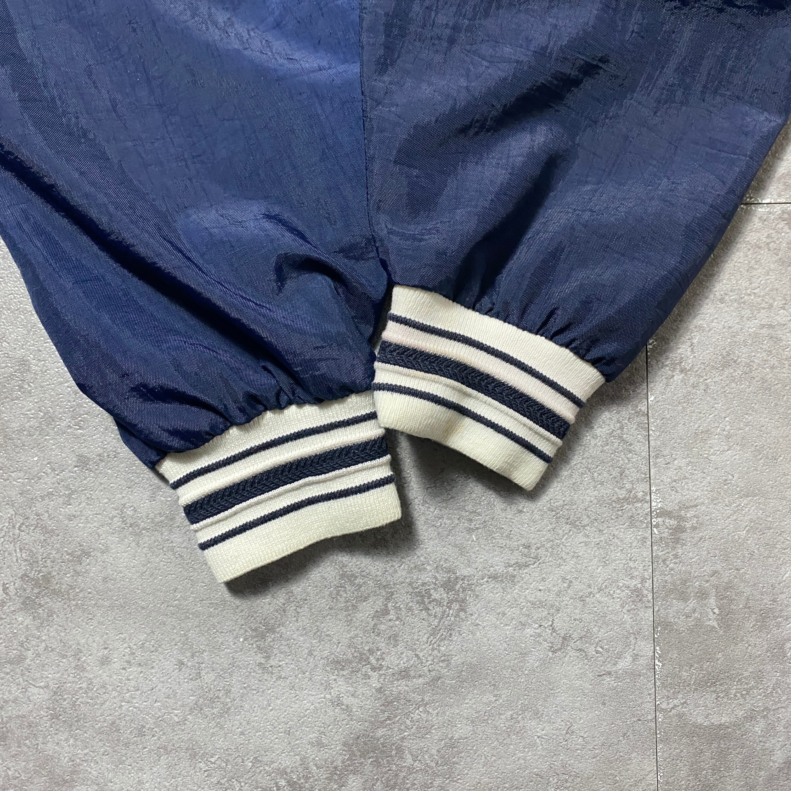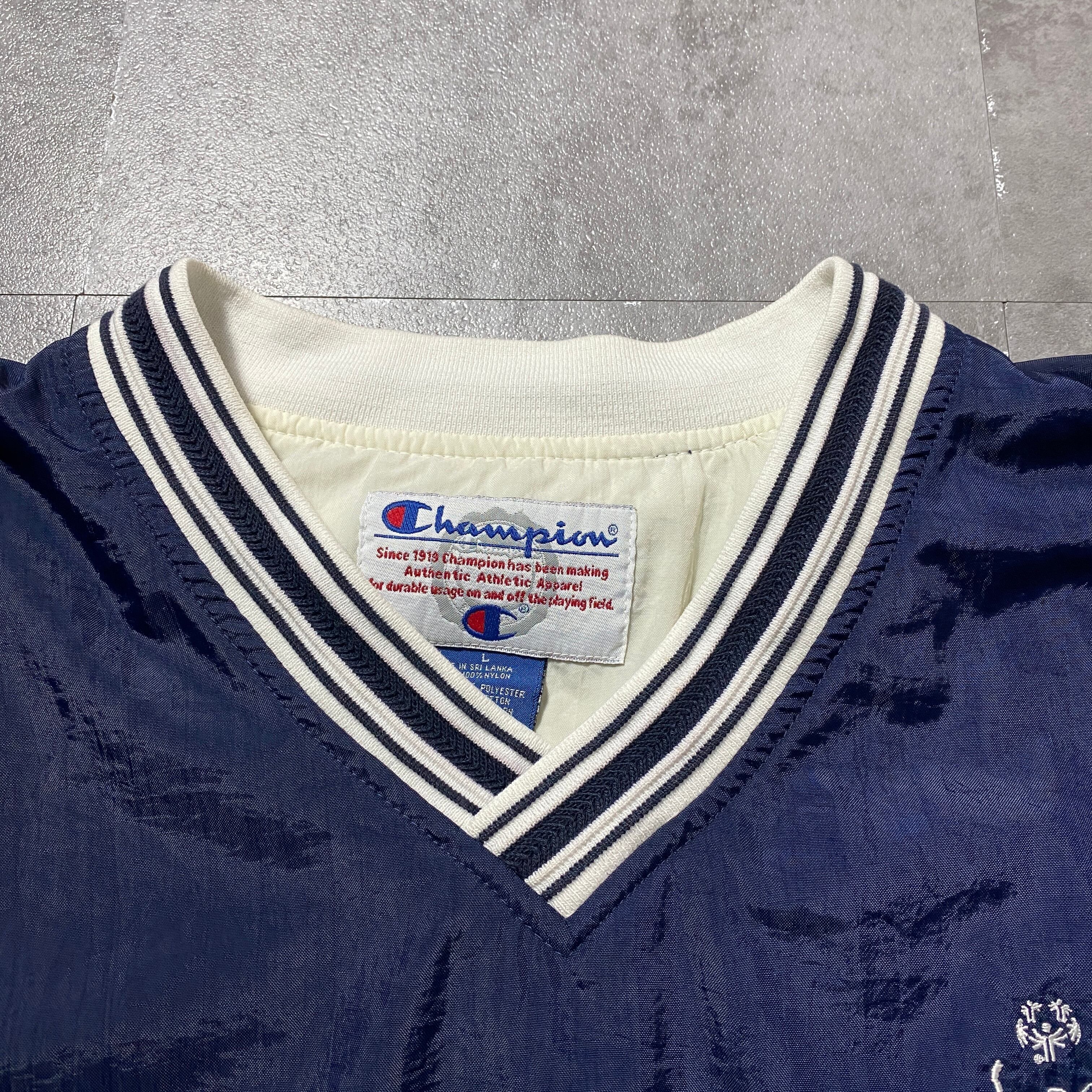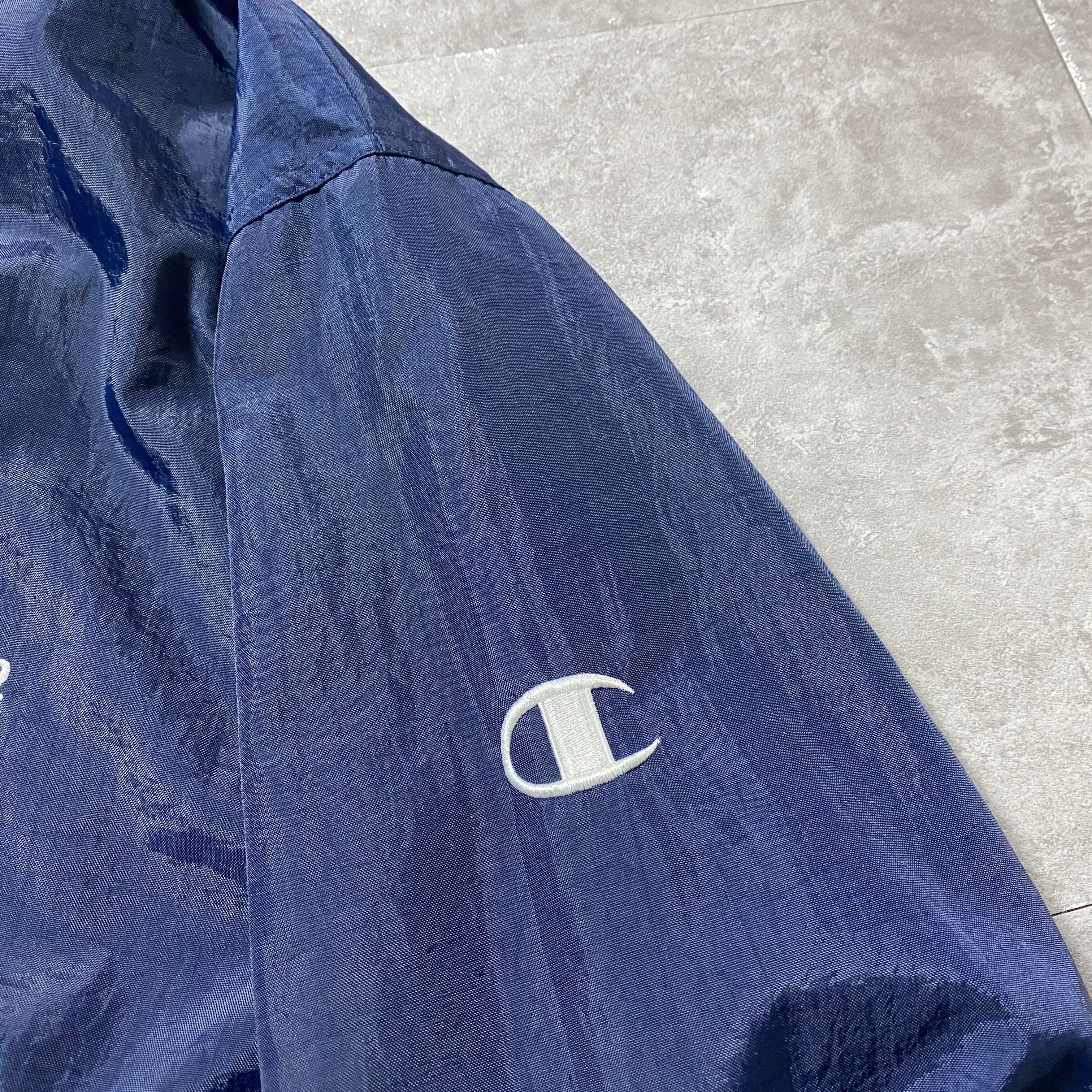 90's Champion チャンピオン 刺繍ロゴ ラインリブ ネイビー ナイロンプルオーバー