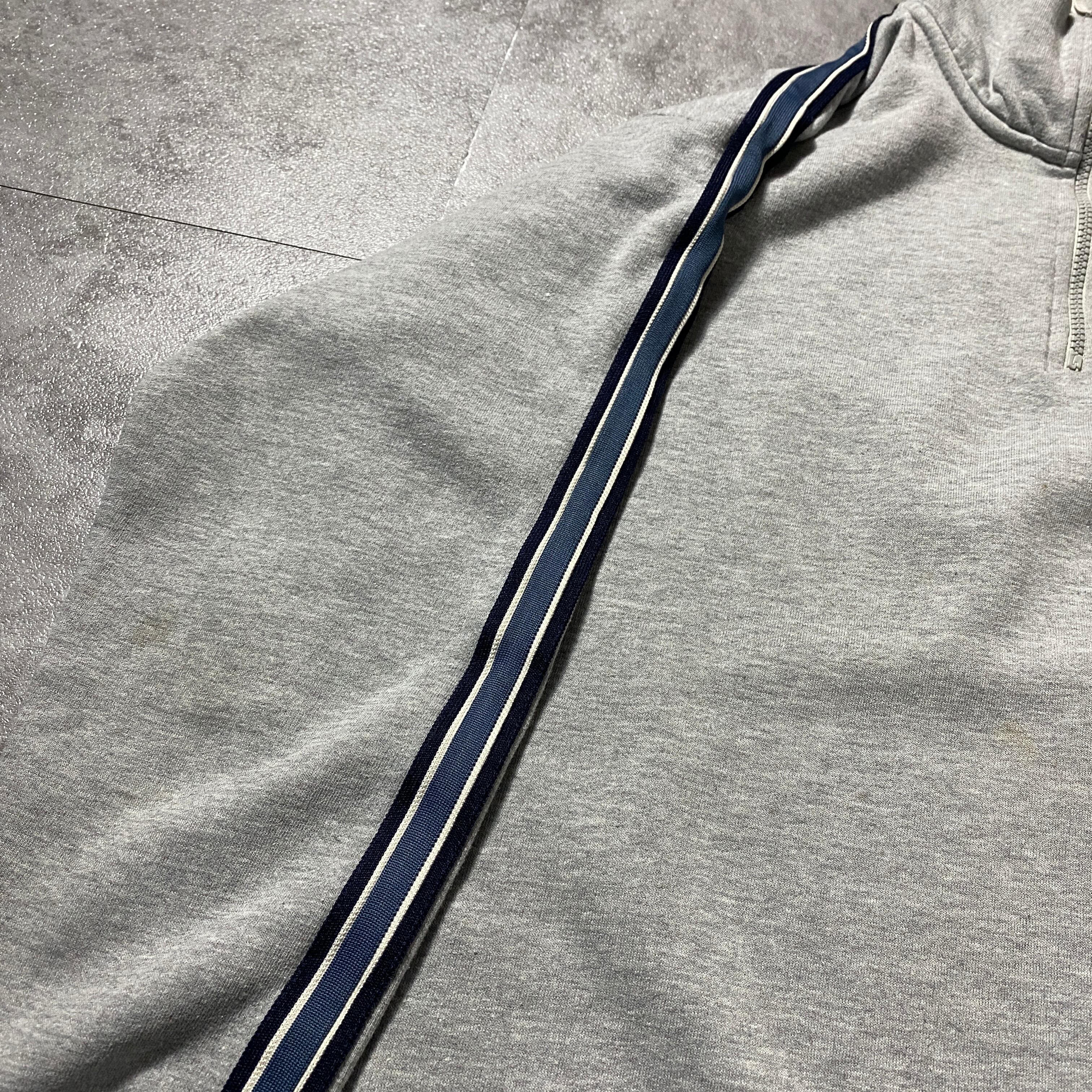 90's SPALDING スポルディング 刺繍ワンポイント ハーフジップ サイドライン グレー スウェット トレーナー