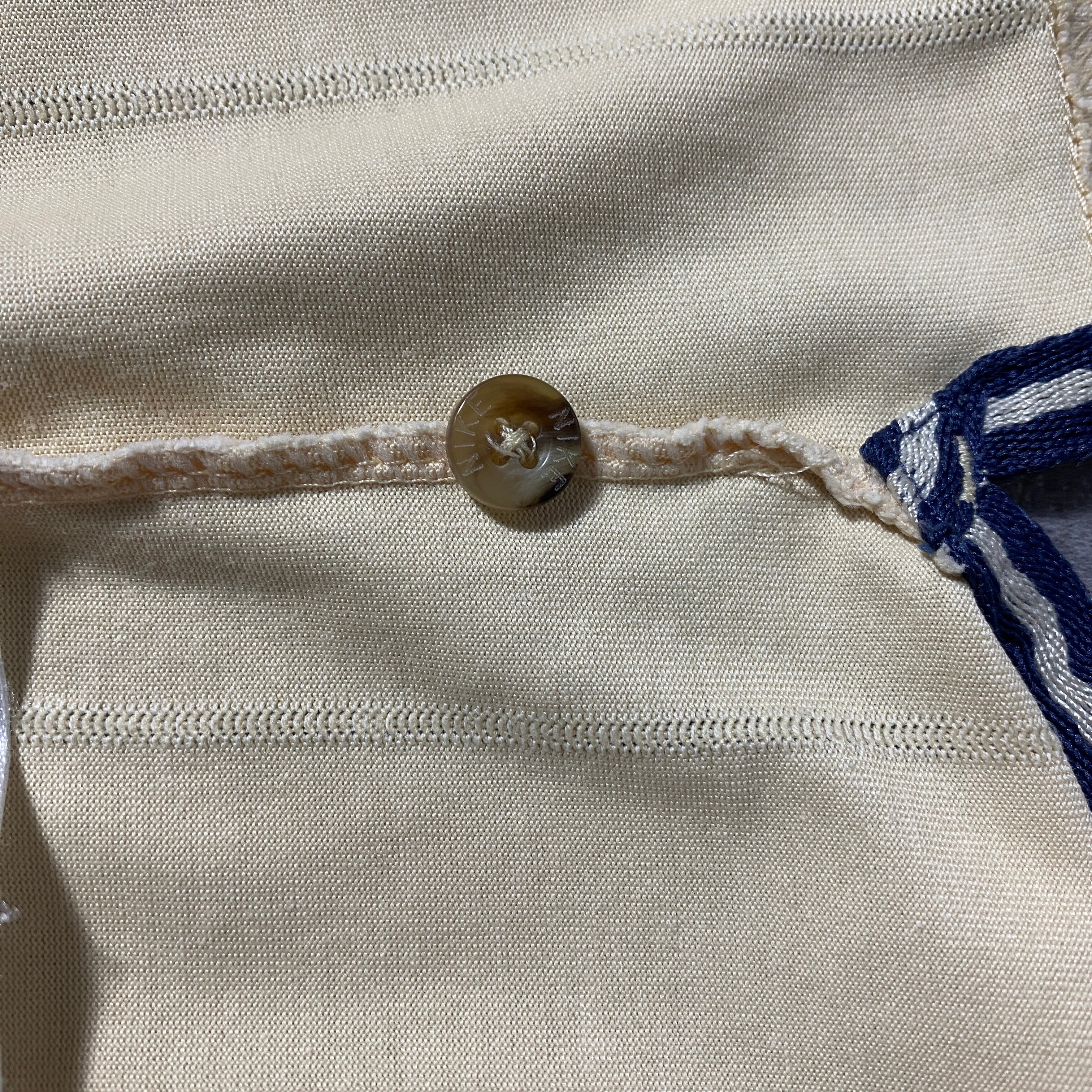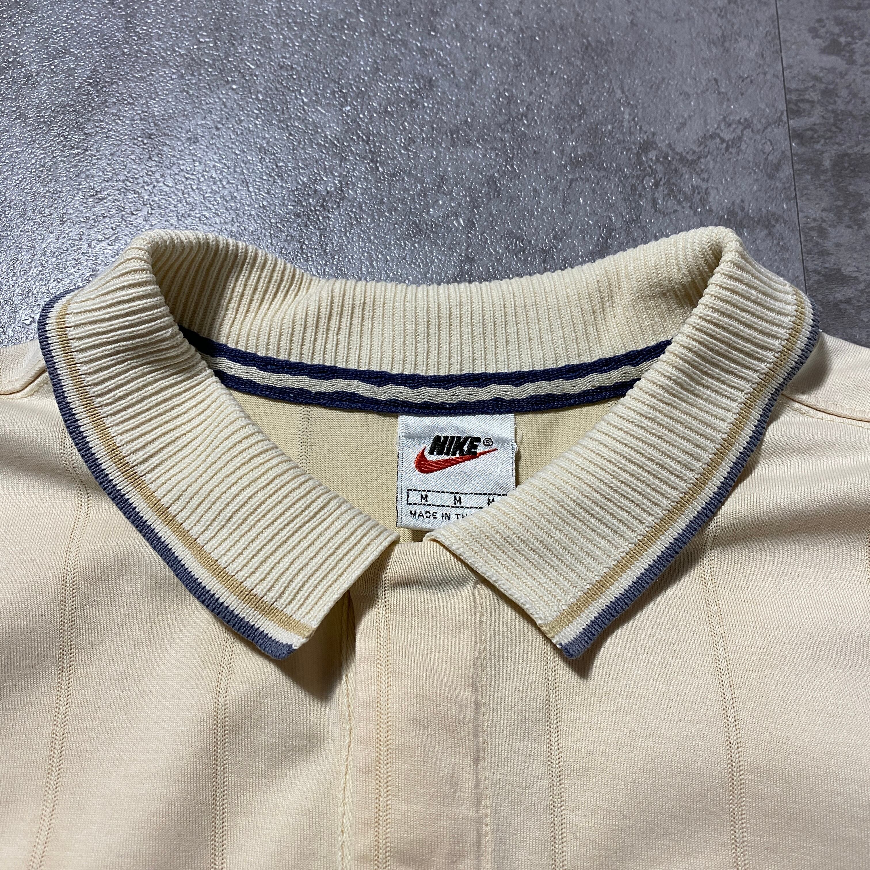 90's NIKE ナイキ スウォッシュ ワンポイント ワッペン ラインリブ ベージュ Tシャツ ポロシャツ