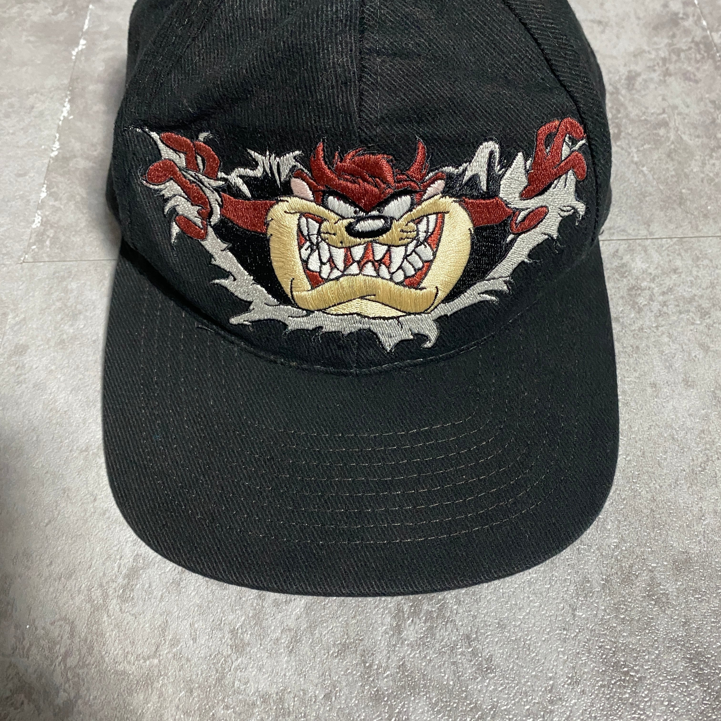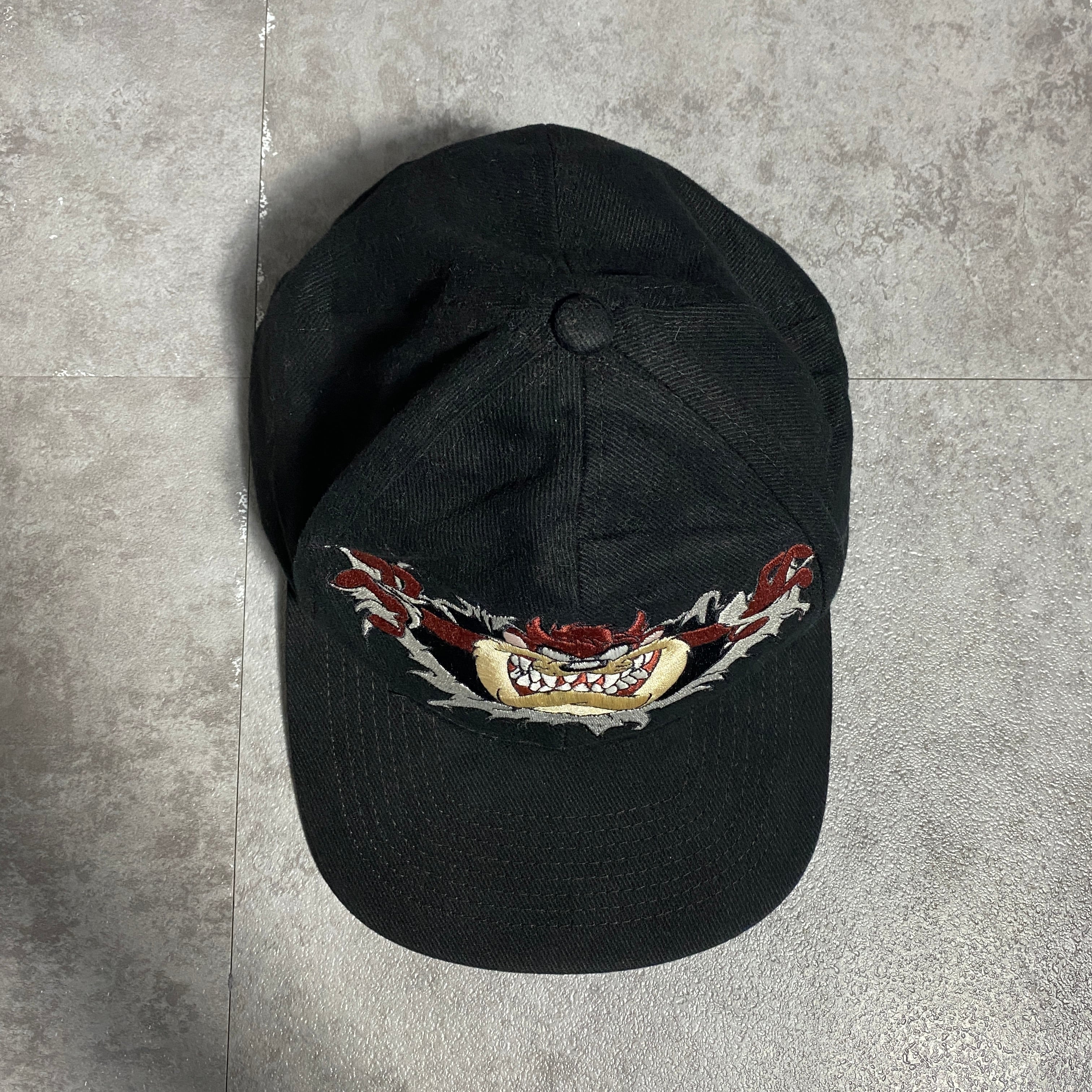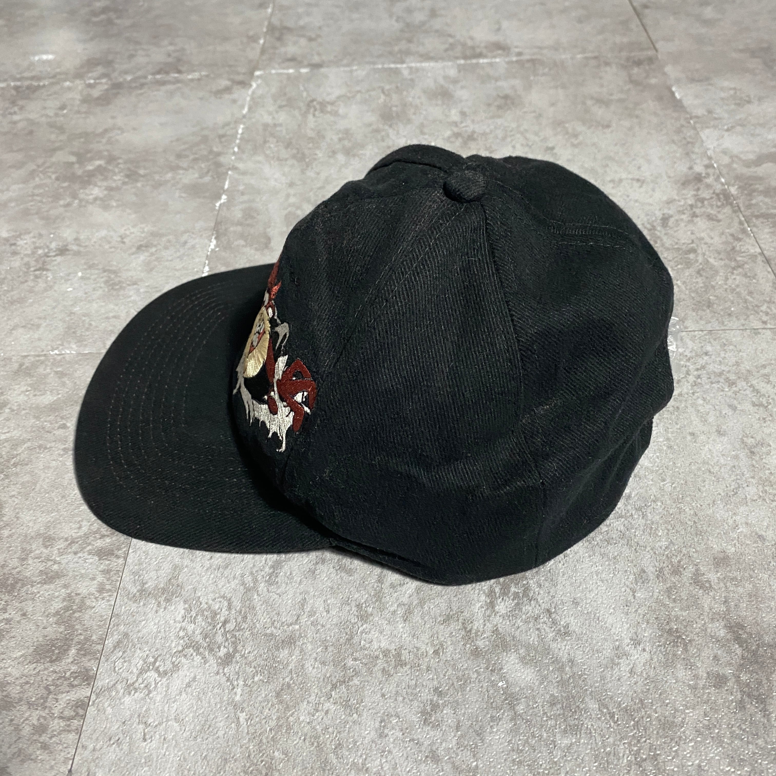 90's LOONEY TUNES ルーニーテューンズ タズマニアンデビル 刺繍ロゴ コピーライト1995 ブラック 黒 スナップバック キャップ