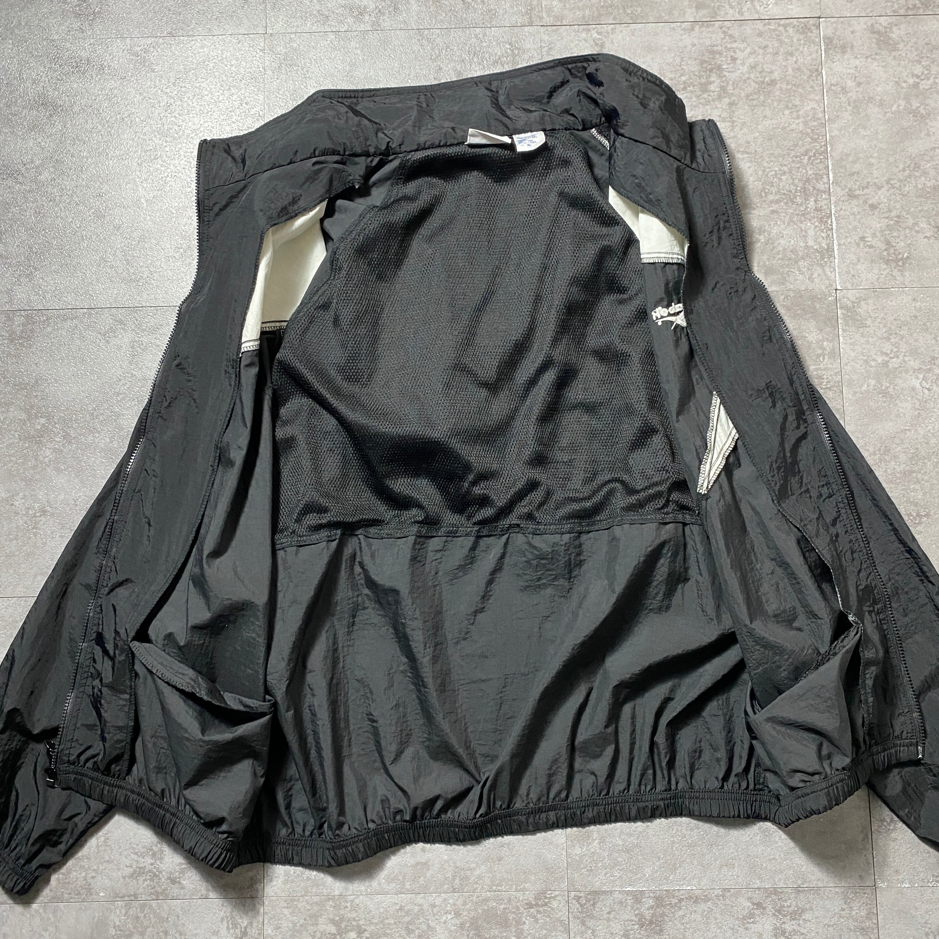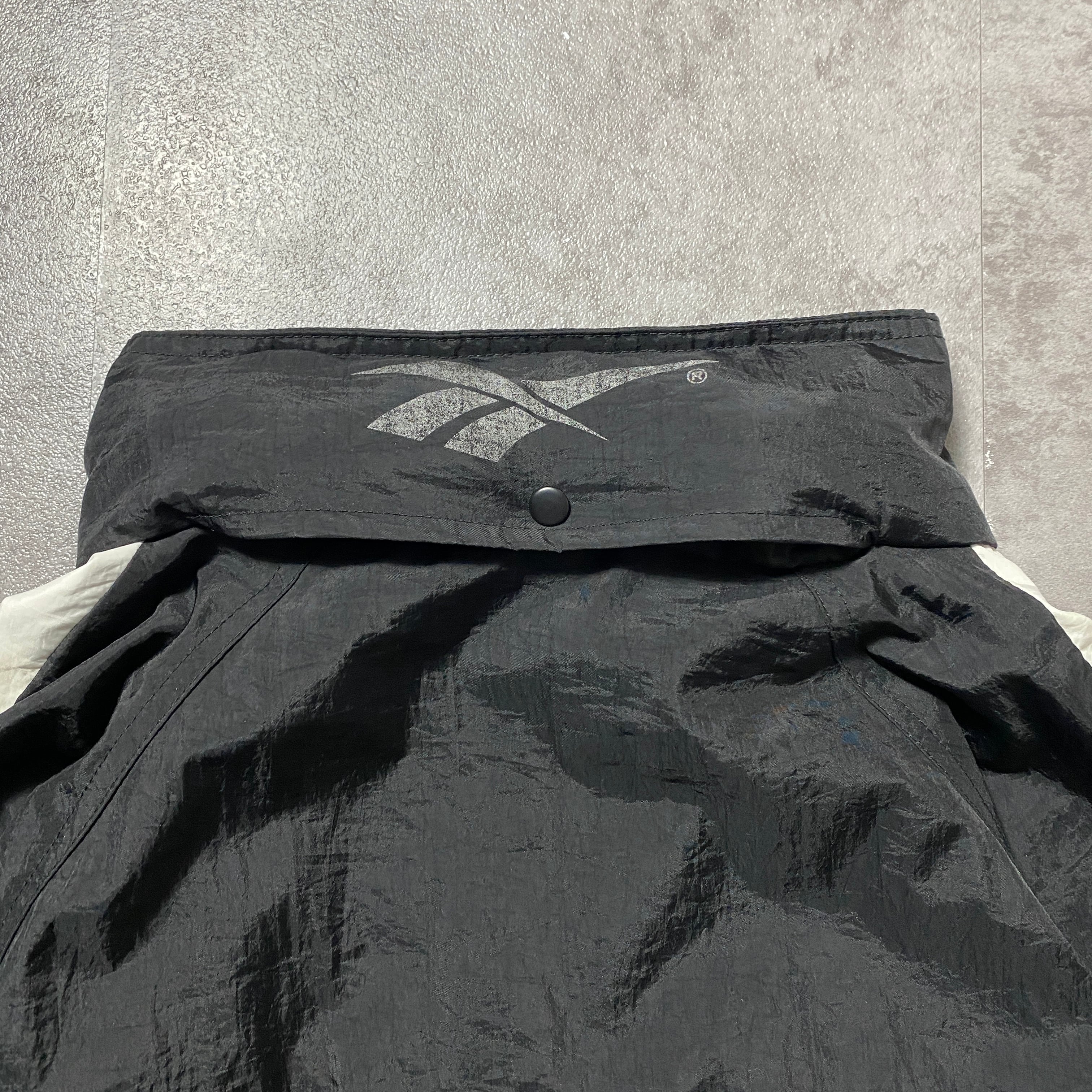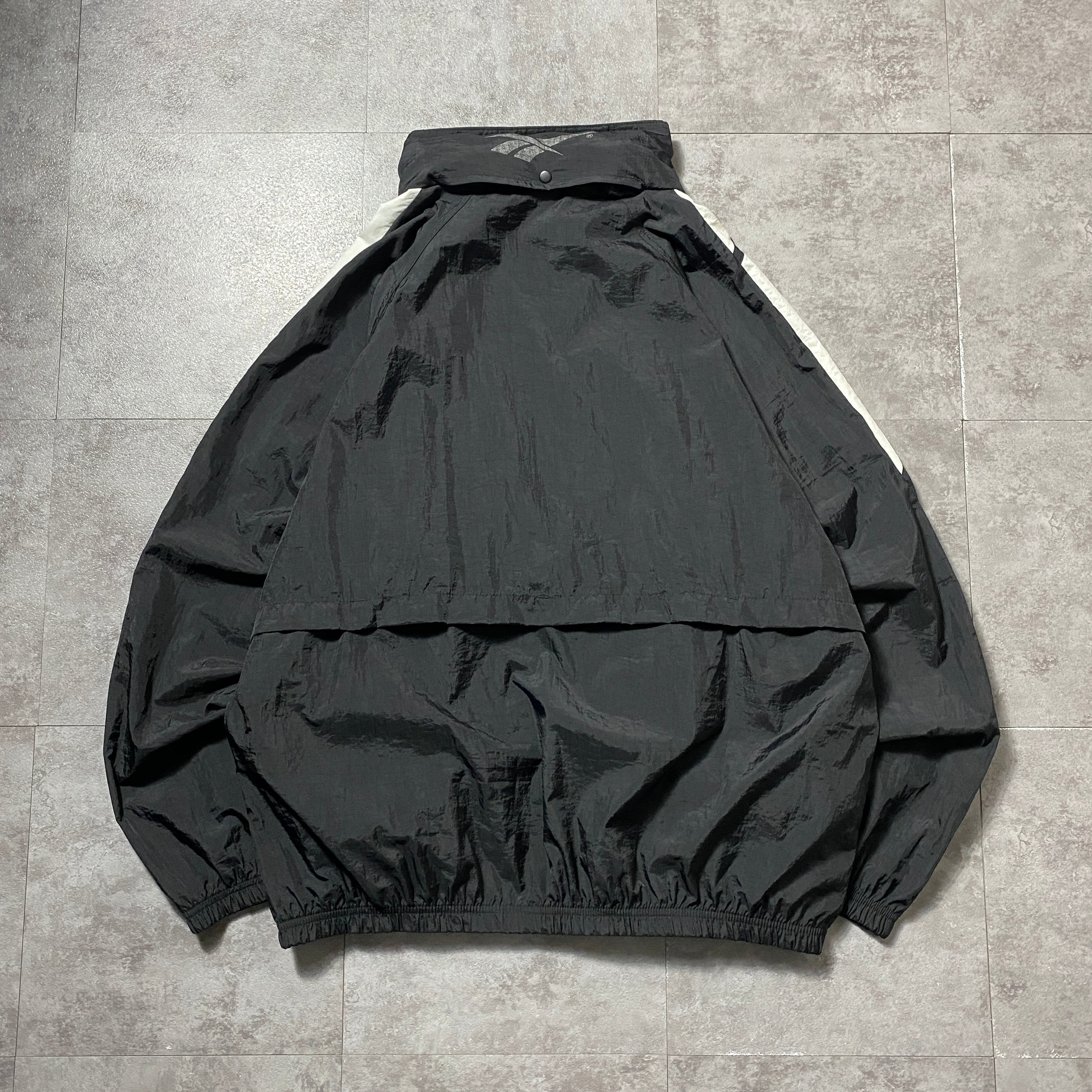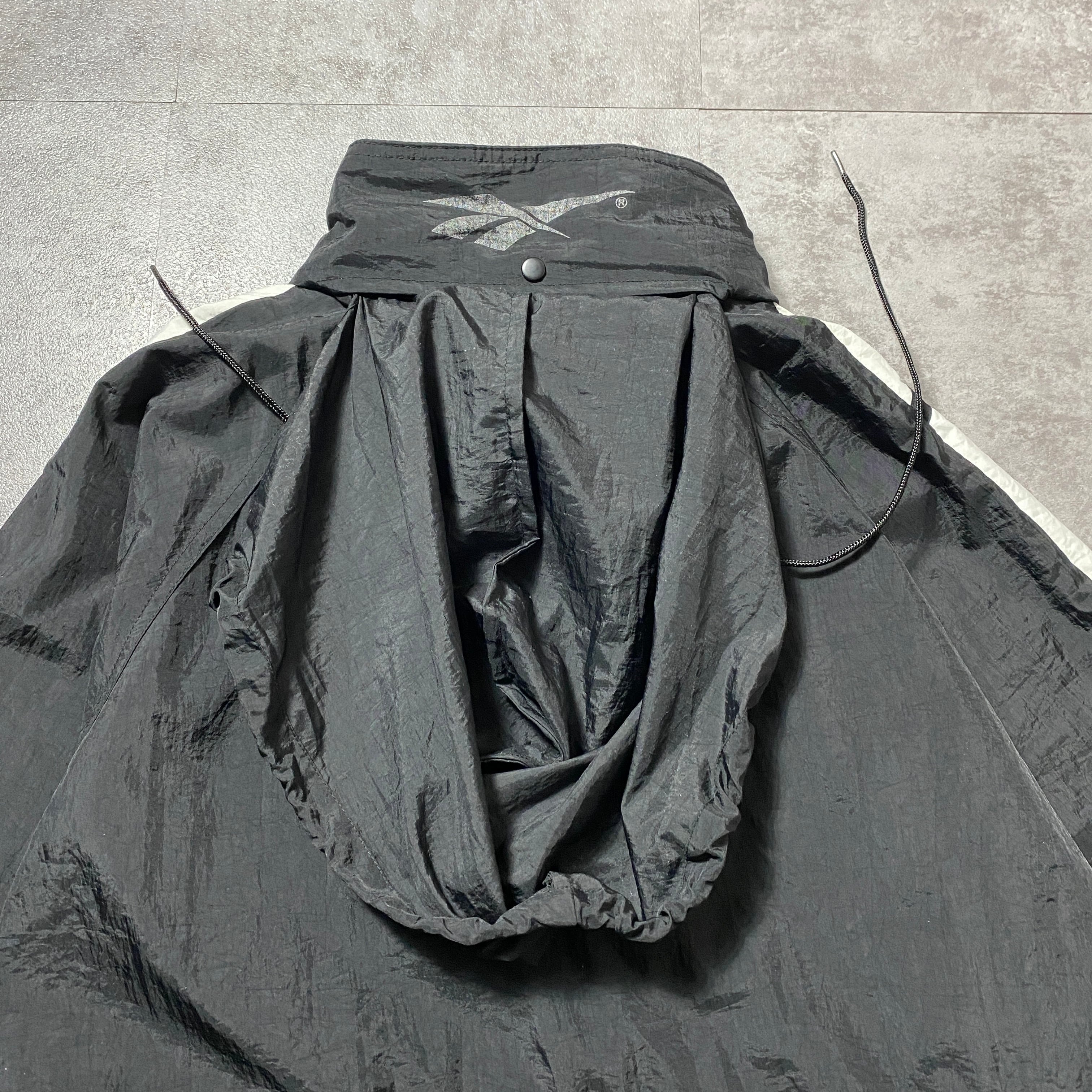 【Size:XL】90's Reebok リーボック 刺繍ベクターロゴ 美品 ブラック 黒 フード付 ナイロンジャケット